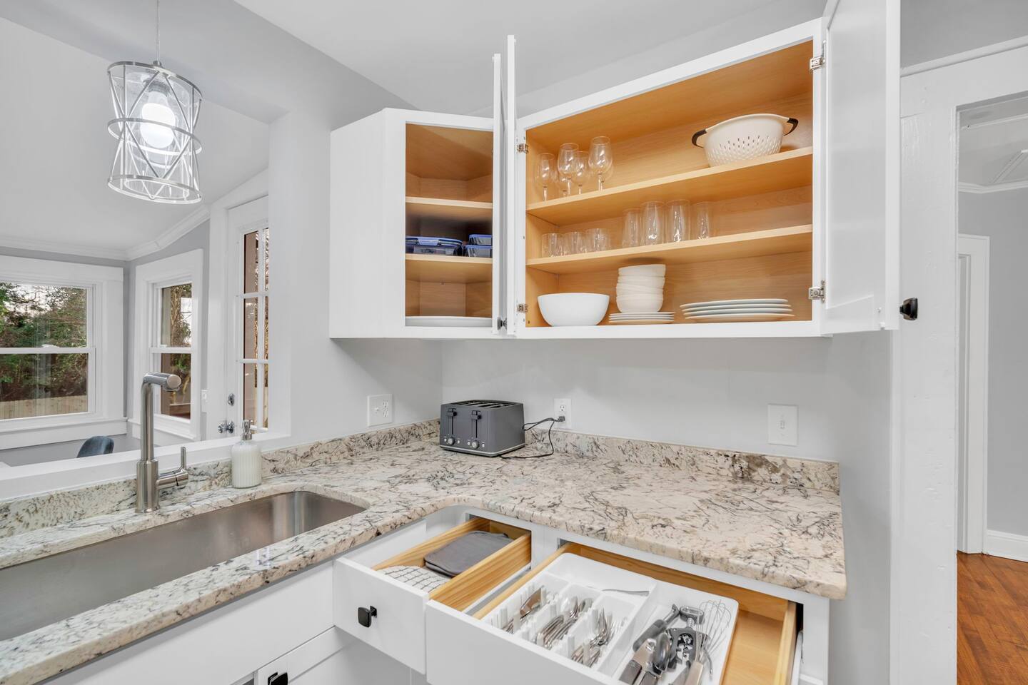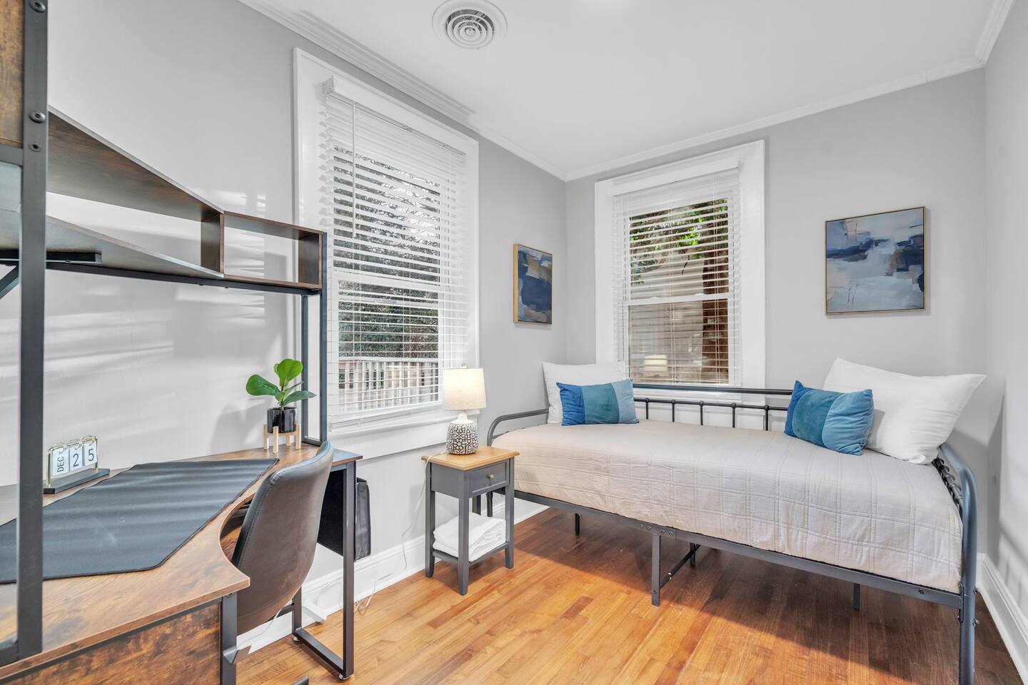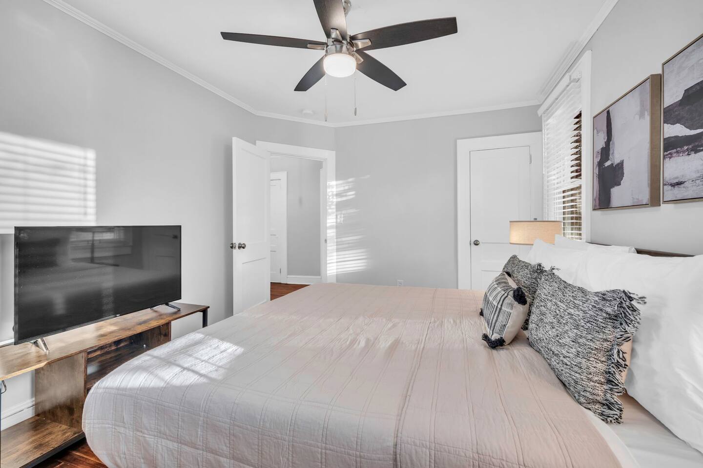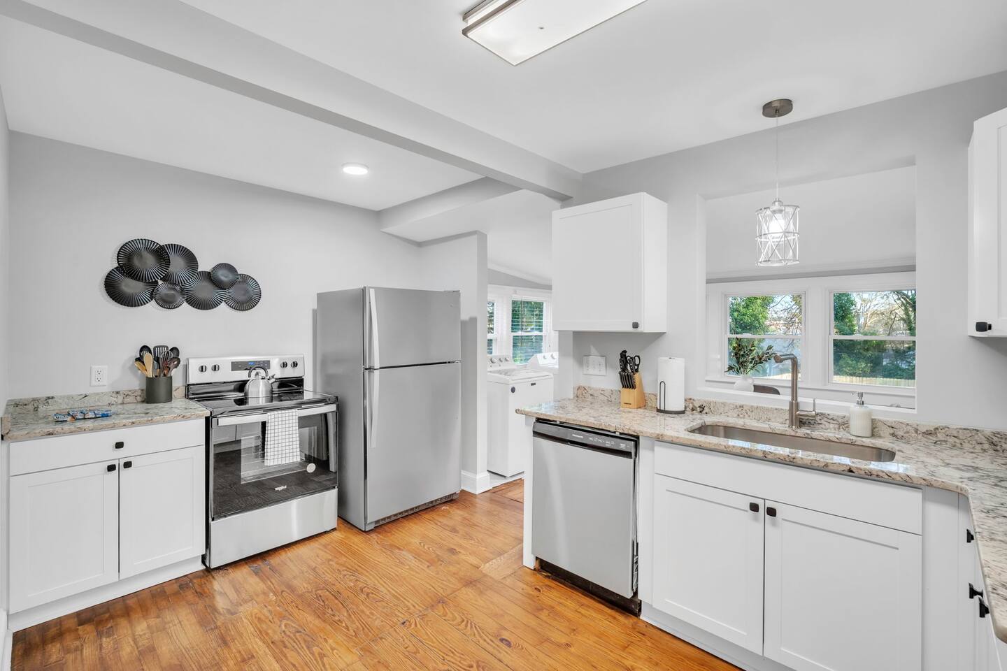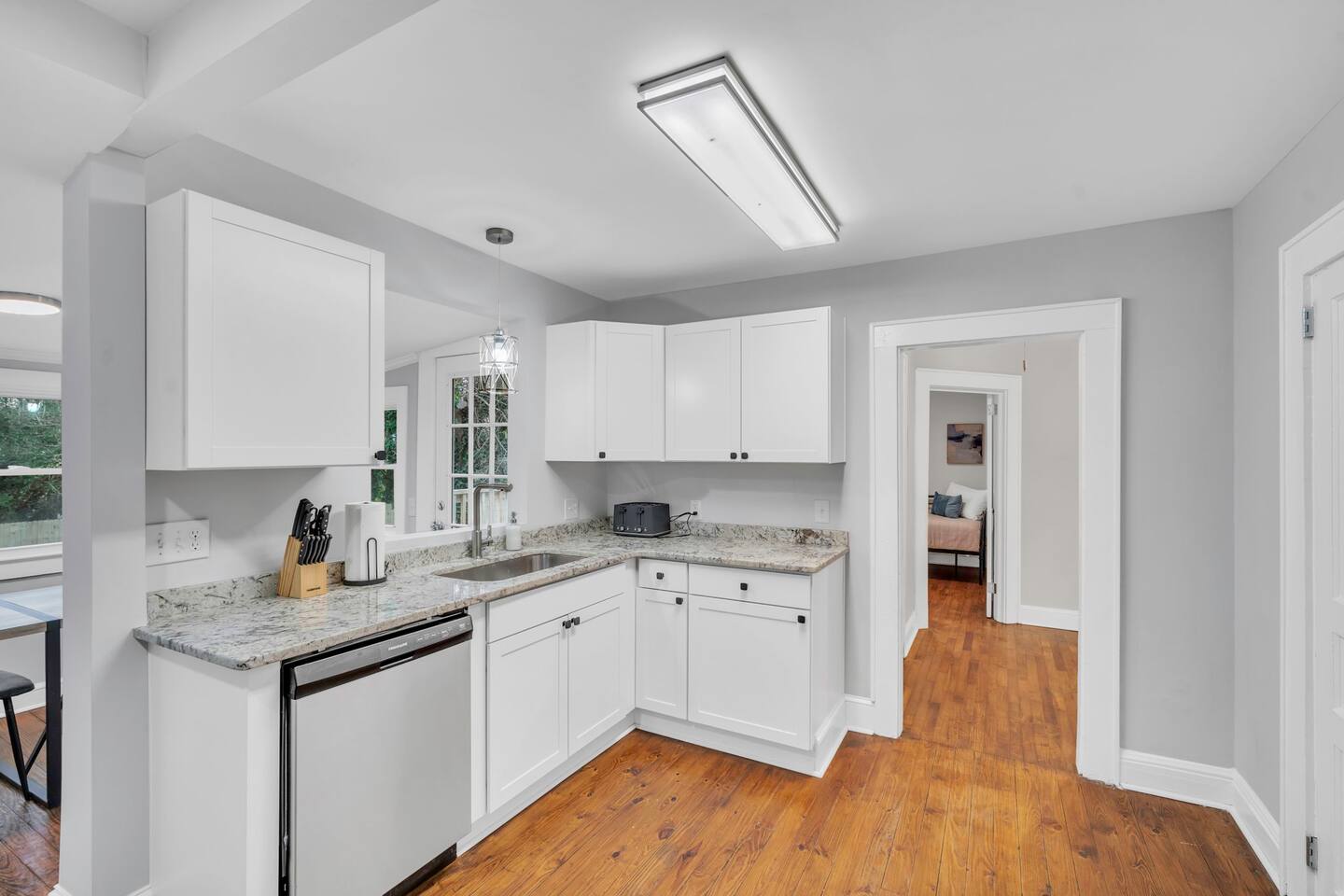 Welcome to Fireside Nook in Greenville! This stylish 2 bedroom 2 bathroom home features a king bedroom, a twin room with a designated workspace, a fully stocked kitchen, and a chic living room. Enjoy the fenced yard and patio for relaxation and time spent together with family and friends. Located 10 minutes from downtown and close to local amenities, it's perfect for both leisure and business travelers seeking a comfortable and convenient stay. Experience Greenville's charm at Fireside Nook!