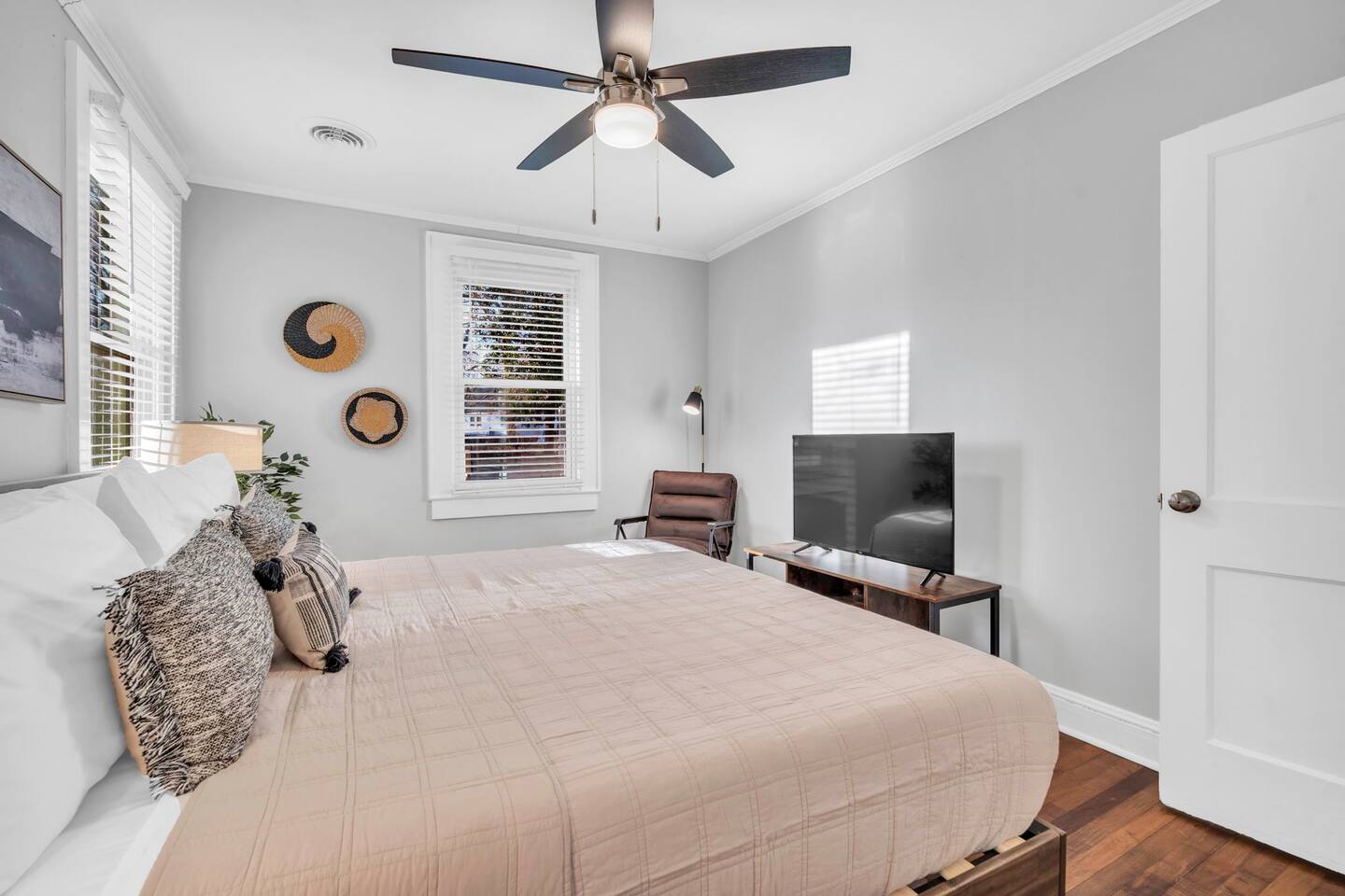 Welcome to Fireside Nook! Nestled in the heart of Greenville, Fireside Nook is a beautifully furnished 2-bedroom, 2-bathroom Airbnb that offers the perfect blend of comfort, style, and convenience. This delightful retreat is ideal for small families, couples, or business travelers looking for a serene stay close to the vibrant city life. Key Features: Master Bedroom: Drift off to sleep in a luxurious king-sized bed while enjoying your favorite shows on the smart TV. Second Bedroom: This cozy room features a comfortable twin bed and a dedicated workspace, perfect for remote work or study. Spacious & Chic Living Room: Relax in style in the living room, boasting modern decor and another smart TV for your entertainment needs. Fully Stocked Kitchen: Whether you're whipping up a quick breakfast or a gourmet meal, our kitchen has everything you need, complete with modern appliances and ample counter space. Sunlit Patio & Fenced Yard: Step outside to enjoy the beautiful fenced yard and patio area – a serene spot for morning coffee or evening relaxation. Location Perks: Just 10 minutes or less from Downtown Greenville, our location puts you close to the best dining, shopping, and entertainment the city has to offer. Enjoy easy access to local amenities, including grocery stores, cafes, and parks, making your stay both convenient and enjoyable. Fireside Nook isn't just a place to stay; it's a destination in itself. Book your getaway today and experience the best of Greenville in comfort and style! *We are pet friendly with a one time nonrefundable fee, which is automatically applied when you add your pet as a guest during booking.
