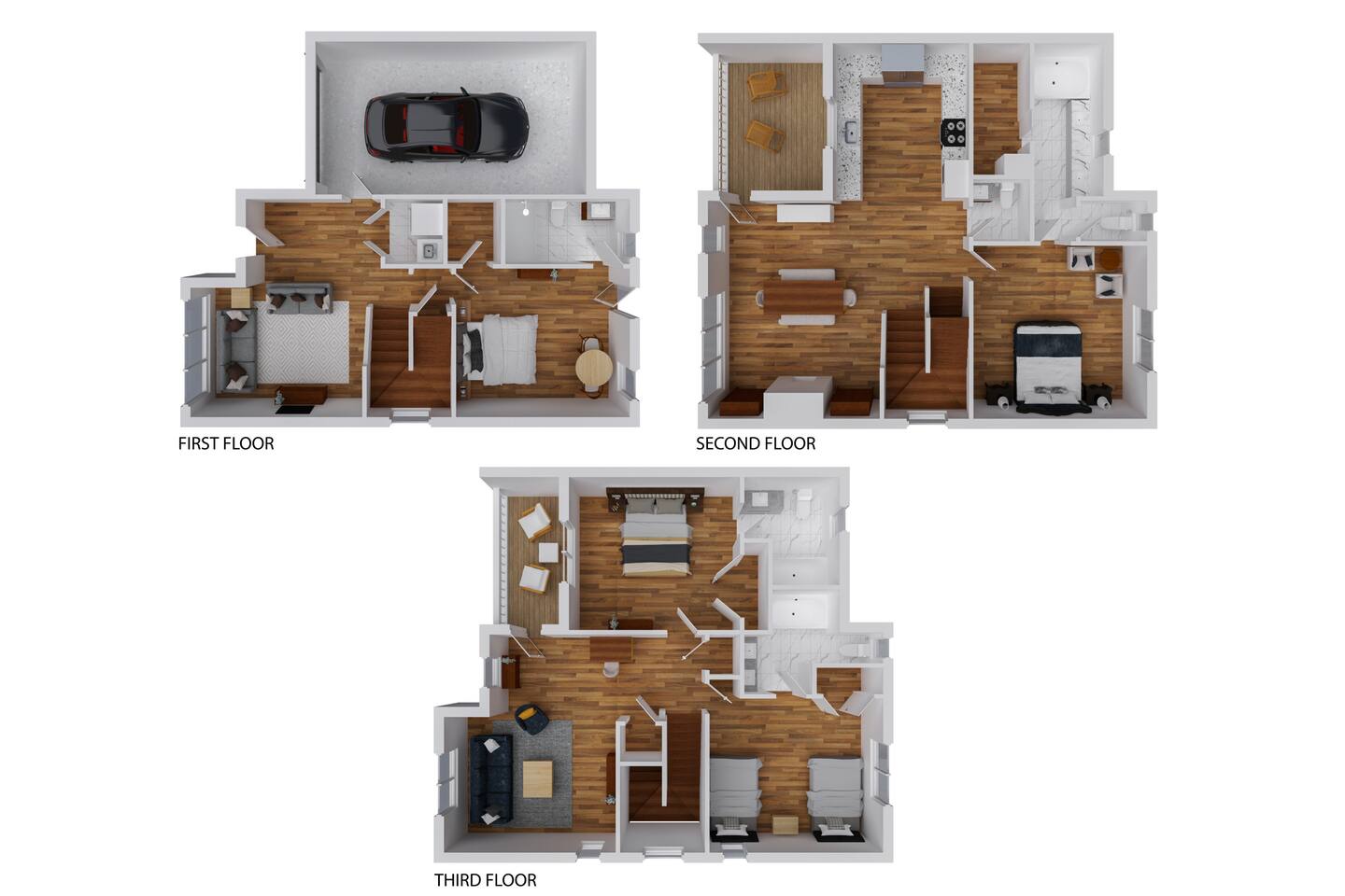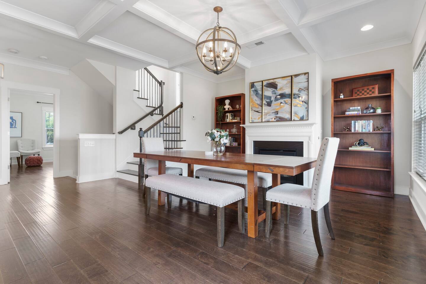 Nestled in the heart of Greenville, Alta Novella is your three-story townhouse sanctuary, available for monthly rentals (30 days to 6 months). Ideal for long-term work visits, transitioning residents, or waiting home builders, it comes fully furnished with utilities included. Parking is seamless, with options for both driveway and street. Step inside the first floor to find a cozy living space, complete with plush throws and a streaming-enabled Smart TV. This level also houses our convenient laundry facilities and a stylish Queen suite with outdoor patio access, the ideal spot for an al fresco meal. Ascend to the second floor and be welcomed by an expansive dining area, with seating for 10, flanked by custom bookshelves and a warming gas fireplace. The adjoining luxury kitchen is a chef's dream, boasting granite countertops and top-of-the-line appliances. A well-appointed master suite awaits, offering a King bed and a spa-like bathroom with a jacuzzi tub. The balcony on this level, with its padded rockers, is tailor-made for memorable conversations. The topmost floor, designed with the youth in mind, houses another living space doubling as a remote workspace. A dedicated "Movie Room" beckons for family times, surrounded by bookshelves filled with games and puzzles. The two final bedrooms here cater to diverse needs – one with a King bed and sleek en suite, and the other with two full beds and a spacious attached bathroom. Whether you're congregating or seeking solitude, Alta Novella is poised to make your Greenville stay unforgettable. And for those traveling with furry friends, we offer a pet-friendly experience (*$250 fee; $100 per additional pet) Your Greenville adventure begins at Alta Novella. Dive in!