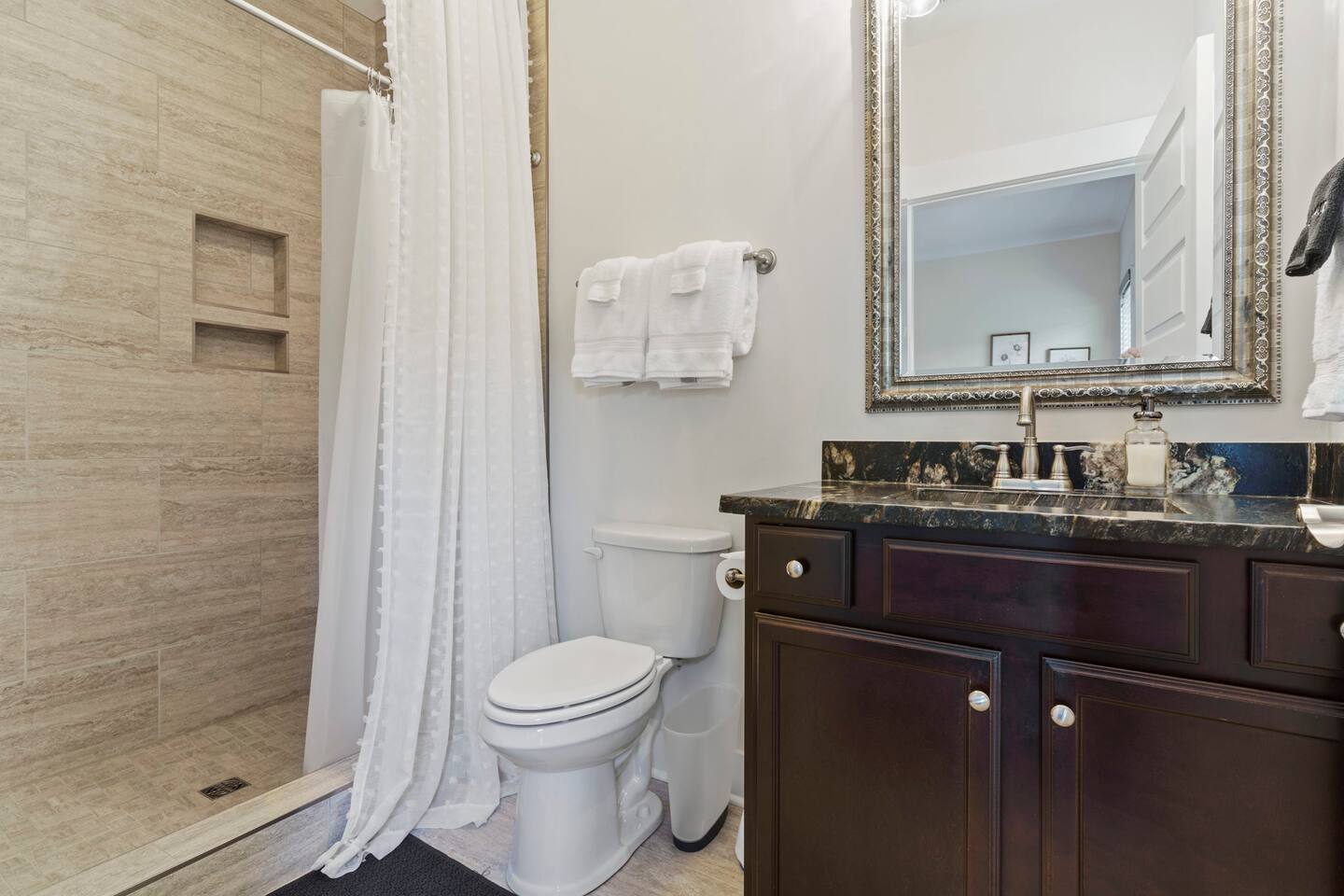 Experience ultimate comfort at Alta Novella, your ideal monthly rental just steps from Downtown Greenville. Our 4-bedroom haven features en suite bathrooms for unparalleled privacy. Delight in a chef's kitchen, elegant dining area, and dual living spaces designed for leisure. Pets are welcome (additional fee applies*) in our fenced-in patio. You're a mere quarter-mile from baseball at Fluor Field and a mile from the iconic Falls Park.