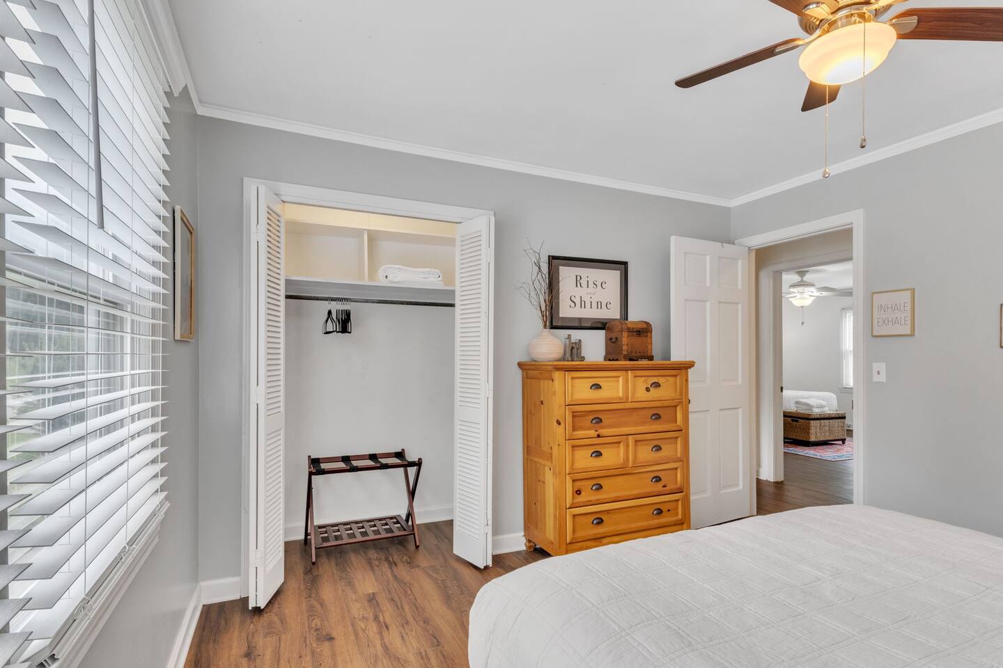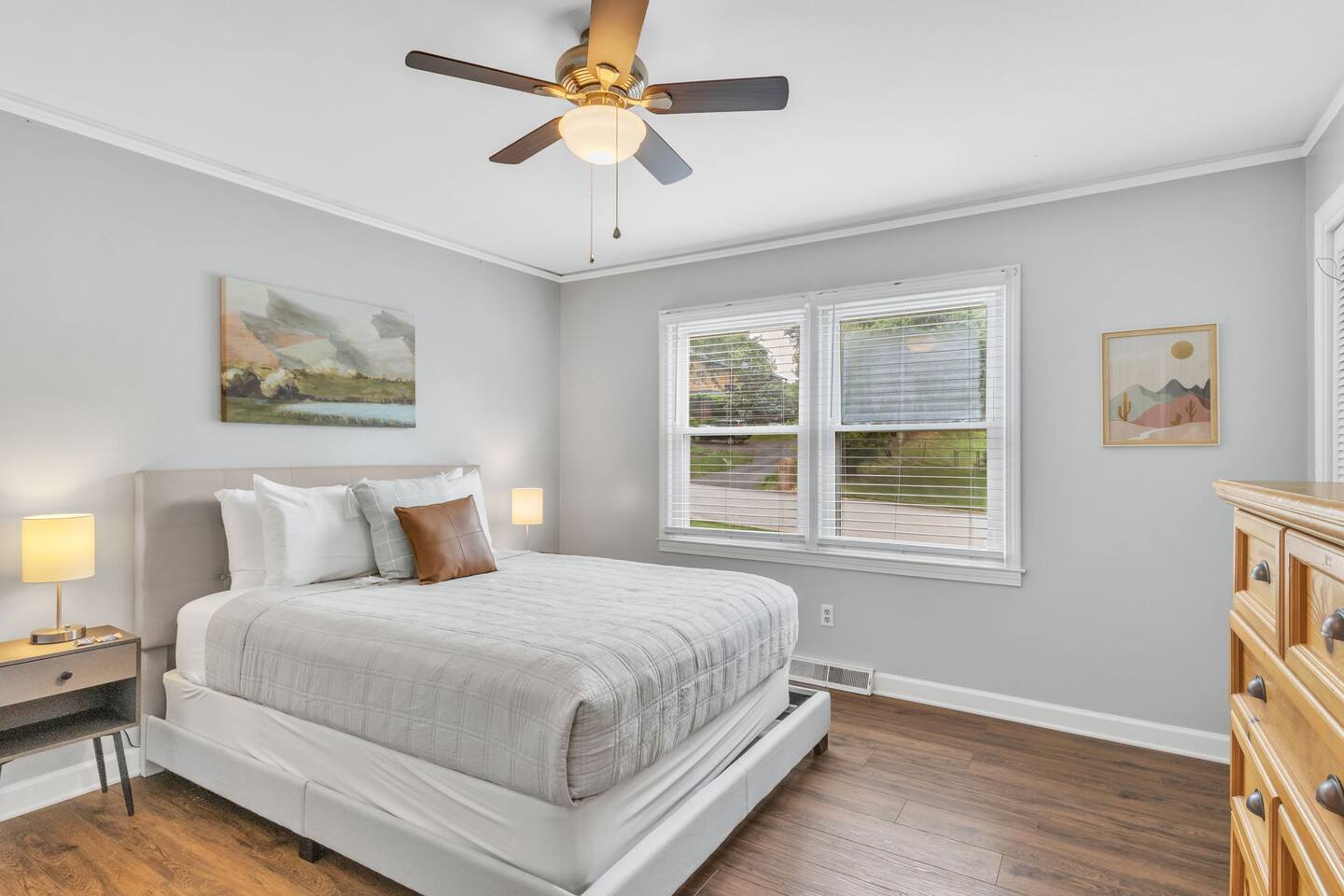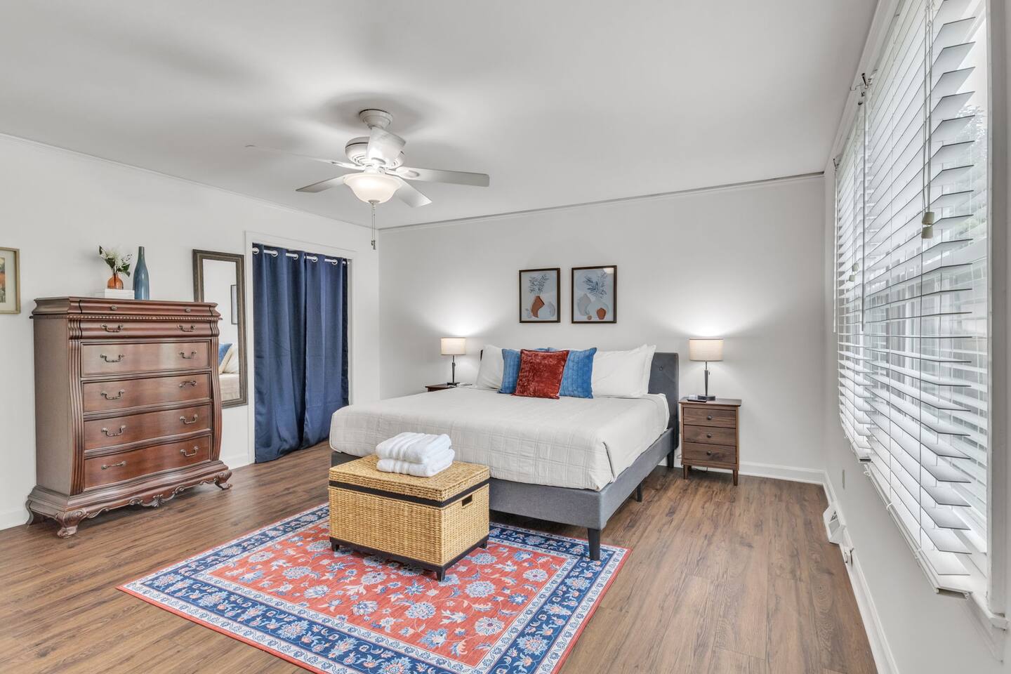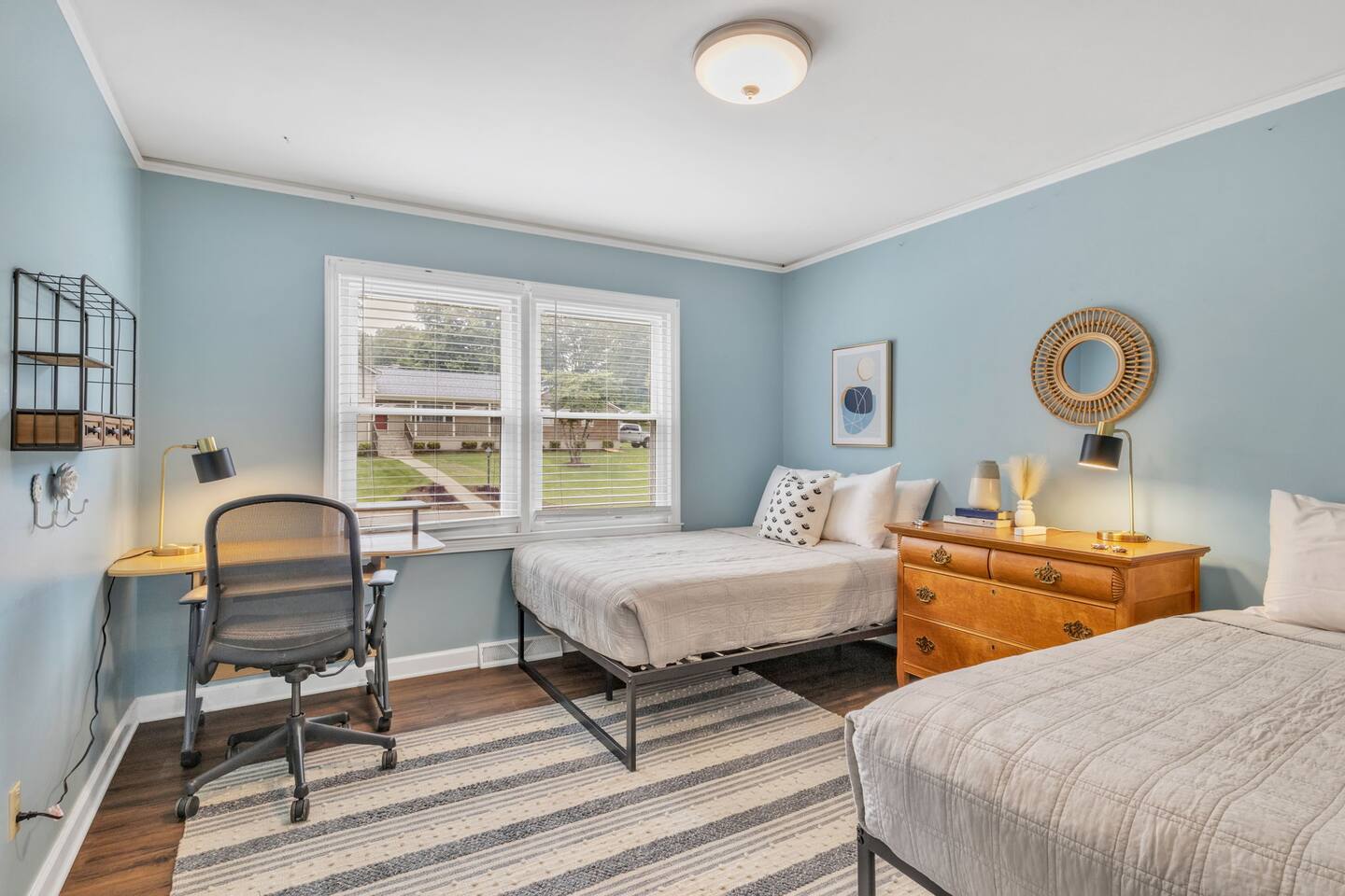 Welcome to Artist's Haven- our beautifully appointed 4-bedroom, 3-bathroom home located on the highly sought-after Eastside of Greenville. Situated in a desirable residential area, this charming abode offers a comfortable and luxurious stay for guests. With 2 laundry rooms and the downstairs suite, our home is perfect for families who wish to enjoy time with one another- but also appreciate privacy at the end of a long day exploring Greenville. As you arrive, you'll be greeted by a spacious 2-car garage equipped with an electric vehicle charger, ensuring convenience for eco-conscious travelers. Step into the backyard oasis, complete with an outdoor eating area for al fresco dining, a cozy fire pit for evening gatherings, and a badminton net for some friendly competition. Inside, the primary bedroom awaits, boasting a plush king-sized bed and an en-suite bathroom for added privacy and relaxation. The en-suite bathroom includes all the necessary towels and toiletries, ensuring a hassle-free stay. Additionally, there is a hall bathroom conveniently located for the other bedrooms with towels and toiletries as well. The two additional upstairs bedrooms offer a queen-sized bed and two full beds respectively, accommodating a variety of sleeping arrangements. Prepare delicious meals in the fully-equipped kitchen, which includes all the essentials for cooking and baking. Whether you're whipping up a quick breakfast or hosting a family dinner, this kitchen has you covered. Just off the kitchen is a designated work space, which provides a comfortable convenient space for those working from home. Proceeding downstairs, you'll immediately notice the modern and tastefully designed interior of this private suite, which includes its own bedroom, bathroom, laundry, living area, and kitchenette! The living area features comfortable seating, allowing you to relax and unwind after a long day of exploring the city. The fourth downstairs bedroom boasts a cozy and plush queen-sized bed, adorned with high-quality linens and pillows for a restful night's sleep. You'll find ample storage space for your belongings, including a spacious closet. The bathroom is sleek and contemporary, with a luxurious shower and a selection of plush towels. The fully stocked kitchenette is available for guest use. Equipped with top-of-the-line appliances, including a toaster, air fryer, refrigerator, and microwave, you'll have everything you need. The kitchen is also stocked with cookware, utensils, and dinnerware, ensuring a hassle-free eating experience. For entertainment and relaxation, the house features a sunroom filled with natural light upstairs and a spacious living area for everyone to unwind. Laundry is convenient with a complimentary washer/dryer and detergent. Exploring the local area is a breeze, with a beautiful park less than 5 minutes away and The Pavilion, a popular ice skating rink in Taylors, also nearby. The amenities of Downtown Greenville are just a short 15 minute drive away. Enjoy a hassle-free check-in experience with self check-in available, allowing you to arrive at your own convenience using an individualized entry code. Discover the best of Greenville from this exceptional Airbnb rental, offering a perfect blend of comfort, convenience, and luxury. *Pets are welcome in our home with a one-time fee, automatically applied when you add your pet as a guest during booking