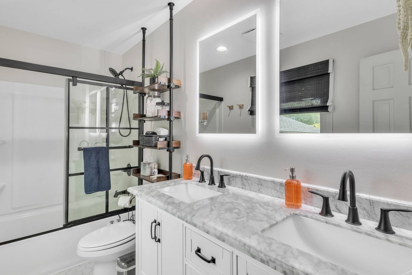There are 2 laundry rooms, and the downstairs feels like its own private suite!
