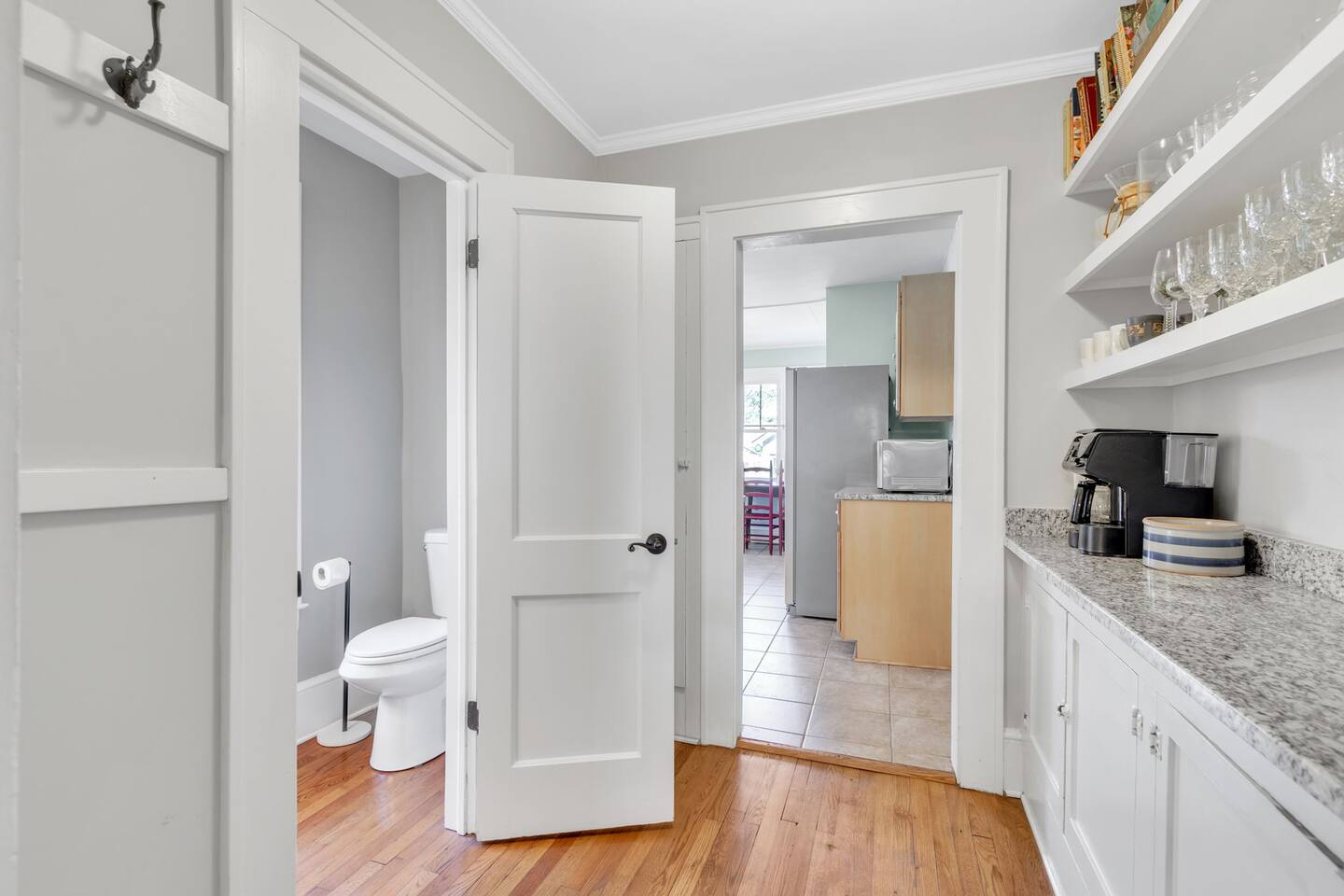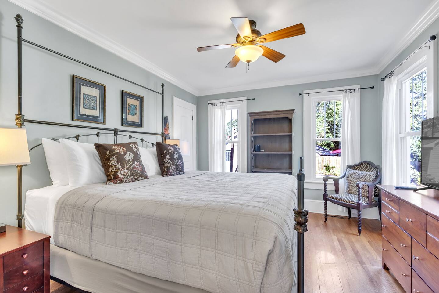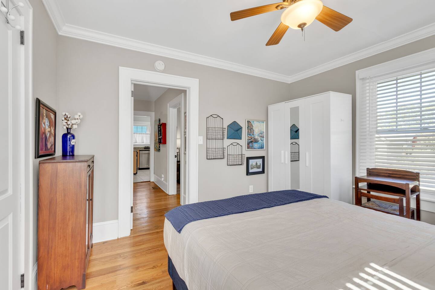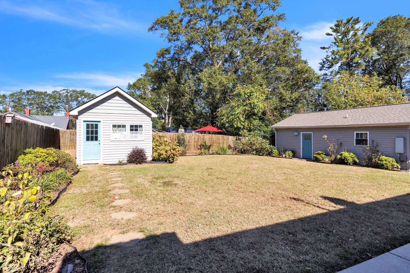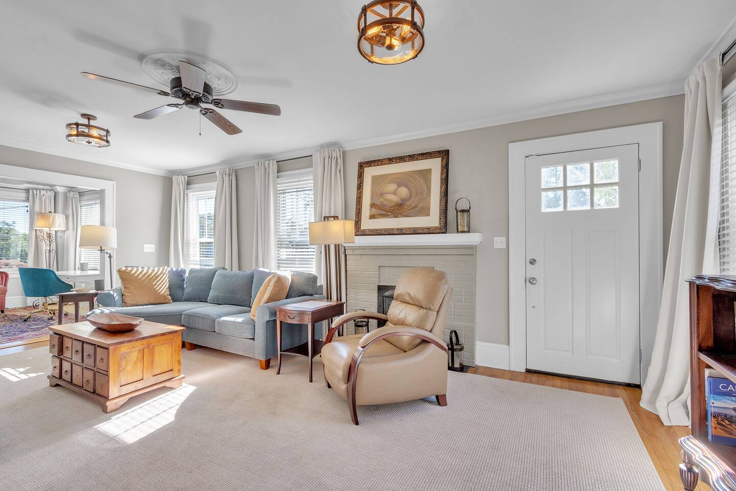 Welcome to your home away from home! This beautifully furnished 3-bedroom, 1.5-bathroom house offers the perfect blend of comfort and style, making it ideal for monthly stays (30-180 days) in the heart of Greenville, SC. Located just 1 mile from downtown Greenville, this home provides easy access to the best restaurants, shopping, and entertainment in the area. You'll also be conveniently close to other popular destinations, including downtown Travelers Rest (11 miles), Greenville-Spartanburg International Airport (12 miles), Paris Mountain State Park (9 miles), and Table Rock State Park (32 miles). This eclectic home features a spacious king bedroom and two cozy queen bedrooms, perfect for a comfortable stay. With a dedicated office space just off the living room, it's a great setup for remote work or study. The well-stocked kitchen has everything you need, including a dishwasher and essential cookware, making meal prep a breeze. It also features a charming butler’s pantry for extra storage and prep space. You'll also find a stackable washer and dryer in the home for added convenience. Step outside to enjoy the charming side porch adorned with string lights, an inviting space to relax in the evenings. The back porch features a dining table with a light-up umbrella, creating a perfect spot for outdoor meals or enjoying the fenced backyard, which is exclusively for your use. Please note that while the home sits on a property shared with a small ADU cottage, the cottage does not have access to the main house or the fenced yard. The pictured unit in the backyard is an art studio that is not accessible to guests. The decor throughout the house is a true highlight, featuring antique furniture and unique artwork created by the owner herself, giving the home an artistic and vibrant touch. The smart TV's in the living room and King bedroom allow guests to log in to their own streaming accounts (cable is not provided). The home also includes city trash service for your convenience, and while the fireplace in the living room adds charm to the space, it is decorative only and not functional. This one-story home is perfect for families, offering a pack 'n play, plenty of kids' toys, and a wide selection of books to keep everyone entertained. Its kid-friendly design makes it an ideal choice, especially since it's just 2 miles from the Greenville Zoo! With only one step to enter through the front door and three steps at the back, accessibility is a breeze. The house has dedicated parking on the left side of the wide driveway, accommodating up to three small to midsize cars, while the right side is reserved for the guests at the other cottage. The backyard is exclusively yours to enjoy unless the homeowners are in town. This home is pet-friendly, welcoming dogs (up to two) with a $250 pet fee, though cats are not allowed. The fenced yard provides a safe space for your pets to enjoy. For added privacy, we do not include exterior photos of the home due to the owner's preference. Located near major roads like Laurens Rd., Haywood Rd., and Woodruff Rd., you'll have quick access to a variety of restaurants, shops, and outdoor attractions. With all utilities and lawn care included in the monthly rent, this house offers everything you need for a comfortable, convenient, and stylish monthly stay in Greenville. Book your stay today and experience this one-of-a-kind artistic retreat in a prime location!