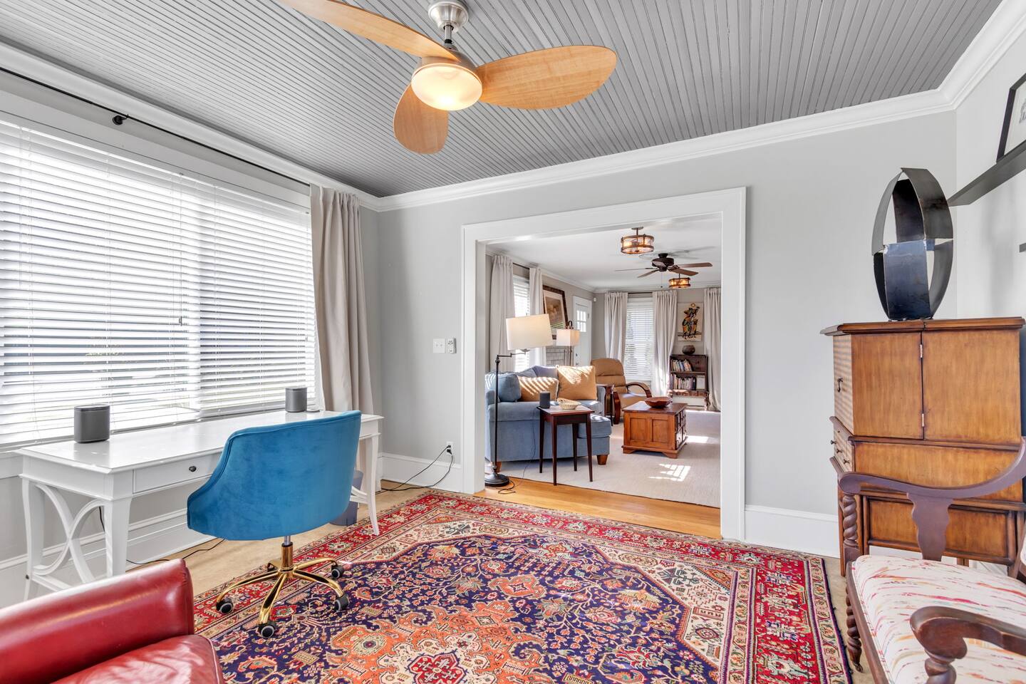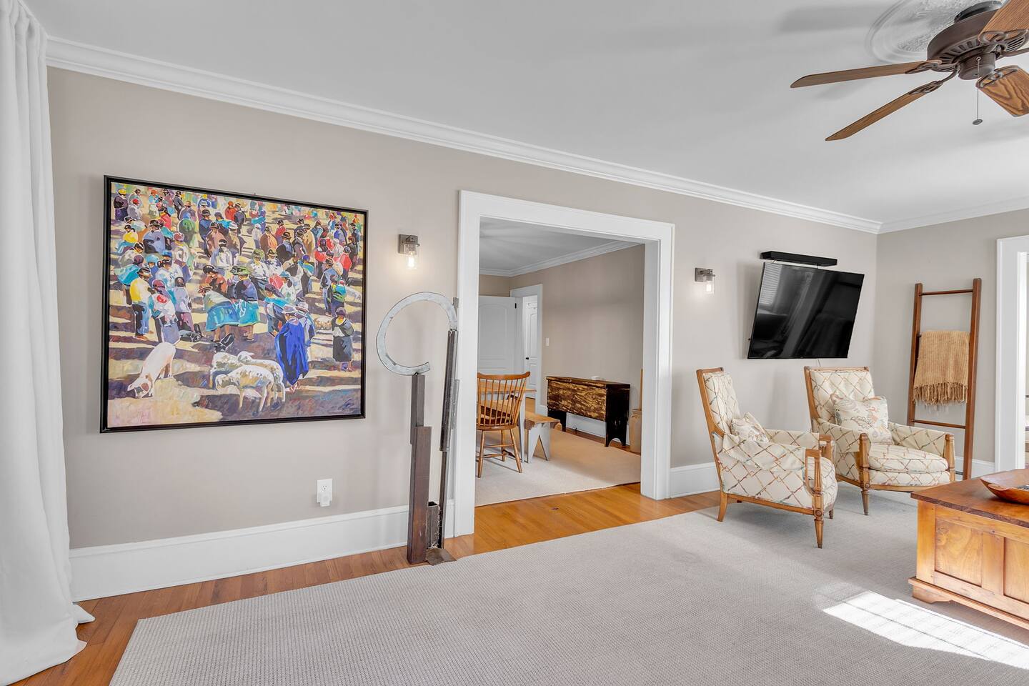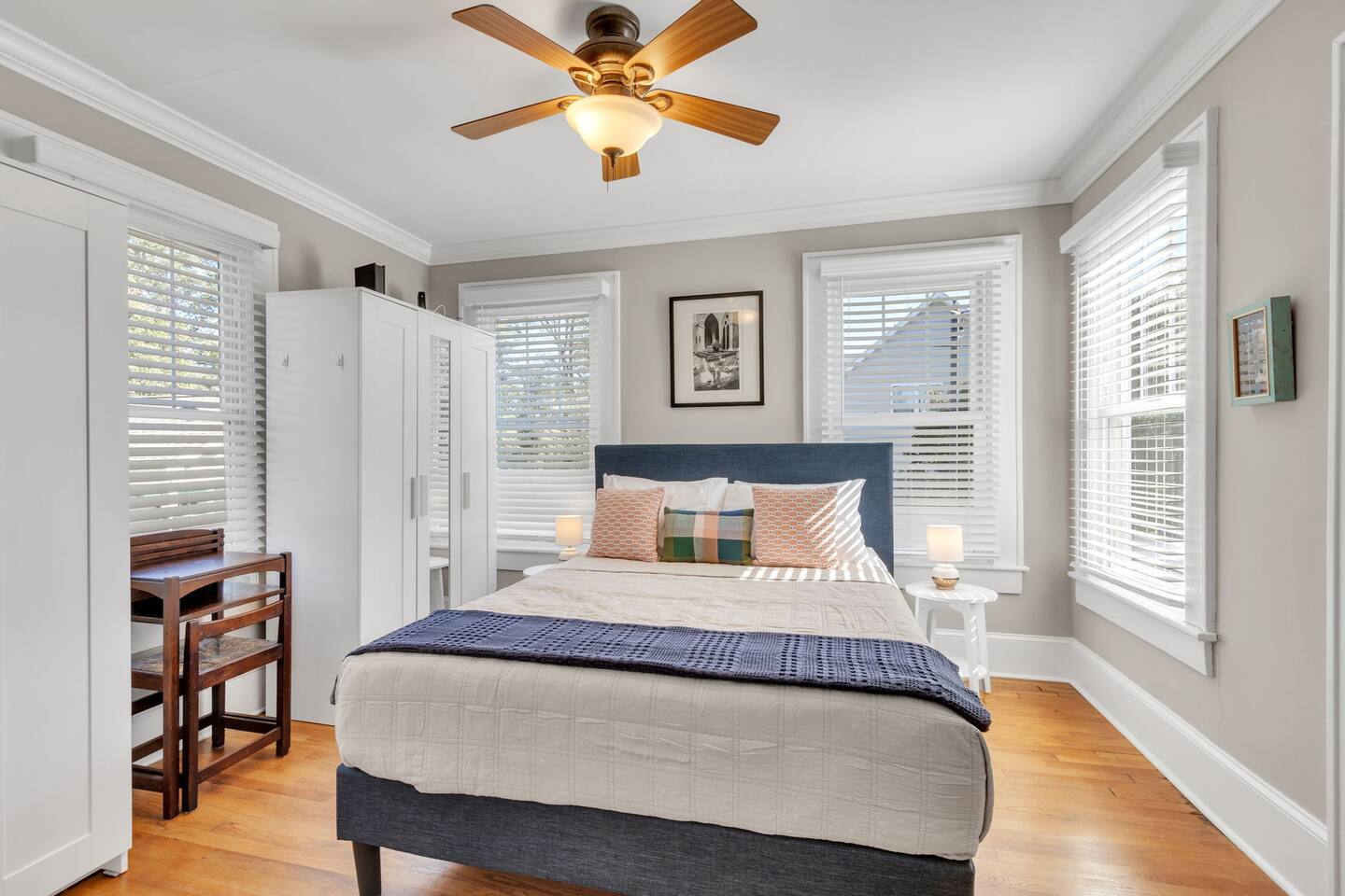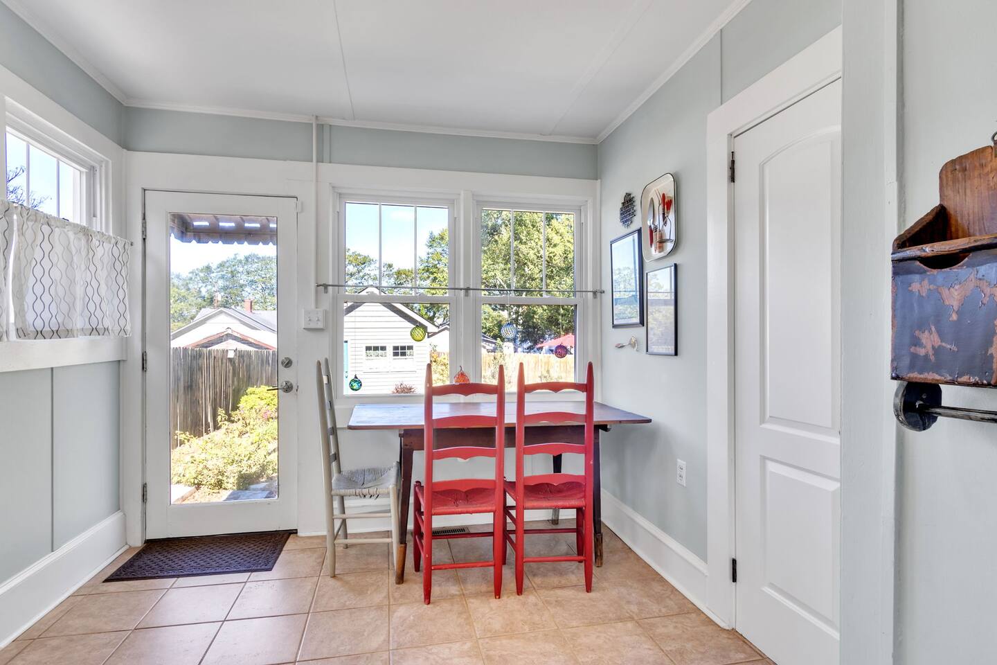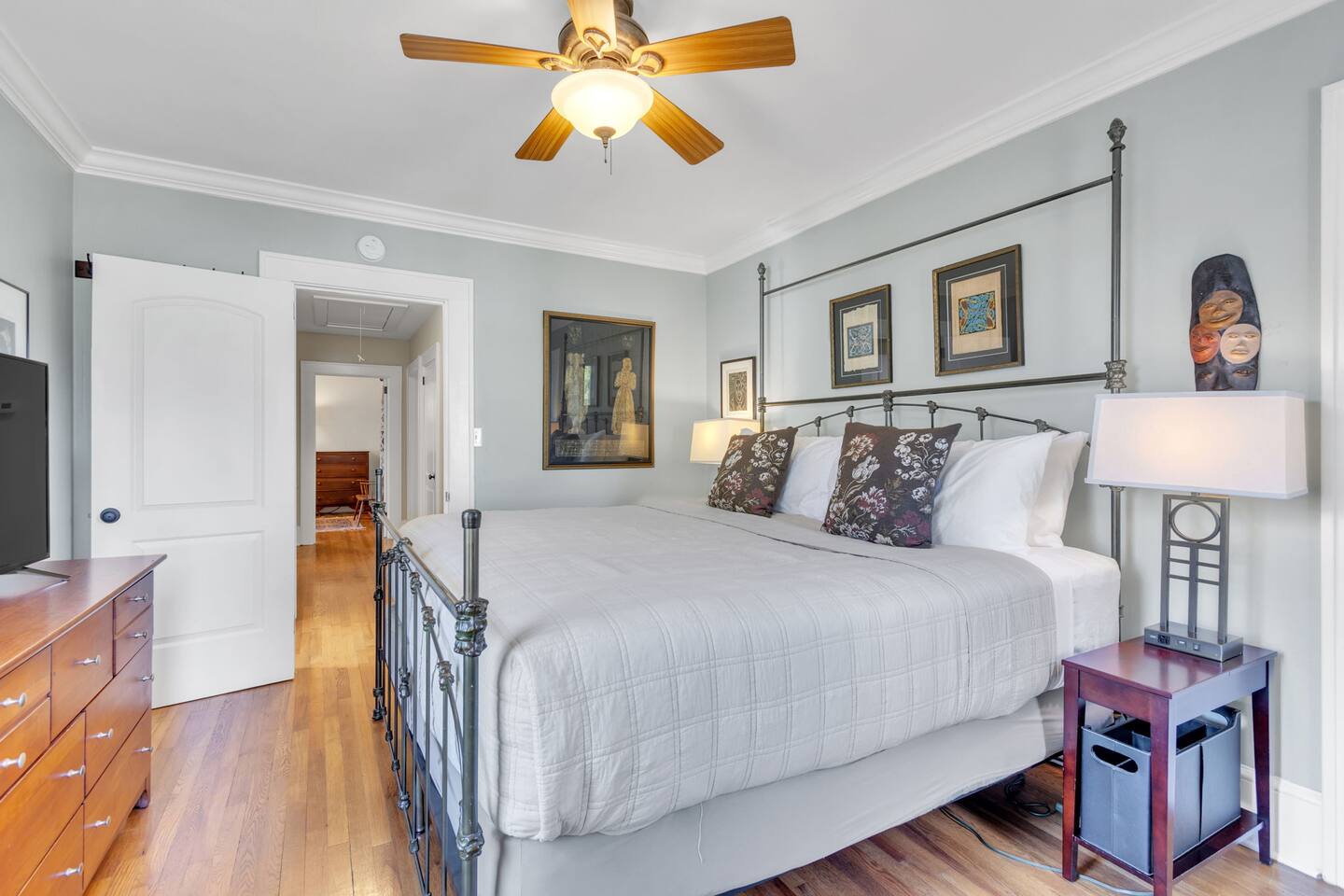 Welcome to your home away from home! This beautifully furnished 3-bedroom, 1.5-bathroom house offers the perfect blend of comfort and style, making it ideal for monthly stays (30-180 days) in the heart of Greenville, SC. Located just 1 mile from downtown Greenville, this home provides easy access to the best restaurants, shopping, and entertainment in the area. You'll also be conveniently close to other popular destinations, including downtown Travelers Rest (11 miles), Greenville-Spartanburg International Airport (12 miles), Paris Mountain State Park (9 miles), and Table Rock State Park (32 miles). This eclectic home features a spacious king bedroom and two cozy queen bedrooms, perfect for a comfortable stay. With a dedicated office space just off the living room, it's a great setup for remote work or study. The well-stocked kitchen has everything you need, including a dishwasher and essential cookware, making meal prep a breeze. It also features a charming butler’s pantry for extra storage and prep space. You'll also find a stackable washer and dryer in the home for added convenience. Step outside to enjoy the charming side porch adorned with string lights, an inviting space to relax in the evenings. The back porch features a dining table with a light-up umbrella, creating a perfect spot for outdoor meals or enjoying the fenced backyard, which is exclusively for your use. Please note that while the home sits on a property shared with a small ADU cottage, the cottage does not have access to the main house or the fenced yard. The pictured unit in the backyard is an art studio that is not accessible to guests. The decor throughout the house is a true highlight, featuring antique furniture and unique artwork created by the owner herself, giving the home an artistic and vibrant touch. The smart TV's in the living room and King bedroom allow guests to log in to their own streaming accounts (cable is not provided). The home also includes city trash service for your convenience, and while the fireplace in the living room adds charm to the space, it is decorative only and not functional. This one-story home is perfect for families, offering a pack 'n play, plenty of kids' toys, and a wide selection of books to keep everyone entertained. Its kid-friendly design makes it an ideal choice, especially since it's just 2 miles from the Greenville Zoo! With only one step to enter through the front door and three steps at the back, accessibility is a breeze. The house has dedicated parking on the left side of the wide driveway, accommodating up to three small to midsize cars, while the right side is reserved for the guests at the other cottage. The backyard is exclusively yours to enjoy unless the homeowners are in town. This home is pet-friendly, welcoming dogs (up to two) with a $250 pet fee, though cats are not allowed. The fenced yard provides a safe space for your pets to enjoy. For added privacy, we do not include exterior photos of the home due to the owner's preference. Located near major roads like Laurens Rd., Haywood Rd., and Woodruff Rd., you'll have quick access to a variety of restaurants, shops, and outdoor attractions. With all utilities and lawn care included in the monthly rent, this house offers everything you need for a comfortable, convenient, and stylish monthly stay in Greenville. Book your stay today and experience this one-of-a-kind artistic retreat in a prime location!
