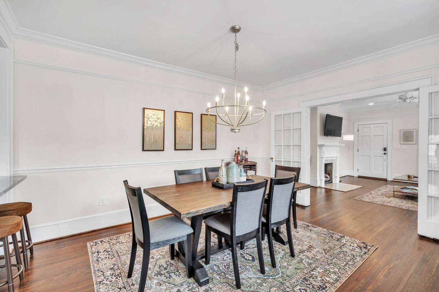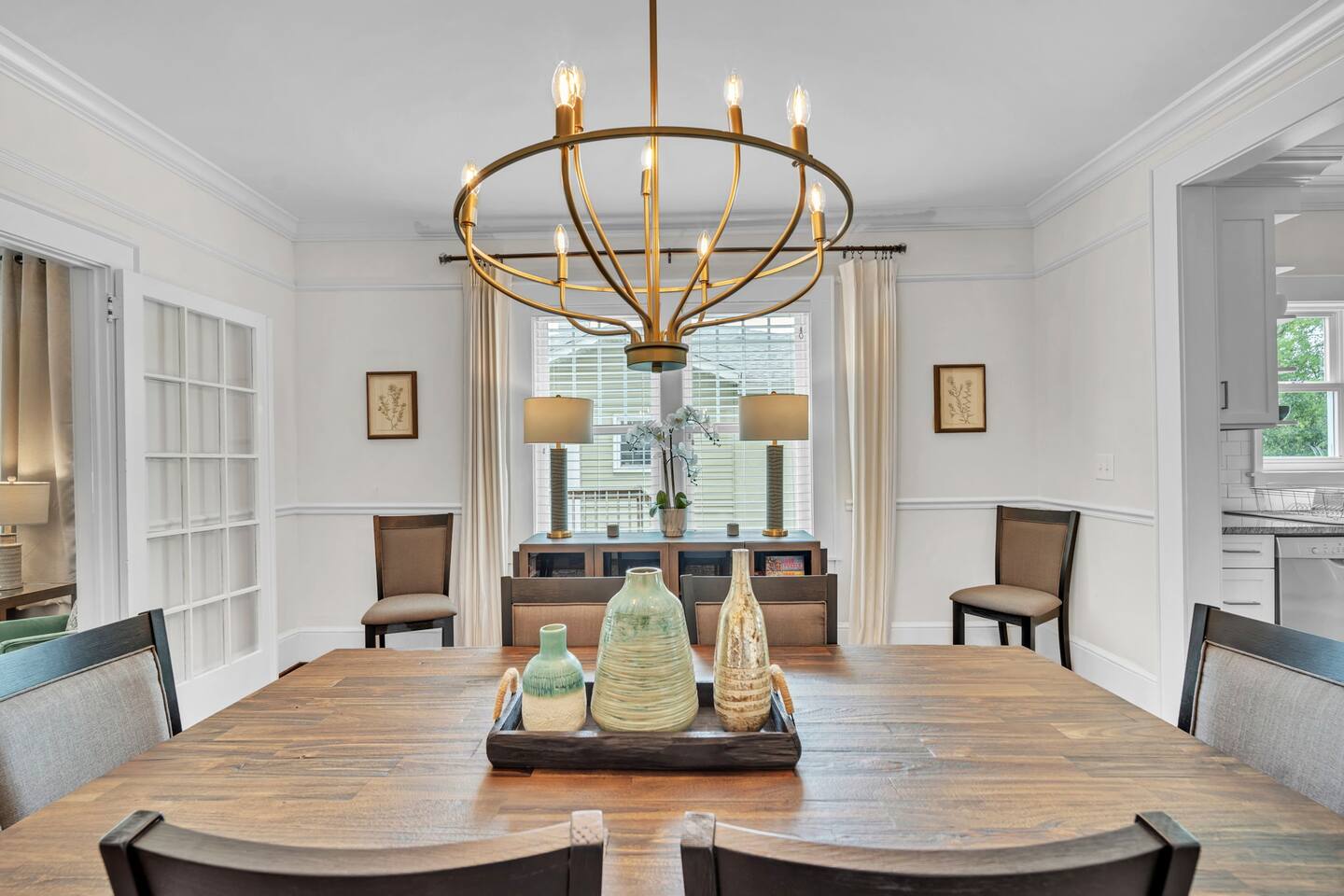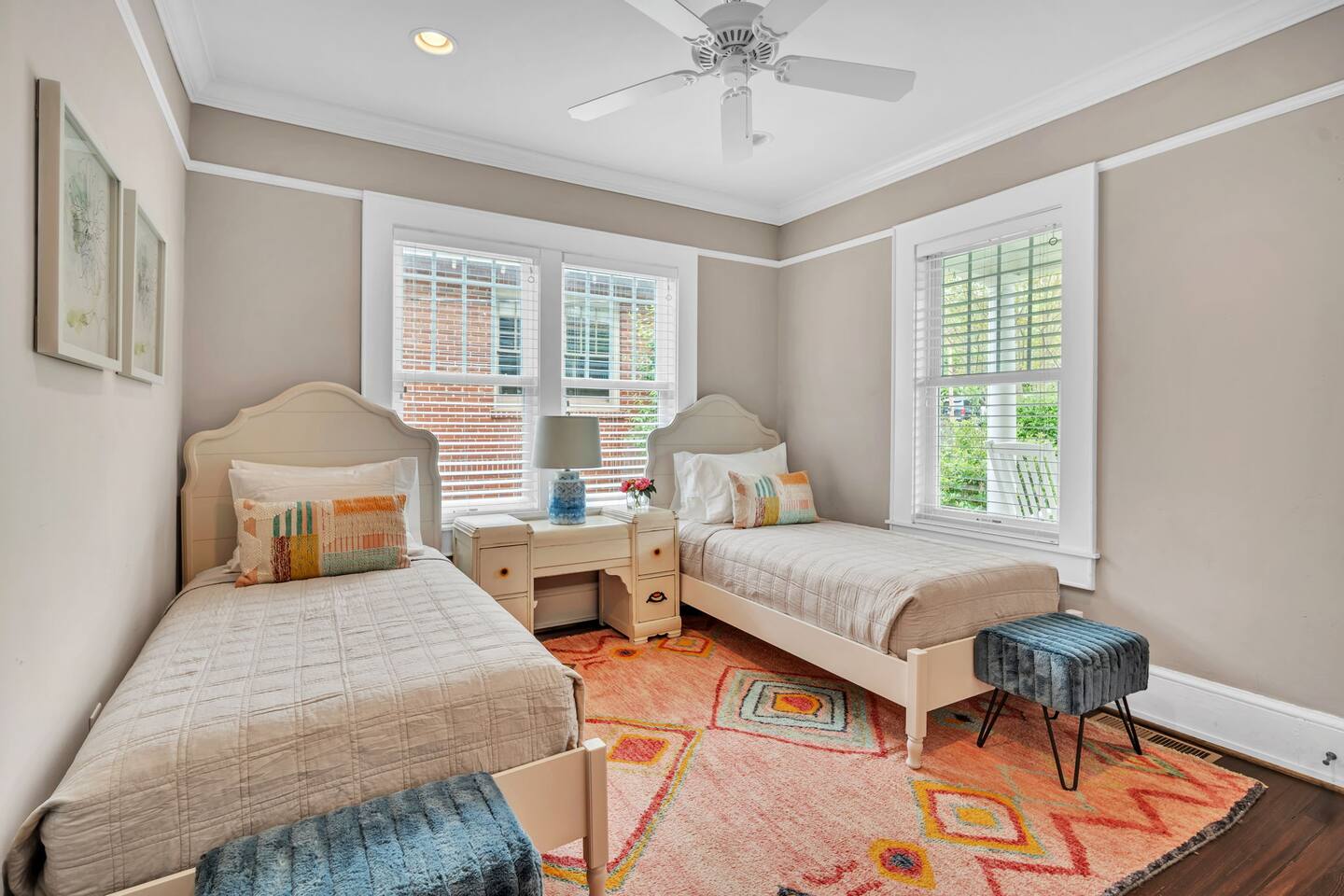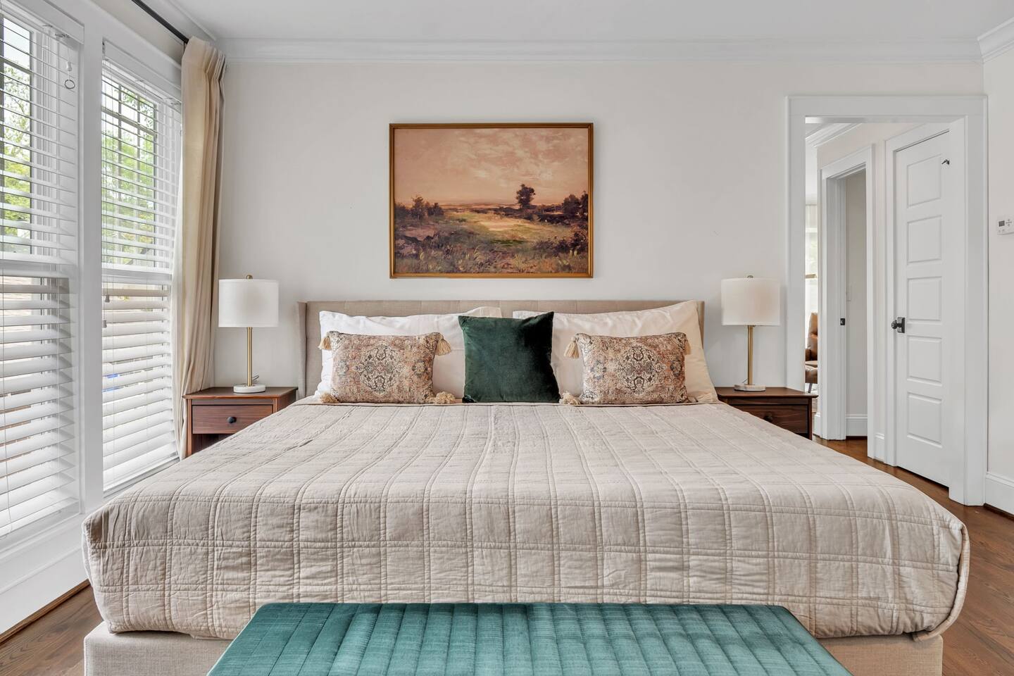 Experience luxury living at its finest at Augusta Place- a stunning 4 bedroom, 3 bathroom home in Greenville, South Carolina. This beautifully designed and tastefully decorated home boasts an elegant and sophisticated style that will take your breath away. As you step inside, you'll be greeted by a spacious and open living room featuring a smart tv (Roku), luxurious furnishings, and a cozy fireplace. The updated kitchen is a chef's dream, with stainless steel appliances, a double oven, modern cabinetry, and beautiful granite countertops. Whether you're entertaining guests or simply enjoying a quiet night at home, this kitchen has everything you need to prepare meals with ease. Our dining room includes space for 6, and additional seating is available at the bar. The bedrooms in this home are equally impressive, with two queen bedrooms, a kid-friendly bedroom with two twin beds, and a primary suite featuring a king bed, a cozy reading nook, and a luxurious en-suite bathroom with a spacious walk-in shower and a large soaking tub. Each bedroom is thoughtfully decorated with elegant furnishings and luxurious linens to ensure a comfortable and relaxing stay. The twin and queen bedroom downstairs share a full bathroom with a single vanity, toilet, and tub and shower. Both the primary suite and upstairs queen bedroom have their own en-suite bathrooms. We also offer complimentary towels in each bathroom! Upstairs is the full-sized laundry room, with a washer and dryer for your convenience. Step outside onto the beautiful screened-in porch and enjoy the lush greenery and serene surroundings of the backyard. The backyard provides a perfect space for outdoor relaxation and entertainment, with comfortable seating areas, beautiful landscaping, and a large, fully fenced yard which is perfect for pets, who are welcome with a $250 pet fee. This luxurious home is located in a highly sought-after, quiet and peaceful Augusta Road neighborhood, providing a perfect retreat from the hustle and bustle of everyday life. However, it's also conveniently located just a short drive away from all the amenities that Greenville has to offer, including shopping, dining, and entertainment. *Pets are welcome in our home with a one-time $250 fee that we will manually apply. Book your stay in this stunning luxury home today, and experience the ultimate in comfort, relaxation, and style during your visit to Greenville, South Carolina.