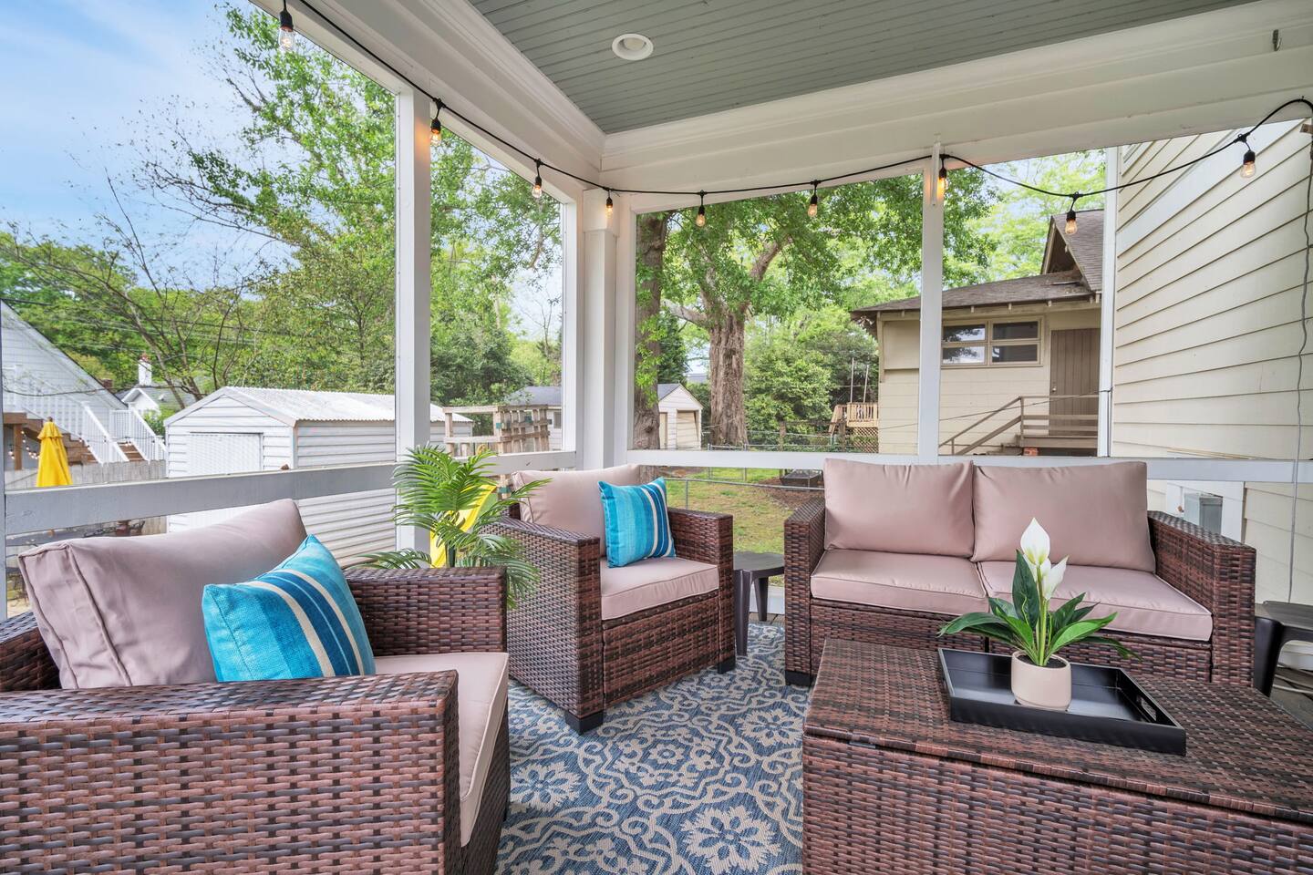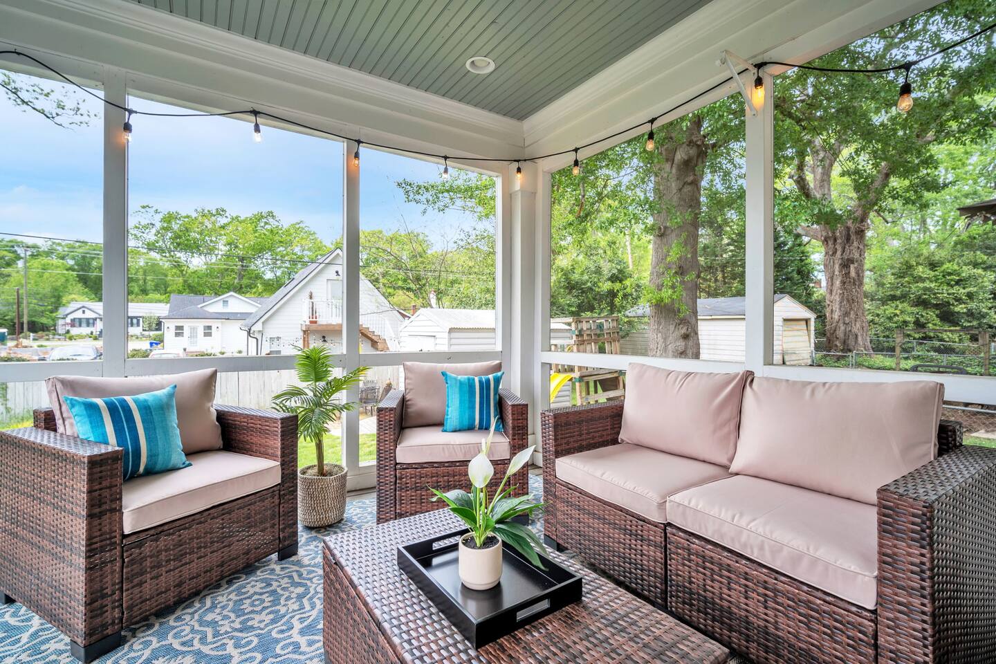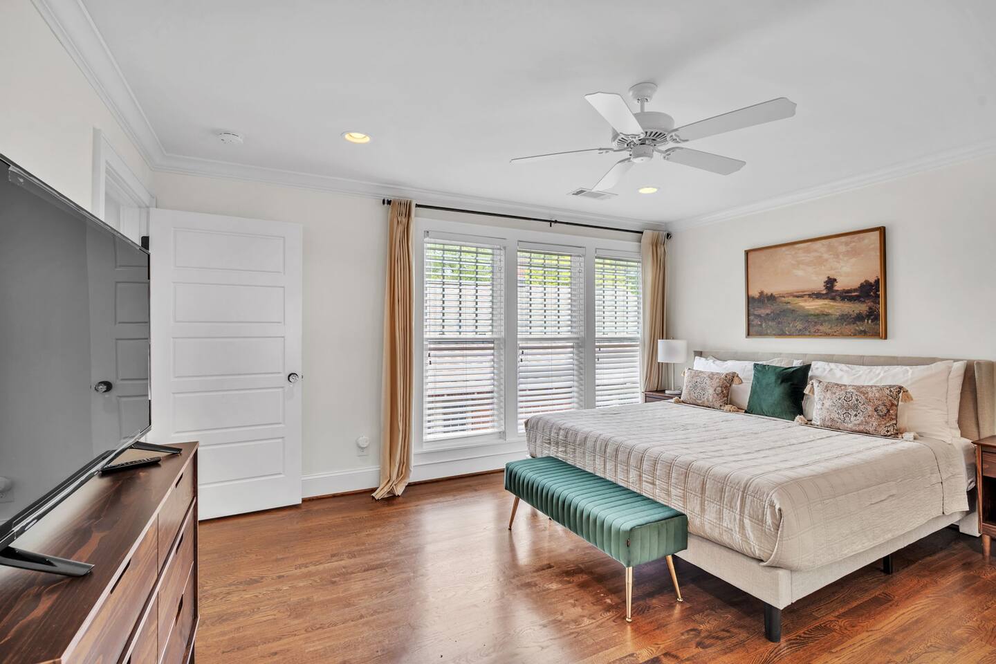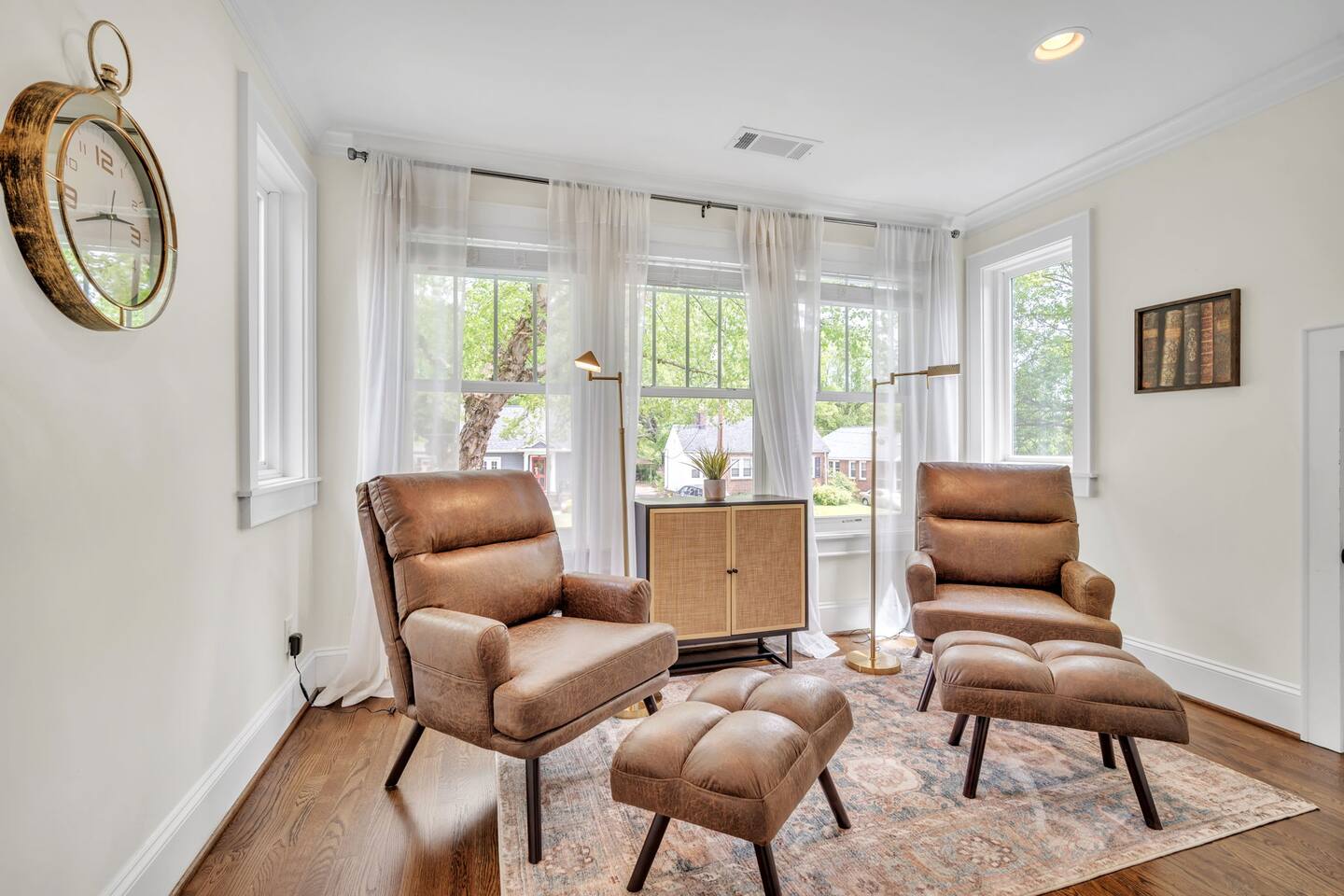 Experience luxury living at its finest at Augusta Place- a stunning 4 bedroom, 3 bathroom home in Greenville, South Carolina. This beautifully designed and tastefully decorated home boasts an elegant and sophisticated style that will take your breath away. As you step inside, you'll be greeted by a spacious and open living room featuring a smart tv (Roku), luxurious furnishings, and a cozy fireplace. The updated kitchen is a chef's dream, with stainless steel appliances, a double oven, modern cabinetry, and beautiful granite countertops. Whether you're entertaining guests or simply enjoying a quiet night at home, this kitchen has everything you need to prepare meals with ease. Our dining room includes space for 6, and additional seating is available at the bar. The bedrooms in this home are equally impressive, with two queen bedrooms, a kid-friendly bedroom with two twin beds, and a primary suite featuring a king bed, a cozy reading nook, and a luxurious en-suite bathroom with a spacious walk-in shower and a large soaking tub. Each bedroom is thoughtfully decorated with elegant furnishings and luxurious linens to ensure a comfortable and relaxing stay. The twin and queen bedroom downstairs share a full bathroom with a single vanity, toilet, and tub and shower. Both the primary suite and upstairs queen bedroom have their own en-suite bathrooms. We also offer complimentary towels in each bathroom! Upstairs is the full-sized laundry room, with a washer and dryer for your convenience. Step outside onto the beautiful screened-in porch and enjoy the lush greenery and serene surroundings of the backyard. The backyard provides a perfect space for outdoor relaxation and entertainment, with comfortable seating areas, beautiful landscaping, and a large, fully fenced yard which is perfect for pets, who are welcome with a $250 pet fee. This luxurious home is located in a highly sought-after, quiet and peaceful Augusta Road neighborhood, providing a perfect retreat from the hustle and bustle of everyday life. However, it's also conveniently located just a short drive away from all the amenities that Greenville has to offer, including shopping, dining, and entertainment. *Pets are welcome in our home with a one-time $250 fee that we will manually apply. Book your stay in this stunning luxury home today, and experience the ultimate in comfort, relaxation, and style during your visit to Greenville, South Carolina.