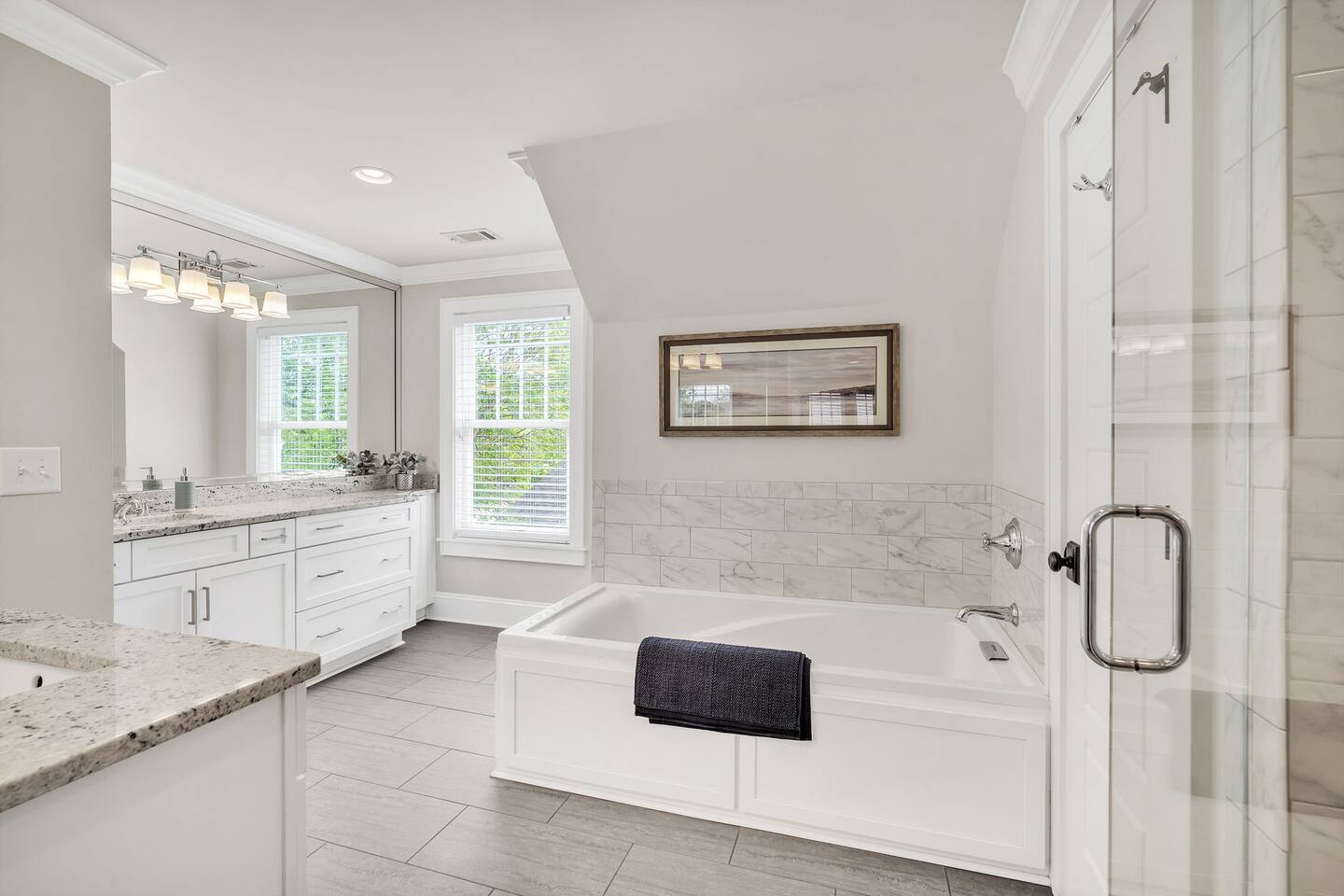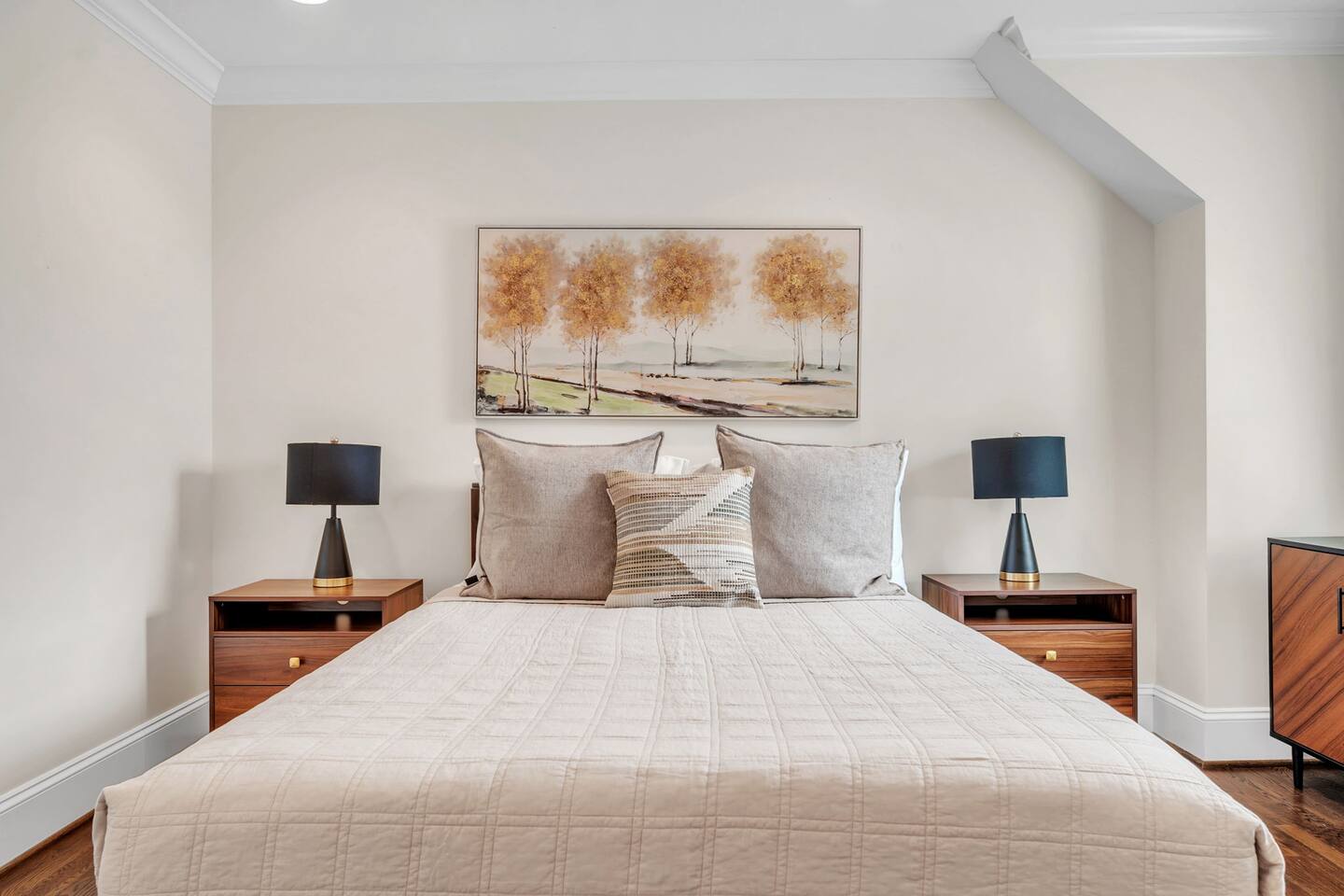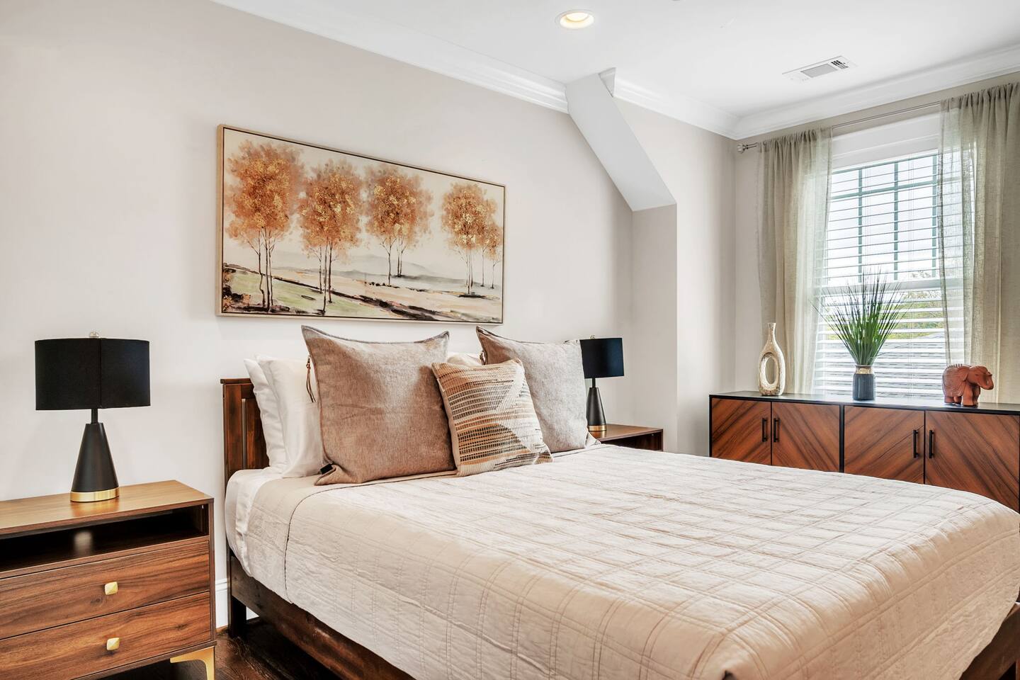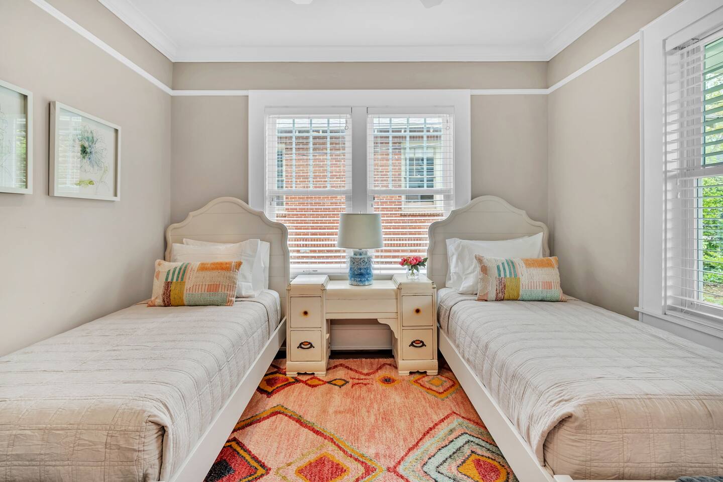 Experience luxury living at its finest at Augusta Place- a stunning 4 bedroom, 3 bathroom home in Greenville, South Carolina. This beautifully designed and tastefully decorated home boasts an elegant and sophisticated style that will take your breath away. As you step inside, you'll be greeted by a spacious and open living room featuring a smart tv (Roku), luxurious furnishings, and a cozy fireplace. The updated kitchen is a chef's dream, with stainless steel appliances, a double oven, modern cabinetry, and beautiful granite countertops. Whether you're entertaining guests or simply enjoying a quiet night at home, this kitchen has everything you need to prepare meals with ease. Our dining room includes space for 6, and additional seating is available at the bar. The bedrooms in this home are equally impressive, with two queen bedrooms, a kid-friendly bedroom with two twin beds, and a primary suite featuring a king bed, a cozy reading nook, and a luxurious en-suite bathroom with a spacious walk-in shower and a large soaking tub. Each bedroom is thoughtfully decorated with elegant furnishings and luxurious linens to ensure a comfortable and relaxing stay. The twin and queen bedroom downstairs share a full bathroom with a single vanity, toilet, and tub and shower. Both the primary suite and upstairs queen bedroom have their own en-suite bathrooms. We also offer complimentary towels in each bathroom! Upstairs is the full-sized laundry room, with a washer and dryer for your convenience. Step outside onto the beautiful screened-in porch and enjoy the lush greenery and serene surroundings of the backyard. The backyard provides a perfect space for outdoor relaxation and entertainment, with comfortable seating areas, beautiful landscaping, and a large, fully fenced yard which is perfect for pets, who are welcome with a $250 pet fee. This luxurious home is located in a highly sought-after, quiet and peaceful Augusta Road neighborhood, providing a perfect retreat from the hustle and bustle of everyday life. However, it's also conveniently located just a short drive away from all the amenities that Greenville has to offer, including shopping, dining, and entertainment. *Pets are welcome in our home with a one-time $250 fee that we will manually apply. Book your stay in this stunning luxury home today, and experience the ultimate in comfort, relaxation, and style during your visit to Greenville, South Carolina.