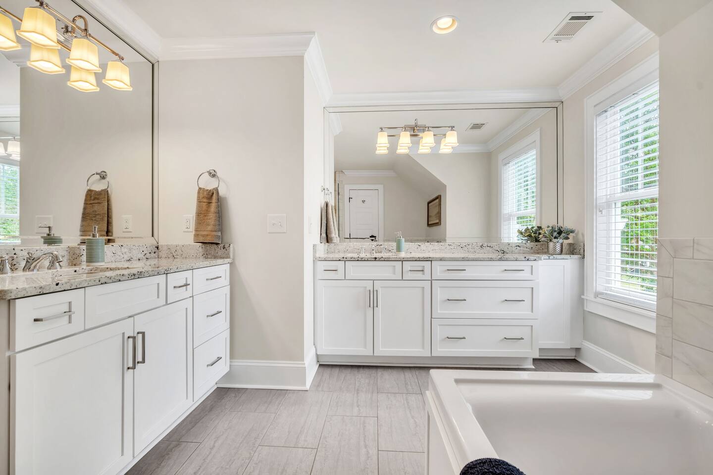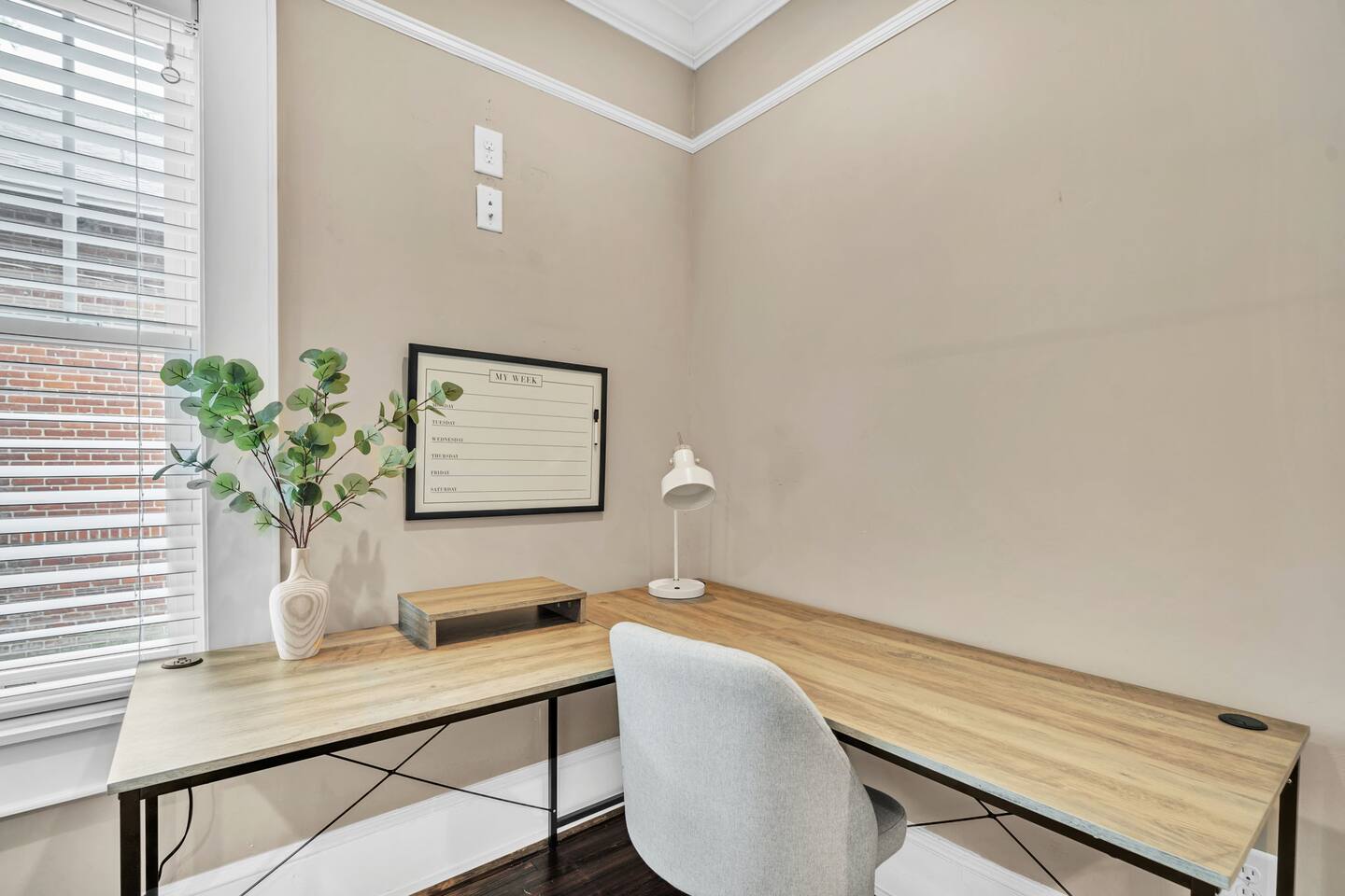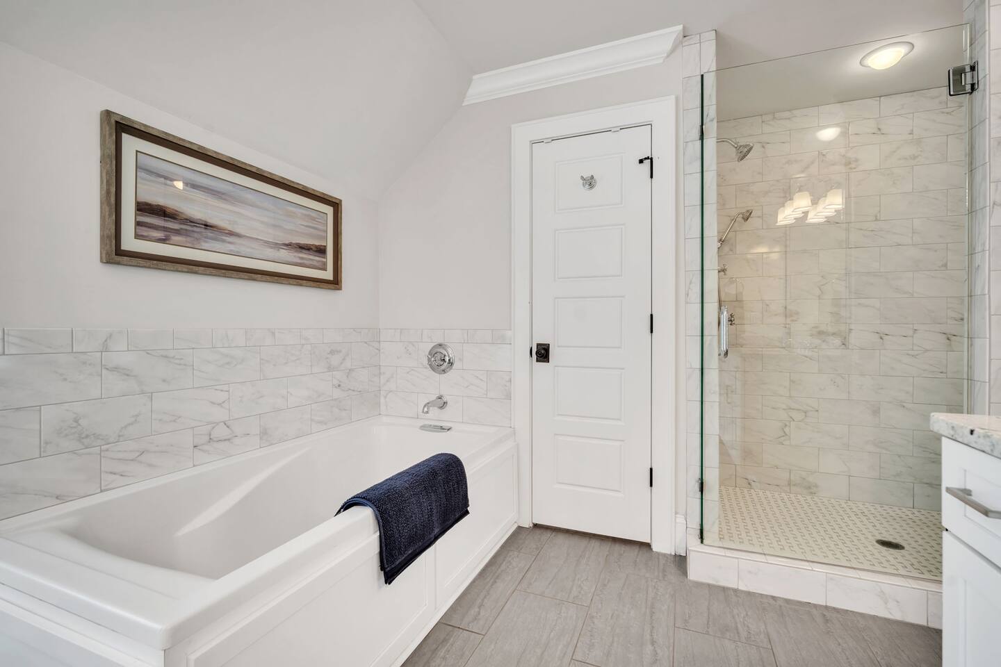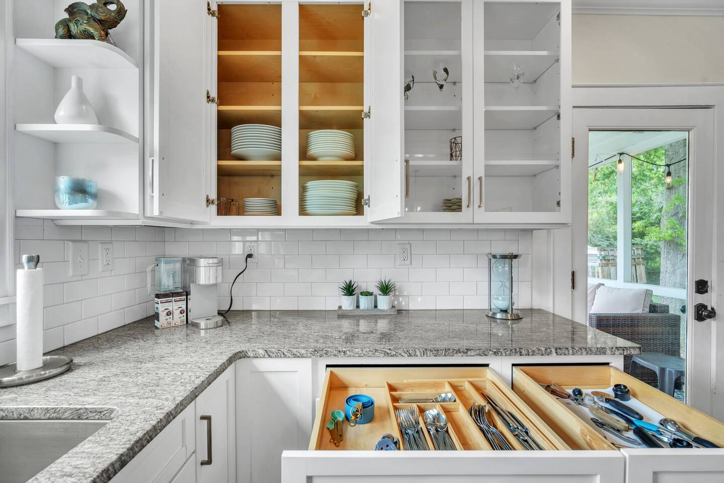 Experience luxury living at its finest at Augusta Place- a stunning 4 bedroom, 3 bathroom home in Greenville, South Carolina. This beautifully designed and tastefully decorated home boasts an elegant and sophisticated style that will take your breath away. As you step inside, you'll be greeted by a spacious and open living room featuring a smart tv (Roku), luxurious furnishings, and a cozy fireplace. The updated kitchen is a chef's dream, with stainless steel appliances, a double oven, modern cabinetry, and beautiful granite countertops. Whether you're entertaining guests or simply enjoying a quiet night at home, this kitchen has everything you need to prepare meals with ease. Our dining room includes space for 6, and additional seating is available at the bar. The bedrooms in this home are equally impressive, with two queen bedrooms, a kid-friendly bedroom with two twin beds, and a primary suite featuring a king bed, a cozy reading nook, and a luxurious en-suite bathroom with a spacious walk-in shower and a large soaking tub. Each bedroom is thoughtfully decorated with elegant furnishings and luxurious linens to ensure a comfortable and relaxing stay. The twin and queen bedroom downstairs share a full bathroom with a single vanity, toilet, and tub and shower. Both the primary suite and upstairs queen bedroom have their own en-suite bathrooms. We also offer complimentary towels in each bathroom! Upstairs is the full-sized laundry room, with a washer and dryer for your convenience. Step outside onto the beautiful screened-in porch and enjoy the lush greenery and serene surroundings of the backyard. The backyard provides a perfect space for outdoor relaxation and entertainment, with comfortable seating areas, beautiful landscaping, and a large, fully fenced yard which is perfect for pets, who are welcome with a $250 pet fee. This luxurious home is located in a highly sought-after, quiet and peaceful Augusta Road neighborhood, providing a perfect retreat from the hustle and bustle of everyday life. However, it's also conveniently located just a short drive away from all the amenities that Greenville has to offer, including shopping, dining, and entertainment. *Pets are welcome in our home with a one-time $250 fee that we will manually apply. Book your stay in this stunning luxury home today, and experience the ultimate in comfort, relaxation, and style during your visit to Greenville, South Carolina.