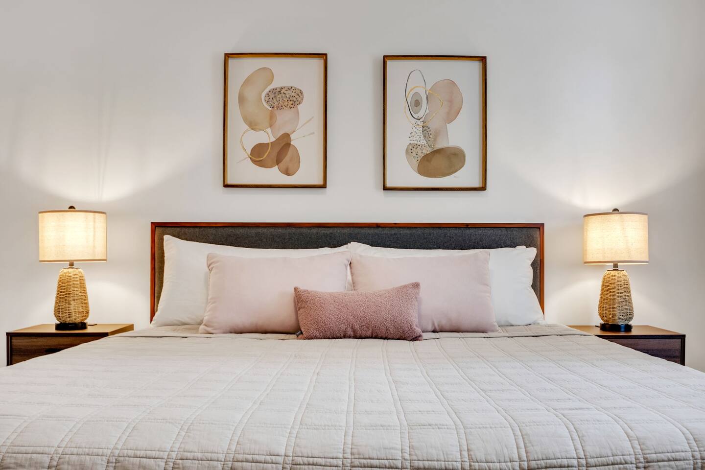 Discover Beverly North, a modern and warm 2BR/2BA upstairs condo in Greer, offering the ultimate blend of comfort and style. Please note that guests must be able to climb stairs. Enjoy 2 designated parking spaces and step into the open concept living area, featuring a fully stocked kitchen with all the essentials for your culinary creations. Dine at the spacious table with seating for 6, or relax in the inviting living room, furnished with a couch, armchairs, and a smart TV for streaming (no cable). Retire to the master suite, complete with a King bed, 2 nightstands, reading lamps, a closet, and an en suite bathroom with double vanities. Catch up on your favorite shows on the smart TV (no cable, you can log in to your streaming accounts). The second bedroom also offers a King bed, nightstands, reading lamps, and a closet, perfect for unwinding after a long day. A full bathroom is conveniently situated off the living area. Step outside to the shared patio and gather around the fire pit with cozy seating. Enjoy the upstairs location and stay connected with high-speed WiFi during your stay. Book Beverly North for an unforgettable Greer experience, keeping in mind the need to climb stairs to access this charming retreat. *We are pet friendly with a one time nonrefundable fee, which is automatically applied when you add your pet as a guest during booking.