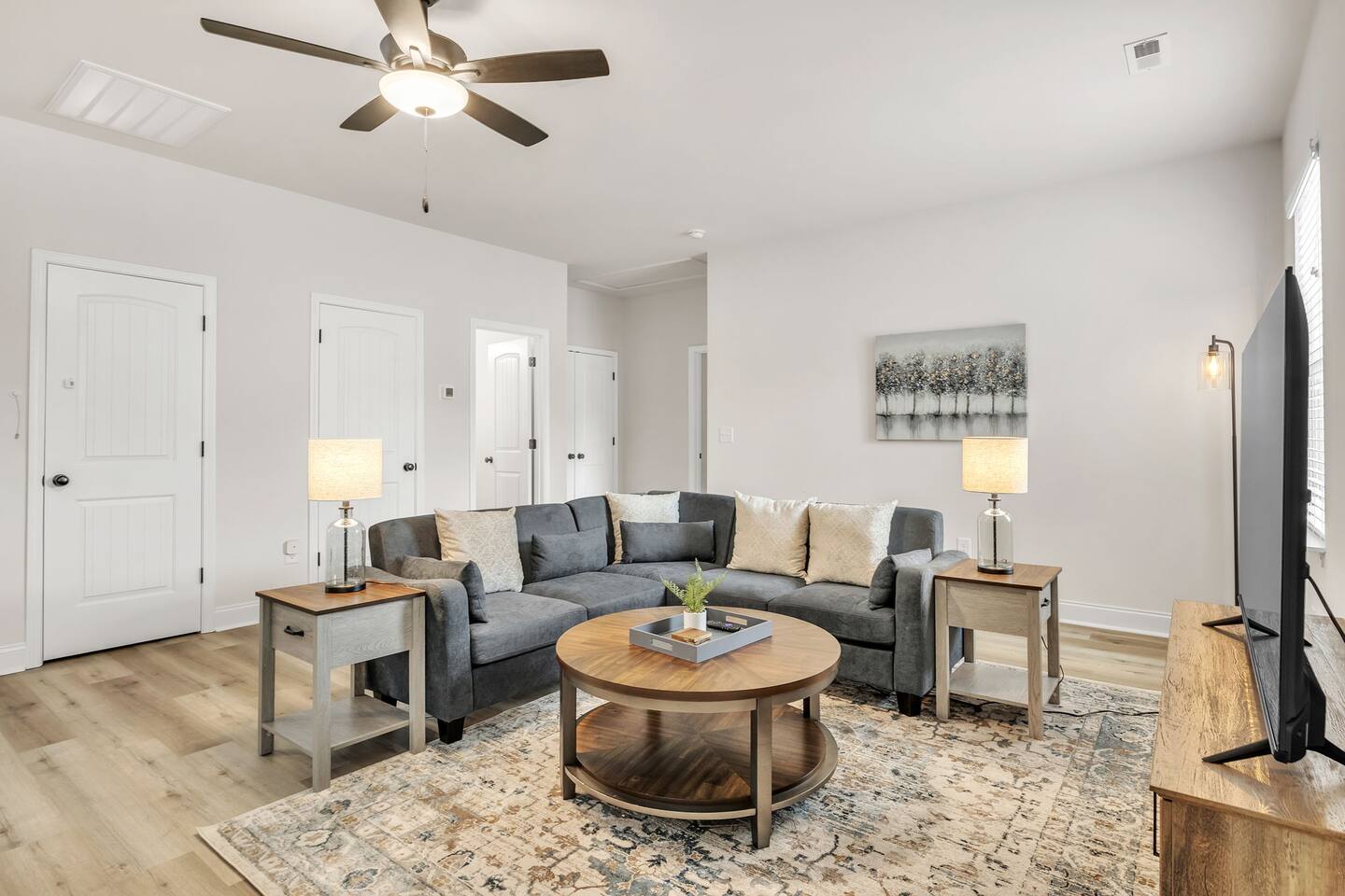 Welcome to the Beverly Place retreat, located just 1 mile from Downtown Greer! Rent the entire 4-unit property, offering 8 spacious bedrooms & 8 bathrooms. Accommodating up to 16 guests, it's ideal for reunions, weddings, or any event. Each unit features 2 bedrooms, 2 baths, stylish decor, and premium amenities. Enjoy the 8 dedicated parking spaces. Unwind in the serene patio area, boasting a cozy fire pit for evenings under the stars. Experience an unforgettable stay at Beverly Place.