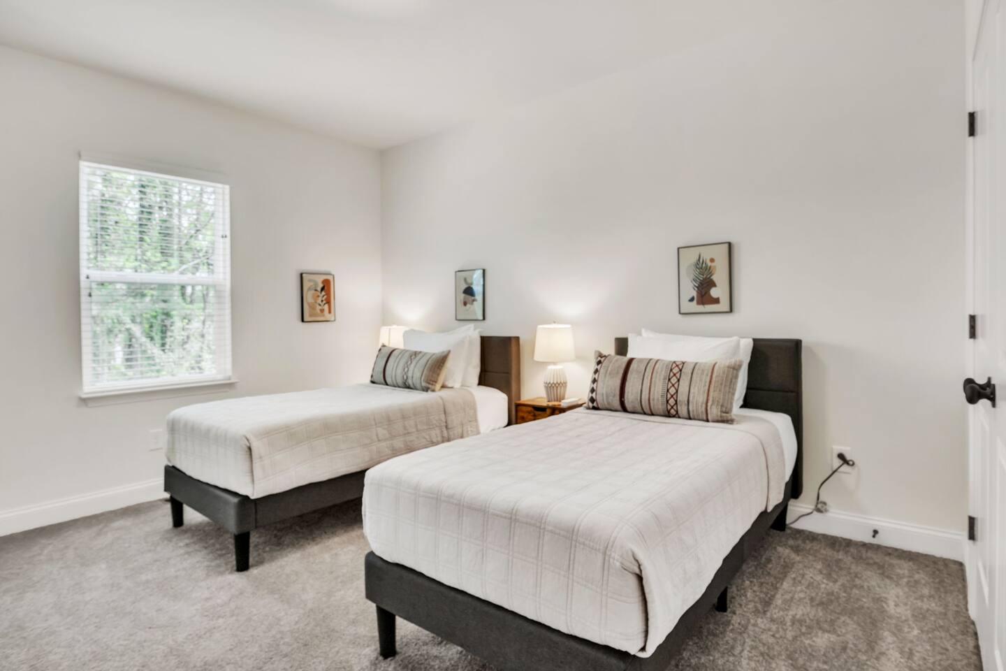 Welcome to Beverly South, a stylish and comfortable 2-bedroom, 2-bathroom Airbnb retreat located in the picturesque town of Greer. With its warm and neutral decor, this single-level condo offers the perfect blend of elegance and coziness for an unforgettable stay. Upon arrival, you'll find two designated parking spaces conveniently situated right in front of the home. Enter through the front doors to discover a welcoming open-concept living area, perfect for relaxation and entertainment. The fully stocked kitchen boasts everything you need to create a culinary masterpiece, including pans, dishes, spices, and more. Enjoy your meals at the dining table, which comfortably seats six, making it an ideal spot for family dinners or friendly gatherings. Unwind in the spacious living room, featuring a plush sofa, two armchairs, and a smart TV for your enjoyment. While cable is not provided, you can log into your favorite streaming services to catch up on the latest shows and movies. Retreat to the master suite, complete with a luxurious king bed, two nightstands, reading lamps, a closet, and an en-suite bathroom with double vanities. This bedroom also offers a smart TV for streaming, ensuring a relaxing end to your day. The second bedroom provides a versatile sleeping arrangement with two twin beds, nightstands, and reading lamps, as well as a closet for your belongings. An additional full bathroom, located off the living area, adds convenience for guests. Step outside to the shared patio, where you can gather around the fire pit, surrounded by comfortable chairs. This inviting outdoor space is perfect for spending quality time with friends and family under the stars. Enjoy the convenience of high-speed Wi-Fi throughout the property during your stay. As a downstairs condo, Beverly South offers easy accessibility and a single-level layout for your comfort. * Pets are welcome in our home with a one-time fee, automatically applied when you add your pet as a guest during booking Experience the ultimate home-away-from-home at Beverly South – your perfect Greer getaway. Reserve your stay today!