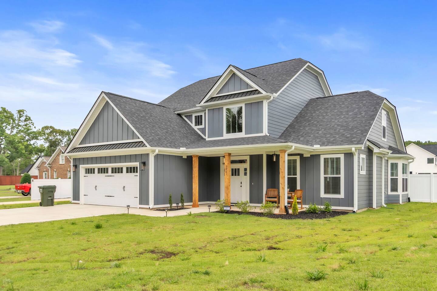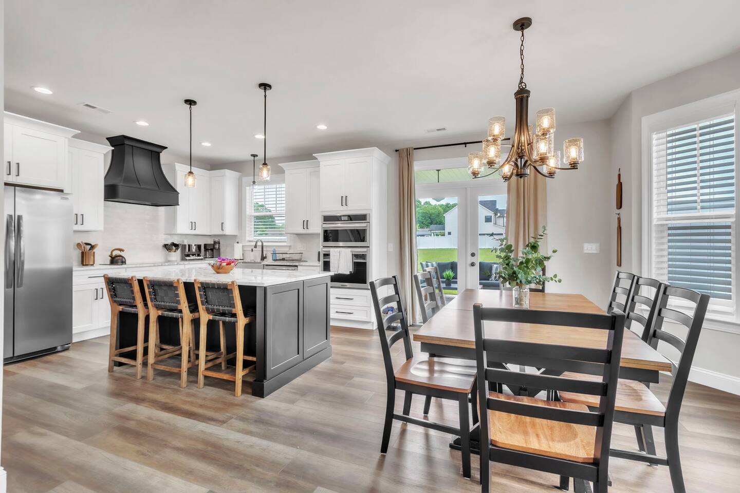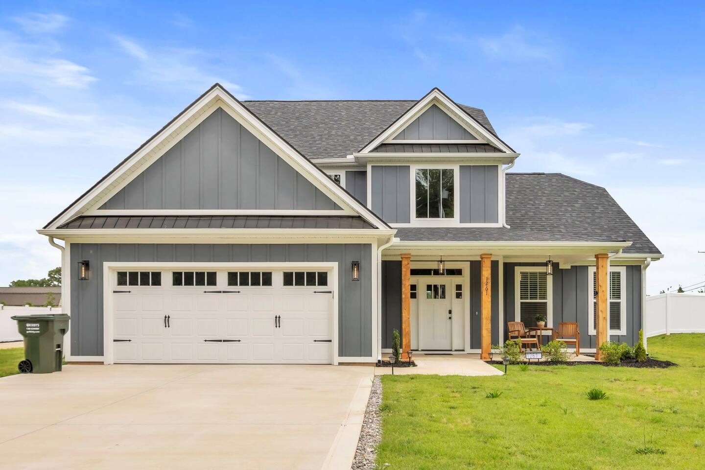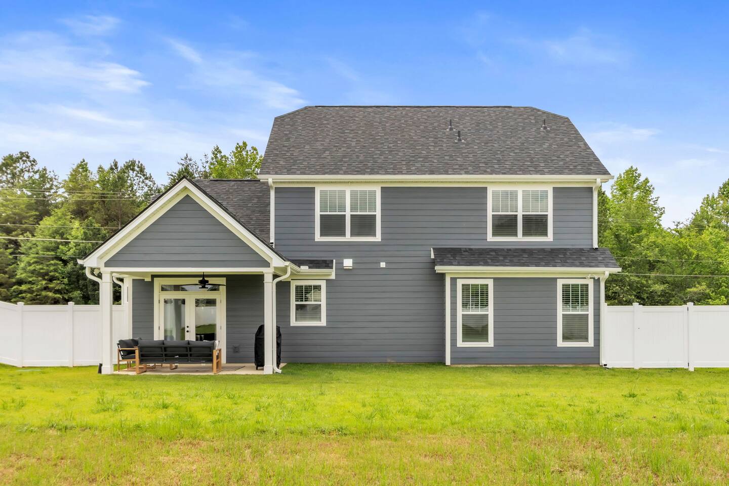 Welcome to your Greer getaway—where stylish design, spacious comfort, and a central location come together to create the perfect retreat for your next getaway. This beautifully decorated 4-bedroom, 2.5-bath home sleeps ten and offers thoughtful touches throughout, from its elevated finishes to its inviting layout. Conveniently located just 20 minutes from Downtown Greenville, 10 minutes from Downtown Greer, and minutes from several popular wedding venues, outdoor attractions, and breweries, this home puts you in the perfect spot to explore everything the area has to offer. Specifically, we are located: - 7 minutes from Aurora Farms - 7 minutes from Edinburgh West - 10 minutes from The Davenport - 12 minutes from The School House Venue Once you arrive, step inside and be greeted by an open-concept living area filled with natural light, LVP flooring throughout, and a cozy fireplace at the center of it all. The main living room is anchored by a plush sectional and sleek furnishings, creating the perfect space to relax, gather, or unwind after a day exploring the Upstate. The kitchen is a dream to cook in, featuring a large island, quartz countertops, a farmhouse sink, and modern appliances including an induction cooktop, a wall oven, a convection microwave, and a dishwasher. Whether you're preparing a full dinner or just brewing your morning coffee, you'll have everything you need at your fingertips. The adjacent dining area offers seating for your whole group to eat, work, or plan your next adventure. The primary bedroom, located on the main floor for added privacy, features a king bed, double nightstands with lamps, a dresser, and a smart TV (no cable; streaming services only, using your personal logins). The en-suite bathroom features a walk-in shower, a separate soaking tub, and a double vanity. Upstairs, you'll find three more bedrooms with Smart TVs (no cable, streaming-only)—two with king beds and one with two queen beds—each decorated with comfort and style in mind. There's also a bonus loft living area with an additional sectional sofa and TV, providing everyone with room to spread out and relax. However, one of the best features of this home is what awaits outside: a huge, fully fenced backyard that offers space to roam, relax, or let pets play freely. The covered patio features a lounge area and grill, perfect for cozy evenings under the stars. There's also a covered front porch with rocking chairs, perfect for enjoying your morning coffee or evening wine. Whether you're here for a weekend event, visiting family, or simply seeking a stylish home base, this centrally located property offers space, style, and Southern charm. Pets are welcome with a fee.