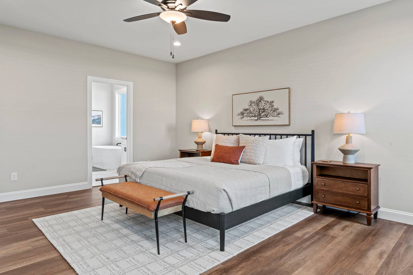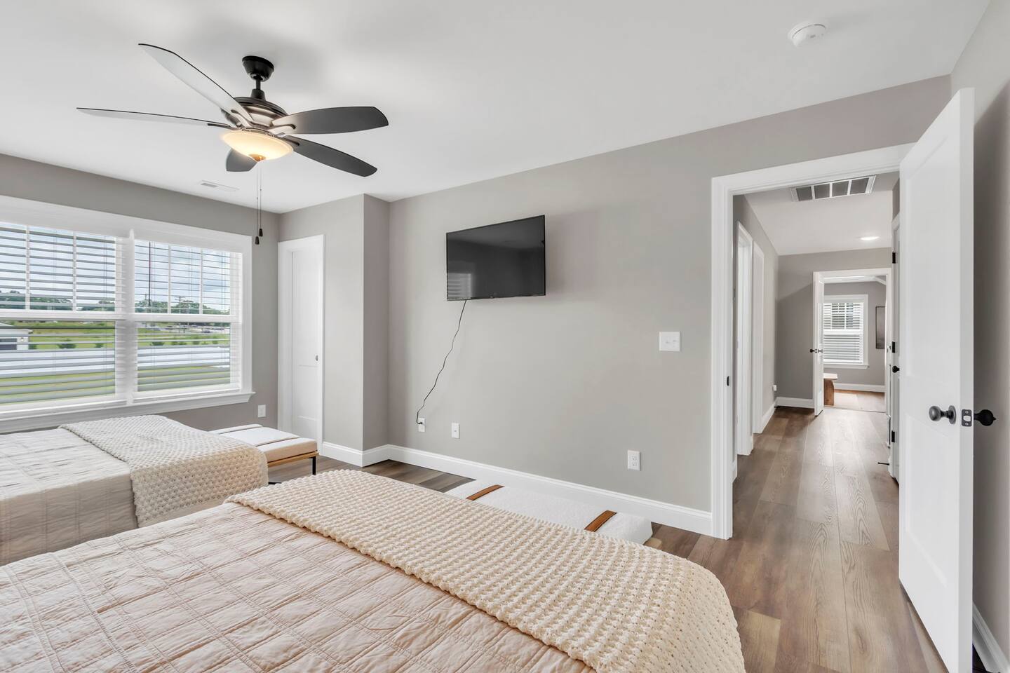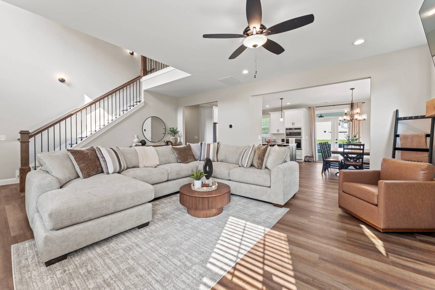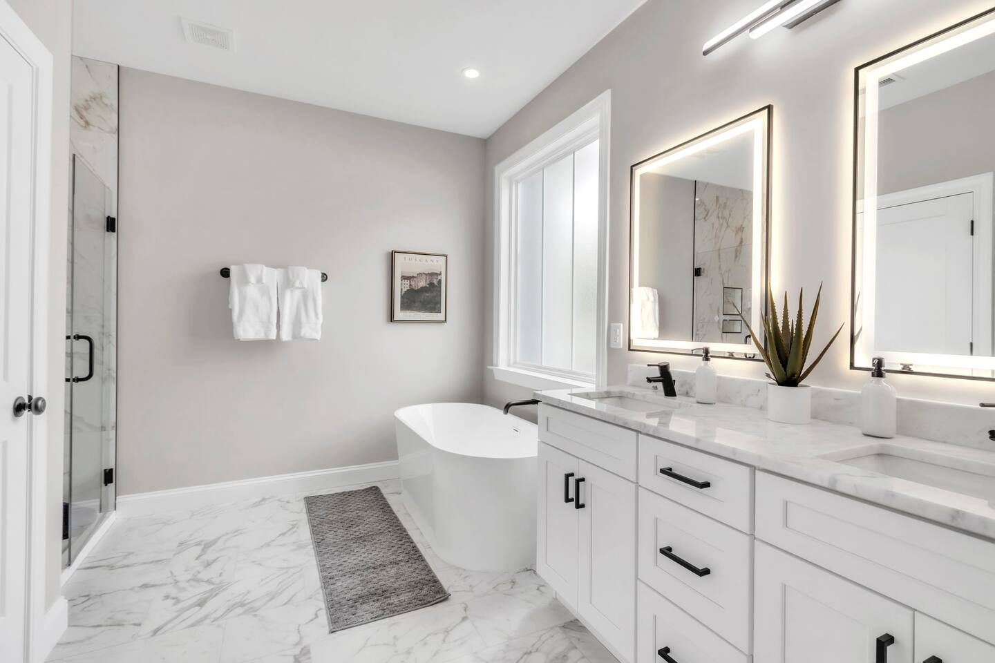 Welcome to your Greer getaway—where stylish design, spacious comfort, and a central location come together to create the perfect retreat for your next getaway. This beautifully decorated 4-bedroom, 2.5-bath home sleeps ten and offers thoughtful touches throughout, from its elevated finishes to its inviting layout. Conveniently located just 20 minutes from Downtown Greenville, 10 minutes from Downtown Greer, and minutes from several popular wedding venues, outdoor attractions, and breweries, this home puts you in the perfect spot to explore everything the area has to offer. Specifically, we are located: - 7 minutes from Aurora Farms - 7 minutes from Edinburgh West - 10 minutes from The Davenport - 12 minutes from The School House Venue Once you arrive, step inside and be greeted by an open-concept living area filled with natural light, LVP flooring throughout, and a cozy fireplace at the center of it all. The main living room is anchored by a plush sectional and sleek furnishings, creating the perfect space to relax, gather, or unwind after a day exploring the Upstate. The kitchen is a dream to cook in, featuring a large island, quartz countertops, a farmhouse sink, and modern appliances including an induction cooktop, a wall oven, a convection microwave, and a dishwasher. Whether you're preparing a full dinner or just brewing your morning coffee, you'll have everything you need at your fingertips. The adjacent dining area offers seating for your whole group to eat, work, or plan your next adventure. The primary bedroom, located on the main floor for added privacy, features a king bed, double nightstands with lamps, a dresser, and a smart TV (no cable; streaming services only, using your personal logins). The en-suite bathroom features a walk-in shower, a separate soaking tub, and a double vanity. Upstairs, you'll find three more bedrooms with Smart TVs (no cable, streaming-only)—two with king beds and one with two queen beds—each decorated with comfort and style in mind. There's also a bonus loft living area with an additional sectional sofa and TV, providing everyone with room to spread out and relax. However, one of the best features of this home is what awaits outside: a huge, fully fenced backyard that offers space to roam, relax, or let pets play freely. The covered patio features a lounge area and grill, perfect for cozy evenings under the stars. There's also a covered front porch with rocking chairs, perfect for enjoying your morning coffee or evening wine. Whether you're here for a weekend event, visiting family, or simply seeking a stylish home base, this centrally located property offers space, style, and Southern charm. Pets are welcome with a fee.