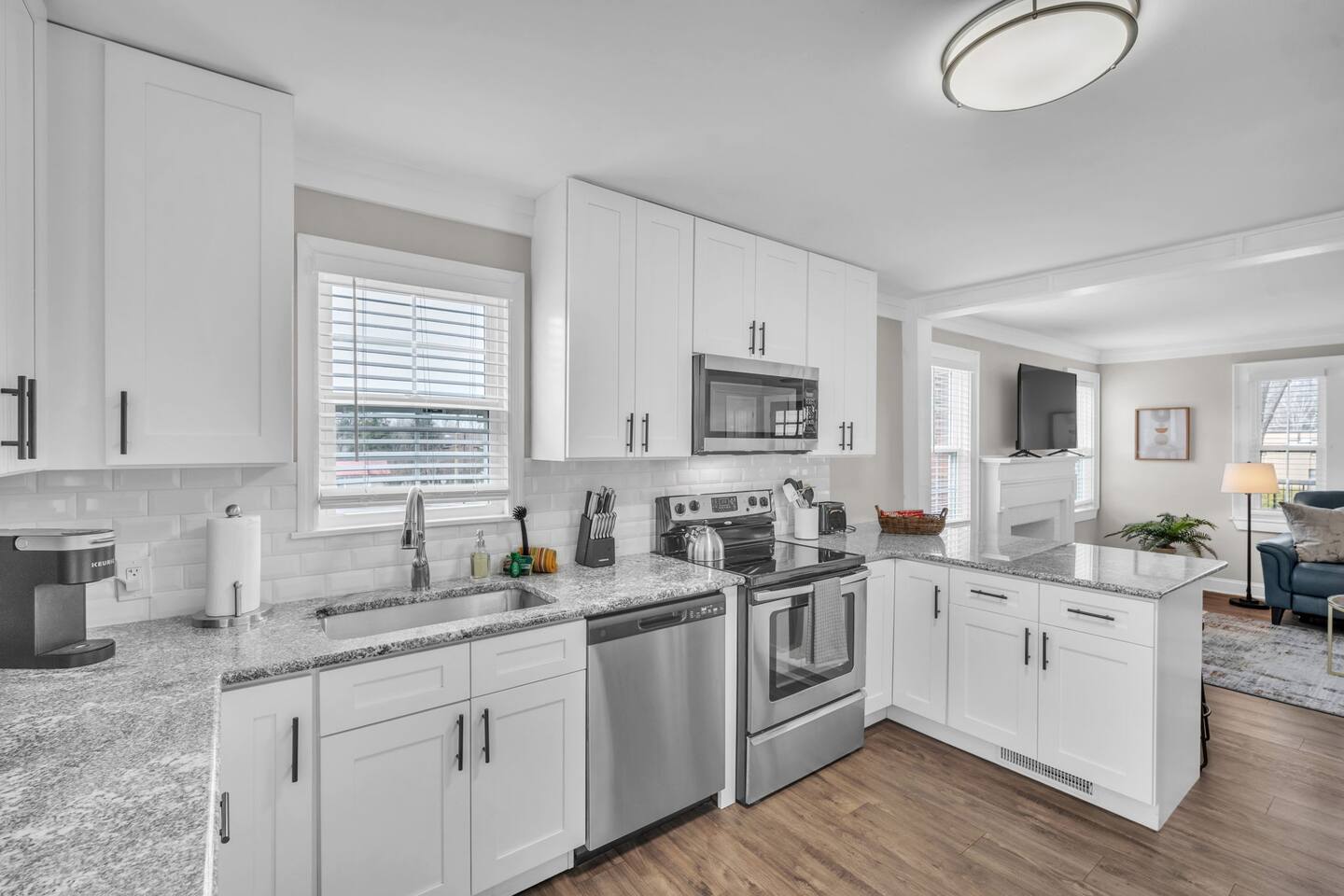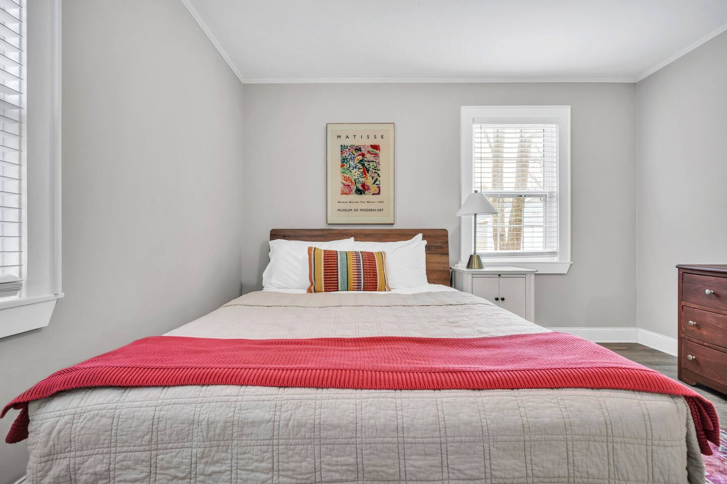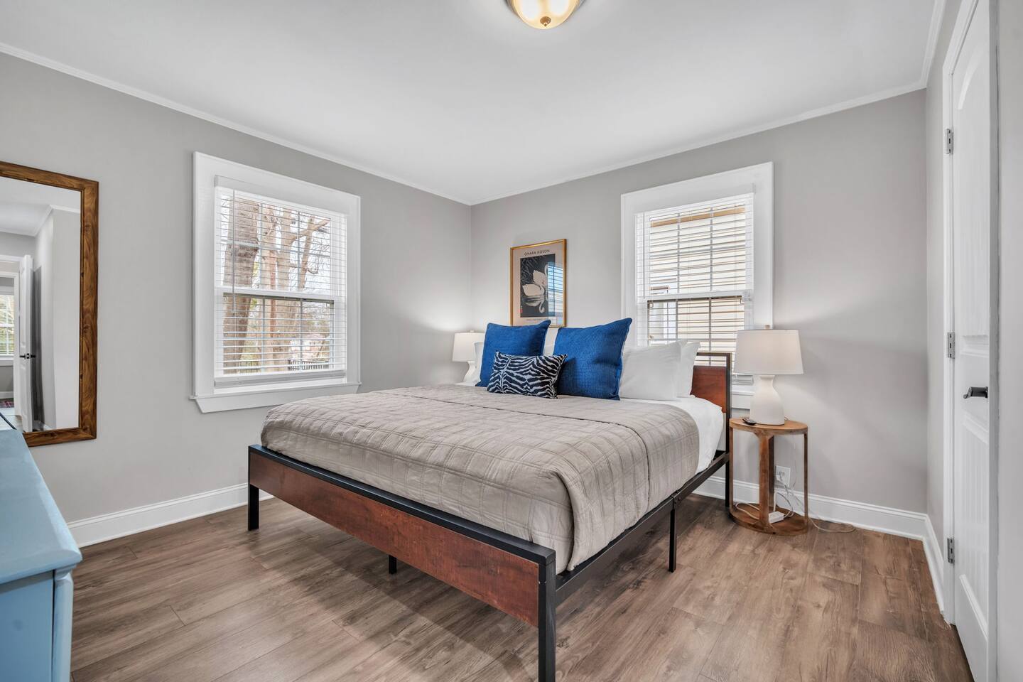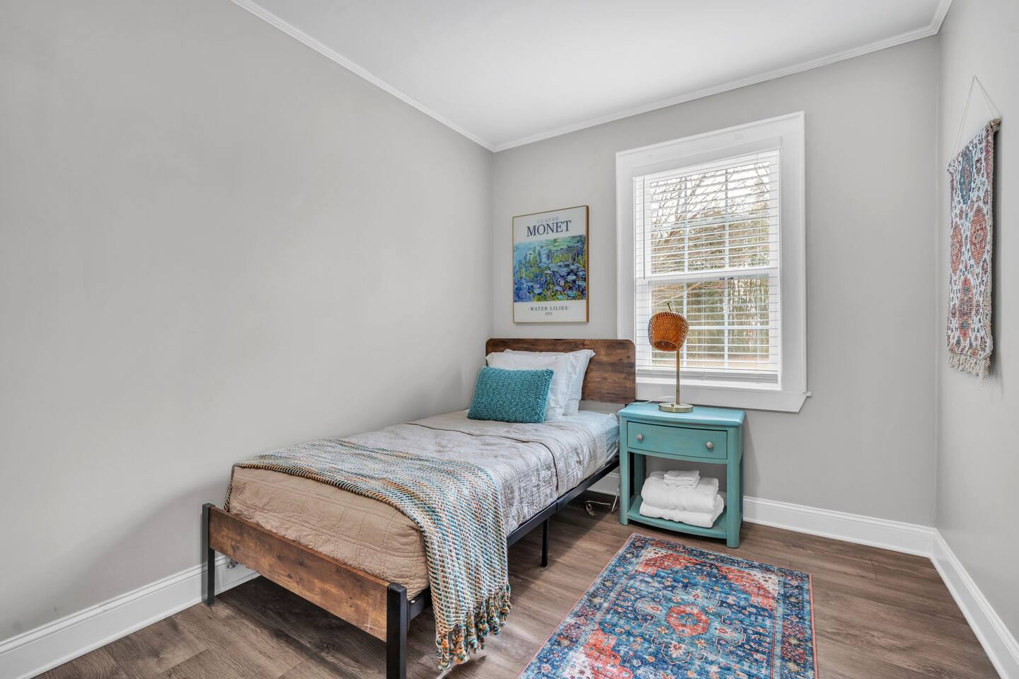 Welcome to Bluestone Cottage, your perfect home away from home! Nestled in the heart of Greenville, this charming 3-bedroom, 1.5-bathroom property offers everything you need for a relaxing stay. Whether you're attending a performance at The Peace Center, exploring award-winning Downtown Greenville, or simply looking for a place to unwind, Bluestone Cottage provides the ideal space to recharge and relax. The Space: Upon entering Bluestone Cottage, you’ll immediately notice the blend of comfort and style. The living room is spacious and inviting, offering a reclining leather sofa and matching loveseat. Relax with your favorite shows on the Smart TV (no cable, but you can log into your own streaming services). Large windows throughout the home bring in plenty of natural light, creating a bright and airy atmosphere. The fully equipped kitchen features a bar with three stools, offering a cozy space for meals or a morning coffee. It’s well-stocked with all the essentials, including pots, pans, dishes, glasses, and a coffee station to kick-start your day. An entryway table converts into an additional dining table when needed, with chairs in the hall closet. Bedroom 1 (Main Bedroom): The master bedroom is a tranquil retreat, featuring a comfortable king-size bed, nightstands with reading lamps, and a closet. You’ll appreciate the easy access to the full bathroom, which also connects to the hallway. Bedroom 2: This room is furnished with a queen bed, nightstand, and closet. It’s a peaceful space for a restful night’s sleep, with soft linens and stylish decor. Bedroom 3: The third bedroom offers a cozy twin bed, perfect for solo travelers or kids. A dedicated workspace with a desk makes it an excellent option for those needing a quiet place to work or study. Bathrooms: - Main Bathroom: Conveniently located in the hallway and attached to the master bedroom, the full bathroom features a tub/shower combination, single vanity, toilet. - Half Bathroom: A second bathroom is available for added convenience, featuring a sink, vanity, and toilet. Outdoor Space: Bluestone Cottage is designed for outdoor enjoyment, featuring a fully fenced-in front yard, perfect for pets or simply enjoying the fresh air. The back of the house also offers a small yard where you can unwind and relax. Parking: Parking is available in the driveway with room for at least two cars. Please note that the detached garage is not available for guest use. Pet-Friendly: Pets are welcome at Bluestone Cottage with a one-time fee, automatically added during booking when you add your furry friend to your reservation. We can’t wait to welcome you to Bluestone Cottage! Feel free to reach out if you have any questions or need assistance—we’re just a message away.