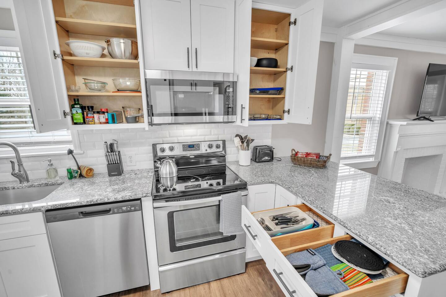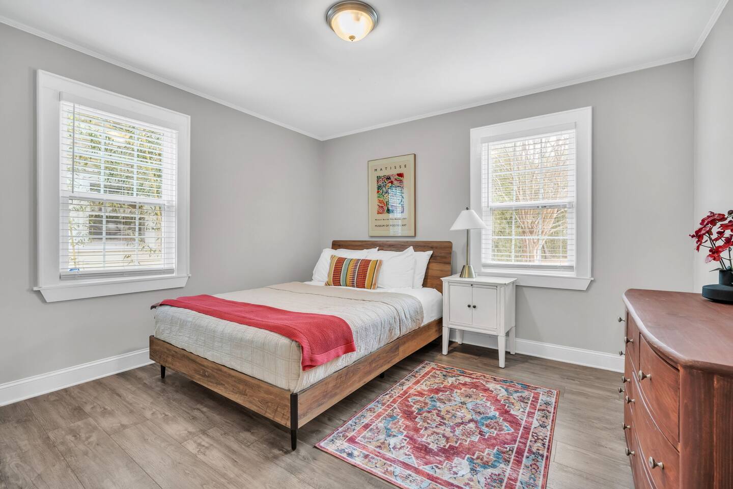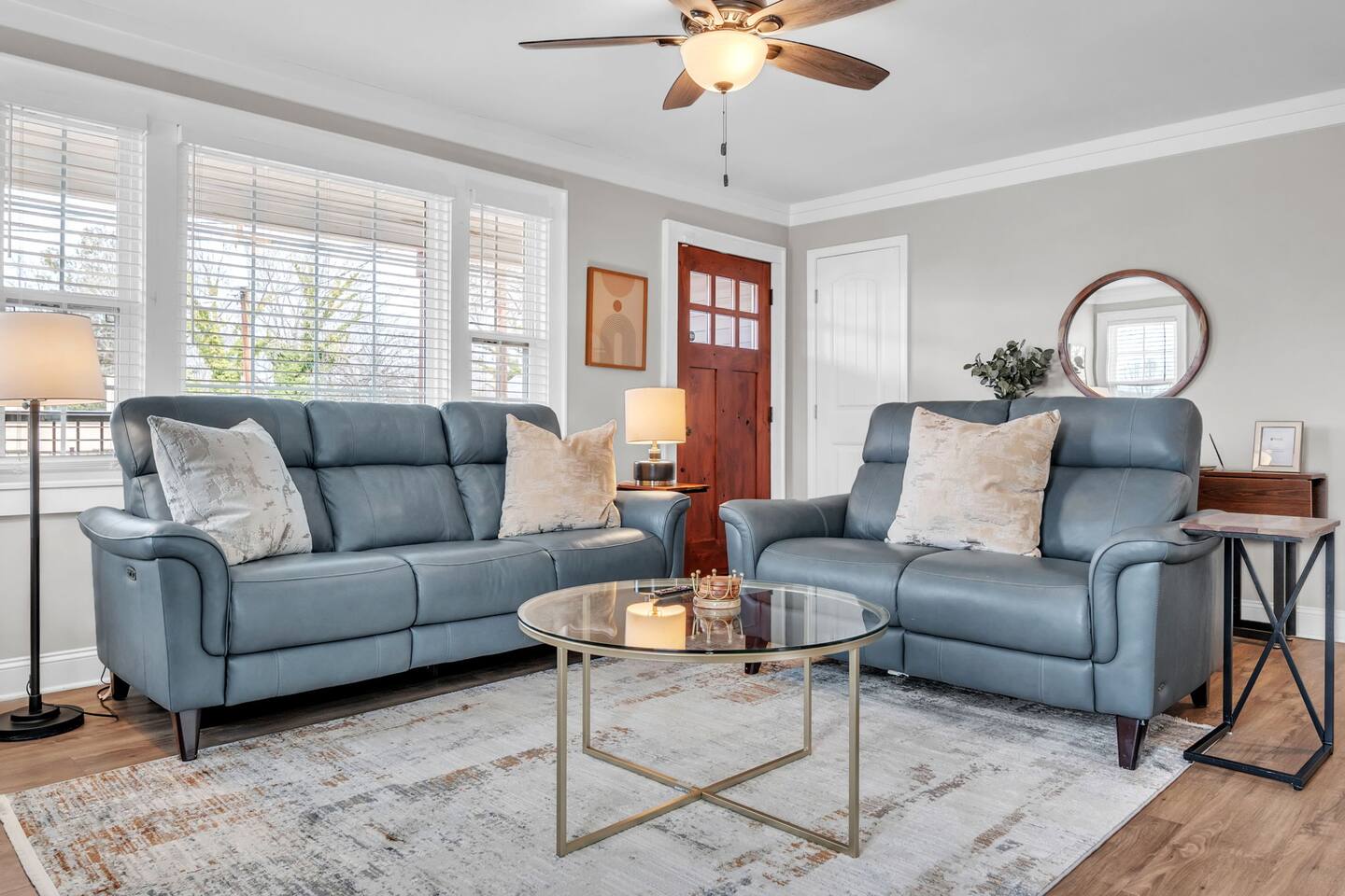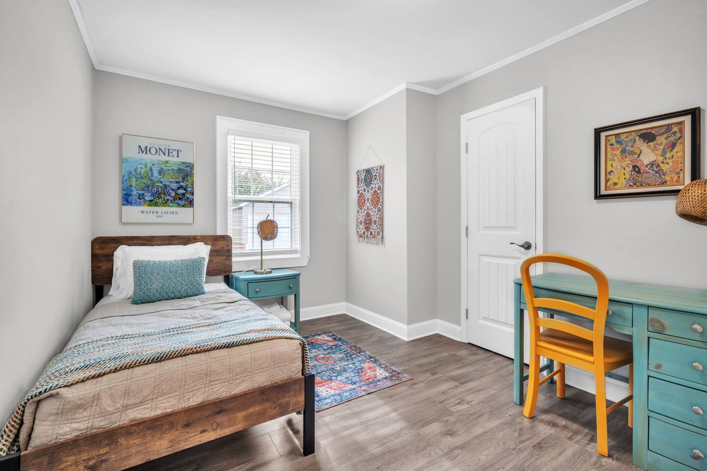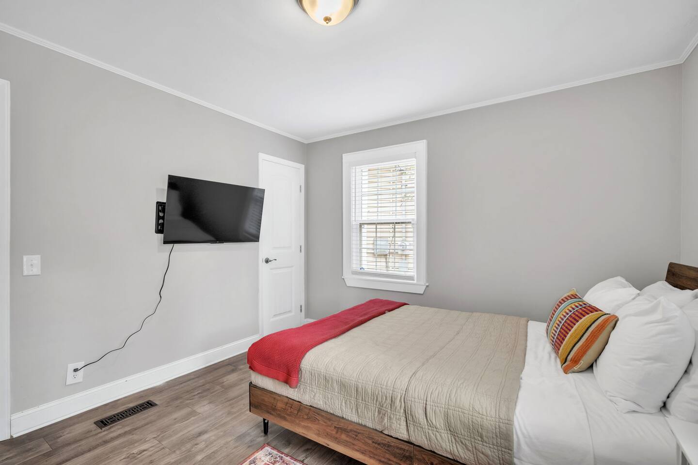 Welcome to Bluestone Cottage, your perfect home away from home! Nestled in the heart of Greenville, this charming 3-bedroom, 1.5-bathroom property offers everything you need for a relaxing stay. Whether you're attending a performance at The Peace Center, exploring award-winning Downtown Greenville, or simply looking for a place to unwind, Bluestone Cottage provides the ideal space to recharge and relax. The Space: Upon entering Bluestone Cottage, you’ll immediately notice the blend of comfort and style. The living room is spacious and inviting, offering a reclining leather sofa and matching loveseat. Relax with your favorite shows on the Smart TV (no cable, but you can log into your own streaming services). Large windows throughout the home bring in plenty of natural light, creating a bright and airy atmosphere. The fully equipped kitchen features a bar with three stools, offering a cozy space for meals or a morning coffee. It’s well-stocked with all the essentials, including pots, pans, dishes, glasses, and a coffee station to kick-start your day. An entryway table converts into an additional dining table when needed, with chairs in the hall closet. Bedroom 1 (Main Bedroom): The master bedroom is a tranquil retreat, featuring a comfortable king-size bed, nightstands with reading lamps, and a closet. You’ll appreciate the easy access to the full bathroom, which also connects to the hallway. Bedroom 2: This room is furnished with a queen bed, nightstand, and closet. It’s a peaceful space for a restful night’s sleep, with soft linens and stylish decor. Bedroom 3: The third bedroom offers a cozy twin bed, perfect for solo travelers or kids. A dedicated workspace with a desk makes it an excellent option for those needing a quiet place to work or study. Bathrooms: - Main Bathroom: Conveniently located in the hallway and attached to the master bedroom, the full bathroom features a tub/shower combination, single vanity, toilet. - Half Bathroom: A second bathroom is available for added convenience, featuring a sink, vanity, and toilet. Outdoor Space: Bluestone Cottage is designed for outdoor enjoyment, featuring a fully fenced-in front yard, perfect for pets or simply enjoying the fresh air. The back of the house also offers a small yard where you can unwind and relax. Parking: Parking is available in the driveway with room for at least two cars. Please note that the detached garage is not available for guest use. Pet-Friendly: Pets are welcome at Bluestone Cottage with a one-time fee, automatically added during booking when you add your furry friend to your reservation. We can’t wait to welcome you to Bluestone Cottage! Feel free to reach out if you have any questions or need assistance—we’re just a message away.