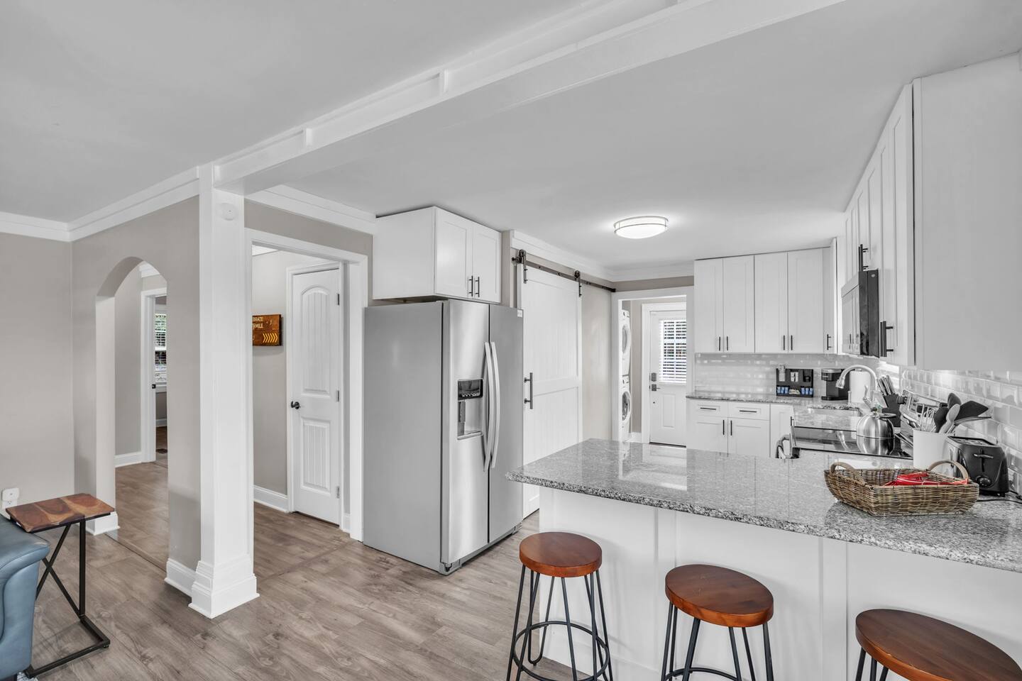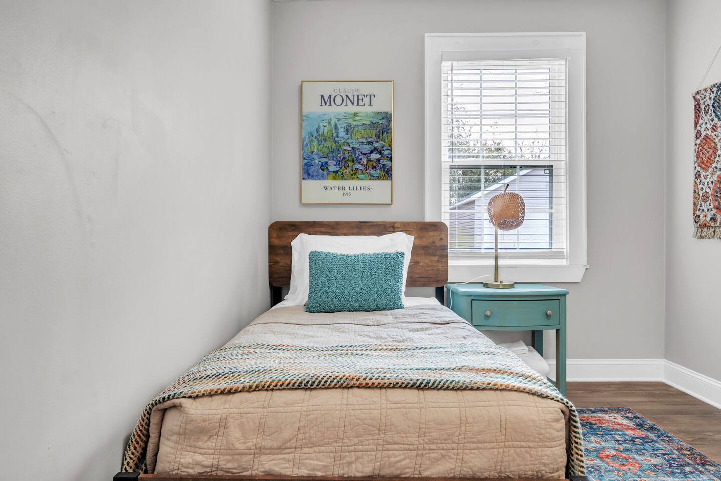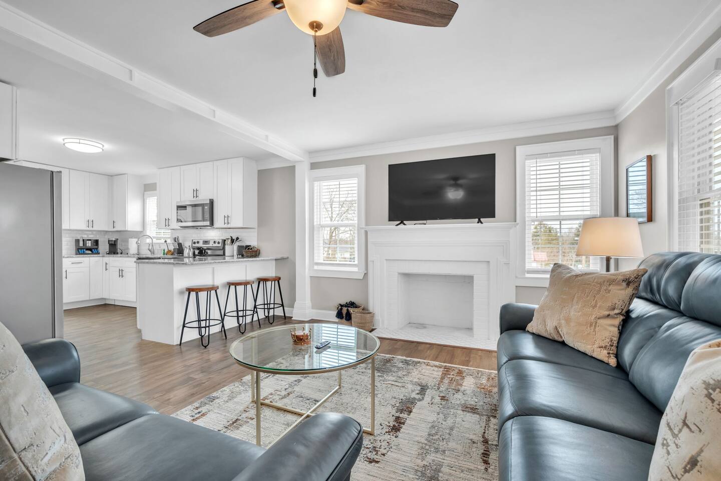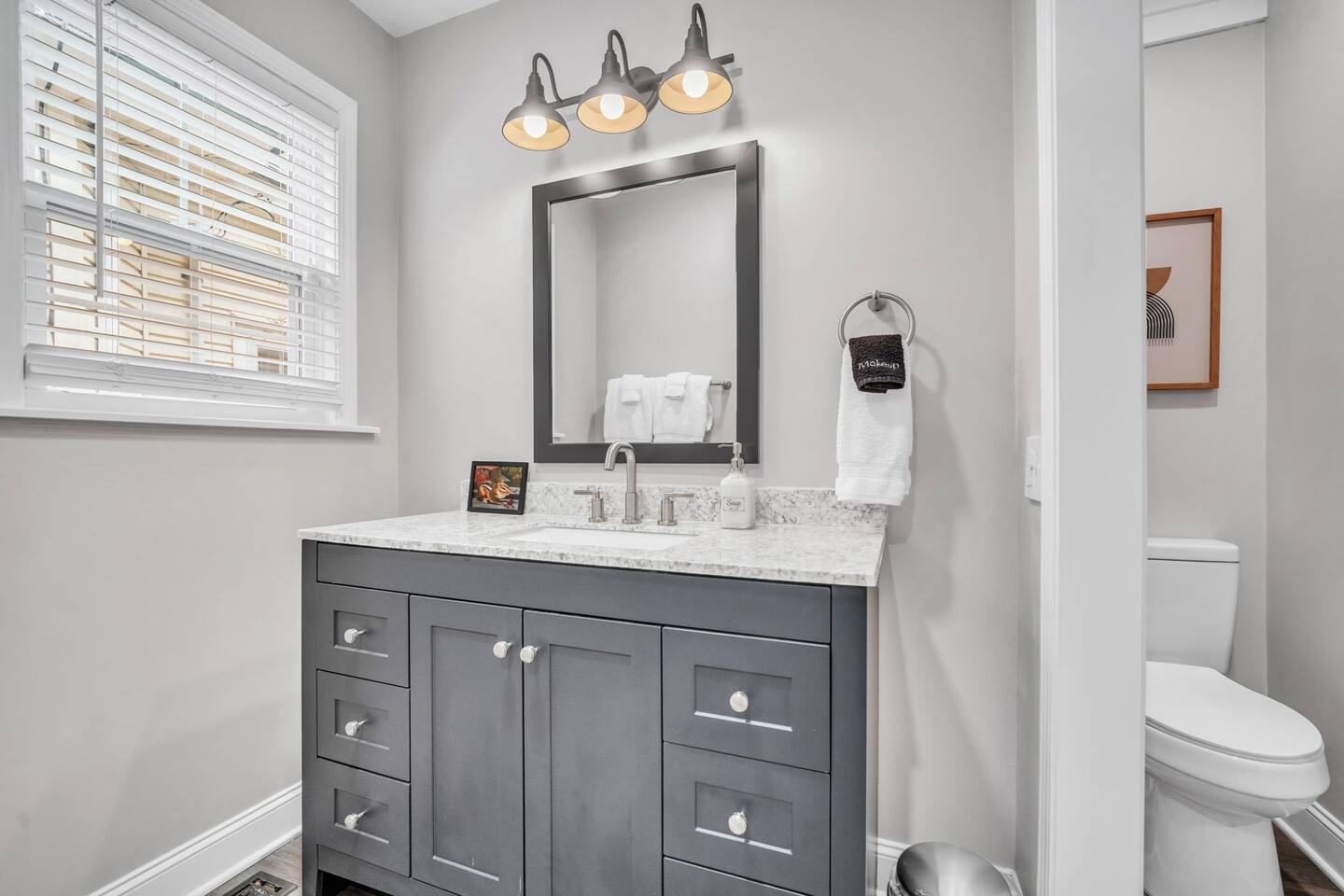 Welcome to Bluestone Cottage, your perfect home away from home! Nestled in the heart of Greenville, this charming 3-bedroom, 1.5-bathroom property offers everything you need for a relaxing stay. Whether you're attending a performance at The Peace Center, exploring award-winning Downtown Greenville, or simply looking for a place to unwind, Bluestone Cottage provides the ideal space to recharge and relax. The Space: Upon entering Bluestone Cottage, you’ll immediately notice the blend of comfort and style. The living room is spacious and inviting, offering a reclining leather sofa and matching loveseat. Relax with your favorite shows on the Smart TV (no cable, but you can log into your own streaming services). Large windows throughout the home bring in plenty of natural light, creating a bright and airy atmosphere. The fully equipped kitchen features a bar with three stools, offering a cozy space for meals or a morning coffee. It’s well-stocked with all the essentials, including pots, pans, dishes, glasses, and a coffee station to kick-start your day. An entryway table converts into an additional dining table when needed, with chairs in the hall closet. Bedroom 1 (Main Bedroom): The master bedroom is a tranquil retreat, featuring a comfortable king-size bed, nightstands with reading lamps, and a closet. You’ll appreciate the easy access to the full bathroom, which also connects to the hallway. Bedroom 2: This room is furnished with a queen bed, nightstand, and closet. It’s a peaceful space for a restful night’s sleep, with soft linens and stylish decor. Bedroom 3: The third bedroom offers a cozy twin bed, perfect for solo travelers or kids. A dedicated workspace with a desk makes it an excellent option for those needing a quiet place to work or study. Bathrooms: - Main Bathroom: Conveniently located in the hallway and attached to the master bedroom, the full bathroom features a tub/shower combination, single vanity, toilet. - Half Bathroom: A second bathroom is available for added convenience, featuring a sink, vanity, and toilet. Outdoor Space: Bluestone Cottage is designed for outdoor enjoyment, featuring a fully fenced-in front yard, perfect for pets or simply enjoying the fresh air. The back of the house also offers a small yard where you can unwind and relax. Parking: Parking is available in the driveway with room for at least two cars. Please note that the detached garage is not available for guest use. Pet-Friendly: Pets are welcome at Bluestone Cottage with a one-time fee, automatically added during booking when you add your furry friend to your reservation. We can’t wait to welcome you to Bluestone Cottage! Feel free to reach out if you have any questions or need assistance—we’re just a message away.