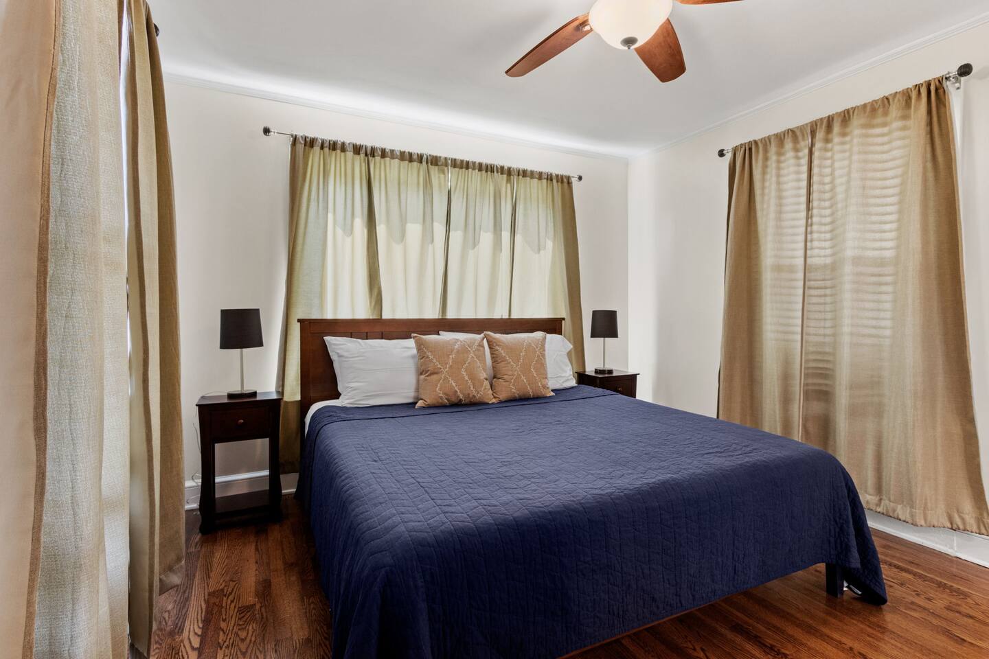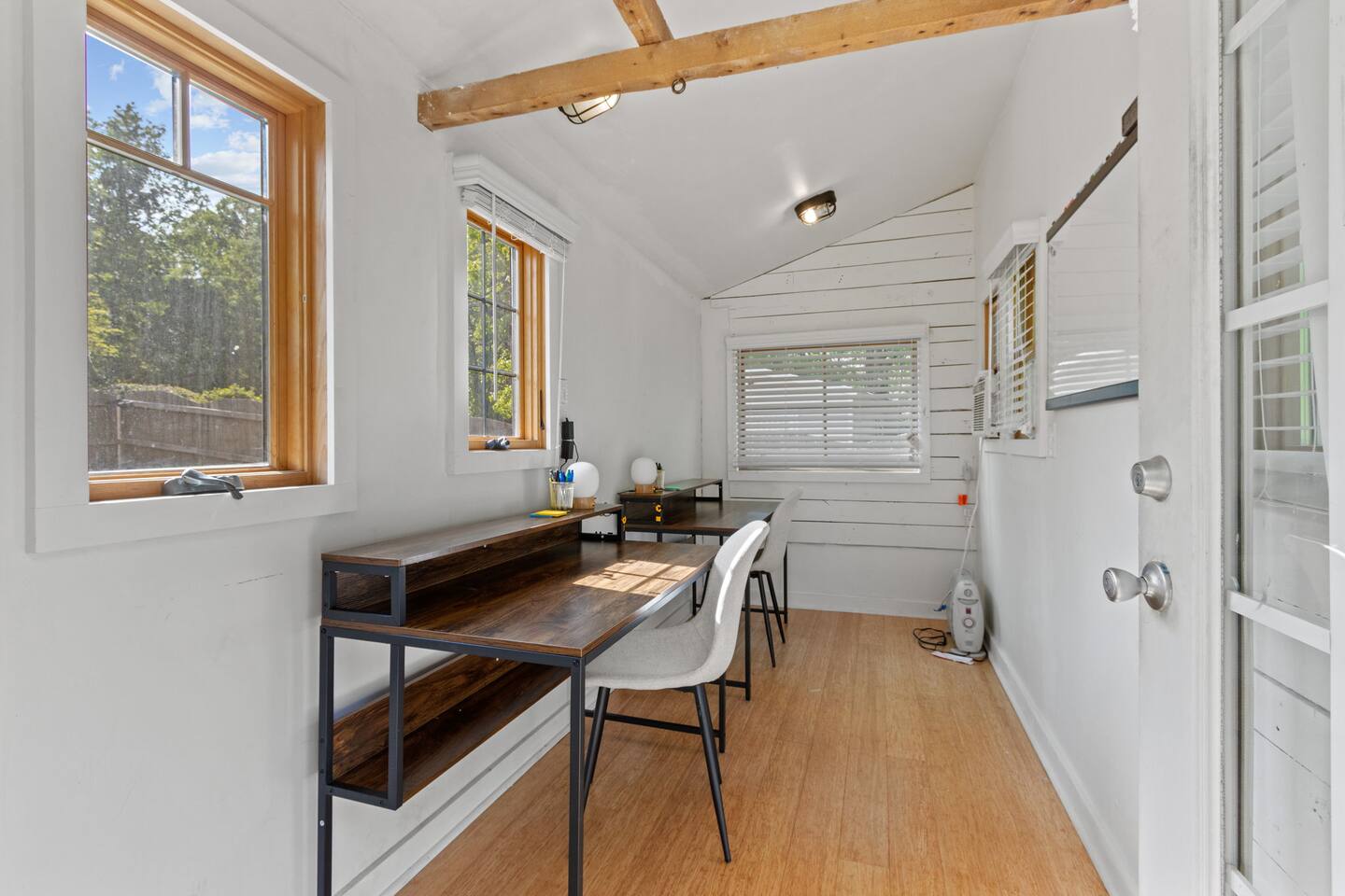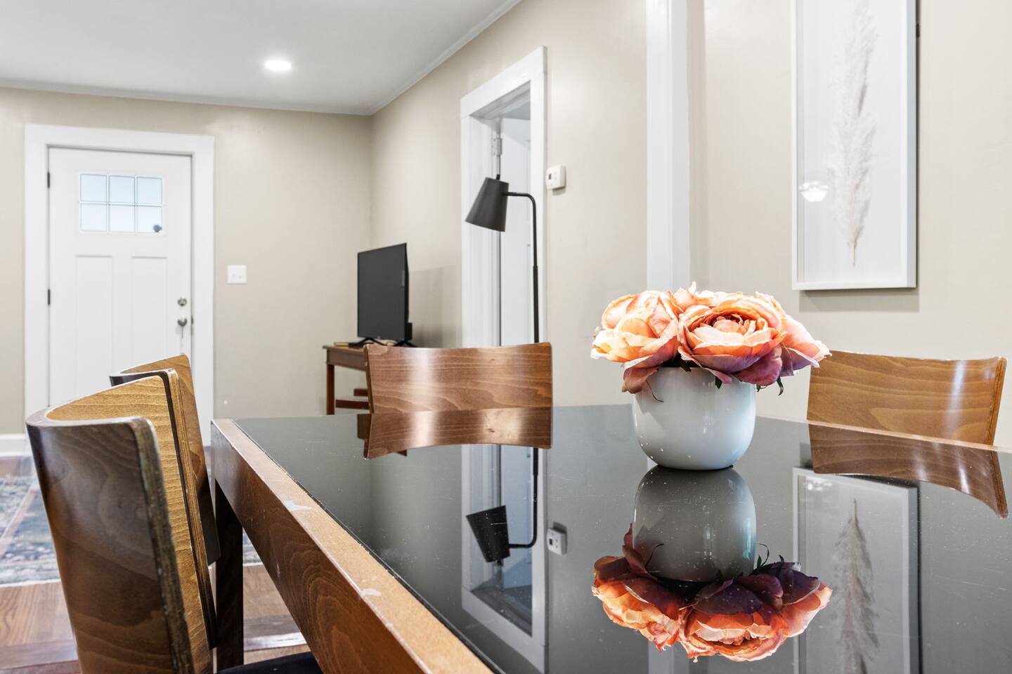 Welcome to Buckhorn Sanctuary, where your serene retreat begins! Here's a glimpse of what awaits: Parking & Entrance: Park with ease in our spacious round gravel driveway and make your way to the front door. Be greeted by our expansive front porch, adorned with a plush outdoor sectional and adjustable flowing curtains, ensuring the perfect ambiance, sunlit or shaded. Main Living Spaces: Step inside to a harmoniously open living and dining area. Lounge in the living space featuring a comfortable sofa, chair, coffee table, and a Smart TV—ready for you to log into your favorite streaming services (cable not provided). The adjacent dining space offers seating for six, accompanied by built-ins stocked with card games for your leisure. Our sunlit kitchen, showcasing a windowed wall above the sink, is equipped to meet all your culinary desires. Sleeping Quarters: The home boasts two Master bedrooms, each with their own en suite bathrooms. The front Master has a King bed, thoughtful amenities, and an en suite bathroom with a unique cobblestone-tiled stall shower. The second Master offers another King bed and an en suite with both a traditional bathtub and our new washer/dryer set. Note: Guests in the twin bedroom will access these bathrooms through the Master suites. This bedroom has two cozy twin beds and ample storage. Outdoor Delight & Work Space: Our backyard is a true gem—enclosed for privacy and complete with a gas fire pit for your relaxation. Further adding to the charm is our backyard "tiny home", temperature-controlled for year-round use. This quaint space, ideal for remote work, offers dual desks, essential office supplies, and a brainstorm-ready whiteboard. Pets & Other Details: *Pets are welcome in our home with a one-time fee, automatically applied when you add your pet as a guest during booking Whether you're in town for leisure or work, Buckhorn Sanctuary promises tranquility and comfort in every corner! We're excited to be a part of your journey.