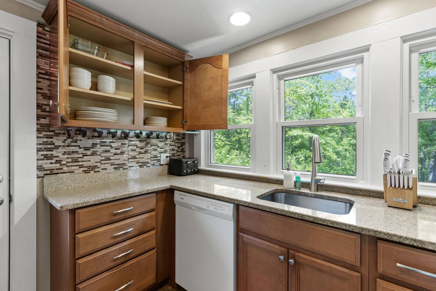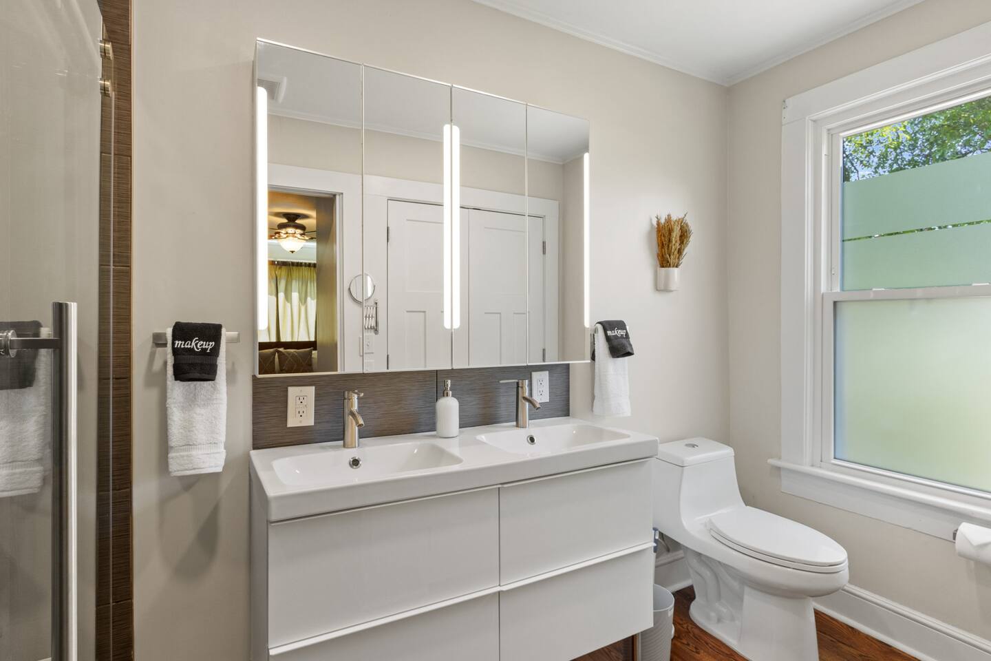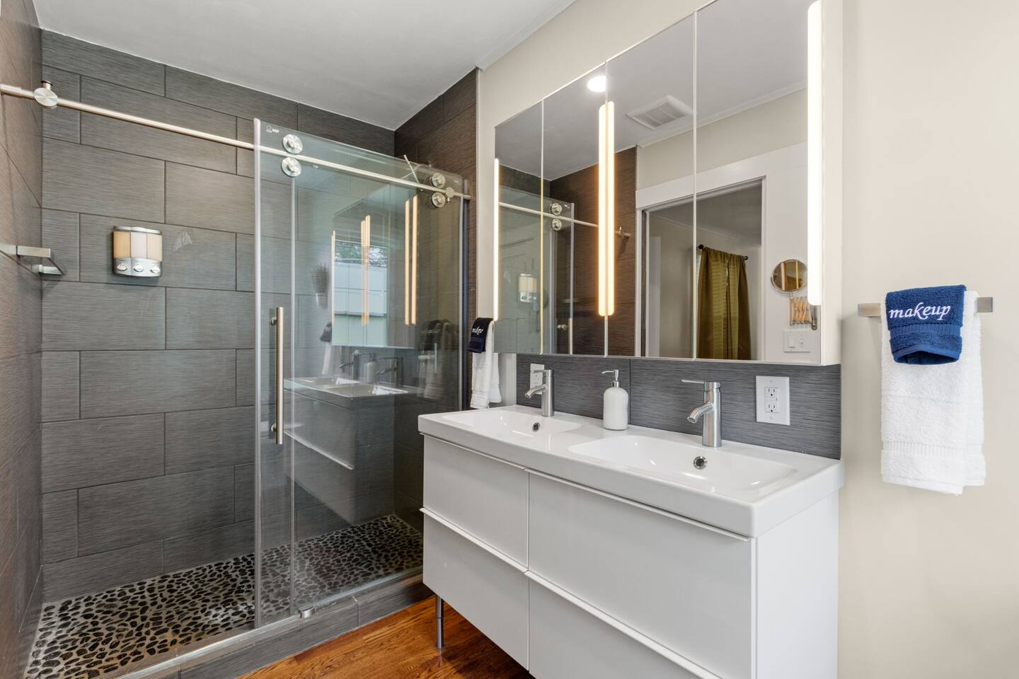 Welcome to Buckhorn Sanctuary, where your serene retreat begins! Here's a glimpse of what awaits: Parking & Entrance: Park with ease in our spacious round gravel driveway and make your way to the front door. Be greeted by our expansive front porch, adorned with a plush outdoor sectional and adjustable flowing curtains, ensuring the perfect ambiance, sunlit or shaded. Main Living Spaces: Step inside to a harmoniously open living and dining area. Lounge in the living space featuring a comfortable sofa, chair, coffee table, and a Smart TV—ready for you to log into your favorite streaming services (cable not provided). The adjacent dining space offers seating for six, accompanied by built-ins stocked with card games for your leisure. Our sunlit kitchen, showcasing a windowed wall above the sink, is equipped to meet all your culinary desires. Sleeping Quarters: The home boasts two Master bedrooms, each with their own en suite bathrooms. The front Master has a King bed, thoughtful amenities, and an en suite bathroom with a unique cobblestone-tiled stall shower. The second Master offers another King bed and an en suite with both a traditional bathtub and our new washer/dryer set. Note: Guests in the twin bedroom will access these bathrooms through the Master suites. This bedroom has two cozy twin beds and ample storage. Outdoor Delight & Work Space: Our backyard is a true gem—enclosed for privacy and complete with a gas fire pit for your relaxation. Further adding to the charm is our backyard "tiny home", temperature-controlled for year-round use. This quaint space, ideal for remote work, offers dual desks, essential office supplies, and a brainstorm-ready whiteboard. Pets & Other Details: *Pets are welcome in our home with a one-time fee, automatically applied when you add your pet as a guest during booking Whether you're in town for leisure or work, Buckhorn Sanctuary promises tranquility and comfort in every corner! We're excited to be a part of your journey.