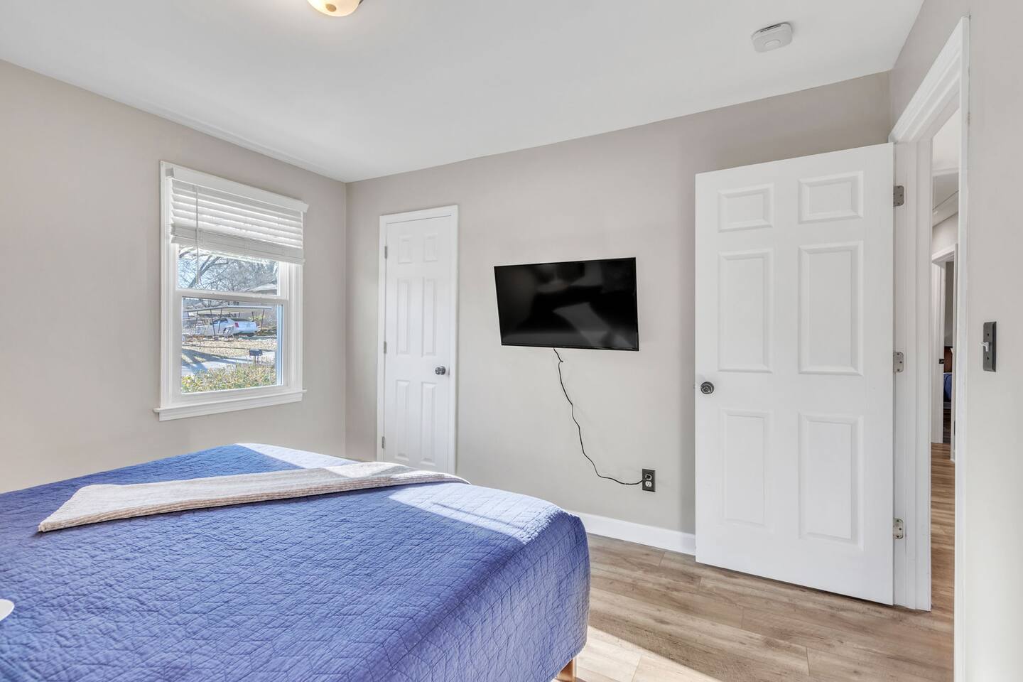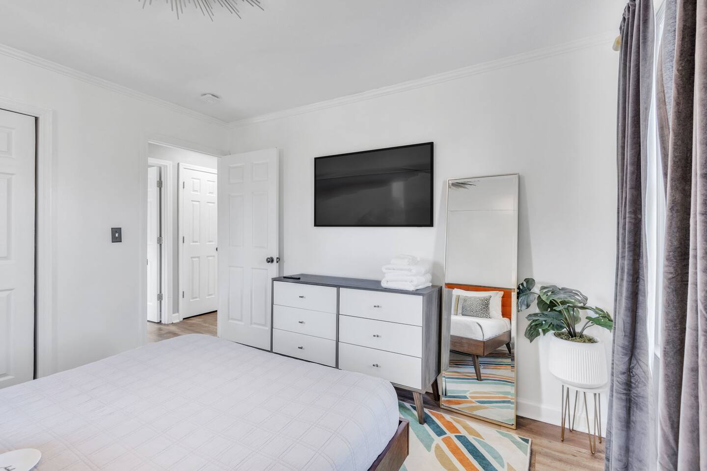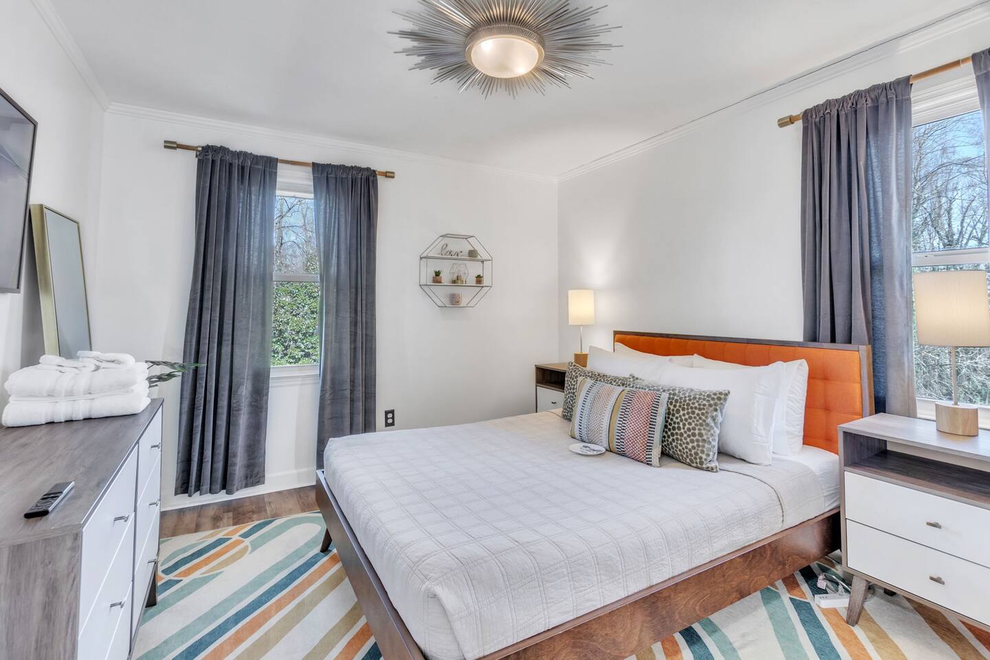 We are thrilled to welcome you to Chardonnay Chateau, our newly updated 3-bedroom, 2-bathroom home, just 3 miles from Downtown Greenville. This charming home is perfectly situated to offer both convenience and comfort for your stay. Whether you’re here to explore the city or relax, you’ll find plenty of space and style to make your time in Greenville truly special. Chardonnay Chateau has been thoughtfully updated with modern touches throughout. The third bedroom, previously closed off, is now open and furnished with a comfortable queen-sized bed. This spacious room provides even more space to spread out and relax. Each of the three bedrooms is equipped with a Smart TV (no cable, but guests can log into their own streaming services), ensuring that guests can enjoy their favorite shows and movies at their convenience. Upon entering the home, you’ll find a spacious and welcoming living room featuring a large sectional sofa, two side tables, a coffee table, and a floor lamp. A Smart TV completes the space, perfect for movie nights or casual conversations. The living room flows into the formal dining area, where a modern marble table with six velvet chairs awaits. It’s an ideal place to enjoy a meal together, play games, or relax with a drink. The fully stocked kitchen, located off the dining room, provides everything you need to cook meals at home. You’ll find pots, pans, dishes, glasses, and essential spices. A dedicated coffee station adds a nice touch, allowing you to brew your morning coffee or tea. Moving down the hallway, you'll reach the master bedroom, which features a king-sized bed, two nightstands with reading lamps, and a bench at the foot of the bed. The attached master bathroom offers a single vanity, a toilet, and a beautiful shower, perfect for unwinding after a long day. The second bedroom, across the hallway, also features a king-sized bed, a Smart TV, two nightstands, reading lamps, and a closet for personal belongings. This bright and welcoming room offers a relaxing space for rest and rejuvenation. The third bedroom is furnished with a queen-sized bed and a Smart TV. It is perfect for additional guests and offers comfort and privacy with the same thoughtful touches as the other bedrooms. The shared hallway bathroom, conveniently located between the bedrooms, offers a tub/shower combination, a single vanity, and a toilet. Outdoor Space: One of the highlights of Chardonnay Chateau is the incredible outdoor space. We’ve converted the carport into a cozy, functional outdoor living area with comfortable seating for six. Twinkling lights line the roof, creating a relaxing atmosphere for evening conversations or enjoying fresh air. Location Highlights: Our prime location puts you just minutes from all the best local shops, dining, and attractions: Pet Policy: We love pets at Chardonnay Chateau and welcome them with a one-time fee, which is automatically applied when you add your pet as a guest during booking. Additional Information: Guests have access to the entire home and yard, except for a locked cleaning closet for supplies. The neighborhood is walkable, but we recommend using a car to explore Greenville’s nearby attractions. Uber and Lyft are also great options for those who prefer not to drive. We're just a message away if you need anything during your stay. We can’t wait to host you at Chardonnay Chateau—your perfect home away from home!