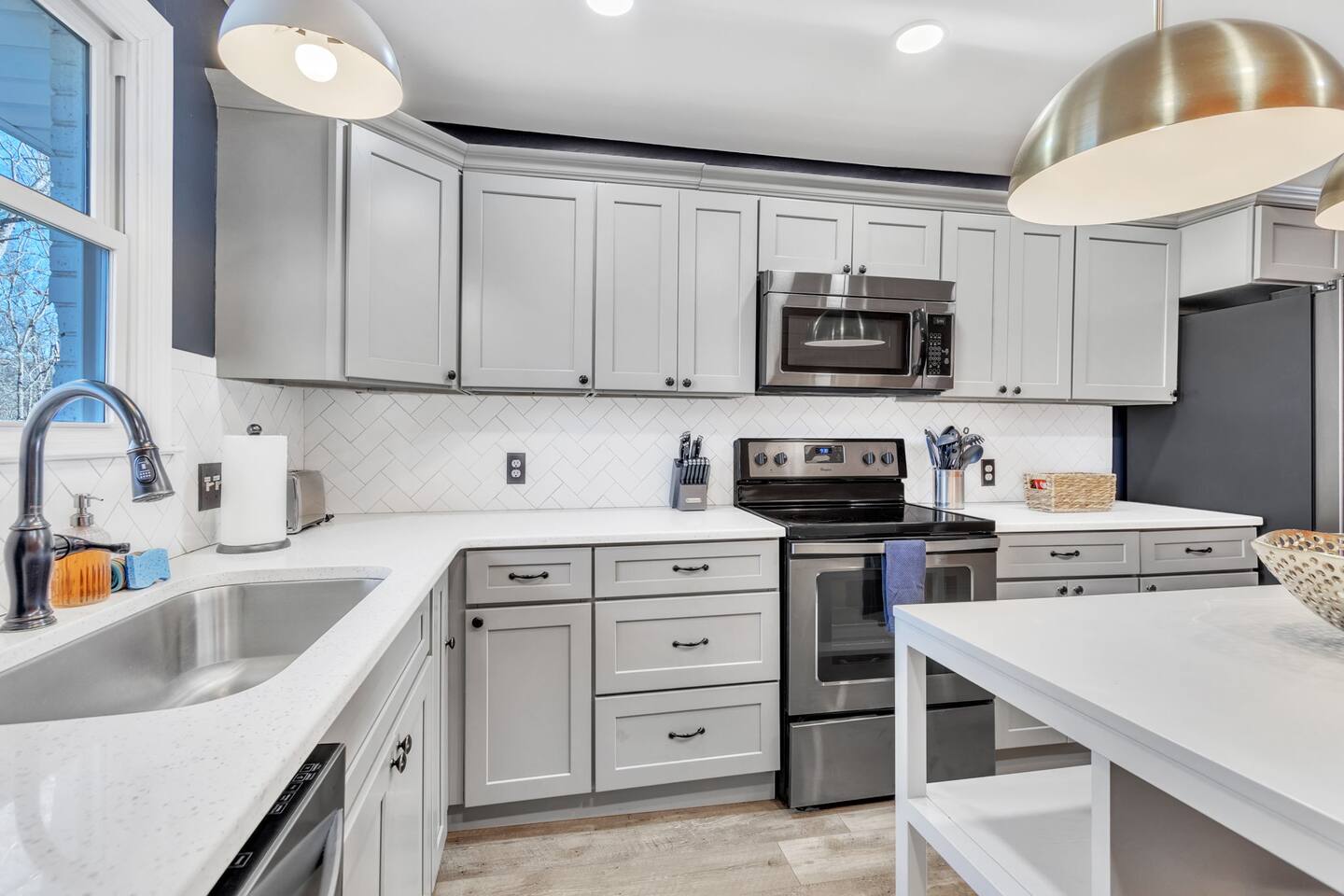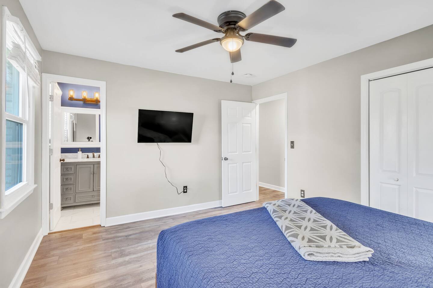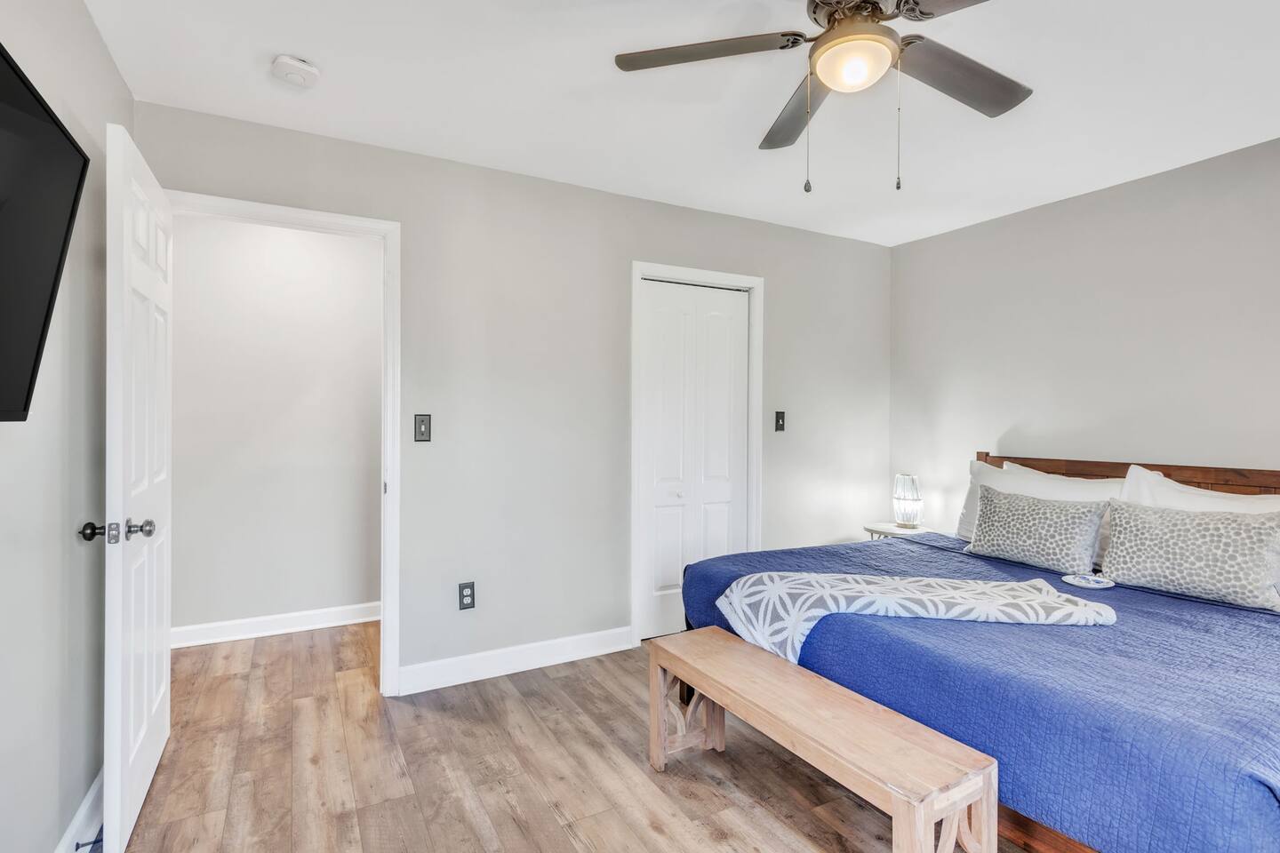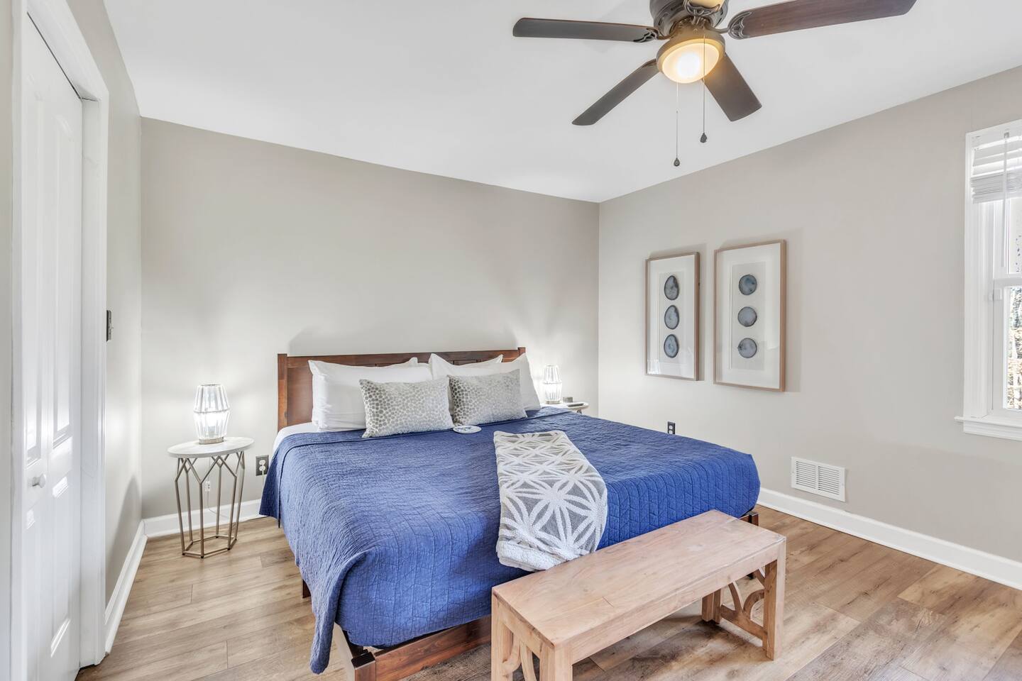 We are thrilled to welcome you to Chardonnay Chateau, our newly updated 3-bedroom, 2-bathroom home, just 3 miles from Downtown Greenville. This charming home is perfectly situated to offer both convenience and comfort for your stay. Whether you’re here to explore the city or relax, you’ll find plenty of space and style to make your time in Greenville truly special. Chardonnay Chateau has been thoughtfully updated with modern touches throughout. The third bedroom, previously closed off, is now open and furnished with a comfortable queen-sized bed. This spacious room provides even more space to spread out and relax. Each of the three bedrooms is equipped with a Smart TV (no cable, but guests can log into their own streaming services), ensuring that guests can enjoy their favorite shows and movies at their convenience. Upon entering the home, you’ll find a spacious and welcoming living room featuring a large sectional sofa, two side tables, a coffee table, and a floor lamp. A Smart TV completes the space, perfect for movie nights or casual conversations. The living room flows into the formal dining area, where a modern marble table with six velvet chairs awaits. It’s an ideal place to enjoy a meal together, play games, or relax with a drink. The fully stocked kitchen, located off the dining room, provides everything you need to cook meals at home. You’ll find pots, pans, dishes, glasses, and essential spices. A dedicated coffee station adds a nice touch, allowing you to brew your morning coffee or tea. Moving down the hallway, you'll reach the master bedroom, which features a king-sized bed, two nightstands with reading lamps, and a bench at the foot of the bed. The attached master bathroom offers a single vanity, a toilet, and a beautiful shower, perfect for unwinding after a long day. The second bedroom, across the hallway, also features a king-sized bed, a Smart TV, two nightstands, reading lamps, and a closet for personal belongings. This bright and welcoming room offers a relaxing space for rest and rejuvenation. The third bedroom is furnished with a queen-sized bed and a Smart TV. It is perfect for additional guests and offers comfort and privacy with the same thoughtful touches as the other bedrooms. The shared hallway bathroom, conveniently located between the bedrooms, offers a tub/shower combination, a single vanity, and a toilet. Outdoor Space: One of the highlights of Chardonnay Chateau is the incredible outdoor space. We’ve converted the carport into a cozy, functional outdoor living area with comfortable seating for six. Twinkling lights line the roof, creating a relaxing atmosphere for evening conversations or enjoying fresh air. Location Highlights: Our prime location puts you just minutes from all the best local shops, dining, and attractions: Pet Policy: We love pets at Chardonnay Chateau and welcome them with a one-time fee, which is automatically applied when you add your pet as a guest during booking. Additional Information: Guests have access to the entire home and yard, except for a locked cleaning closet for supplies. The neighborhood is walkable, but we recommend using a car to explore Greenville’s nearby attractions. Uber and Lyft are also great options for those who prefer not to drive. We're just a message away if you need anything during your stay. We can’t wait to host you at Chardonnay Chateau—your perfect home away from home!