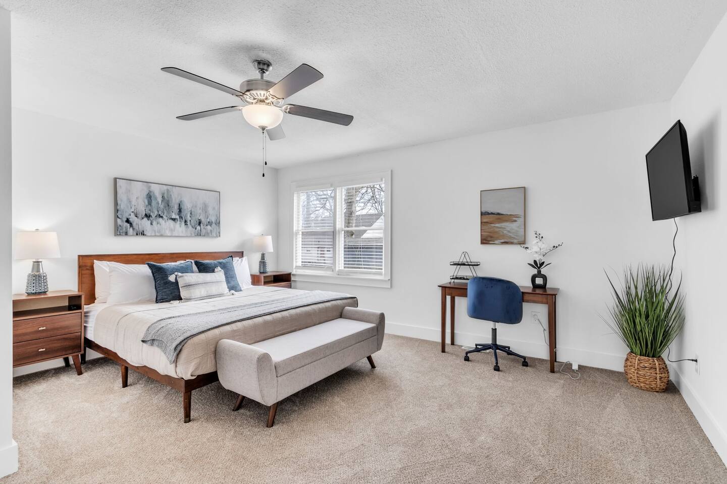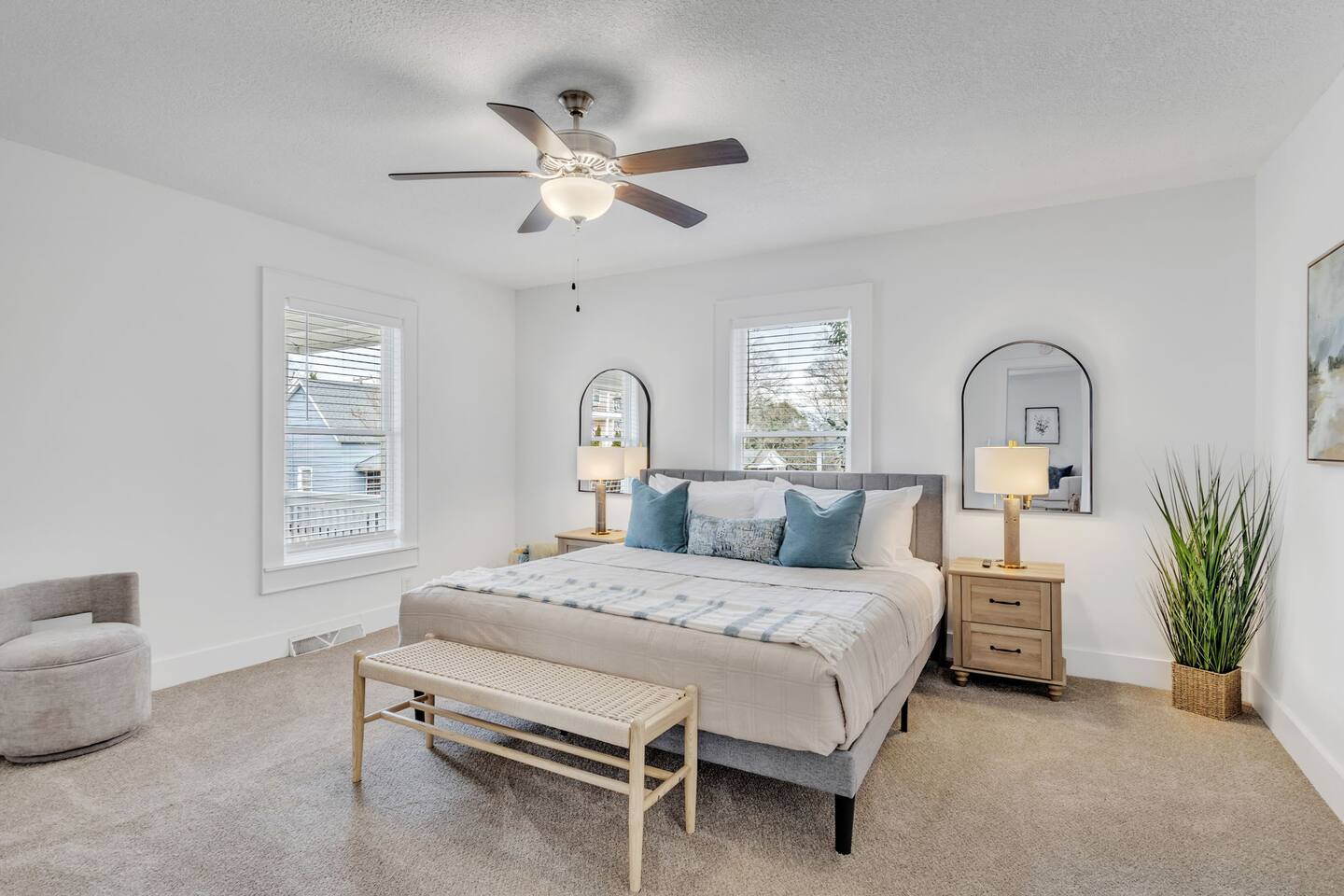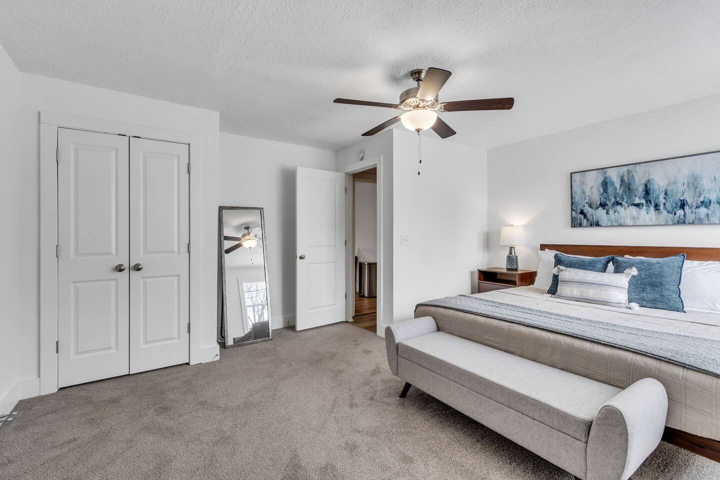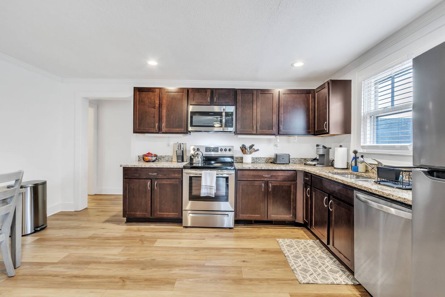 Discover The Cottage @ Trail’s End, a beautifully curated 2-bedroom, 2-bathroom retreat that perfectly balances modern comfort with a charming aesthetic, located a short 1/4 mile walk from the Swamp Rabbit Café, which has direct access to the Swamp Rabbit Trail. Whether you're here for business, a family getaway, or a spontaneous adventure, this home offers the ideal setting to unwind and explore the vibrant surroundings of Greenville. Each king bedroom invites you to relax in style, with plush bedding, tasteful décor, and plenty of space to make yourself at home. Both rooms have their own full bathroom, providing privacy and convenience for all guests. If work is on your agenda, take advantage of the dedicated workspace and reliable high-speed WiFi, or settle in at the dining table for a change of scenery. The kitchen blends style and function, featuring modern appliances, ample counter space, and thoughtful design touches that make cooking and dining effortless. Whether preparing a full meal or a quick snack, you'll find everything you need within reach. The dedicated laundry area with a washer and dryer adds extra convenience, making it easy to refresh your wardrobe during longer stays. This space is designed for both practicality and comfort, ensuring a seamless experience. The heart of the home is its cozy living area, complete with a Smart TV in the living room and both bedrooms, perfect for streaming your favorite shows— just log in with your own accounts! Step outside to the covered front porch, a welcoming spot for morning coffee or an evening wind-down, and enjoy the ease of driveway parking. Nestled near the historic mill district, you’ll find yourself within easy reach of Greenville’s top attractions: - Swamp Rabbit Trail — 2 minutes - Falls Park on the Reedy — 10 minutes - Downtown Greenville — 10 minutes - Downtown Travelers Rest — 10 minutes - Paris Mountain State Park — 15 minutes - Table Rock State Park — 35 minutes - Caesars Head State Park — 40 minutes Please note: For the comfort of all guests, this home is strictly pet-free due to owner allergies. Ideal for travelers seeking a blend of comfort and convenience, The Cottage @ Trail’s End is more than just a place to stay—it’s a home away from home. Book now and experience a Greenville getaway that caters to relaxation, exploration, and everything in between!