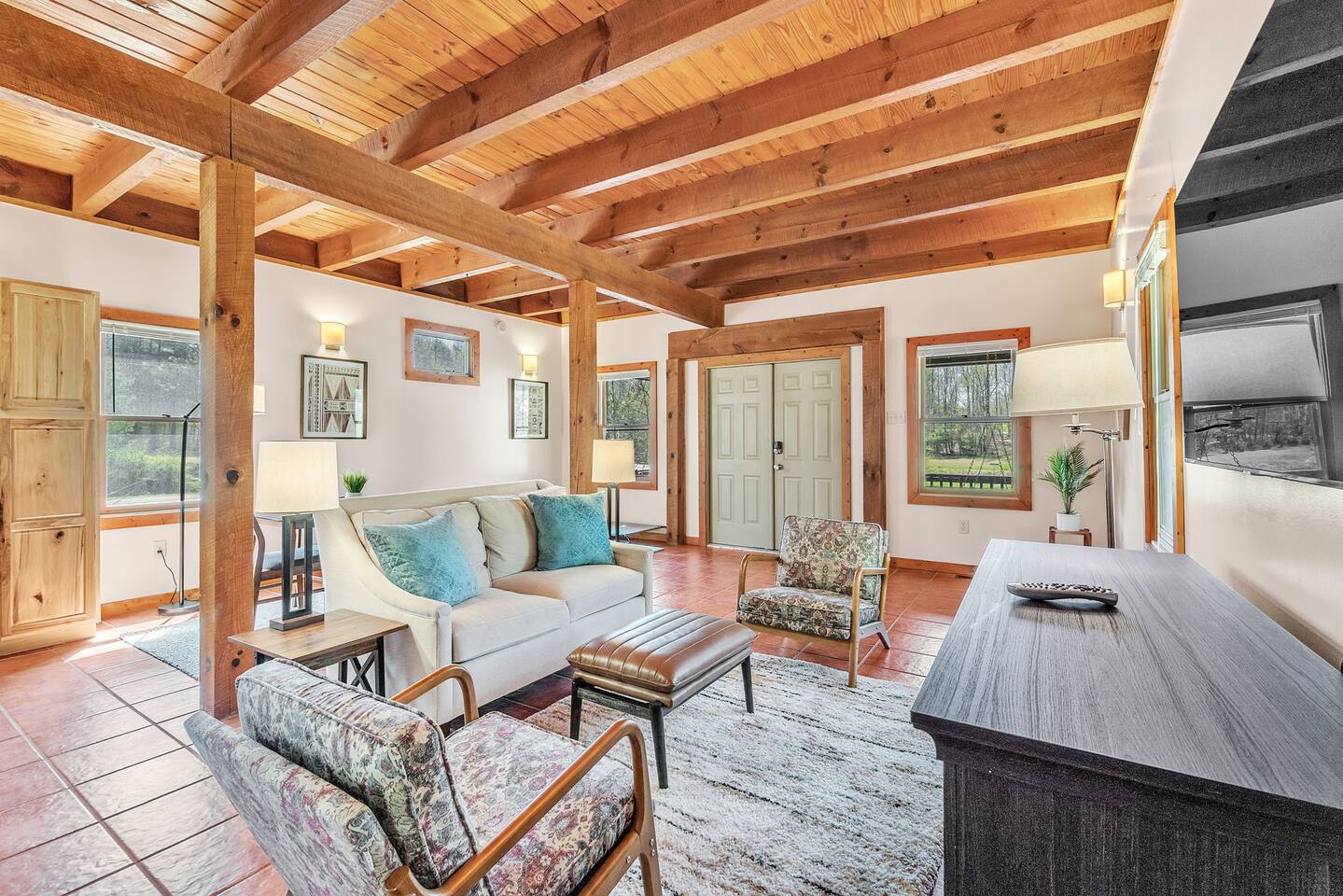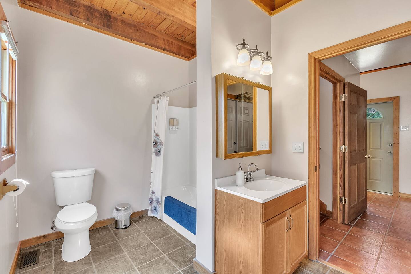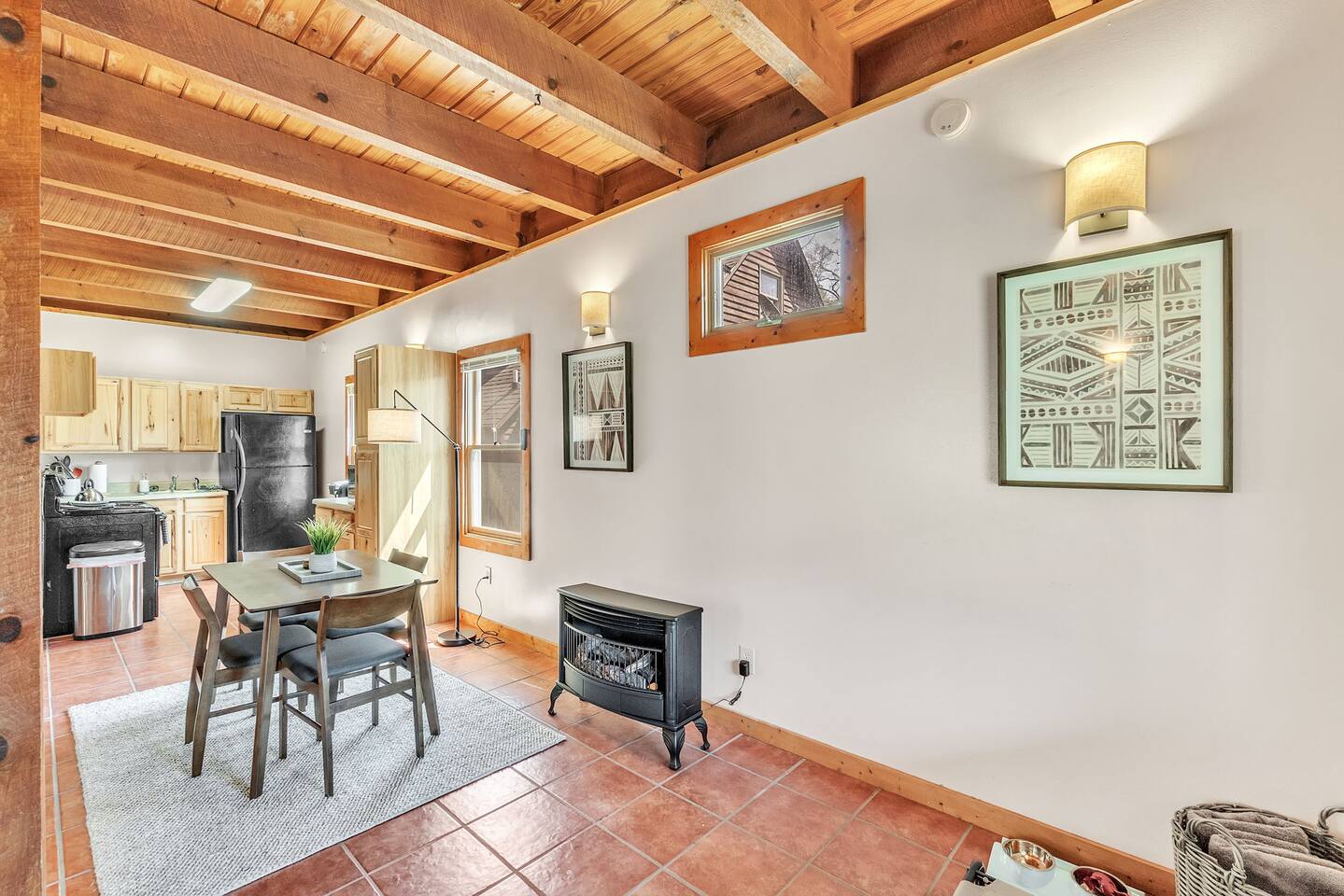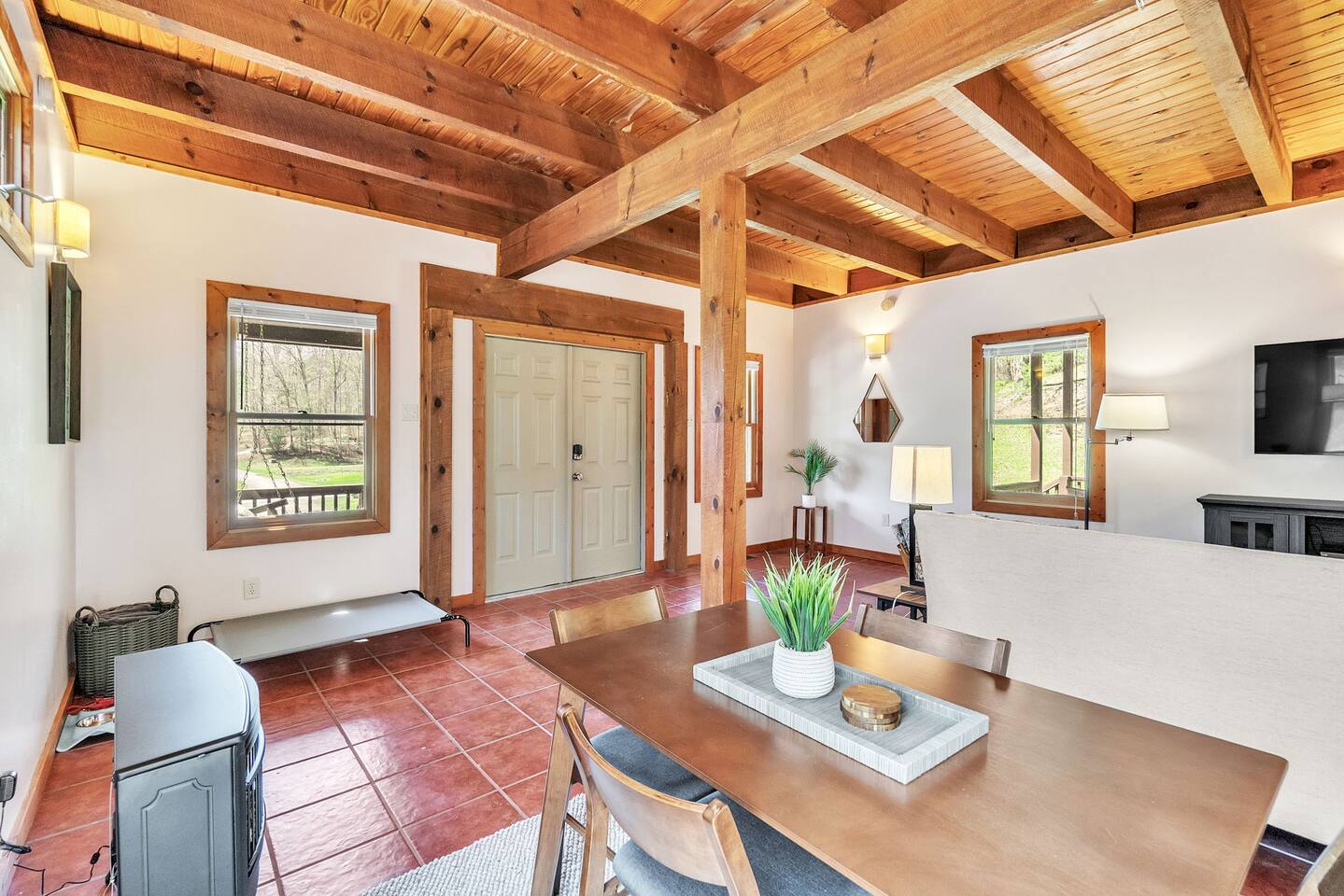 Copper Valley Retreat is your perfect place to get away from it all! Only Verizon and AT&T get reliable service at our retreat. Our cabin is the perfect spot to disconnect and enjoy time with loved ones. Guests may park in our extremely spacious driveway, which includes room for multiple cars. Our front porch has two porch swings and is a relaxing spot to enjoy the sounds of nature. Self check-in is available with an individualized and secure entry code for each guest. Our open living space includes a dining space, fully-stocked kitchen, and living area. The dining space includes seating for 6, and our functional standalone gas fireplace is both charming and useful for additional heating. Our fully-stocked kitchen includes all you need for cooking and baking. We have a refrigerator, dishwasher, microwave, and stove. Additionally, we offer a Keurig coffee station with some complimentary amenities to kick off your stay. Our living area includes a couch, ottoman, and 2 armchairs. Our tv is a Smart TV with Roku access using your own logins. Along the main hallway, you will find our laundry room on the right, which includes a washer/dryer, detergent, and iron/ironing board. On the left is our primary bedroom. It includes a king-sized bed with complimentary plush linens and nightstands/lamps. This bedroom includes a private patio, which includes an outdoor seating area for 2 and a private place to enjoy the natural surroundings. At the end of the hallway is the main bathroom, which includes a sink, toilet, and tub/shower combination. We provide comfy towels and complimentary toiletries for our guests. At the end of the hallway, guests may proceed upstairs to our unique loft area, which includes 2 twin-sized beds and a fun game/play space with a picnic table. The loft also includes a full-sized en-suite bathroom with a walk-in shower, single vanity, and toilet. This bathroom also includes towels and toiletries. At the back of our house is an outdoor eating area for 4. Our cabin is truly a space to disconnect and enjoy the Blue Ridge Mountains! *Pets are welcome in our home with a one-time fee, automatically applied when you add your pet as a guest during booking