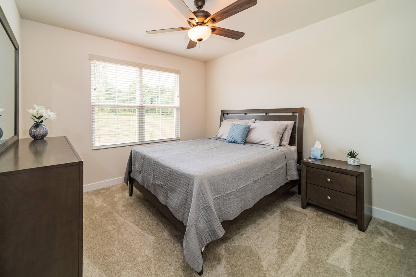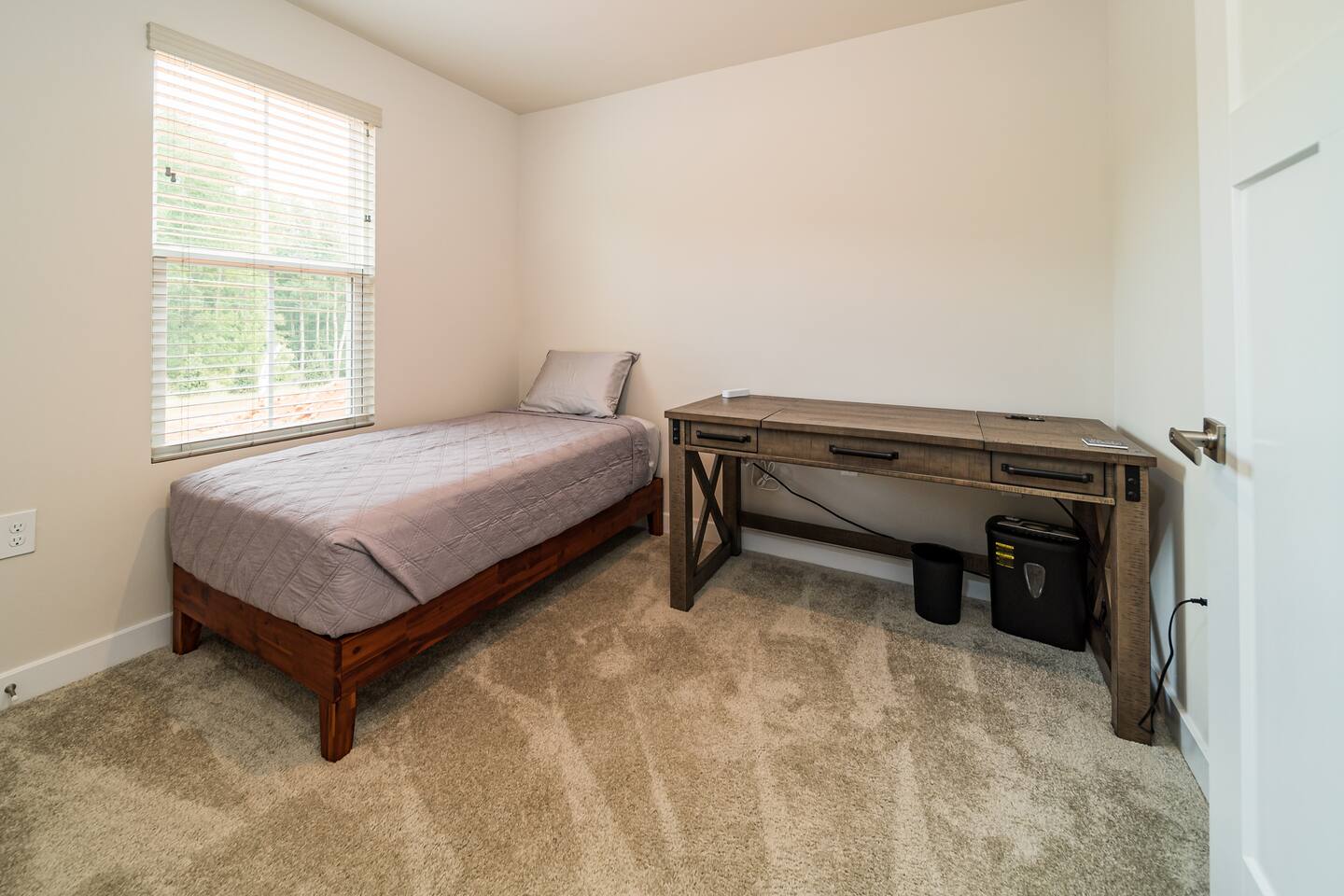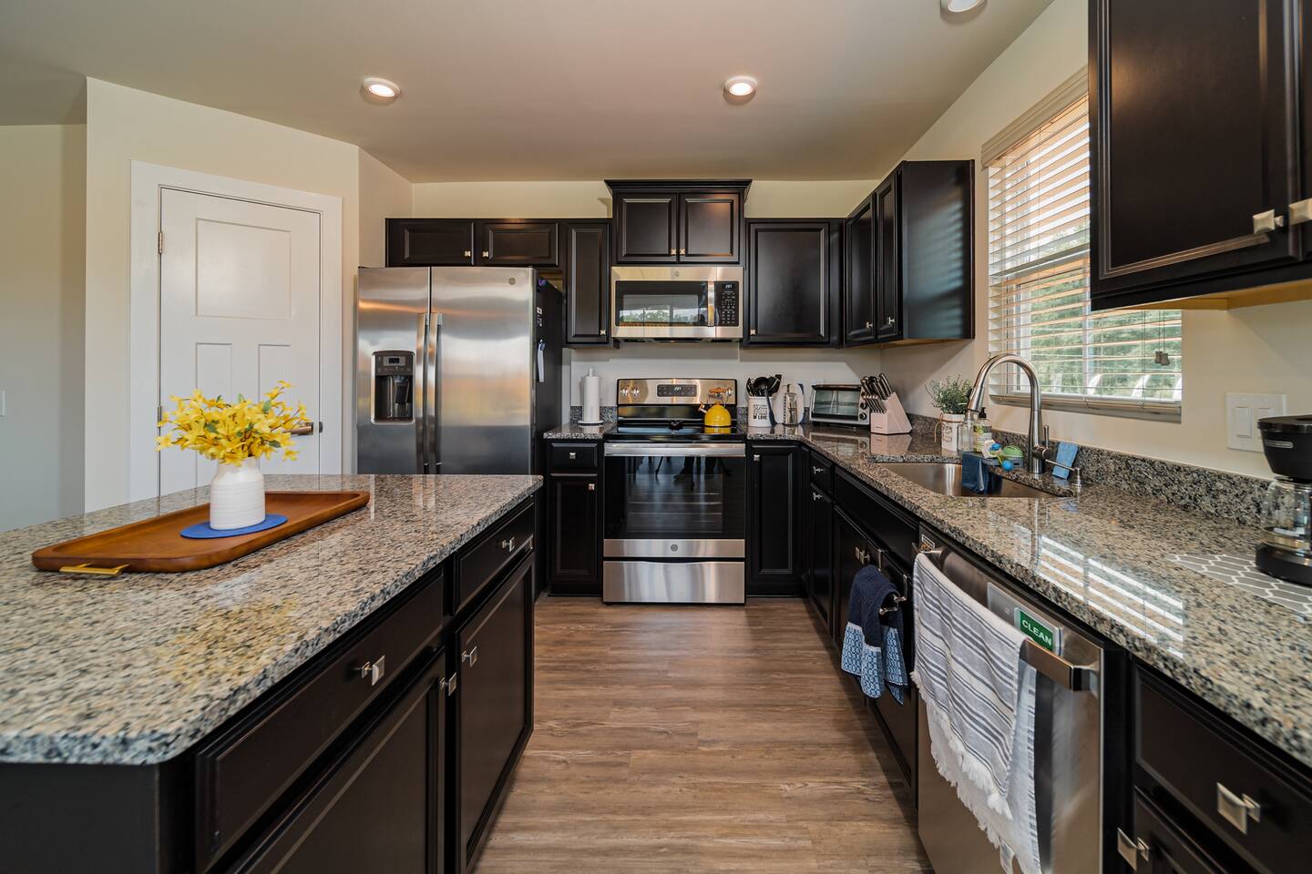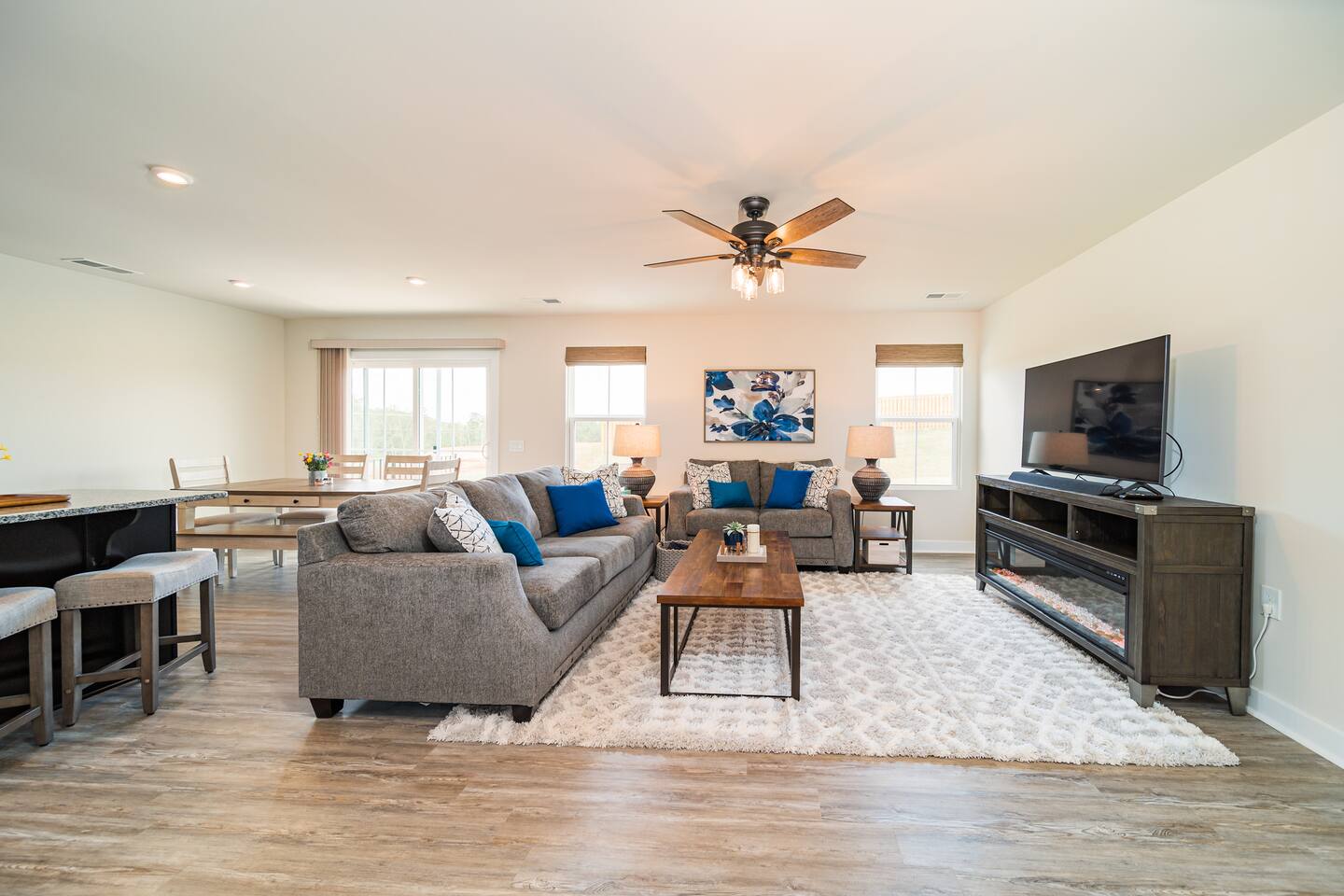 Welcome to Creekstone Cottage: a retreat that feels like home, perfectly designed for stays of 1 to 6 months. Nestled in a newly developed subdivision, the residence effortlessly blends sophistication and comfort. As you arrive, a spacious driveway and 2-car garage make for a smooth entry. A thoughtfully designed foyer greets you, offering convenient storage solutions for your shoes and bags. As you step further inside, you'll find a beautifully furnished Queen Room and a flexible Twin Room that doubles as a home office to your immediate left. Continue down the inviting hallway to discover an expansive, open-concept living area. Anchored by a fully equipped kitchen featuring a spacious island and high-quality stainless steel appliances, the space is ideal for crafting homemade culinary delights. Adjacent to the kitchen, a dining area with seating for six seamlessly transitions to a charming backyard patio, perfect for al fresco meals or relaxation. When it’s time to unwind, settle into the cozy living room featuring plush sofas, a Smart TV for streaming, and an ambient electric fireplace. Privacy is prioritized with the Master Suite set slightly apart from the main living area and other bedrooms. It boasts a luxurious King Bed equipped with a Purple mattress, a large TV, and an en-suite bathroom featuring a double vanity, a stall shower, and access to a generous walk-in closet. The front-facing Queen Room and the Twin Room both offer stylish furnishings and functional spaces, with the Twin Room also featuring a sit-to-stand desk for your work needs. Pet lovers can rejoice, as we welcome your furry friends for an additional fee ($250 for the first pet and $100 for each subsequent pet). We are committed to ensuring an exceptional experience for our guests. If you have any questions or need assistance planning your stay, please don't hesitate to reach out. We look forward to hosting you at Creekstone Cottage, your ultimate home away from home.