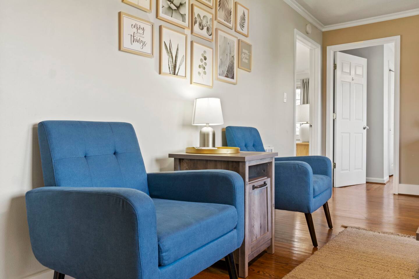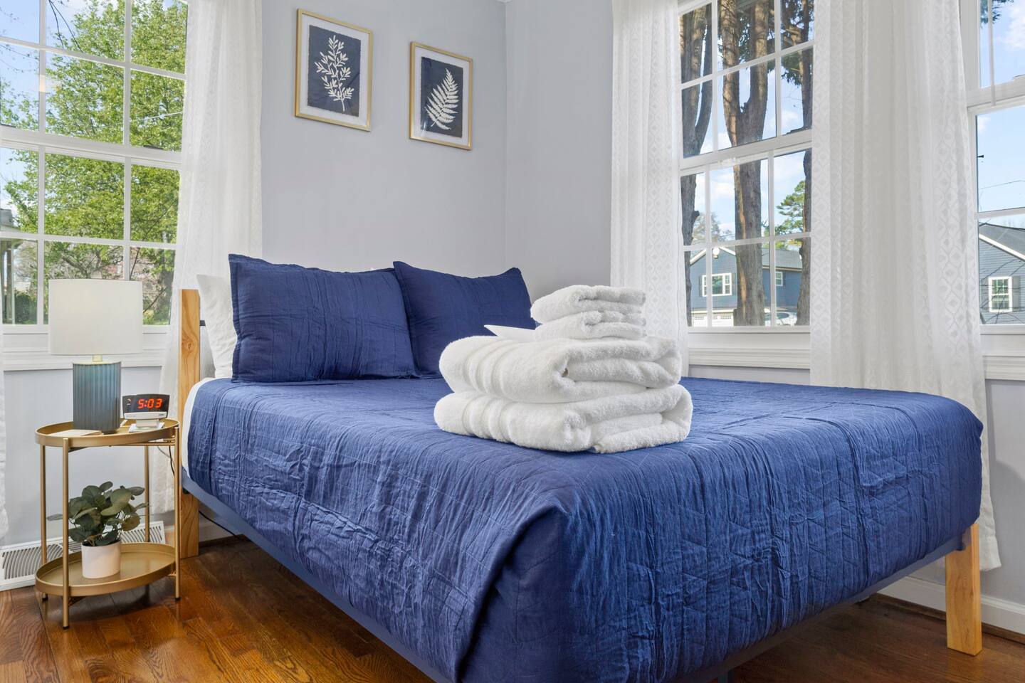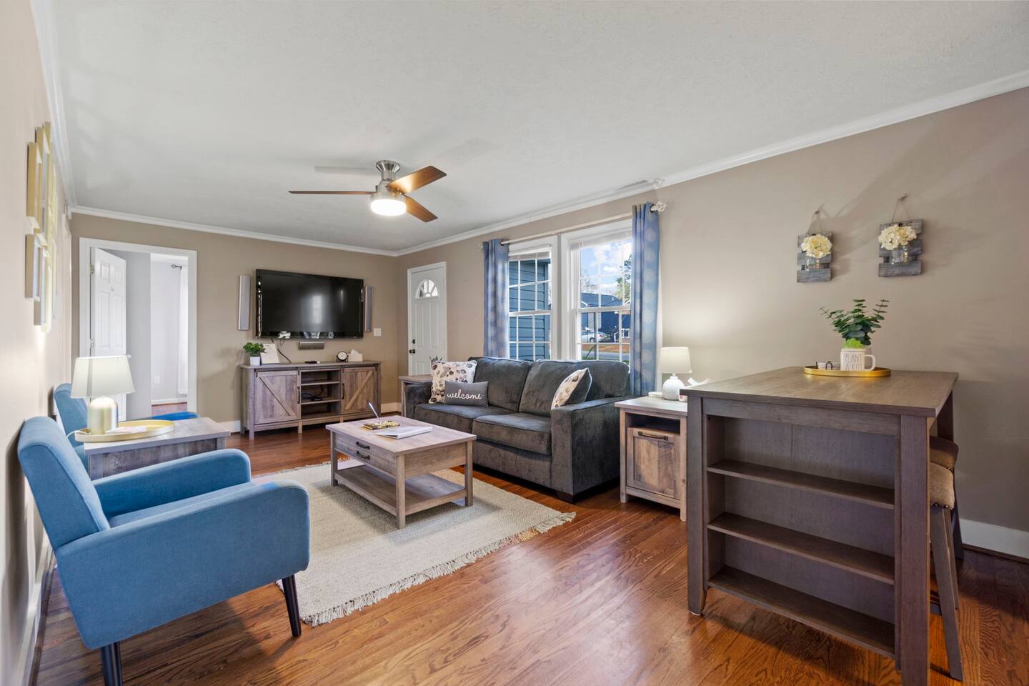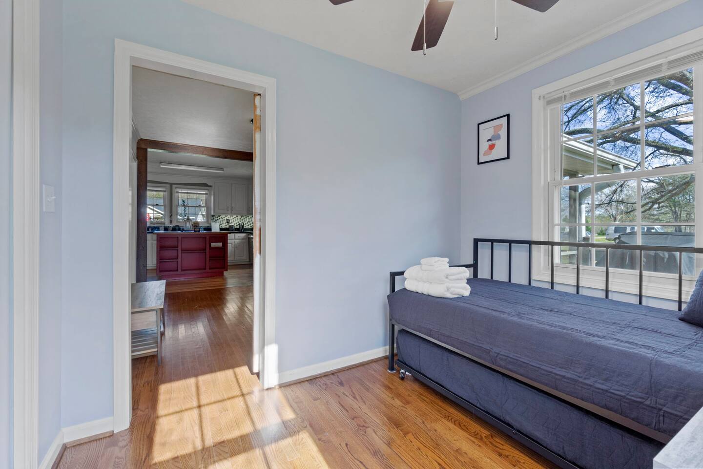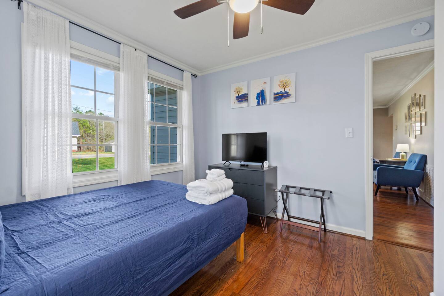 Enoree Cottage is a 3 bedroom, 2 bathroom house with the following set up: -Kitchen- Our kitchen is fully stocked with all you should need to whip up a great meal. Our island provides a great deal of additional counterspace, and we also have 2 stools for it to serve as a secondary eating area. -Living/Dining- Our open Living and Dining area features a Roku enabled TV (no cable), as well as arm chairs, a sofa, and high-top seating for 4. -Master Bedroom- Our Master bedroom features a Queen bed, dresser, nightstands, and TV (guests log in to their own streaming) as well as a dedicated desk in the corner for guest use. The attached bathroom features a stall shower, single vanity, and toilet. -Full Bedroom- Our second bedroom also contains its own Smart TV, dresser, nightstand, and a Full bed with all the linens you will need. -Twin Bedroom- Our Twin bedroom features a twin daybed with a pull-out trundle underneath. All linens are provided for both beds. Inside the closet, you will find a dresser as well as a smart TV for your use. We have a lovely fenced in yard for you to enjoy, and for kids and pets to play in. We have a charcoal grill available for your use during your stay. It’s perfect for outdoor cooking and enjoying meals alfresco on the patio. *Pets are welcome in our home with a one-time fee, automatically applied when you add your pet as a guest during booking We provide a starter pack of essential items for each stay. A screened in porch is located on the side of the home and is furnished with outdoor chairs. There is also a grill available for your use on our deck space. We know you'll have a great stay at Enoree Cottage and we can't wait to have you!