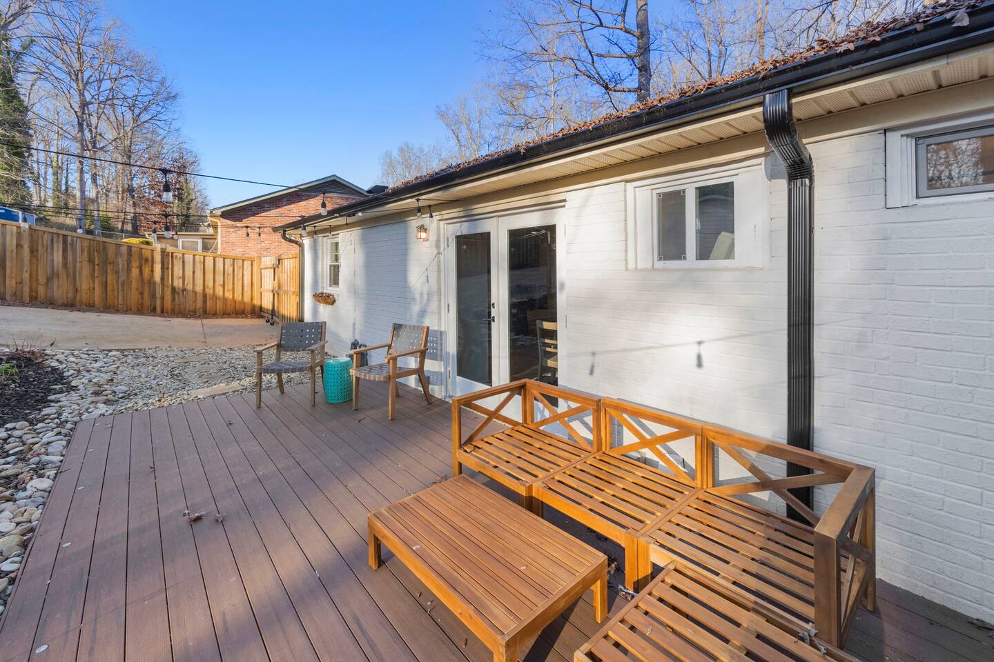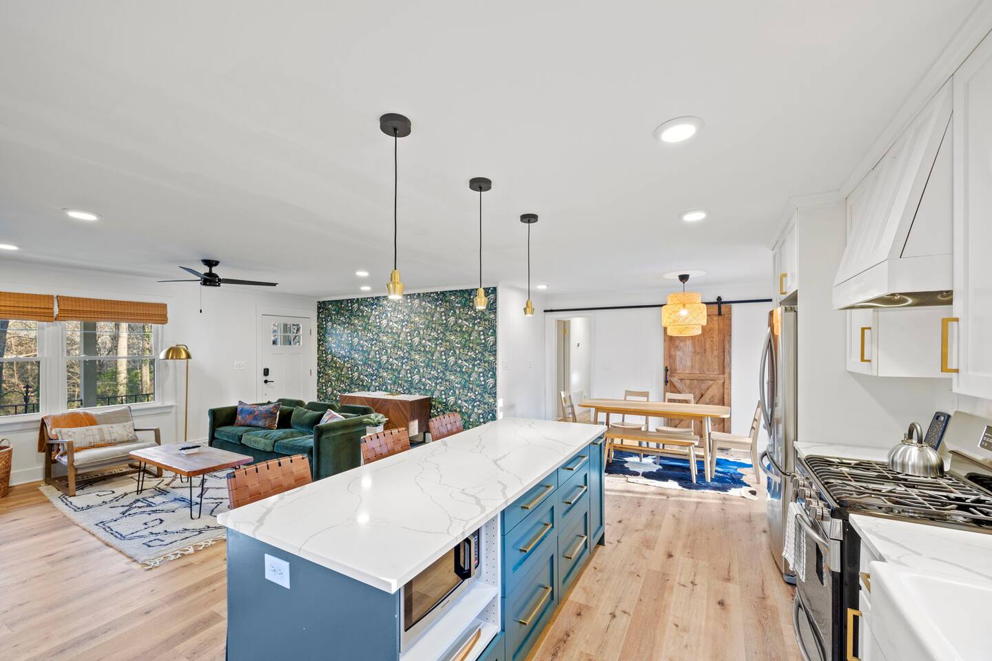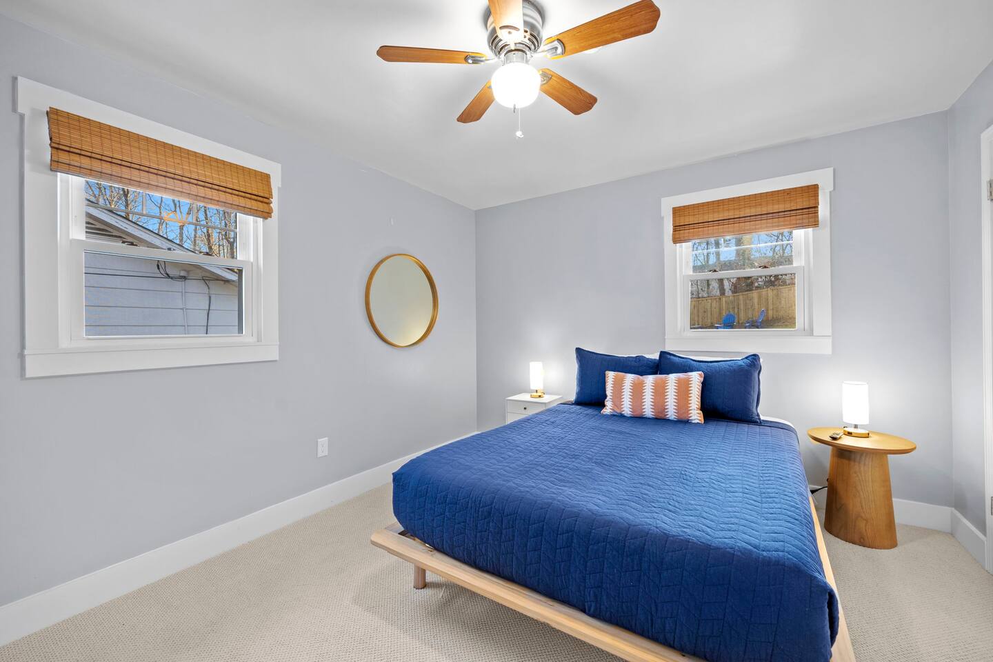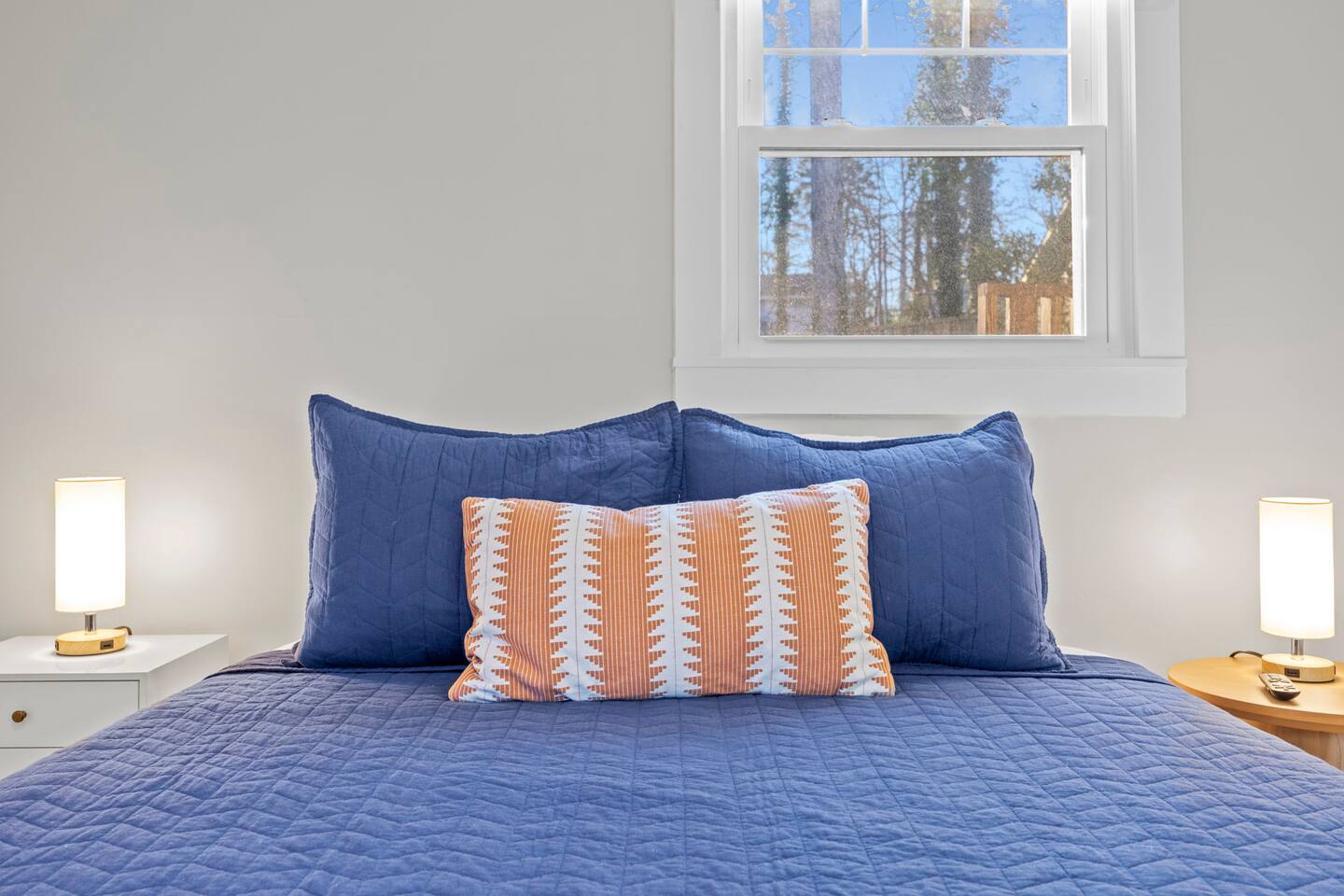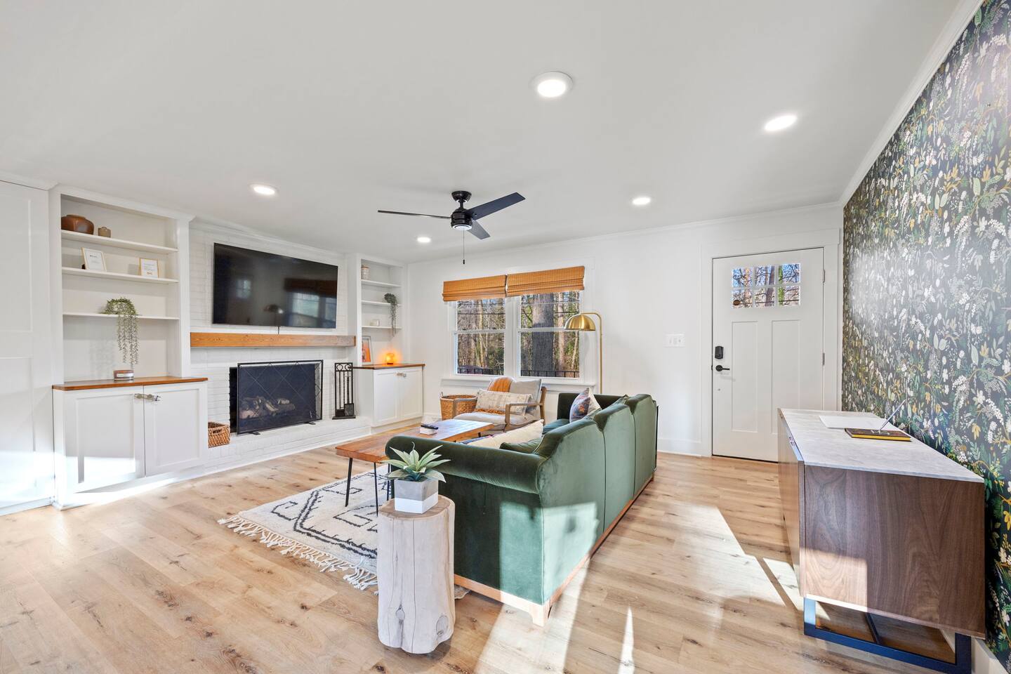 Welcome to Flora Sanctuary, your oasis just outside of Downtown Greenville. Our home is designed thoughtfully to provide an upscale experience for our guests. Our space is open and conducive for gathering with friends and family alike. Upon arriving at the home, guests may park in the spacious driveway. If you open the large rolling gate on the beautiful privacy fence, there is additional parking space. Guests receive a private, individualized code for self-check in at the front door. The entryway is open to the main living space of the house. The living room, dining space, and kitchen are open concept, providing lots of space to be together. ~The Living Area~ The living room's jewel is the beautiful accent wall with a whimsical wallpaper pattern, which was the inspiration for the name of the house. Rest and relax on the custom emerald green sofa or comfortable accent chair. Our television is a smart tv and allows guests to stream with their services (no cable). Our gas fireplace is usable with just the turn of a knob and allows for a cozy evening in. Kick your feet up and relax! ~Kitchen~ Just beside the living room is our fully updated kitchen space. The kitchen is fully stocked with all you need to cook a meal or bake. Our refrigerator, dishwasher, microwave, and oven are stainless steel. The view of the backyard out the window over the sink is delightful. Our coffee station includes a Keurig and complimentary k-cups, sugar, and creamer to start your stay off right. ~Dining Area~ The dining area is furnished with a table for 6. We include all place settings, cutlery, and glasses to set your table beautifully. Enjoy views of the backyard oasis out the large glass doors that lead to the patio. ~Patio and Backyard~ Our fully fenced backyard is perfect for gathering. The patio space includes an outdoor sectional and accent chairs for guests to enjoy. We include a propane grill and barbecue utensils for the perfect evening grilling out and enjoying the yard! Our backyard has a fire pit and Adirondack chairs to make s'mores or just enjoy time together. ~Laundry Room~ Back inside the house, just off the dining area is our laundry room. Tucked away with custom barn doors, our washer and dryer are both quiet and functional. We include detergent for our guests' use. Likewise, find an iron and ironing board to the side of the washing machine. ~Hall Bathroom~ Proceeding down the hallway, guests will find the hall bathroom, which is updated with gorgeous subway tile and gold fixtures. This bathroom includes a single vanity, toilet, and tub/shower combination. Each bathroom is stocked with fluffy towels and toiletries for our guests to use. ~Twin Bedroom~ The first bedroom down the hall is the twin bedroom, which is thoughtfully decorated and includes 2 twin beds. These beds are made with premium linens, and we include extra pillows and blankets for your comfort. Between the beds is a nightstand and lamp for additional lighting. We also offer USB chargers in all bedrooms for charging devices. ~Queen Bedroom~ Next, we have the queen bedroom. This room includes 1 queen-sized bed, sure to be comfortable for our guests. The bed is flanked by 2 nightstands with lamps, and the closet is spacious for storing luggage. The owners included a second smart tv in this bedroom for enjoying movies or shows at the end of the day. ~Master Suite~ Across the hall is the master suite, which is an oasis from the hustle and bustle of daily life. This bedroom includes large custom built-in wardrobe for easy storage. The king-sized bed is comfortable, and the hunter green accent wall gives a peaceful, natural aesthetic. We include nightstands with lamps for additional lighting, and this room boasts an en-suite bathroom. ~Master Bathroom~ Wow! The master bathroom is sure to impress. This fully updated bathroom can be compared to a spa experience. The shower includes multiple heads, a bench, toiletries, and a Bluetooth speaker! The double vanity has gorgeous countertops, and the decor is second to none. Relax and pamper yourself in this space! We can't wait to welcome you at Flora Sanctuary!
