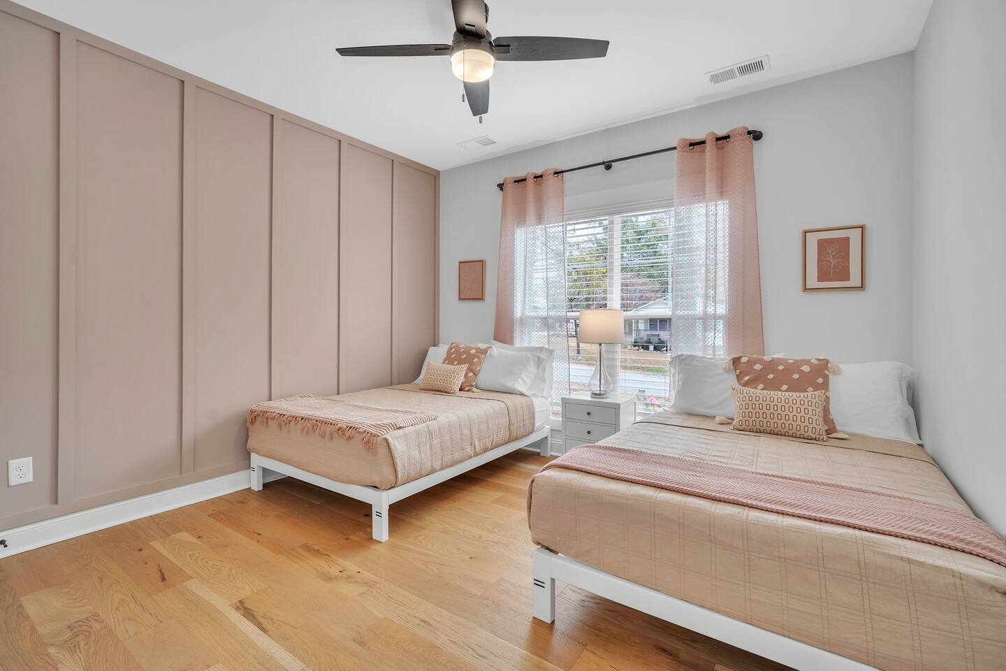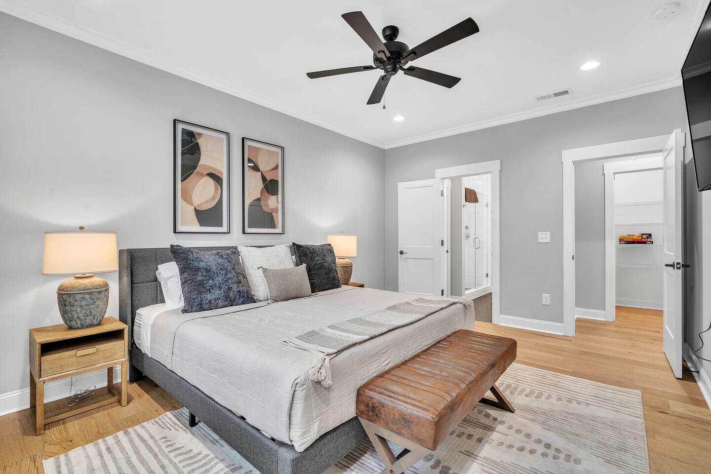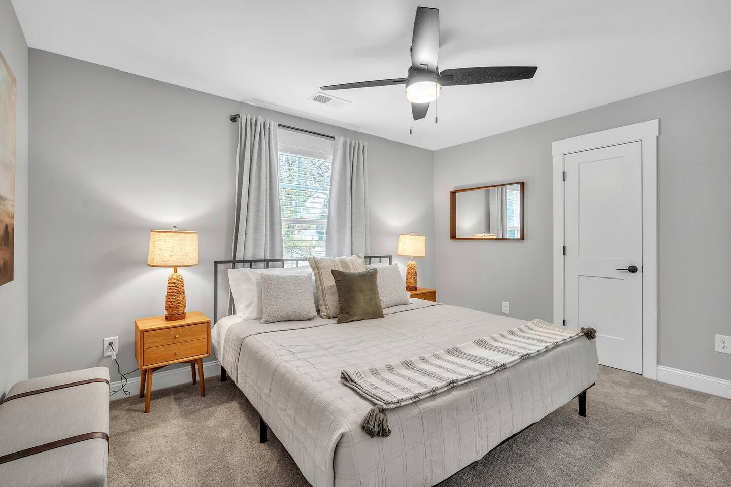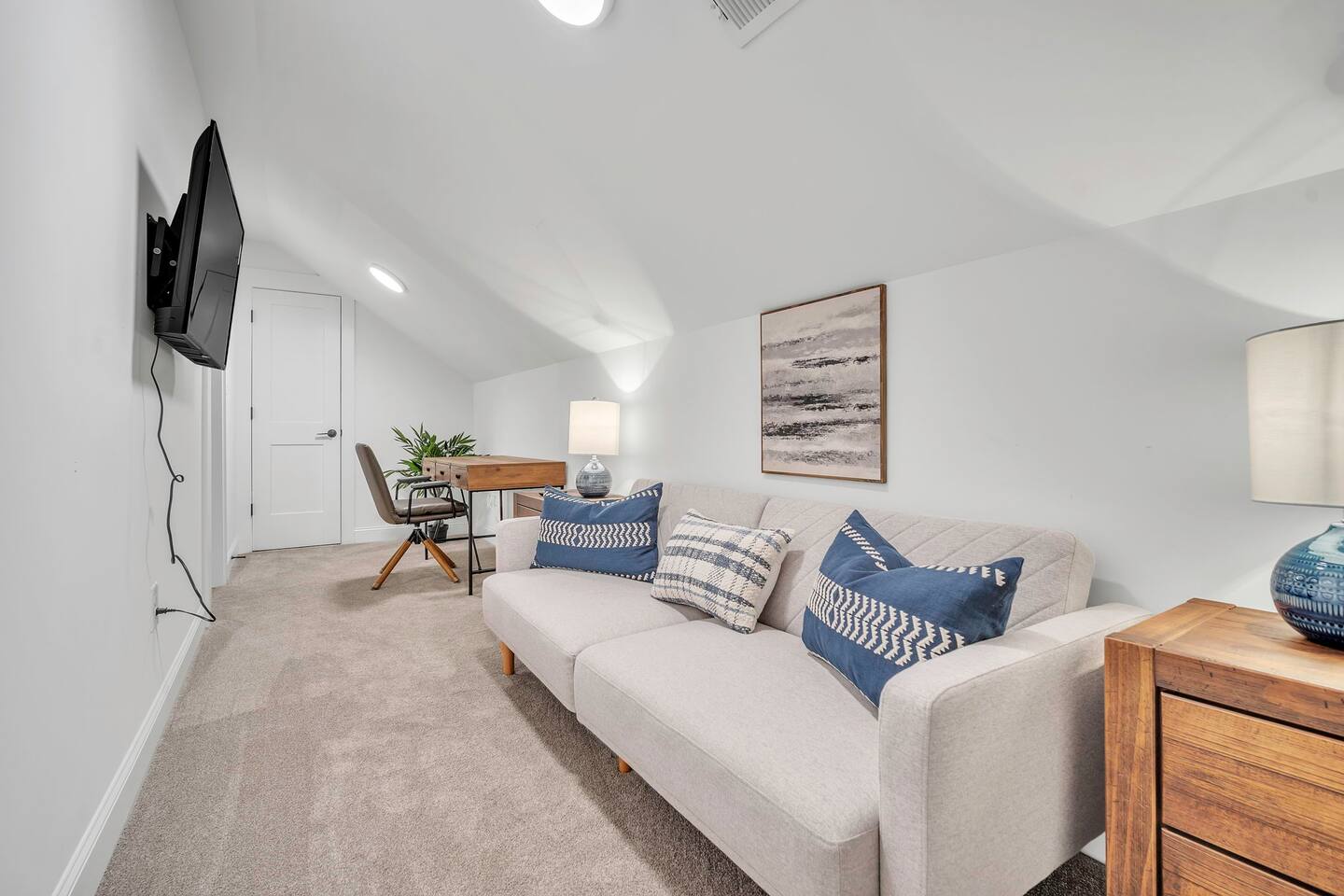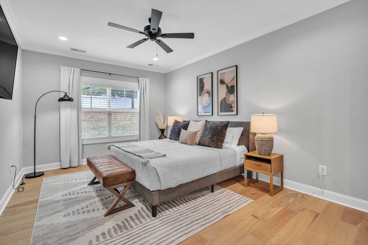 Hearthside @ Claremont is a beautifully appointed Airbnb property located in the heart of Greenville, offering an exquisite blend of luxury and comfort. This spacious home features four (3 king beds, 2 full beds) elegantly designed bedrooms and three full bathrooms, comfortably accommodating up to eight guests, making it an ideal choice for family gatherings or group travels. Feel free to park in the 2-car garage, available for security for your vehicles, or the spacious driveway. As you enter the home, you are greeted by a warm and inviting living area, complete with plush seating and tasteful decor that creates a cozy atmosphere for relaxation and socializing and includes a smart TV for guest streaming services. The living room flows seamlessly into the dining area, where a large table stands ready for family meals or evening entertainment. Enjoy the secondary living space upstairs, which includes a second tv, couch, and cozy area for more intimate gatherings. One of the amenities offered at Hearthside @ Claremont is the designated workspace in the upstairs loft. This area is thoughtfully equipped with a comfortable desk and chair, providing a quiet corner for those needing to stay connected for work or study. High-speed internet ensures productivity is never hindered. Please note that there is a fold-out futon that could sleep an additional 2 people if needed (to accommodate a total of 12 guests). Please contact the host if you'll be utilizing this space to ensure sheets are provided. Each bedroom in the home is a serene retreat in itself, furnished with comfortable beds and high-quality linens, ensuring a restful night's sleep. The master bedroom is particularly luxurious, featuring a king-size bed and an en-suite bathroom for added privacy and convenience. The 2 hall bedrooms each include king beds, and the fourth bedroom includes 2 full sized beds. The bathrooms are modern and well-maintained, stocked with fresh towels and essential toiletries, adding to the comfort and ease of your stay. The heart of the home is undoubtedly the fully stocked kitchen, where guests can find everything needed to prepare and enjoy meals. From modern appliances to a comprehensive selection of cookware and utensils, the kitchen is a dream for both the experienced cook and the casual meal preparer. Whether it’s a quick breakfast or a full-fledged family dinner, the kitchen is equipped to handle it all. One of the highlights of Hearthside @ Claremont is the screened porch. This charming space offers a tranquil setting for morning coffees or evening conversations, all while enjoying the view of the surroundings without the bother of insects. The home also boasts a beautifully maintained fenced yard, providing a safe and private outdoor space for children or pets (with a fee) to play or for adults to unwind. * Pets are welcome in our home with a one-time fee, automatically applied when you add your pet as a guest during booking In summary, Hearthside @ Claremont is more than just a place to stay; it's a luxurious and cozy home away from home, designed with attention to detail and equipped to ensure a memorable and comfortable experience for all who visiting.