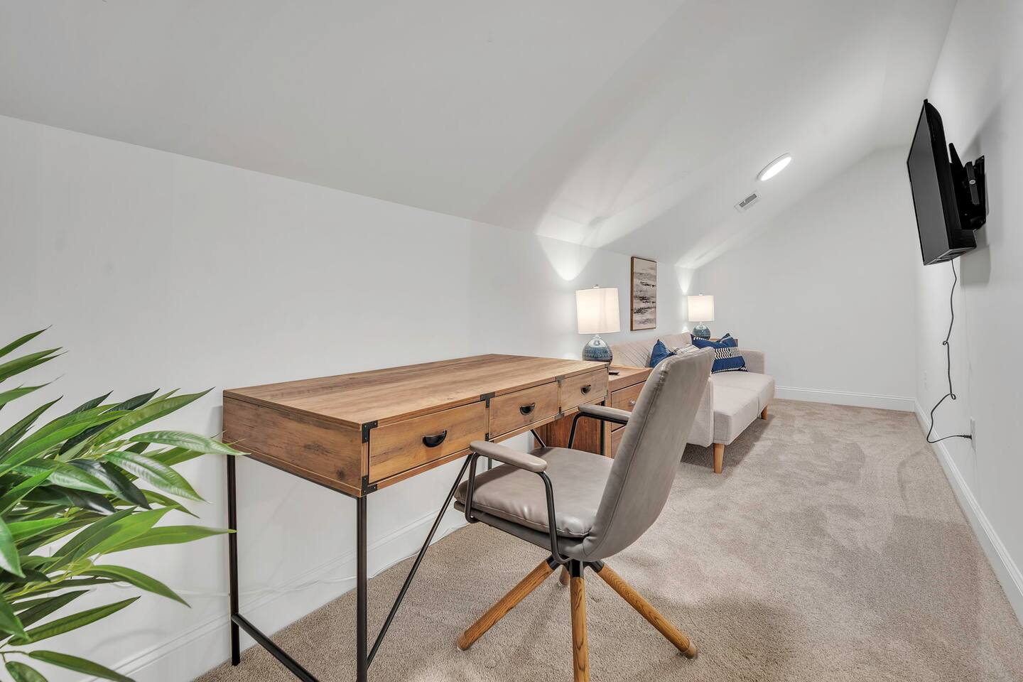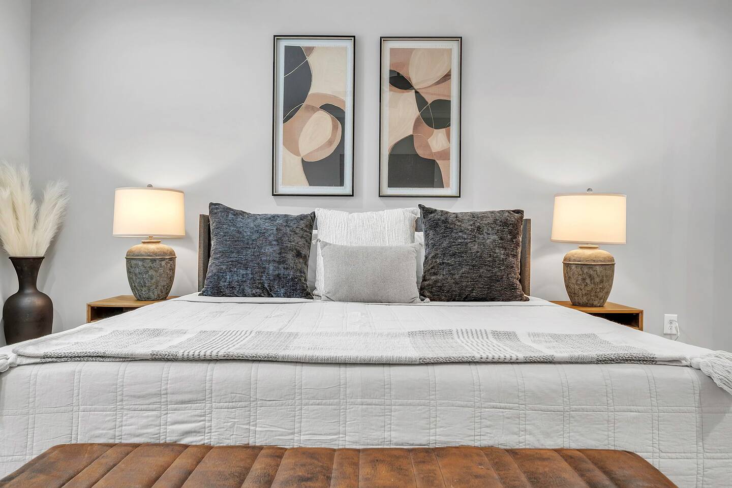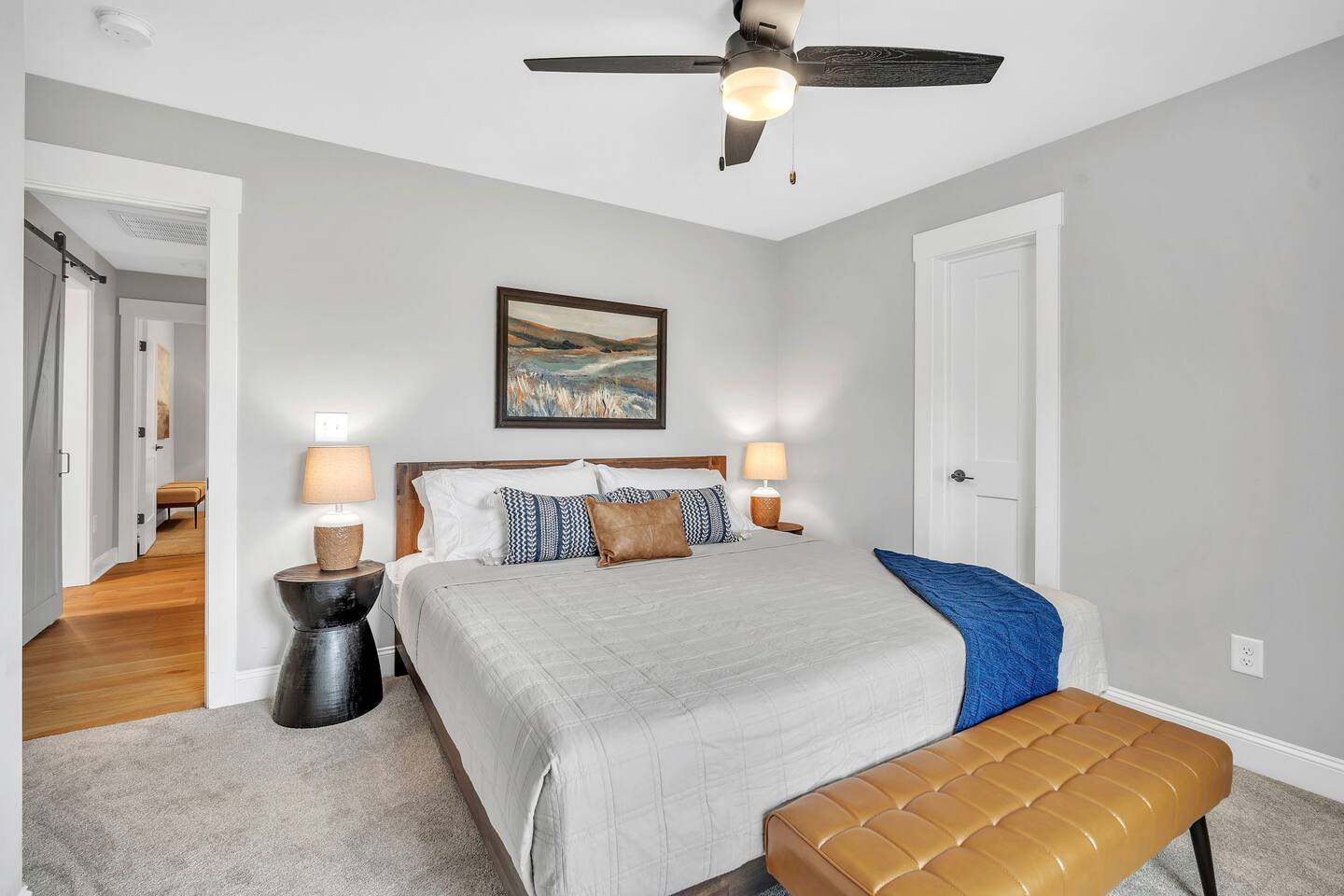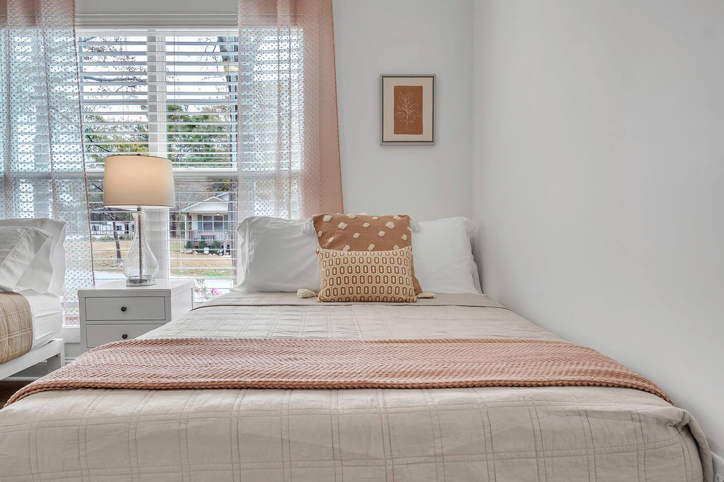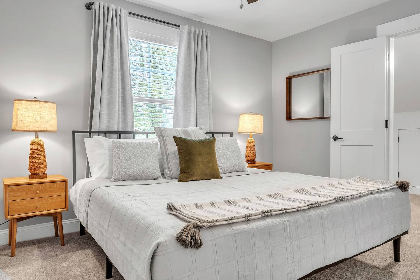 Hearthside @ Claremont is a beautifully appointed Airbnb property located in the heart of Greenville, offering an exquisite blend of luxury and comfort. This spacious home features four (3 king beds, 2 full beds) elegantly designed bedrooms and three full bathrooms, comfortably accommodating up to eight guests, making it an ideal choice for family gatherings or group travels. Feel free to park in the 2-car garage, available for security for your vehicles, or the spacious driveway. As you enter the home, you are greeted by a warm and inviting living area, complete with plush seating and tasteful decor that creates a cozy atmosphere for relaxation and socializing and includes a smart TV for guest streaming services. The living room flows seamlessly into the dining area, where a large table stands ready for family meals or evening entertainment. Enjoy the secondary living space upstairs, which includes a second tv, couch, and cozy area for more intimate gatherings. One of the amenities offered at Hearthside @ Claremont is the designated workspace in the upstairs loft. This area is thoughtfully equipped with a comfortable desk and chair, providing a quiet corner for those needing to stay connected for work or study. High-speed internet ensures productivity is never hindered. Please note that there is a fold-out futon that could sleep an additional 2 people if needed (to accommodate a total of 12 guests). Please contact the host if you'll be utilizing this space to ensure sheets are provided. Each bedroom in the home is a serene retreat in itself, furnished with comfortable beds and high-quality linens, ensuring a restful night's sleep. The master bedroom is particularly luxurious, featuring a king-size bed and an en-suite bathroom for added privacy and convenience. The 2 hall bedrooms each include king beds, and the fourth bedroom includes 2 full sized beds. The bathrooms are modern and well-maintained, stocked with fresh towels and essential toiletries, adding to the comfort and ease of your stay. The heart of the home is undoubtedly the fully stocked kitchen, where guests can find everything needed to prepare and enjoy meals. From modern appliances to a comprehensive selection of cookware and utensils, the kitchen is a dream for both the experienced cook and the casual meal preparer. Whether it’s a quick breakfast or a full-fledged family dinner, the kitchen is equipped to handle it all. One of the highlights of Hearthside @ Claremont is the screened porch. This charming space offers a tranquil setting for morning coffees or evening conversations, all while enjoying the view of the surroundings without the bother of insects. The home also boasts a beautifully maintained fenced yard, providing a safe and private outdoor space for children or pets (with a fee) to play or for adults to unwind. * Pets are welcome in our home with a one-time fee, automatically applied when you add your pet as a guest during booking In summary, Hearthside @ Claremont is more than just a place to stay; it's a luxurious and cozy home away from home, designed with attention to detail and equipped to ensure a memorable and comfortable experience for all who visiting.