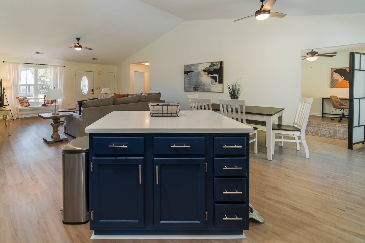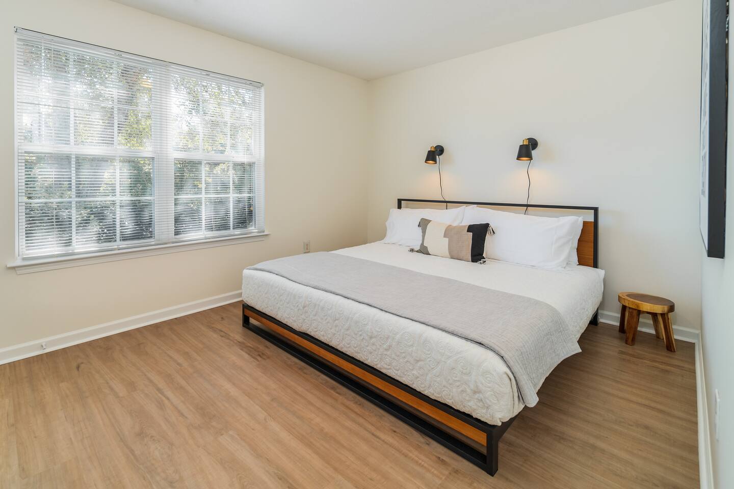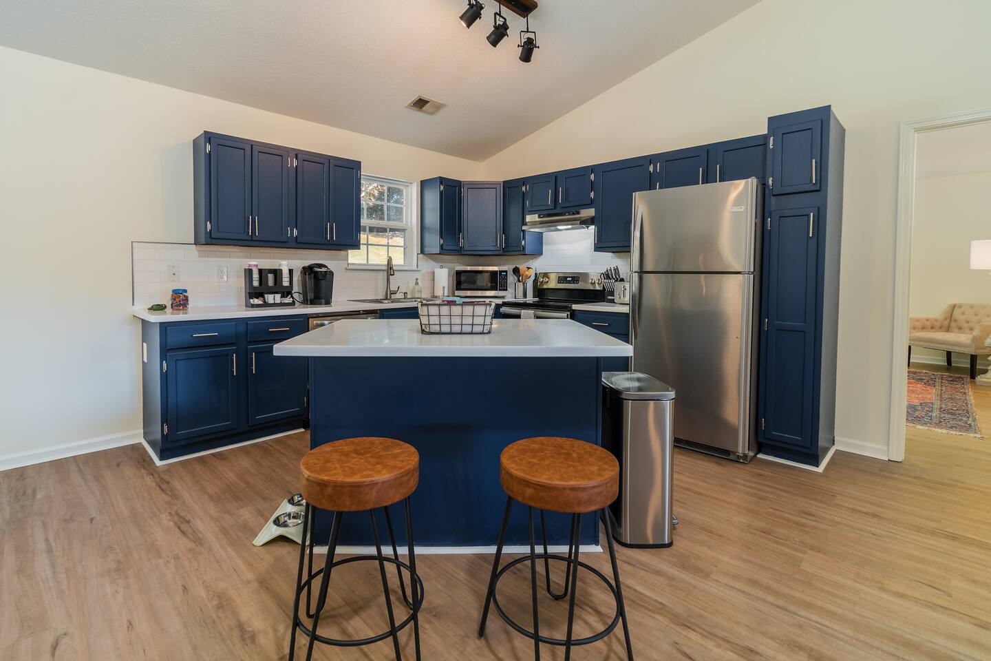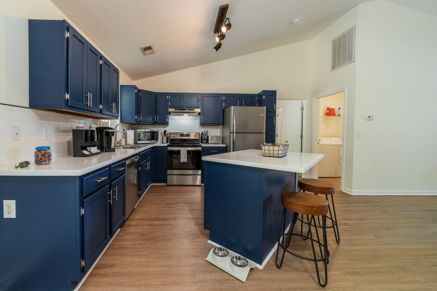 Welcome to Paris Mountain Pool House! We can't wait to welcome you into our home. Upon arriving, guests can park in our driveway, or in our 2 car garage (must be opened from the inside). Our front door is equipped with a smart lock for easy, keyless entry. Once inside, you will be in our open living area, complete with a large, cozy sectional sofa, bench seating, and Smart TV (guests can log in to their streaming services. No cable). Off to the corner is a beautiful kitchen with stainless-steel appliances and all you will need to whip up a great meal. Our dining room table seats 6, with 4 chairs and an upholstered bench. There is also additional bar seating for two at the kitchen island. Surrounding the living space are our bedrooms, with the Master on its own end of the house, and the other three taking up the opposite side. The Master Bedroom is spacious and lush, featuring a King Bed, large side tables and reading lamps, a reading nook, TV (guests can login to their own streaming services, no cable), and an en suite bathroom featuring a tub/shower combination, toilet, and single vanity. At the front corner of the home is our second bedroom, the King bedroom. This bedroom features a King bed, small side tables, above bed reading lights, dresser, and closet. Next door to this room is our hall bath, featuring a large single vanity, toilet, and tub/shower combination. Next door is the twin room, featuring two twin beds and fun decor such as a trunk as a nightstand, butterfly art, and a vintage globe. At the back corner of the house is our 4th bedroom/office. This room has a screen to function as a door for privacy and has a day bed (twin sized) with a trundle that pulls out from underneath. It also features its own closet and a corner desk with a lamp and a chair for those who have work to get done. Guests traveling with small children should note that we have a pack and play and highchair provided for your use. Finally, we have our beautiful fenced in backyard, complete with a custom pool. The salt water pool is open year-round, but is not fully heated-- please use at your own discretion. Also, this pool features multiple levels, with seating areas, a step-down, step up, and then a more abrupt deep end. It is not a standard slanted pool. In addition to the pool, we have a covered swing, high top seating for 4, and a gas grill for your use. * Pets are welcome in our home with a one-time fee, automatically applied when you add your pet as a guest during booking We know you'll love our home as much as we do, and we can't wait to have you!
