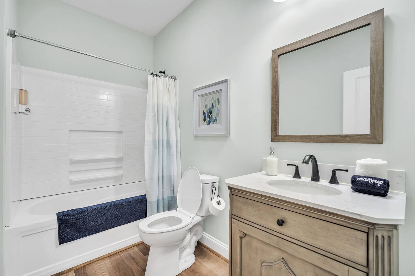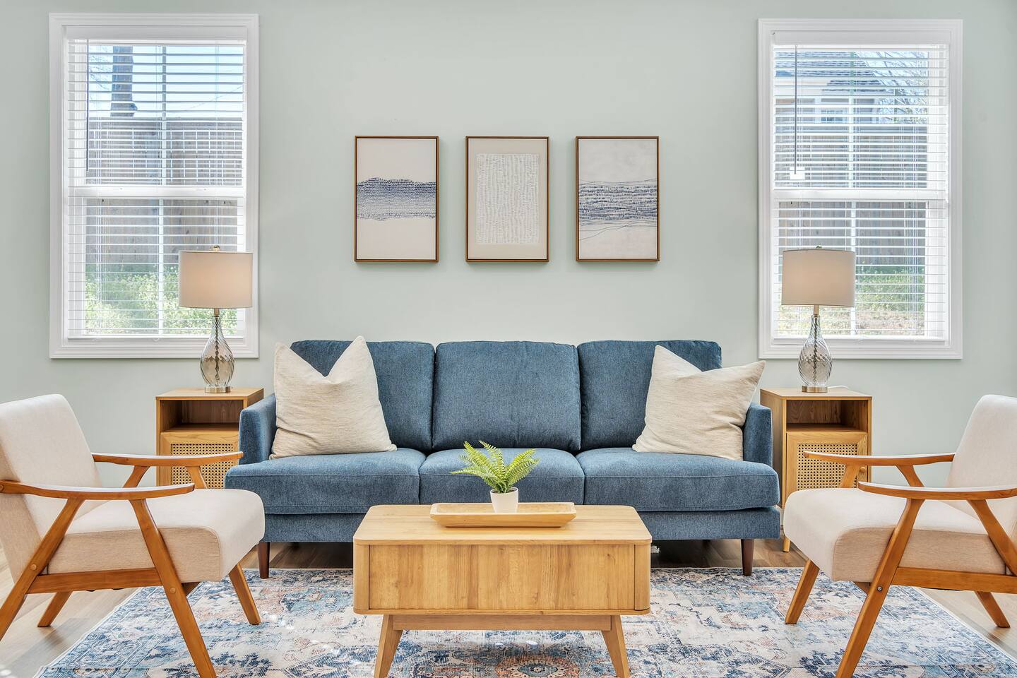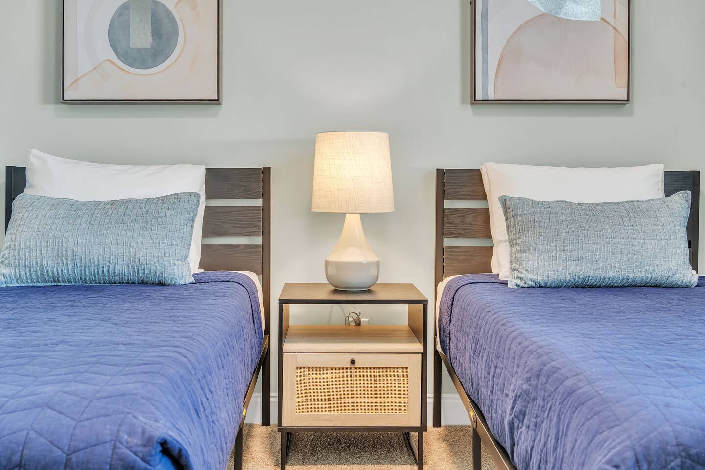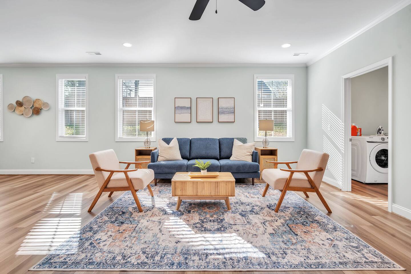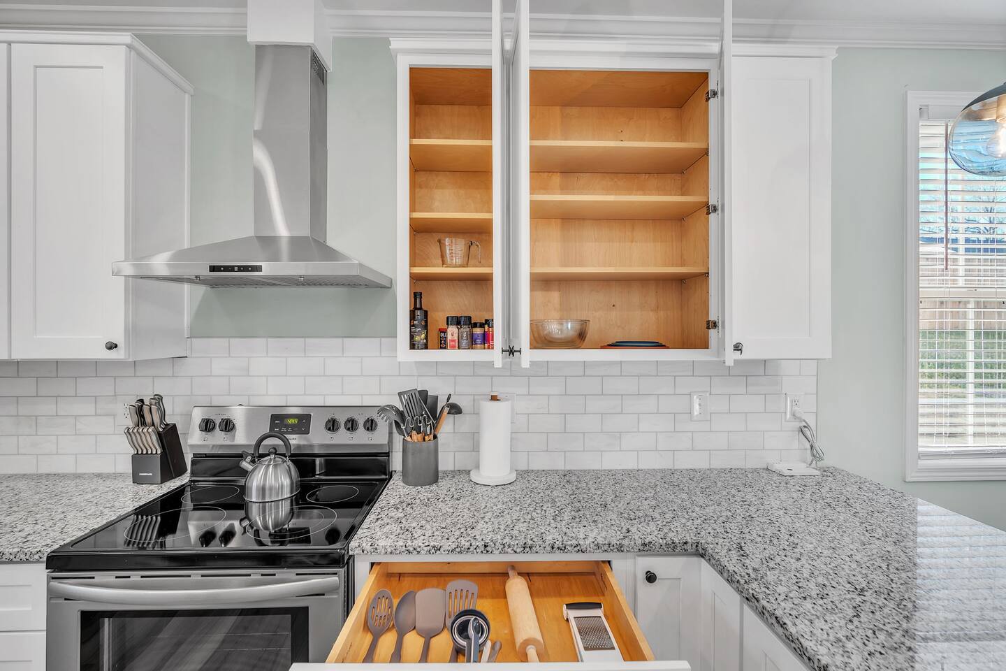 Welcome to Blue Ridge Cottage- your home away from home in the charming small town of Greer, SC! Upon arrival, guests may park in the driveway. Our charming rocking chair front porch is the perfect spot to sit and enjoy nature. We offer convenient self-check in with personalized entry codes for each guest. Once inside, guests will feel welcomed by our open concept living space. Our peaceful, elegant decor is comfortable and curated with our guests in mind. The living space includes a couch, 2 accent chairs, and a smart tv with Roku for your streaming services. The dining table includes seating for 6, and is conveniently located by the newly updated kitchen. Our kitchen is fully stocked with all you need to prepare meals or bake with family and friends. We have a Keurig coffee station with complimentary amenities to kick off your stay. At the front of the house is the twin bedroom, which includes 2 twin beds with premium linens for your enjoyment. This room includes a closet for storage. The hall bathroom includes a tub/shower combination, single vanity, and toilet. We include fluffy towels and complimentary toiletries for your use. The second bedroom has a queen sized bed and closet. At the back of the house and tucked away is the primary suite, which includes an en-suite bathroom and walk-in closet. This room is staged with a king-sized bed and smart tv for your streaming services. Our bathroom is extremely spacious and has a double vanity, toilet, large tub, and walk-in shower. Our laundry room has a washer and dryer, iron/ironing board, and complimentary detergent. * Pets are welcome in our home with a one-time fee, automatically applied when you add your pet as a guest during booking Our back porch includes patio chairs and is the perfect spot to enjoy the peaceful surroundings. We can't wait to have you at Blue Ridge Cottage!