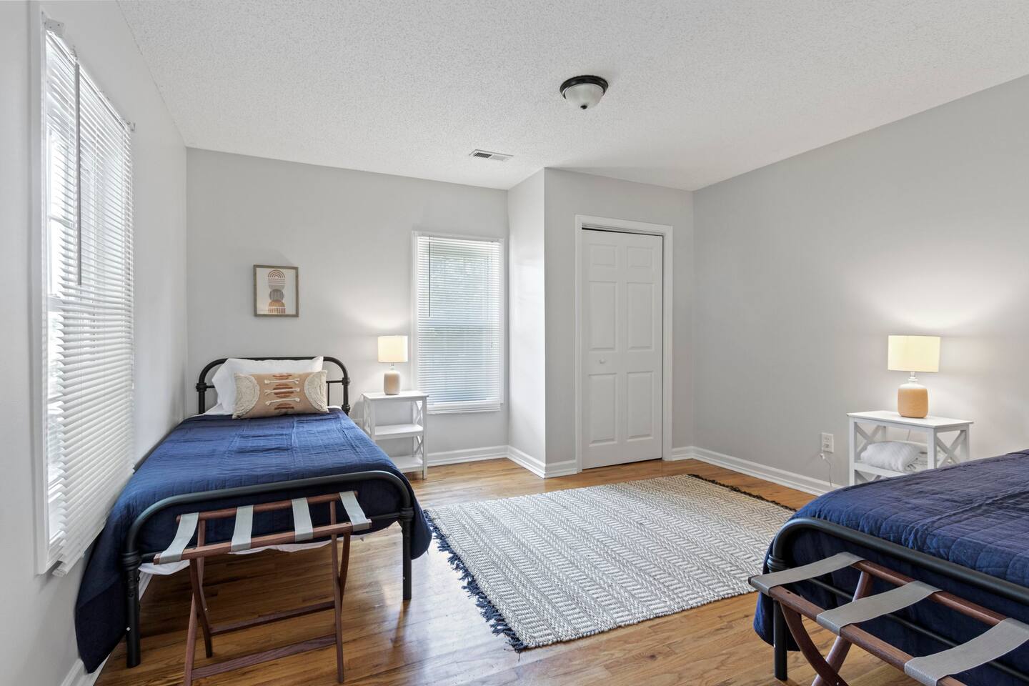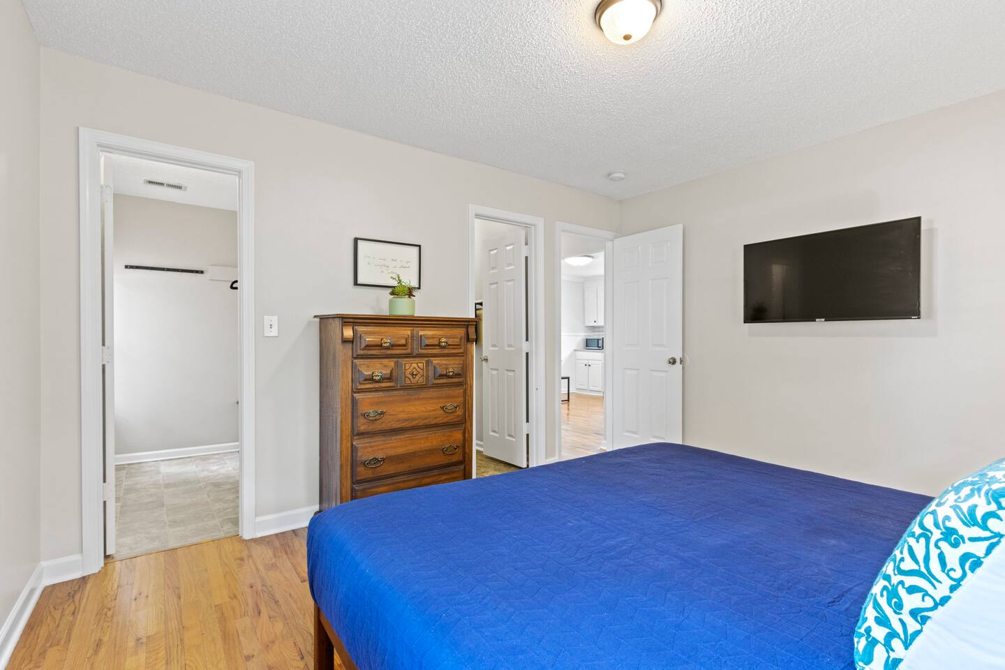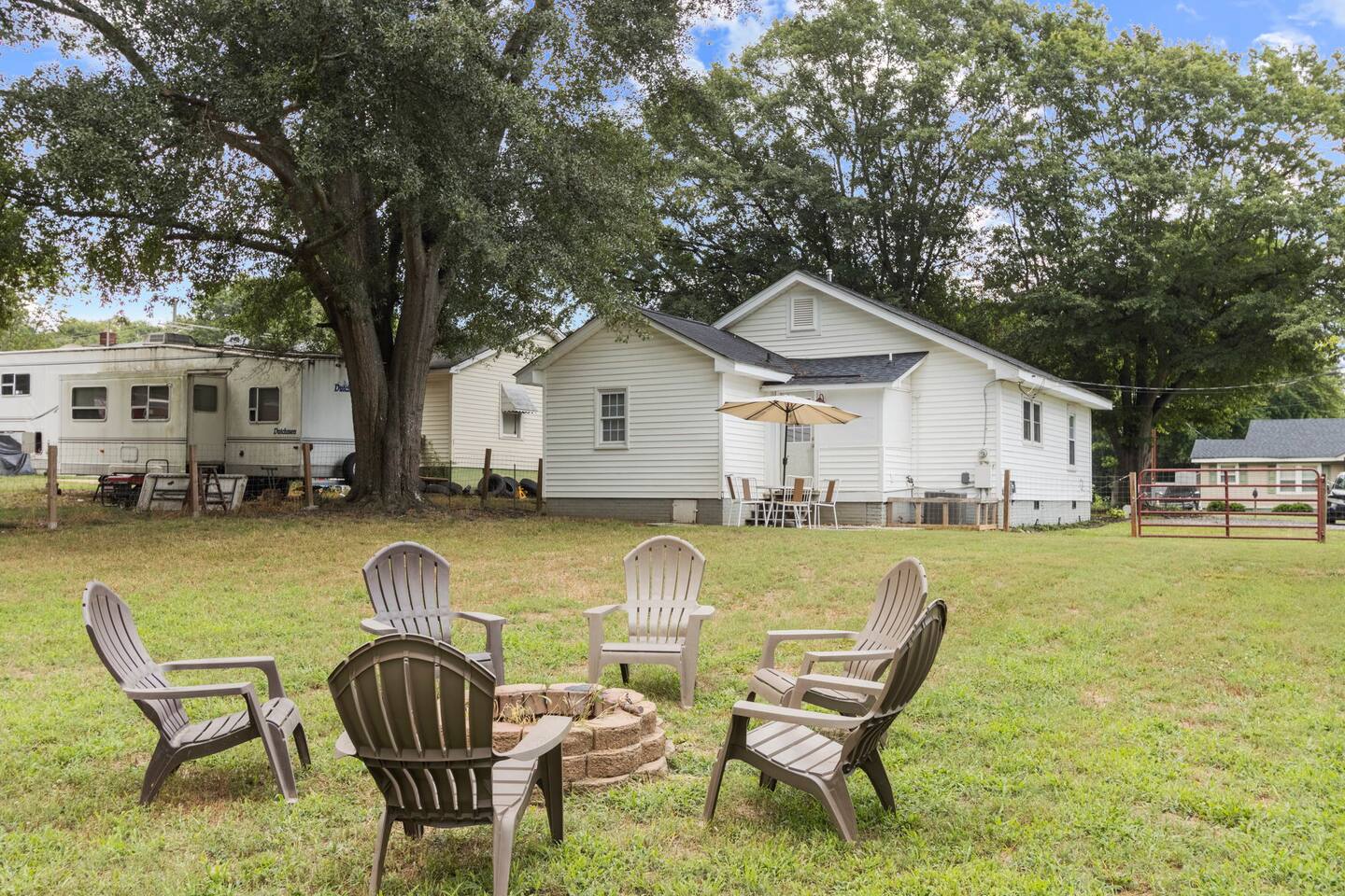 Our home is located in a residential area in Greer. The lot to the left of us is vacant, providing a buffer between the next neighbor. The lot to the right of us does have home, and they tend to park their camper in the backyard and often are working outside. Pets are welcome with a one time pet fee. Our driveway is on the left side of the home, and has parking for several homes. Our front porch features a sliding rail so that you can block it off for children to play, as well as a front porch swing. Upon entering the home, guests will find a cozy living area with a sofa, 2 armchairs, and a Smart TV where guests can login to their streaming services (no cable). As you continue through the home, you will come to a large eat-in kitchen. Our kitchen is fully equipped with everything you will need to whip up a meal and has a dining table and benches for 4. Please note: There is no dishwasher in this home. Our home features 2 bedrooms. The master bedroom is at the back of the house and features a King bed, 2 nightstands with lamps, a dresser, and another Smart TV. A walk-in-closet is available for your use and the en suite bathroom features a single vanity, toilet, and tub-shower combination. At the front of the home, adjacent to the living room, is the second bedroom. It features 2 twin beds and a large floor area, perfect for children to play. There are also luggage racks for your use and a nightstand and table lamp for each bed. The closet in this room is reserved for our supplies, and is not available. The second bathroom is located off of the hallway, and features a single vanity, toilet, and tub/shower combination. Finally, we have a large fenced in backyard perfect for your pets that includes a patio with a dining table and chairs for 4, as well as an umbrella for shade. Finally, towards the back of our property, we have a fire pit and 6 chairs for your use. We cannot wait to welcome you to Poplar Ranch!