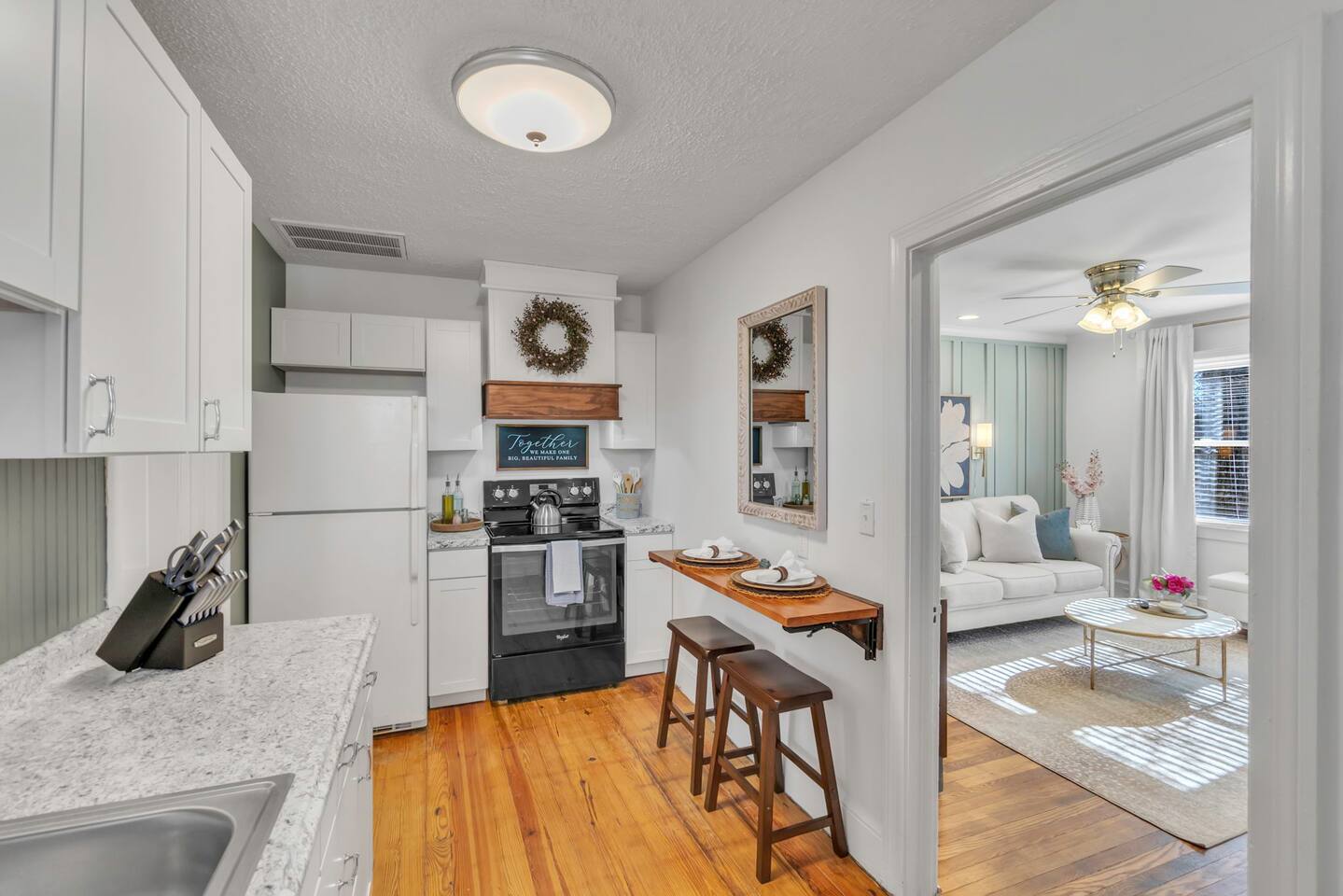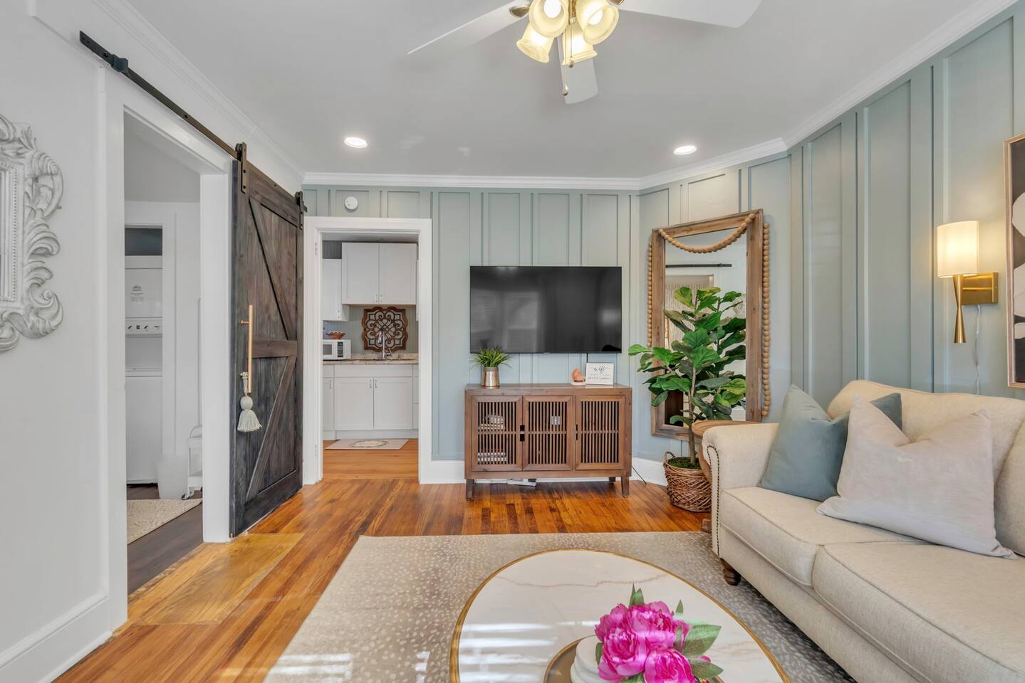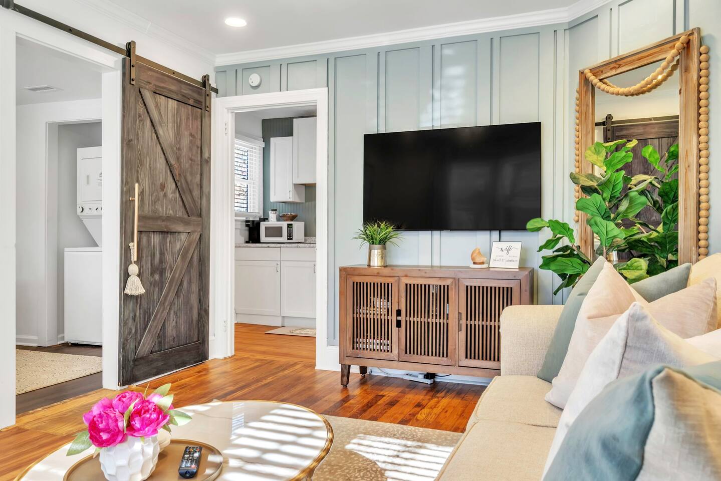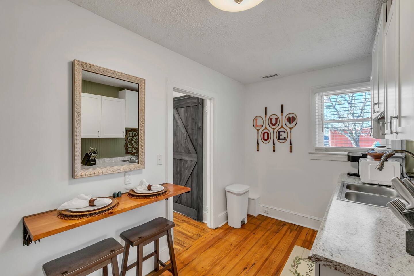 Welcome to your dream getaway in Easley, and nestled just a 20-minute drive from the vibrant city of Greenville. This enchanting retreat offers a serene and comfortable setting, complete with a luxurious king-sized bed, ensuring restful nights and cozy mornings. Every detail has been thoughtfully considered to create an atmosphere of comfort and elegance. The heart of our home features a fully stocked kitchen, equipped with everything you need to whip up delightful meals, from modern appliances to essential cookware. Whether you're brewing morning coffee or preparing a romantic dinner, our kitchen is your culinary playground. Stay connected and entertained throughout your stay with our high-speed WiFi and two state-of-the-art TVs. The bedroom houses a comfortable TV setup for intimate movie nights, while the living room boasts a Smart TV, perfect for streaming your favorite shows and movies in a more social setting. For those mixing leisure with work, our designated office space provides a tranquil environment to focus, complemented by the convenience of laundry facilities to make your stay as comfortable as possible. Wake up to the aroma of freshly brewed coffee from our charming coffee bar, a delightful way to start your day. We provide plush towels and premium toiletries, ensuring you feel pampered and well-cared for throughout your stay. Pets are more than welcome to join in on the adventure. A $250 pet fee ensures they, too, can enjoy the comfort and luxury of our retreat. The fenced-in backyard is perfect for your furry friends to explore! Located just a stone's throw from Greenville, you'll find yourself perfectly positioned to explore the bustling city life, with its array of shops, restaurants, and attractions, while still being able to retreat to the peaceful and romantic haven of our Easley home. Experience the ultimate couple's getaway, where luxury meets comfort, and every detail is designed with your enjoyment in mind. Book your stay and create memories that will last a lifetime.