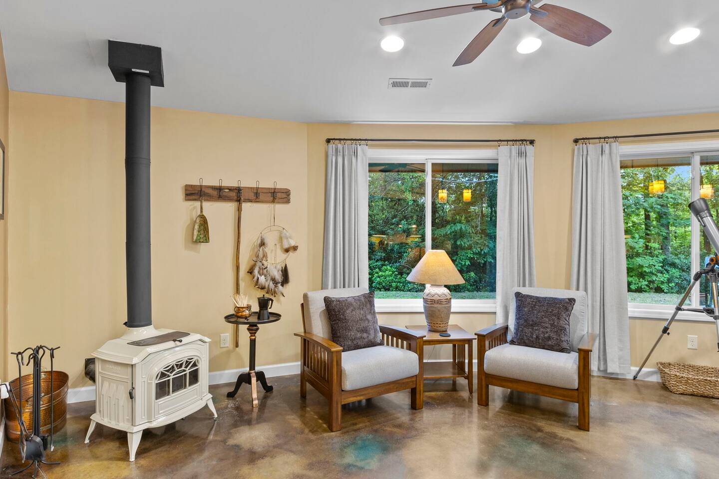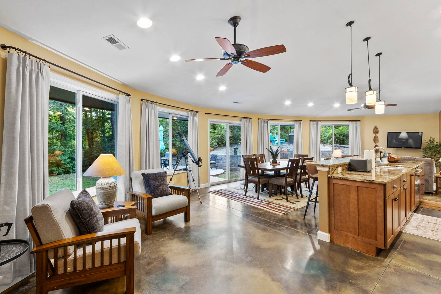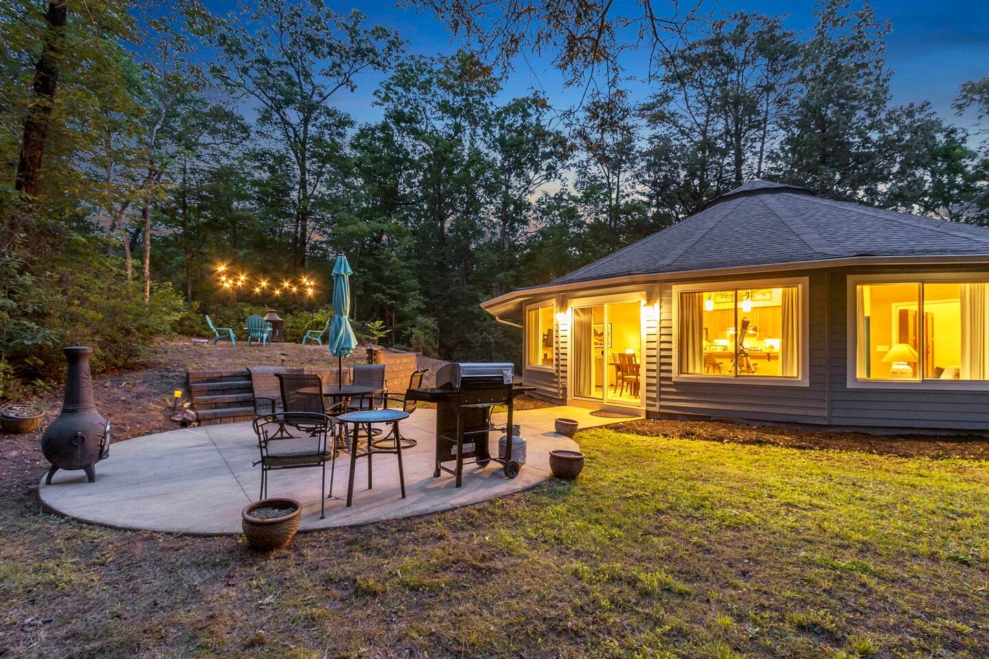 Experience a unique stay at Eagle's Nest Retreat, our circular 3-bedroom, 2-bath home in the woods. Enjoy modern amenities, a fully stocked kitchen, and a cozy living area with a wood-burning stove. Relax by the fire pit, grill on the patio, and stargaze with the telescope. Conveniently located near Table Rock State Park, local wineries, and a local tea farm, this retreat offers the perfect blend of nature and comfort for an unforgettable getaway.