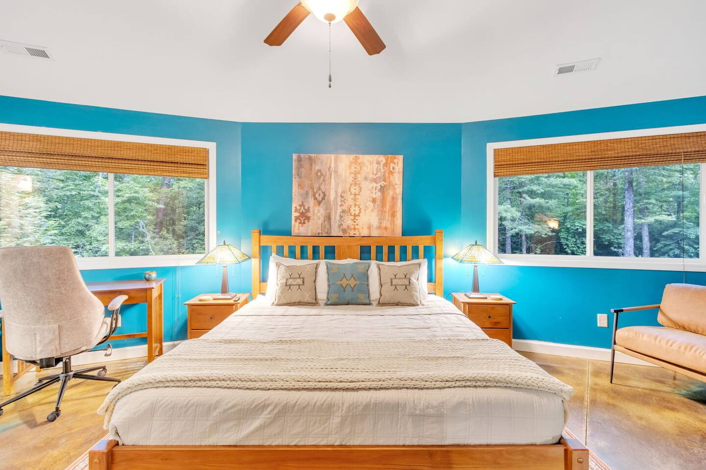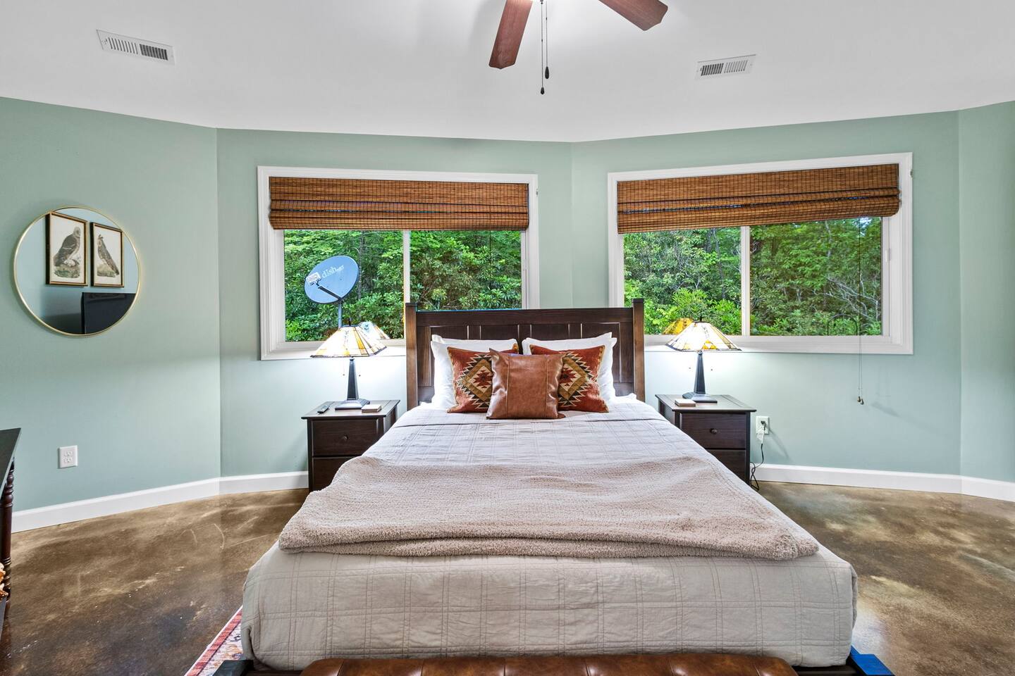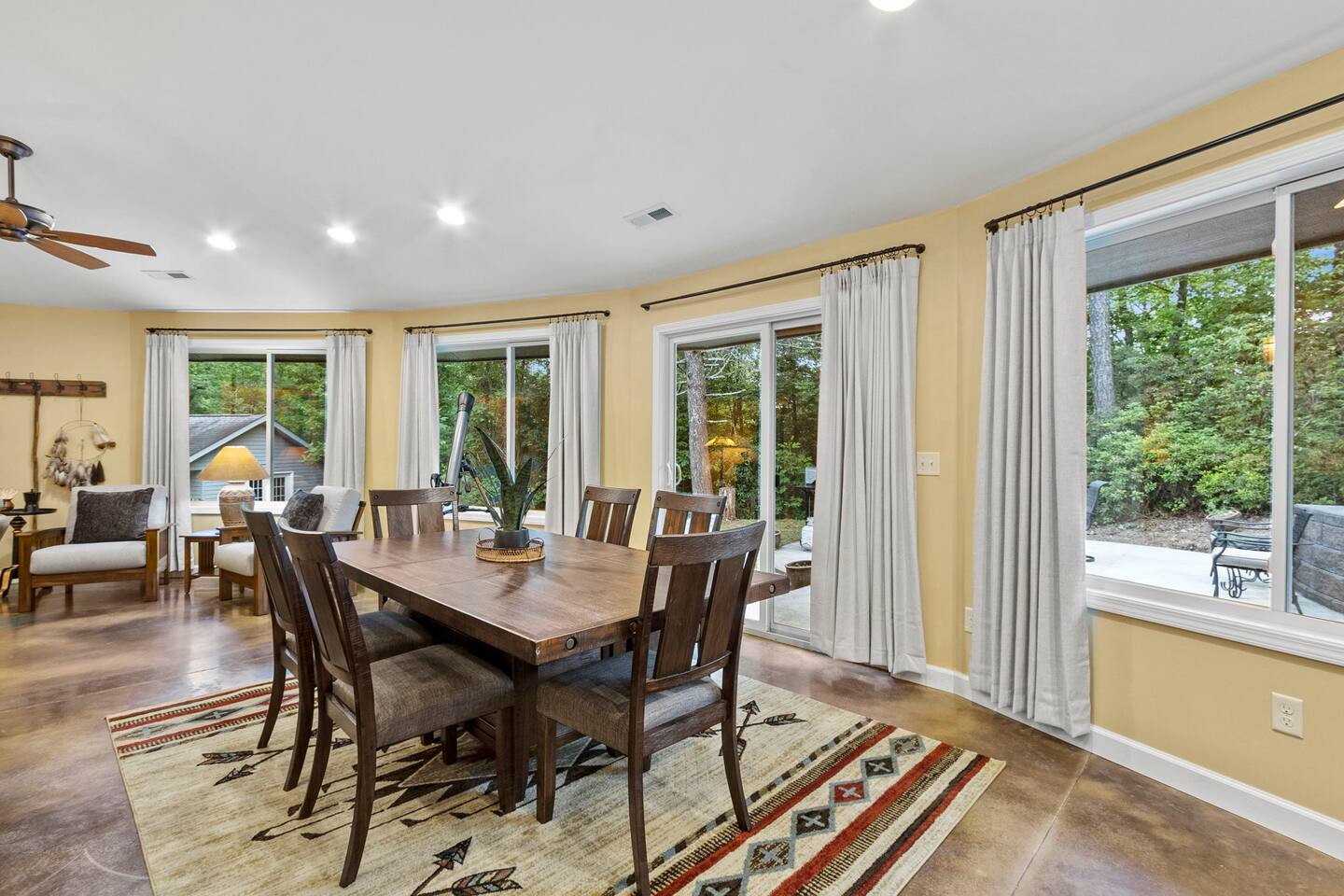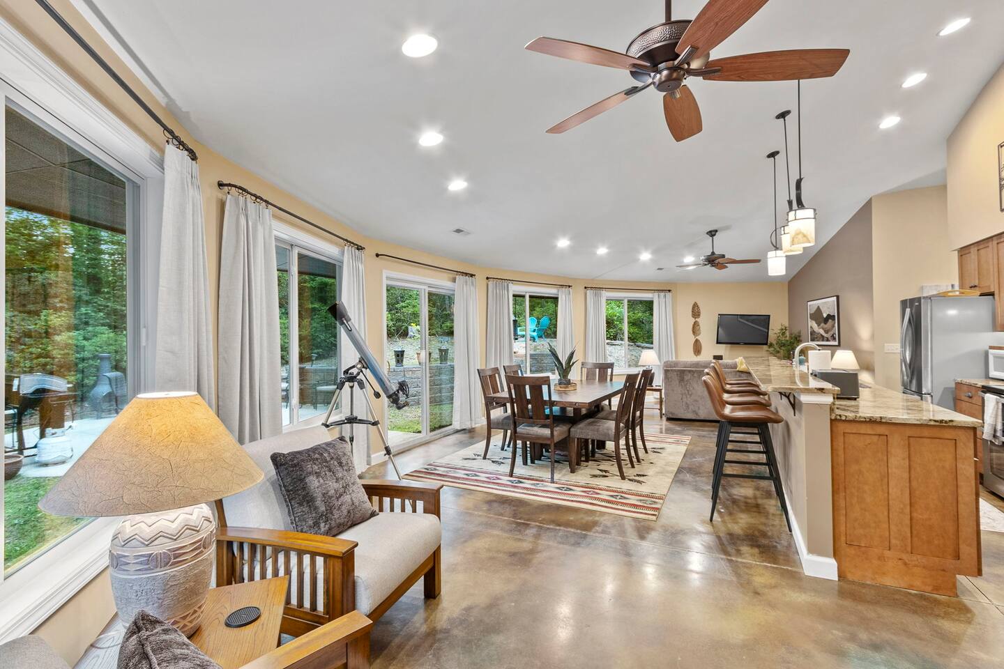 Experience a unique stay at Eagle's Nest Retreat, our circular 3-bedroom, 2-bath home in the woods. Enjoy modern amenities, a fully stocked kitchen, and a cozy living area with a wood-burning stove. Relax by the fire pit, grill on the patio, and stargaze with the telescope. Conveniently located near Table Rock State Park, local wineries, and a local tea farm, this retreat offers the perfect blend of nature and comfort for an unforgettable getaway.