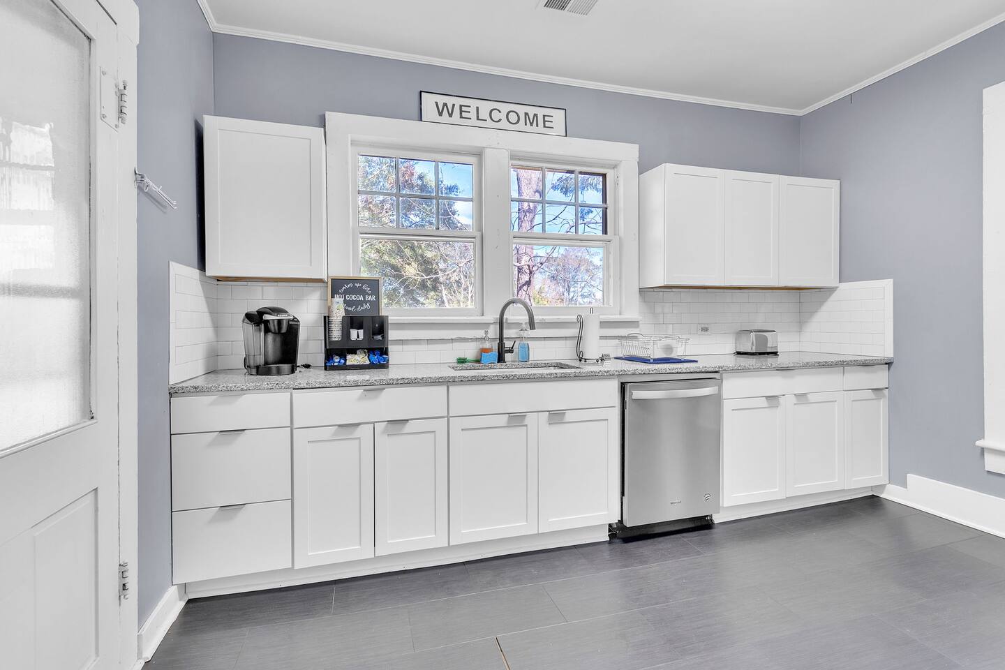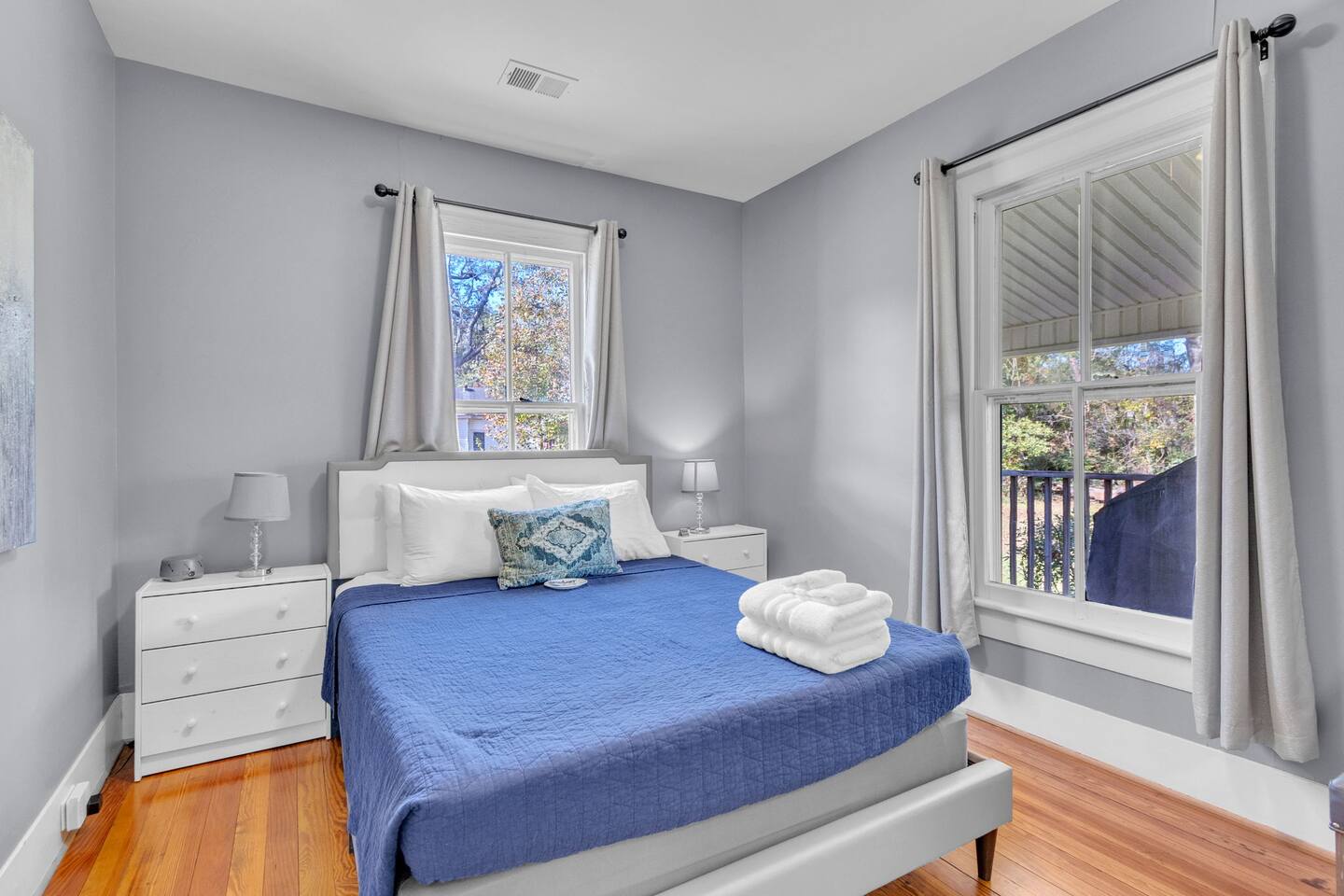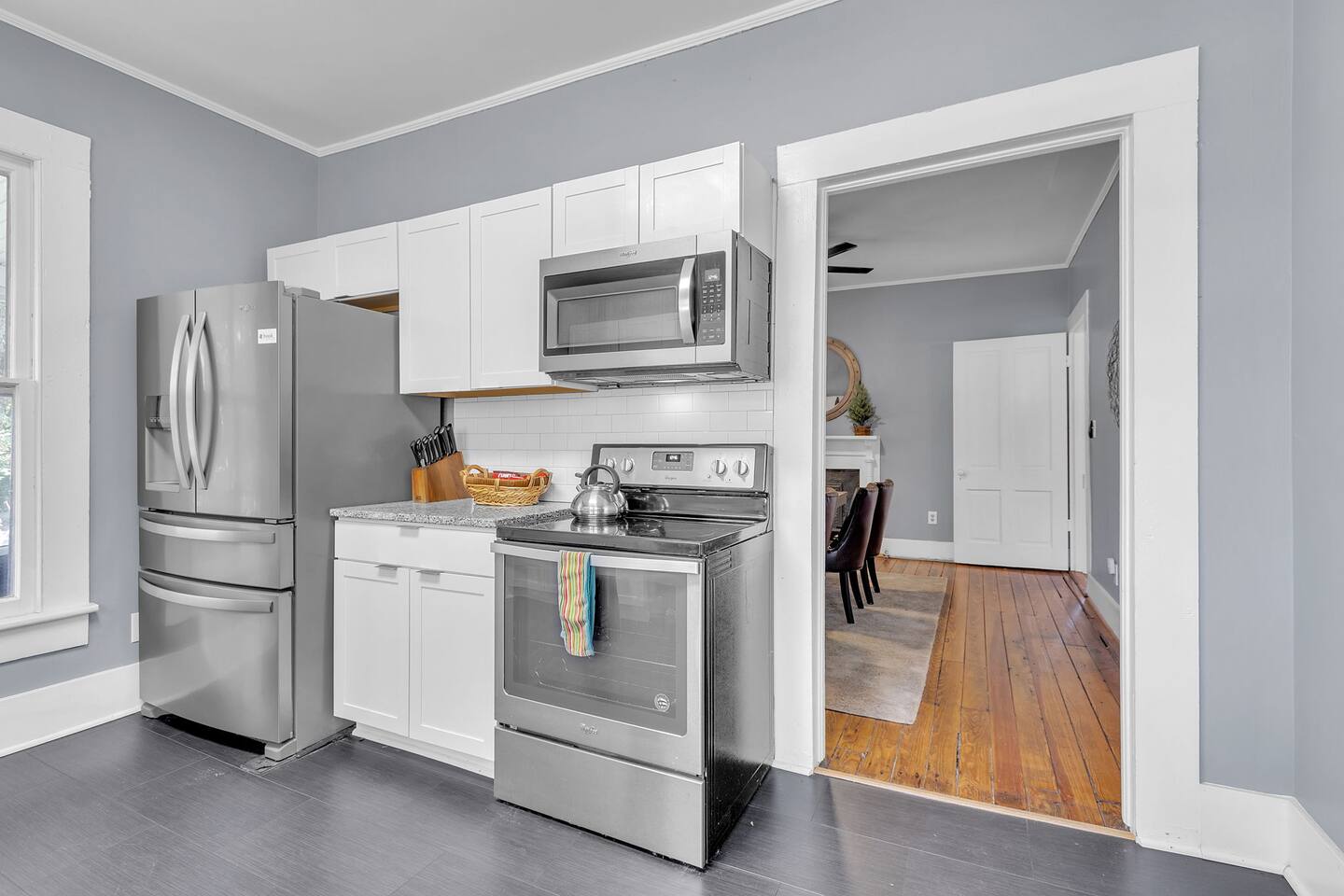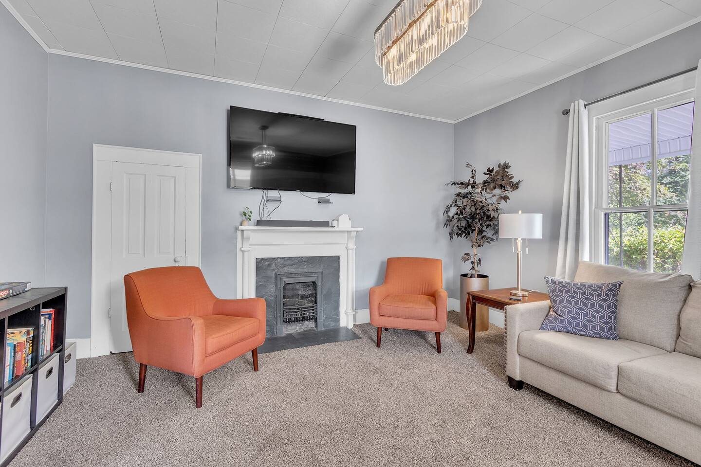 Welcome to The Southern Stoop – a newly refreshed, pet-friendly 3-bedroom, 1-bathroom home, ideally situated just a minute from Downtown Simpsonville and a 20-minute drive to Downtown Greenville. Blending classic Southern charm with modern comforts, this inviting home is perfect for family gatherings, cozy getaways, and anyone looking to experience the best of Simpsonville. Set on a spacious lot, The Southern Stoop offers multiple outdoor spaces designed for relaxation. Enjoy a screened-in porch for morning coffee, a cozy fire pit for marshmallow roasting, and the home’s namesake front stoop – perfect for watching the world go by with a sweet tea in hand. Inside, you’ll find thoughtfully updated spaces with the following highlights: - Entry Foyer: Step inside to a welcoming foyer featuring stylish decor and ample natural light. This space connects to various rooms and includes a side table with guest information and Wi-Fi details. Living Room: This warm, cozy space is ideal for gathering. It is furnished with a large sectional sofa, two armchairs, and a Smart TV equipped with ROKU (guests can log in with their own streaming accounts). The non-functional fireplace adds character to the room, making it the perfect spot for movie nights or unwinding after a day of exploring. - Master Bedroom: Immediately off the foyer, the master bedroom provides a peaceful retreat with a king-size bed, two nightstands, and a cozy sofa in the corner – perfect for enjoying your morning coffee. A desk with a monitor is available, offering a dedicated space for work or planning. - King Room: Connected to both the master bedroom and the foyer, this room features a comfortable king-size bed, nightstands, and a full-length mirror, giving it a spacious, relaxing ambiance. Queen Room: This third bedroom includes a queen-size bed, a nightstand, and a comfortable lounge chair. It connects directly to the shared bathroom, making it convenient for guests. - Shared Main Bathroom: All three bedrooms share a spacious bathroom featuring a tub/shower combination, double vanity, and toilet. The bathroom is fully stocked with essentials, including shampoo, conditioner, body wash, a hair dryer, and makeup washcloths. A washer and dryer are also provided for added convenience, and the tankless water heater ensures everyone gets a warm shower. - Dining Room: The formal dining area seats eight and provides the perfect setting for shared meals or game nights, with easy access to a closet stocked with a variety of board games. - Kitchen: The fully stocked kitchen includes modern appliances, a coffee bar, and everything you need for meal prep, from pots and pans to spices and oils. Gather around the coffee station each morning or cook a delicious meal easily. - Outdoor Spaces: Beyond the screened porch, the backyard includes a fire pit surrounded by Adirondack chairs and towering trees for shade and privacy. Parking is plentiful in the private driveway beside the home, and please note that no street parking is available. The Southern Stoop warmly welcomes pets with a one-time pet fee, which is automatically applied when you add a pet to your booking. The spacious layout and fenced areas allow pets to feel right at home. Location Highlights: You’ll be close to all the essentials and local favorites: - Warehouse at Vaughns (0.6 mi) - Ice Cream Station (0.6 mi) - Heritage Park (2.6 mi) - Downtown Greenville (20 min) Whether you’re here to enjoy Simpsonville’s charming main street, explore nearby parks, or relax in a cozy, thoughtfully refreshed space, The Southern Stoop is your ideal base for a Southern escape. We can’t wait to host you!