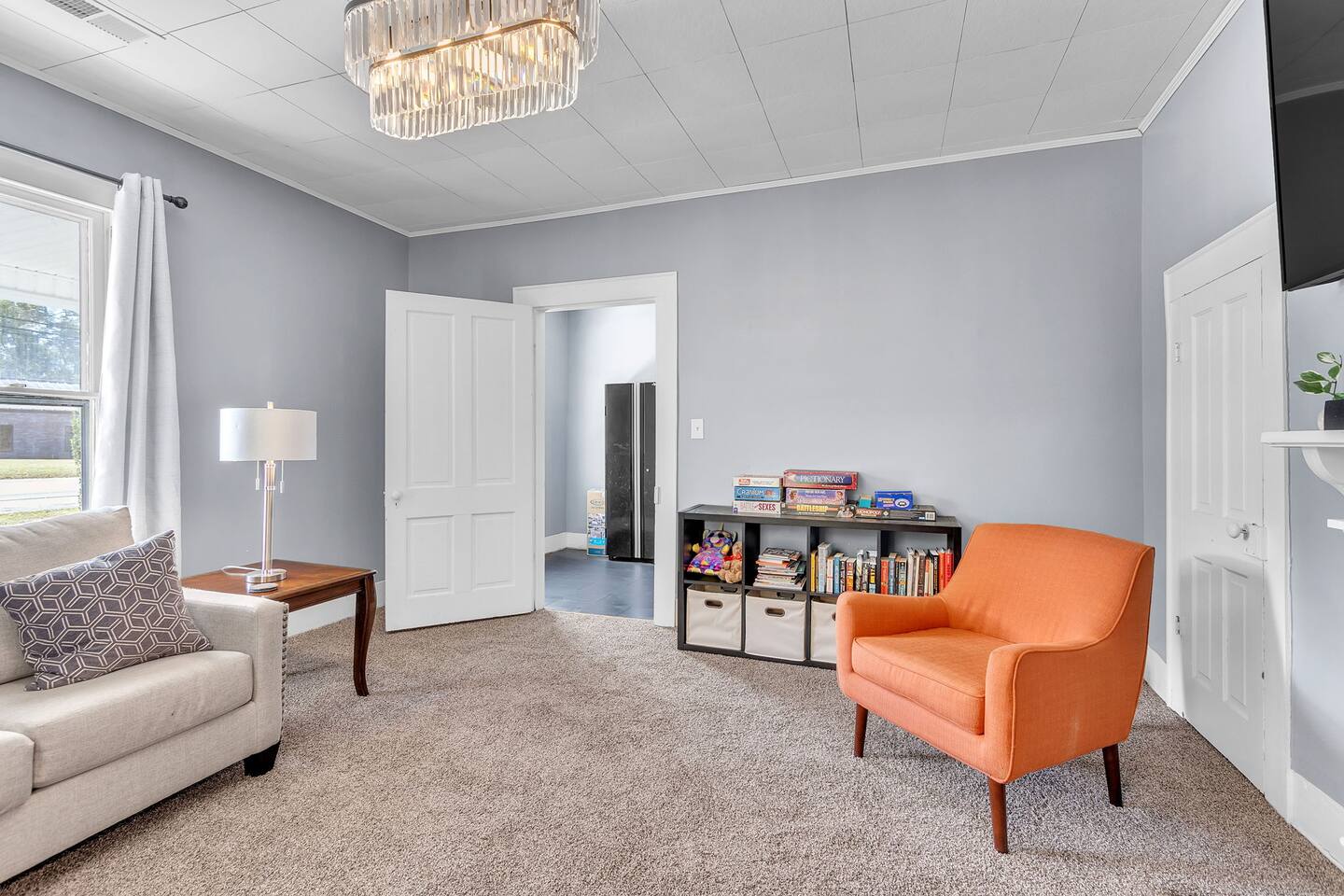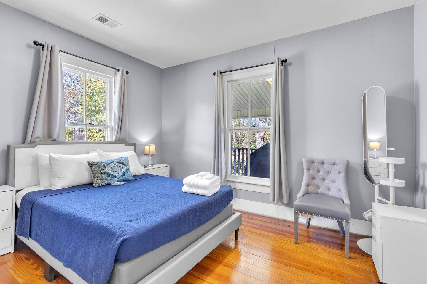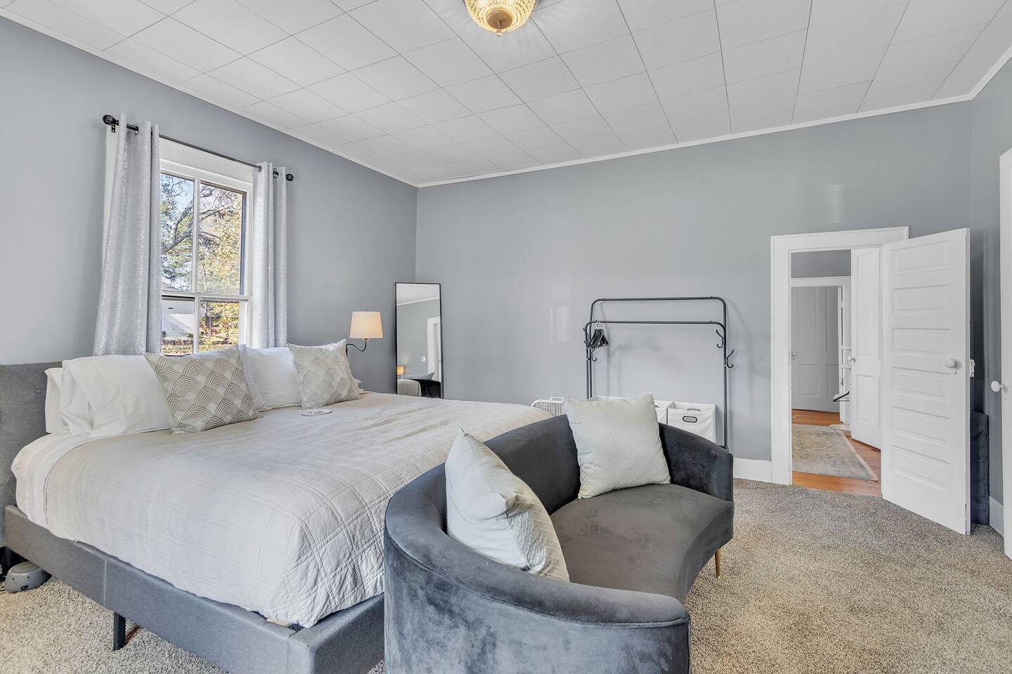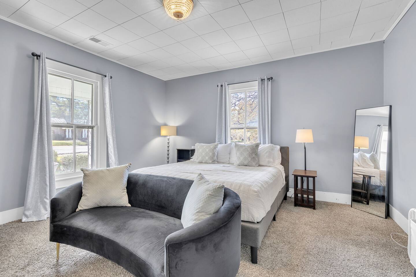 Welcome to The Southern Stoop – a newly refreshed, pet-friendly 3-bedroom, 1-bathroom home, ideally situated just a minute from Downtown Simpsonville and a 20-minute drive to Downtown Greenville. Blending classic Southern charm with modern comforts, this inviting home is perfect for family gatherings, cozy getaways, and anyone looking to experience the best of Simpsonville. Set on a spacious lot, The Southern Stoop offers multiple outdoor spaces designed for relaxation. Enjoy a screened-in porch for morning coffee, a cozy fire pit for marshmallow roasting, and the home’s namesake front stoop – perfect for watching the world go by with a sweet tea in hand. Inside, you’ll find thoughtfully updated spaces with the following highlights: - Entry Foyer: Step inside to a welcoming foyer featuring stylish decor and ample natural light. This space connects to various rooms and includes a side table with guest information and Wi-Fi details. Living Room: This warm, cozy space is ideal for gathering. It is furnished with a large sectional sofa, two armchairs, and a Smart TV equipped with ROKU (guests can log in with their own streaming accounts). The non-functional fireplace adds character to the room, making it the perfect spot for movie nights or unwinding after a day of exploring. - Master Bedroom: Immediately off the foyer, the master bedroom provides a peaceful retreat with a king-size bed, two nightstands, and a cozy sofa in the corner – perfect for enjoying your morning coffee. A desk with a monitor is available, offering a dedicated space for work or planning. - King Room: Connected to both the master bedroom and the foyer, this room features a comfortable king-size bed, nightstands, and a full-length mirror, giving it a spacious, relaxing ambiance. Queen Room: This third bedroom includes a queen-size bed, a nightstand, and a comfortable lounge chair. It connects directly to the shared bathroom, making it convenient for guests. - Shared Main Bathroom: All three bedrooms share a spacious bathroom featuring a tub/shower combination, double vanity, and toilet. The bathroom is fully stocked with essentials, including shampoo, conditioner, body wash, a hair dryer, and makeup washcloths. A washer and dryer are also provided for added convenience, and the tankless water heater ensures everyone gets a warm shower. - Dining Room: The formal dining area seats eight and provides the perfect setting for shared meals or game nights, with easy access to a closet stocked with a variety of board games. - Kitchen: The fully stocked kitchen includes modern appliances, a coffee bar, and everything you need for meal prep, from pots and pans to spices and oils. Gather around the coffee station each morning or cook a delicious meal easily. - Outdoor Spaces: Beyond the screened porch, the backyard includes a fire pit surrounded by Adirondack chairs and towering trees for shade and privacy. Parking is plentiful in the private driveway beside the home, and please note that no street parking is available. The Southern Stoop warmly welcomes pets with a one-time pet fee, which is automatically applied when you add a pet to your booking. The spacious layout and fenced areas allow pets to feel right at home. Location Highlights: You’ll be close to all the essentials and local favorites: - Warehouse at Vaughns (0.6 mi) - Ice Cream Station (0.6 mi) - Heritage Park (2.6 mi) - Downtown Greenville (20 min) Whether you’re here to enjoy Simpsonville’s charming main street, explore nearby parks, or relax in a cozy, thoughtfully refreshed space, The Southern Stoop is your ideal base for a Southern escape. We can’t wait to host you!