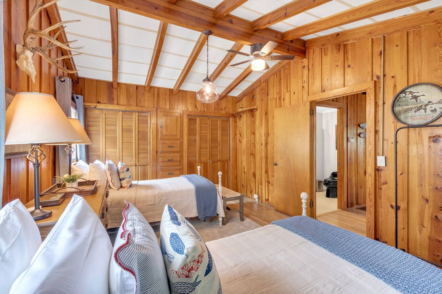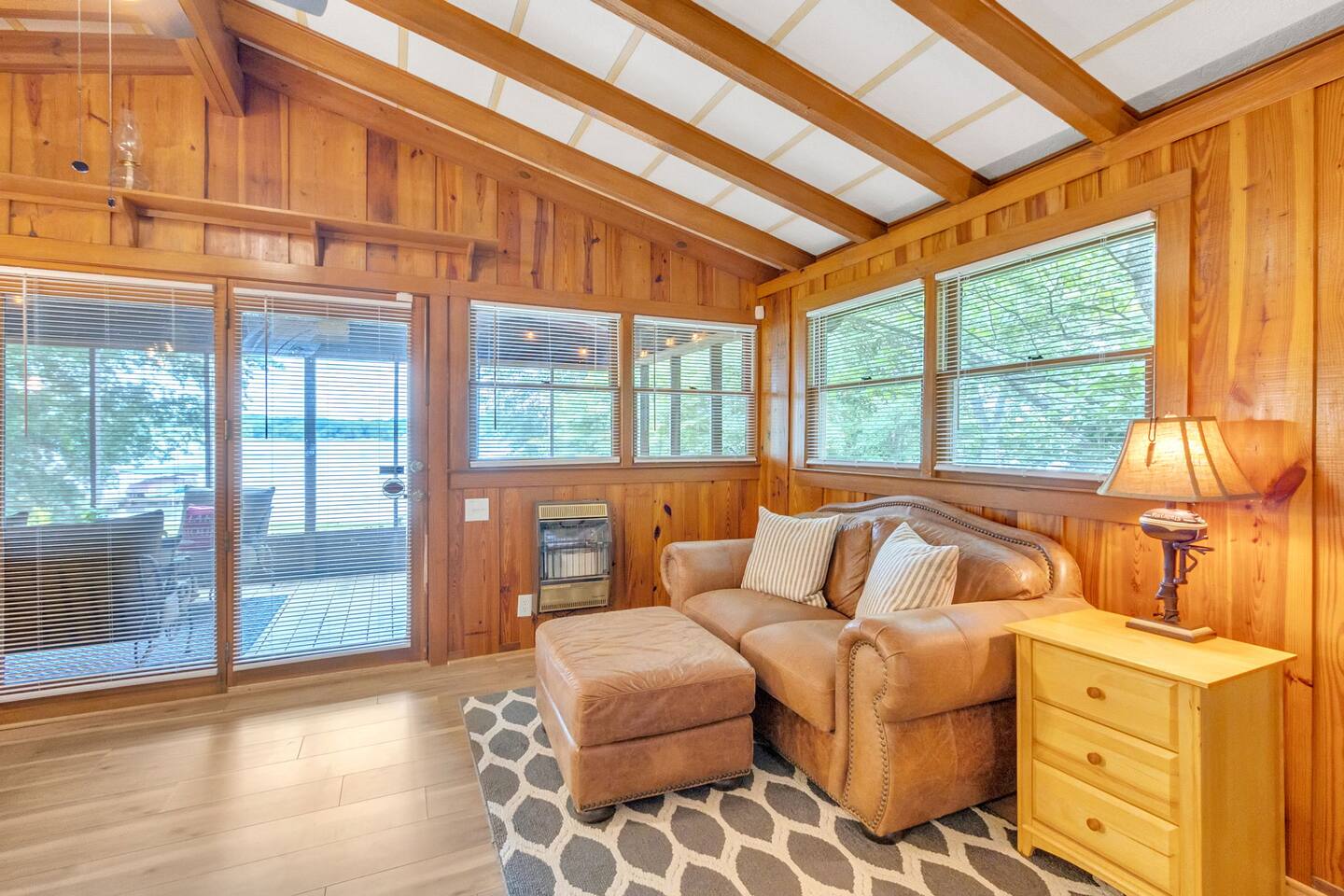 Escape to Lake Front Lodge @ Lake Bowen! This private 2-bedroom, 2-bathroom lake house is the perfect retreat for families. Enjoy a fully stocked kitchen, a cozy common area with trundle beds, and spacious porches. Relax in the screened porch or fire up the gas grill for a lakeside BBQ. With peaceful lake views and a dock available for your boat, it's a boater's paradise. Linens and towels are provided for your convenience. Experience a serene and memorable getaway at Lake Bowen.