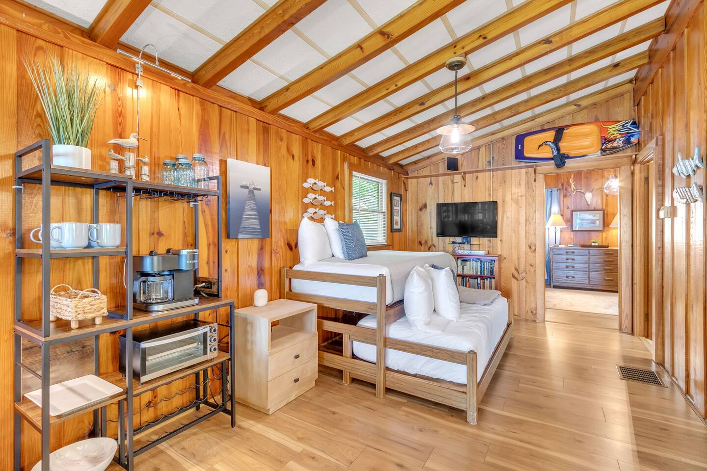 Please note: potential guests should review the lake rules for Lake Bowen, including that boats with outboard motors over 115 horsepower or those with outboard motors that exceed the United States Coast Guard rating are not permitted. Welcome to Lake Front Lodge @ Lake Bowen! This charming and spacious lake house is the perfect destination for a family retreat or a peaceful getaway. The lodge features 2 cozy bedrooms and 2 full bathrooms. The master bedroom boasts a luxurious king bed, while the second bedroom is equipped with two twin beds. Additionally, the common area includes a trundle bed, providing comfortable sleeping arrangements for everyone. The spacious living room is perfect for family gatherings and relaxation. Step out onto the screened porch to enjoy the fresh air and scenic lake views. Both spaces are ideal for socializing and making lasting memories. The fully stocked kitchen has everything you need for cooking and baking, making meal preparation a breeze. Enjoy your culinary creations at the dining table or take your meals outside to the screened porch for an alfresco dining experience. The property features big porches, including a screened porch, perfect for gatherings and enjoying the tranquil surroundings. Fire up the gas grill for a lakeside BBQ and savor delicious meals with a view. Guests have access to a private dock, ideal for boating, swimming, and fishing. For those bringing a boat, Lake Bowen Park and boat ramp are just a mile away. The beach area allows for easy access to the water without any steps, making it convenient for everyone. Enjoy paddle boarding, skiing, tubing, and using the provided floats and sun chairs. Fishing enthusiasts will appreciate the fishing poles available in the twin bedroom (SC fishing license required). Adirondack chairs with cup holders can be moved to the beach area for your comfort. Jet skis are allowed, adding to the fun water activities. Parking is available in the carport, and every bedroom has a TV for your entertainment. Experience the best of lake living at Lake Front Lodge @ Lake Bowen. Book your stay now and create unforgettable memories with your loved ones!