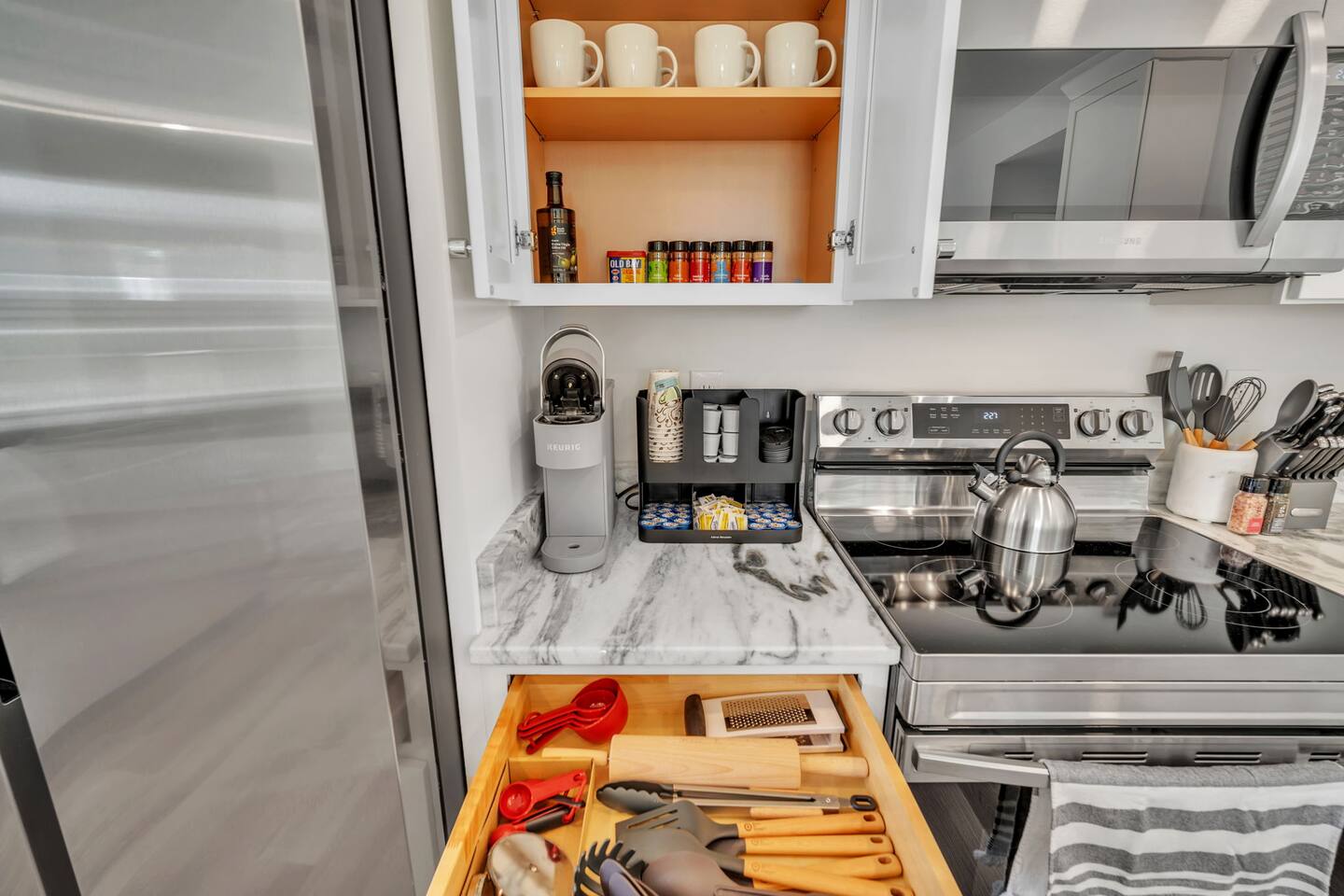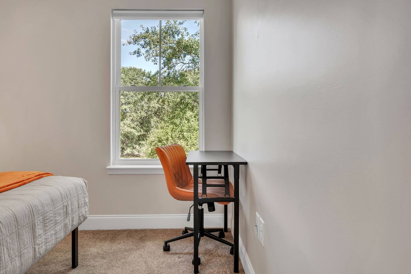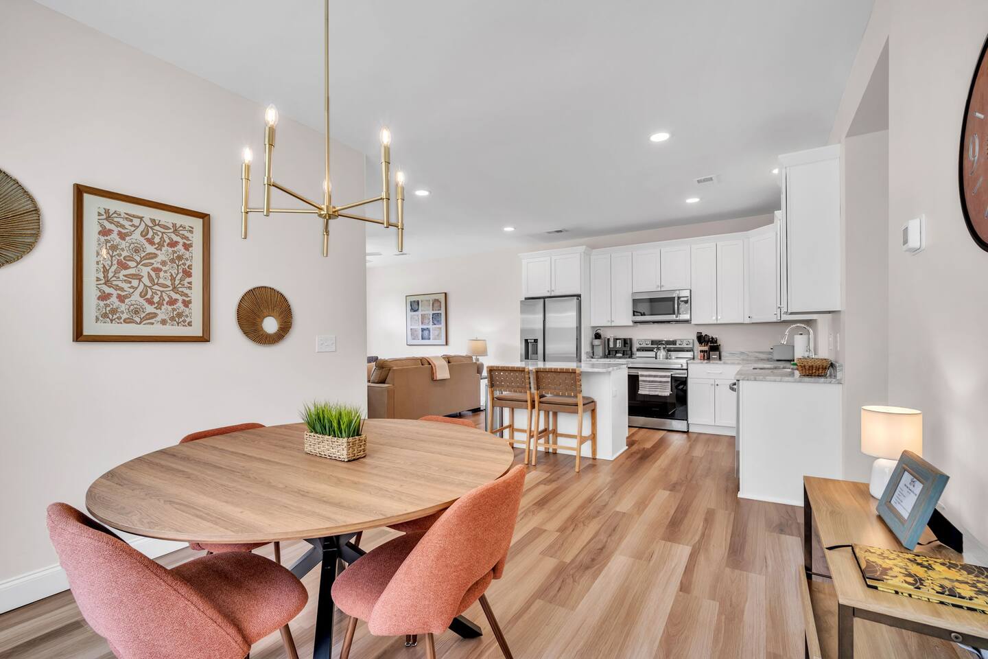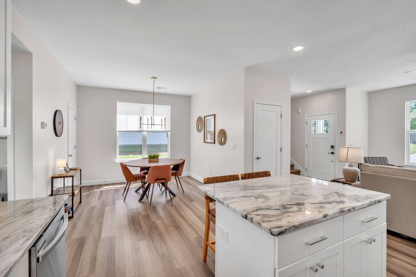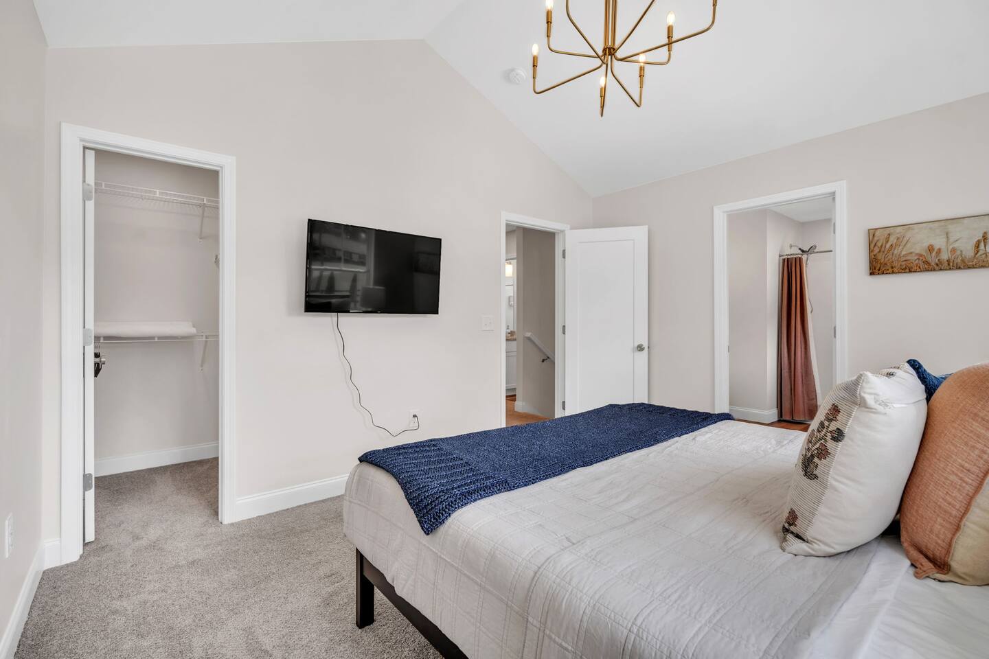 Nestled in Greenville's Eastside, Taylor's Grove East offers a blend of modern comfort and convenience. Park in the paved driveway and step into a cozy living space. Kick back on the couch and tune into your preferred streaming service on the TV (no cable provided), all while connected with high-speed WiFi, or grab a book and nestle into one of two cozy arm chairs. The kitchen stands ready for your culinary adventures with its stainless steel appliances and granite countertops. A dining area offers seating for four, complemented by two more at the kitchen island. For convenience, the home also features a half bathroom downstairs. Slide open the backdoor to a compact patio, a perfect spot for a cup of coffee or a quiet chat. A fully-fenced yard promises privacy and fun for you and your furry friends*! The upstairs hosts three well-appointed bedrooms. The primary boasts a King bed, TV (no cable), and an attached bathroom with a stall shower. The second bedroom comes with a comfy queen bed, and the third room has a full bed and also offers a workspace for those needing to catch up on tasks. A hall bathroom with a tub/shower combination ensures everyone has space to refresh. *Pets are welcome in our home with a one-time fee, automatically applied when you add your pet as a guest during booking Taylor's Grove East: Where simplicity meets style in the heart of the Upstate.