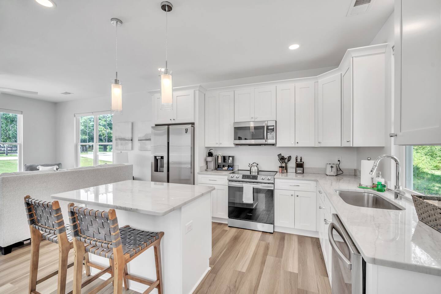 Step into Taylor's Grove West in Greenville's Eastside. A modern oasis, this 3-bedroom home sparkles with vibrant emerald green and cool blue tones. Showcasing a unique and light-filled aesthetic, its location is prime, with key Greenville attractions just a 20-minute drive away including Downtown Greenville, Greer, and TR. Experience refined Upstate living in style.