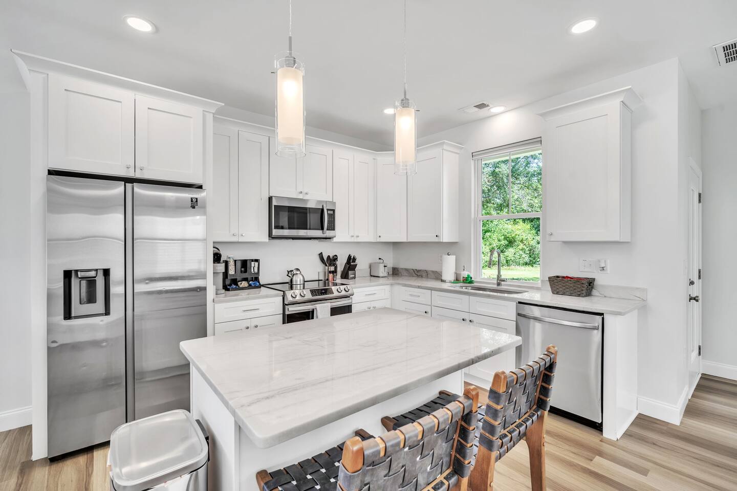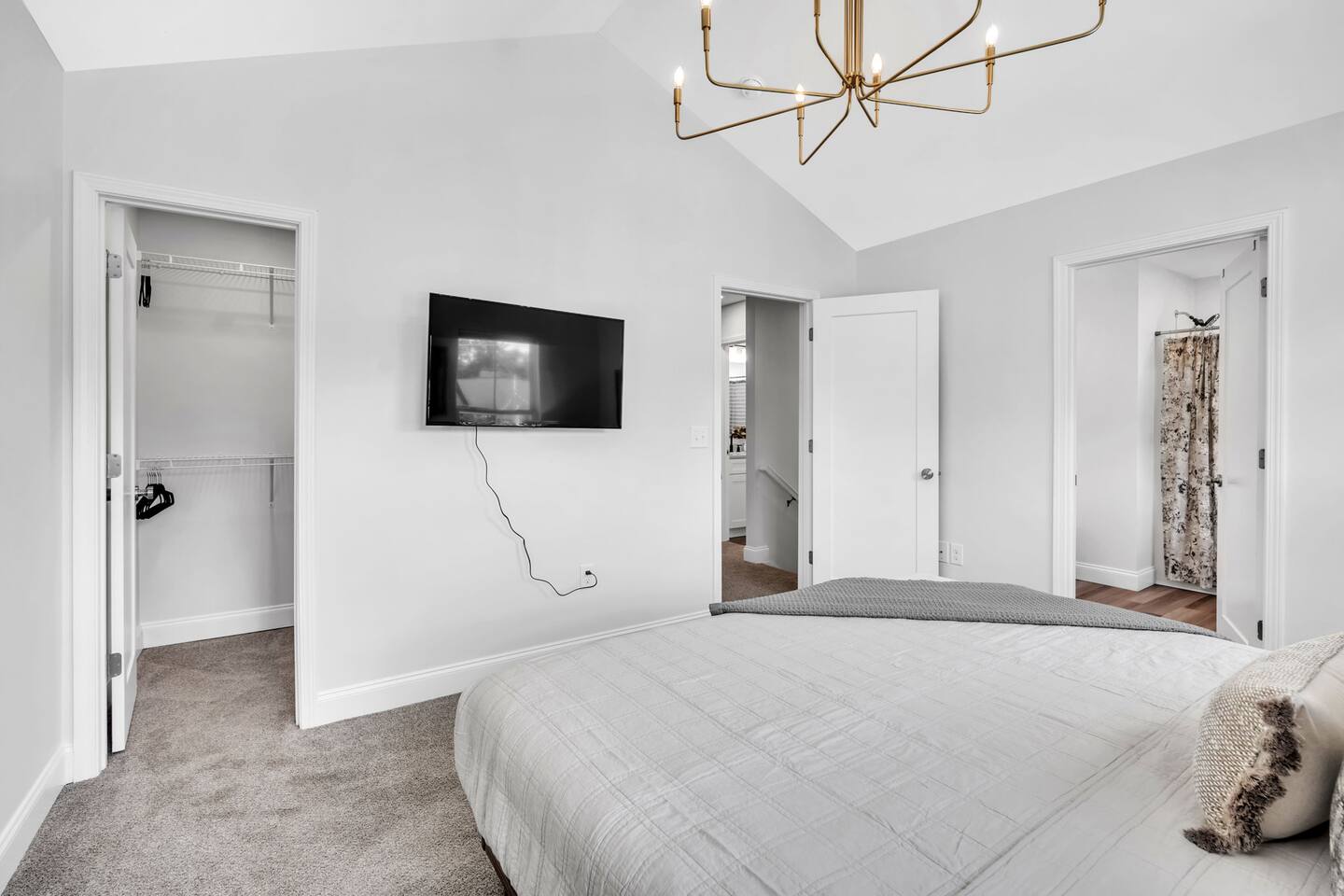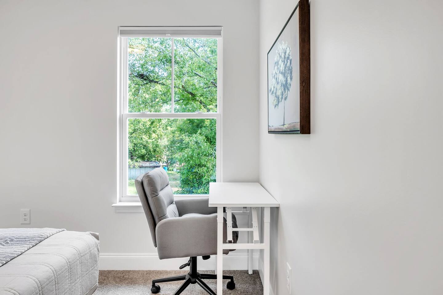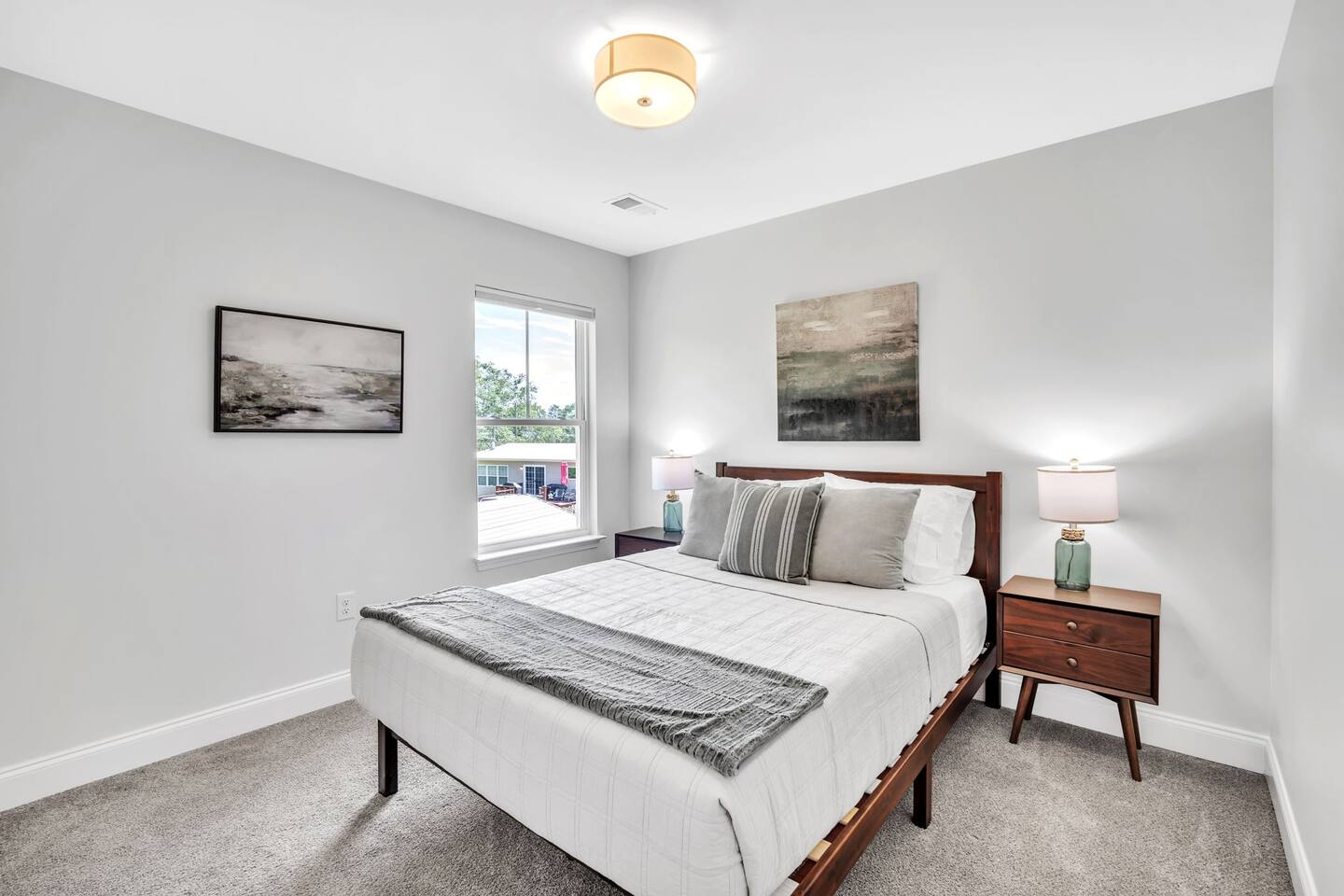 Located in the heart of Taylors on Greenville's Eastside, Taylor's Grove West captures attention with its modern design, enriched by shades of emerald green and calming blues. Its distinct aesthetic radiates an atmosphere of lightness and tranquility. As you arrive, a driveway ensures easy parking. Stepping inside, a bright living space unfolds where you can relax on the sofa, stay connected with high-speed WiFi, and indulge in your favorite streaming shows on the TV (note: cable not provided). The kitchen showcases modernity with its stainless steel appliances and granite countertops. Whether you're cooking up a feast or preparing a quick snack, the space is well-equipped to meet your culinary needs. Dine with companions at the table, seating four, or opt for a casual meal at the kitchen island, which accommodates two. For moments of serenity, the patio, complete with seating for two, beckons for morning coffees or sunset reflections. A fully-fenced yard promises privacy and fun for you and your furry friends! * Pets are welcome in our home with a one-time fee, automatically applied when you add your pet as a guest during booking. Ascend to the upper level to find three tastefully designed bedrooms. The primary suite, complete with a King bed and TV (no cable), benefits from an en suite bathroom housing a sleek stall shower. The second bedroom, adorned with a cozy queen bed, and the third, with a full bed and a dedicated workspace, can access a hall bathroom equipped with a tub/shower combination. Taylor's Grove West: A breath of fresh, contemporary air in the heart of the Upstate.