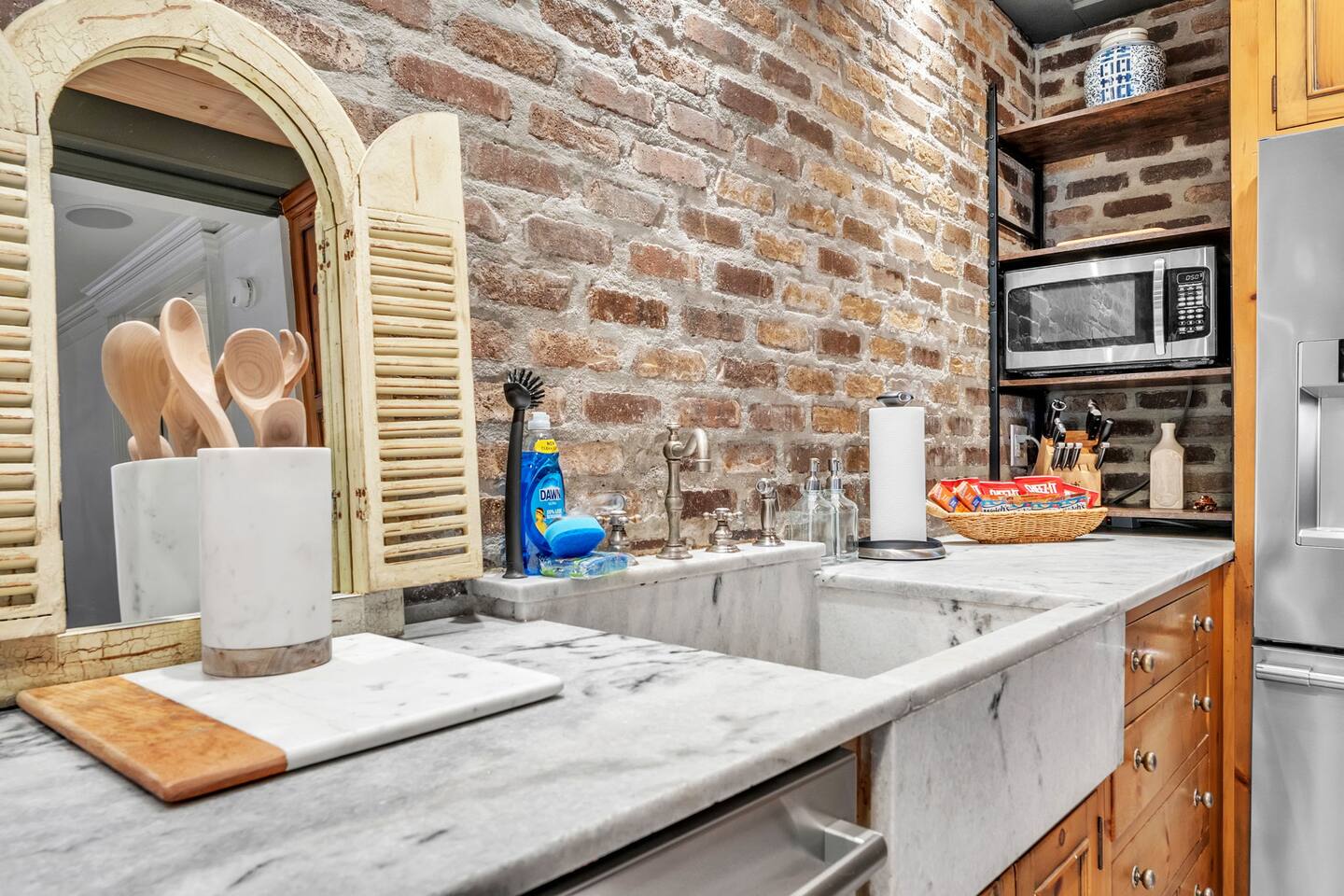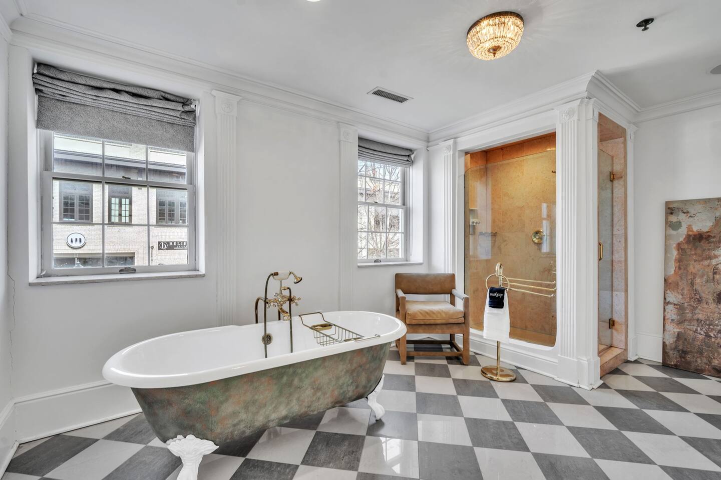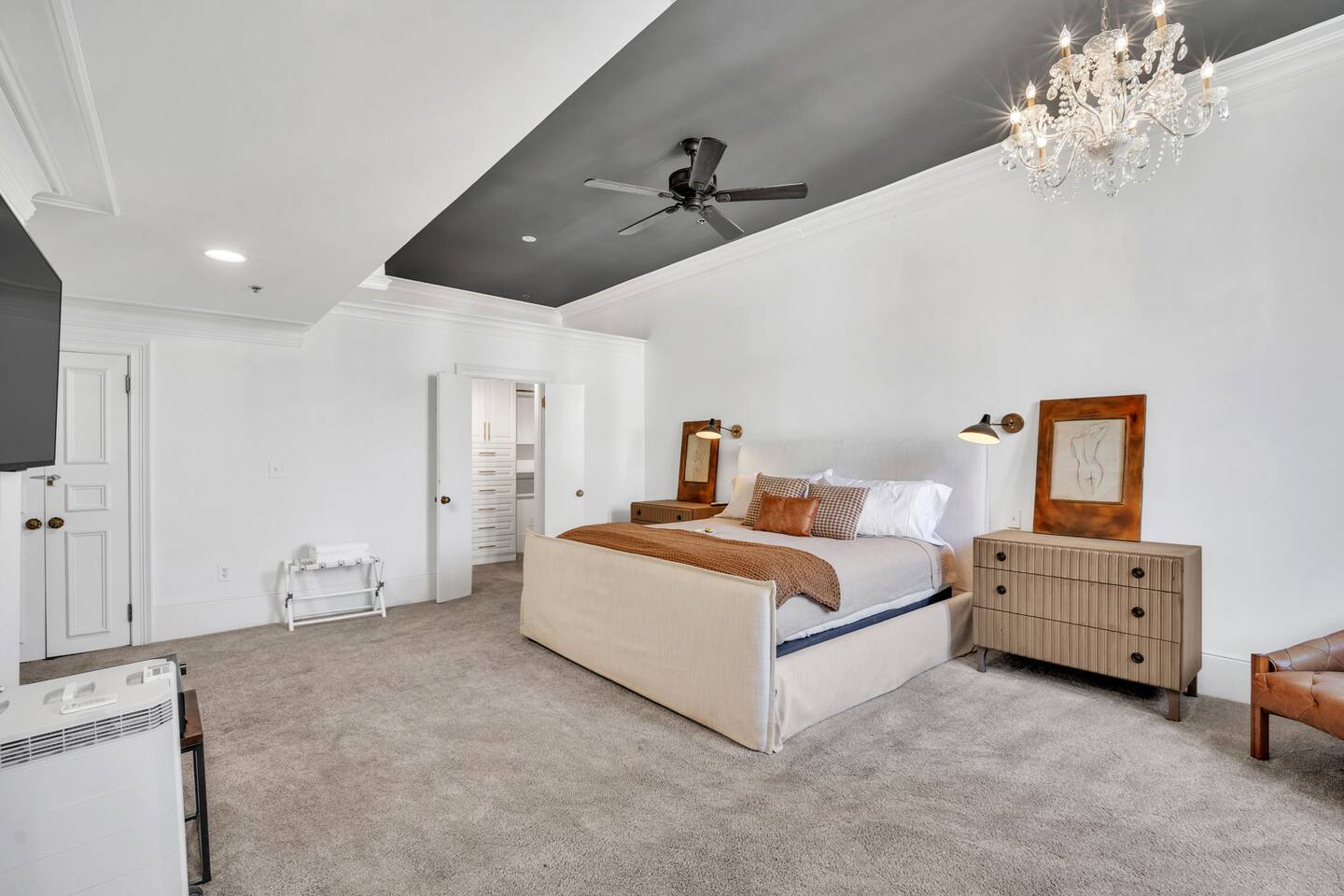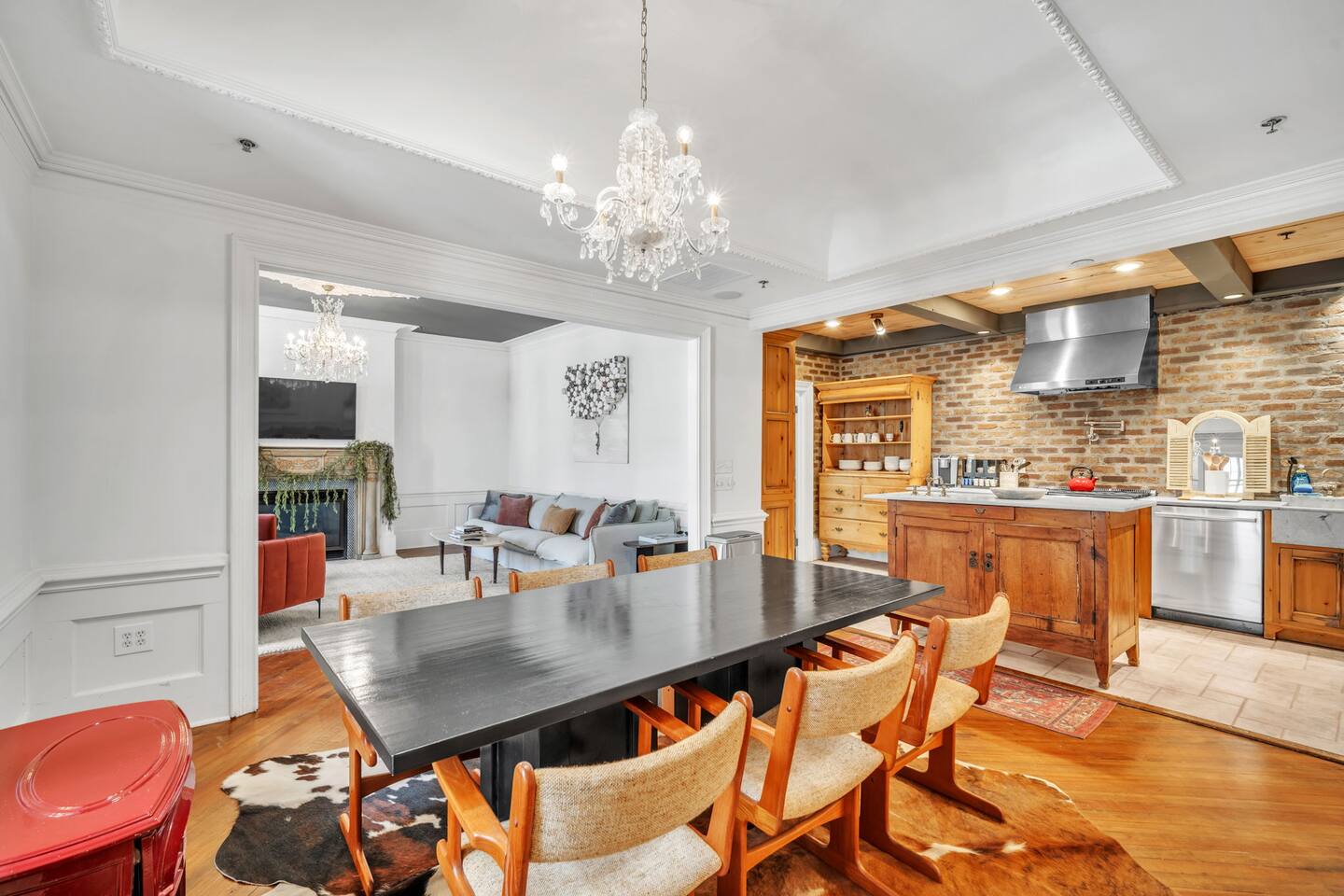 Welcome to The Loft @ W North St, a thoughtfully designed two-bedroom, two-bathroom condo in the heart of Downtown Greenville. Located in a charming historic pink building at the corner of Main St and W North St, this loft perfectly blends luxury, character, and convenience, making it the ideal stay for travelers seeking an unique experience. Please note that this is an upstairs unit, and guests must walk up two flights of stairs to access the space. From the moment you step inside, you'll be surrounded by a sophisticated mix of modern design and old-world charm. With its historic 1892 hardwood floors, elegant finishes, and carefully curated decor, this space offers a warm yet refined ambiance that sets it apart. This loft offers unbeatable walkability to Downtown Greenville's best attractions. Stroll just minutes to the city's top restaurants, coffee shops, and cocktail bars, or take in a show at The Peace Center. Wander through the charming streets and discover boutique shops, art galleries, and the picturesque Reedy River Falls at Falls Park. Self-pay garage parking is available about a block away, so you can easily explore the city. Upon entering, you'll be greeted by a stunning and thoughtfully designed living room featuring striking gray ceilings, plush seating, and carefully selected furnishings that create a cozy yet refined atmosphere. A chandelier sparkles overhead, adding to the grandeur, while large windows fill the space with natural light. Adjacent to the living area, the dining room features a beautiful six-person table, ideal for enjoying meals together or gathering for a relaxing evening. The chef's kitchen is a standout, featuring stainless steel appliances, a commercial-grade gas range for restaurant-quality cooking, and exposed brick walls that add character and warmth. The custom cabinetry and elegant countertops provide a fully stocked space with cookware, dishes, and utensils, making it easy to prepare a full meal or brew your morning coffee. The primary suite is a private retreat designed for relaxation and elegance. It features a luxurious king bed, comfy bedding, and two stylish nightstands. Floor-to-ceiling drapes allow you to block out light, while a cozy leather seating area near the window offers the perfect spot for sipping coffee or unwinding with a book. The en-suite bathroom rivals a spa, boasting an antique clawfoot soaking tub for ultimate relaxation, a marble walk-in shower with rain showerhead and brass fixtures, and an antique mirror with a large vanity with ample counter space. A separate toilet room adds an extra level of privacy. This room features a dedicated workspace with a stylish desk and chair for those who need to work remotely, providing a space for productivity. The guest bedroom is equally charming, featuring a queen four-poster bed, stylish nightstands, and rich decorative details. Across the hall, the guest bathroom features a luxurious double-door glass shower with a central rain-shower head and handheld fixture, plus a sleek single vanity and private toilet cubby. An in-unit washer and dryer add extra convenience, making it easy to freshen up during more extended stays. The unit is pet-friendly with a fee, though guests should note that there is no yard, so pets will need to be walked for bathroom breaks. A keyless entry with a Smart Lock ensures hassle-free check-in, and the unit is accessible via two flights of stairs. Whether you're visiting for a romantic getaway, a business trip, or a weekend escape, this loft provides a refined yet welcoming space in an unbeatable location. Need more space? We also offer Loft 1892, a second luxury unit nearby, perfect for larger groups traveling together. As a corner unit right on Main St, guests should expect some city noise from foot traffic, nearby businesses, and passing cars. Experience historic charm, modern elegance, and the best of Downtown Greenville at The Loft @ W North St—book your stay today!