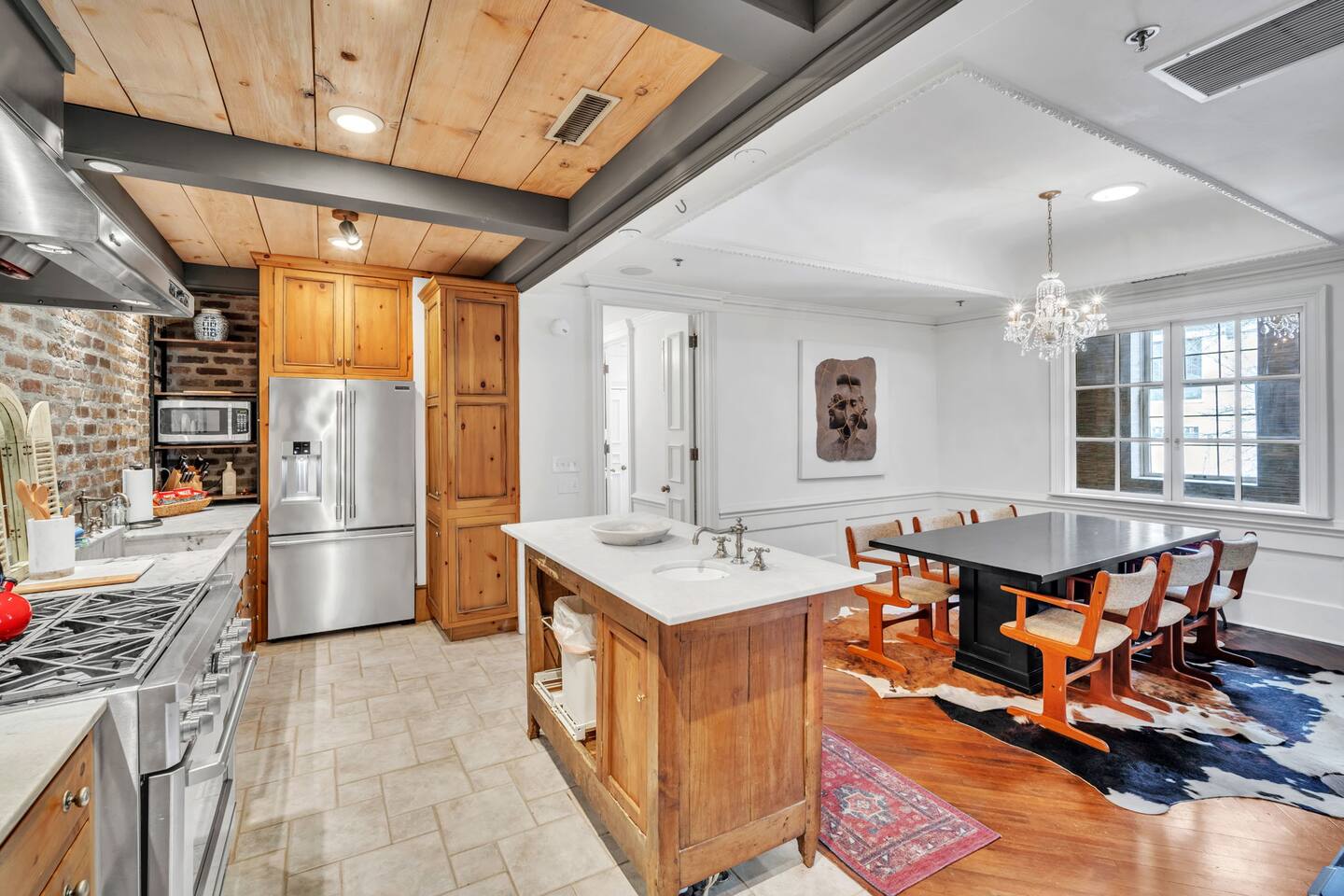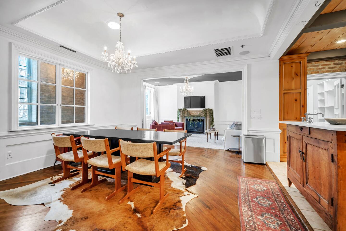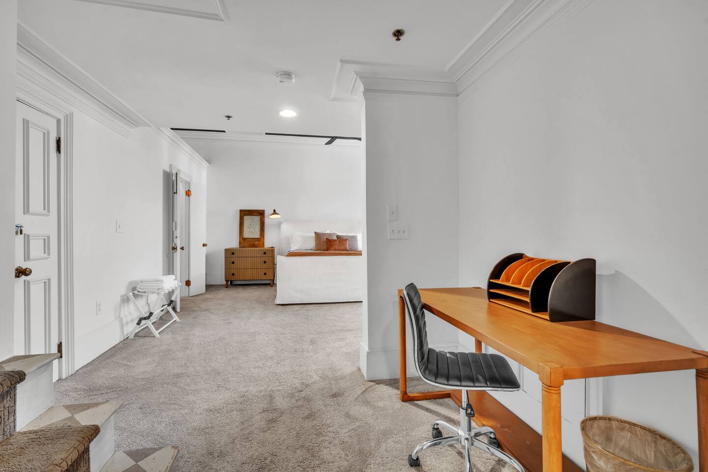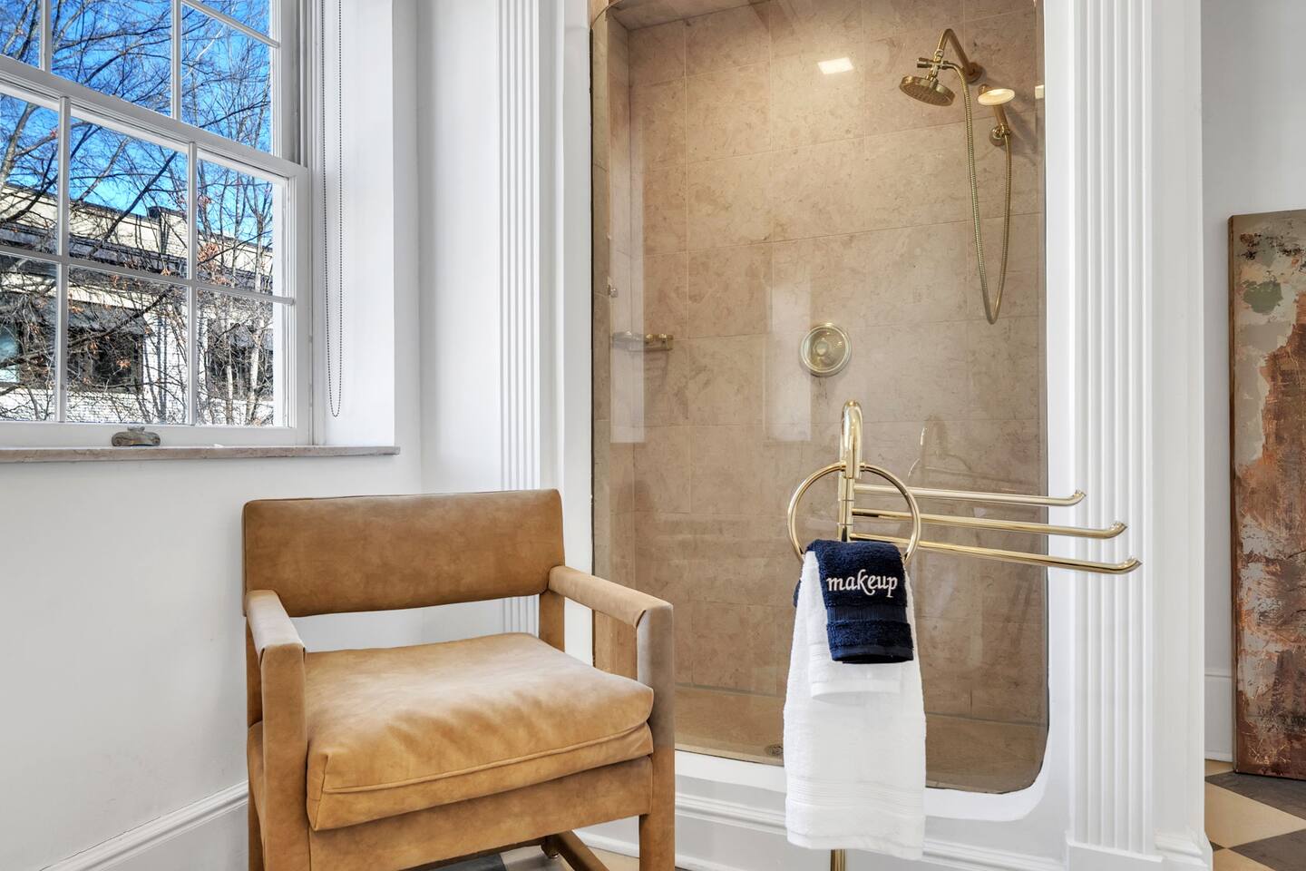 Welcome to The Loft @ W North St, a thoughtfully designed two-bedroom, two-bathroom condo in the heart of Downtown Greenville. Located in a charming historic pink building at the corner of Main St and W North St, this loft perfectly blends luxury, character, and convenience, making it the ideal stay for travelers seeking an unique experience. Please note that this is an upstairs unit, and guests must walk up two flights of stairs to access the space. From the moment you step inside, you'll be surrounded by a sophisticated mix of modern design and old-world charm. With its historic 1892 hardwood floors, elegant finishes, and carefully curated decor, this space offers a warm yet refined ambiance that sets it apart. This loft offers unbeatable walkability to Downtown Greenville's best attractions. Stroll just minutes to the city's top restaurants, coffee shops, and cocktail bars, or take in a show at The Peace Center. Wander through the charming streets and discover boutique shops, art galleries, and the picturesque Reedy River Falls at Falls Park. Self-pay garage parking is available about a block away, so you can easily explore the city. Upon entering, you'll be greeted by a stunning and thoughtfully designed living room featuring striking gray ceilings, plush seating, and carefully selected furnishings that create a cozy yet refined atmosphere. A chandelier sparkles overhead, adding to the grandeur, while large windows fill the space with natural light. Adjacent to the living area, the dining room features a beautiful six-person table, ideal for enjoying meals together or gathering for a relaxing evening. The chef's kitchen is a standout, featuring stainless steel appliances, a commercial-grade gas range for restaurant-quality cooking, and exposed brick walls that add character and warmth. The custom cabinetry and elegant countertops provide a fully stocked space with cookware, dishes, and utensils, making it easy to prepare a full meal or brew your morning coffee. The primary suite is a private retreat designed for relaxation and elegance. It features a luxurious king bed, comfy bedding, and two stylish nightstands. Floor-to-ceiling drapes allow you to block out light, while a cozy leather seating area near the window offers the perfect spot for sipping coffee or unwinding with a book. The en-suite bathroom rivals a spa, boasting an antique clawfoot soaking tub for ultimate relaxation, a marble walk-in shower with rain showerhead and brass fixtures, and an antique mirror with a large vanity with ample counter space. A separate toilet room adds an extra level of privacy. This room features a dedicated workspace with a stylish desk and chair for those who need to work remotely, providing a space for productivity. The guest bedroom is equally charming, featuring a queen four-poster bed, stylish nightstands, and rich decorative details. Across the hall, the guest bathroom features a luxurious double-door glass shower with a central rain-shower head and handheld fixture, plus a sleek single vanity and private toilet cubby. An in-unit washer and dryer add extra convenience, making it easy to freshen up during more extended stays. The unit is pet-friendly with a fee, though guests should note that there is no yard, so pets will need to be walked for bathroom breaks. A keyless entry with a Smart Lock ensures hassle-free check-in, and the unit is accessible via two flights of stairs. Whether you're visiting for a romantic getaway, a business trip, or a weekend escape, this loft provides a refined yet welcoming space in an unbeatable location. Need more space? We also offer Loft 1892, a second luxury unit nearby, perfect for larger groups traveling together. As a corner unit right on Main St, guests should expect some city noise from foot traffic, nearby businesses, and passing cars. Experience historic charm, modern elegance, and the best of Downtown Greenville at The Loft @ W North St—book your stay today!