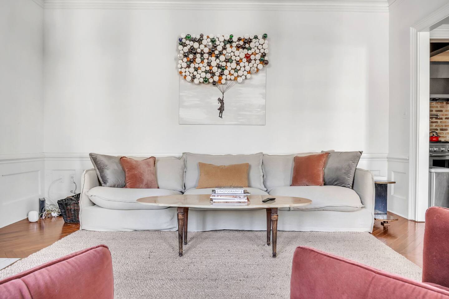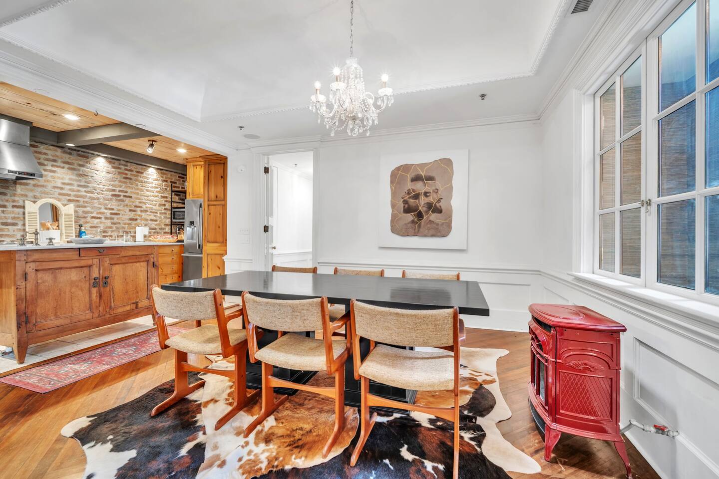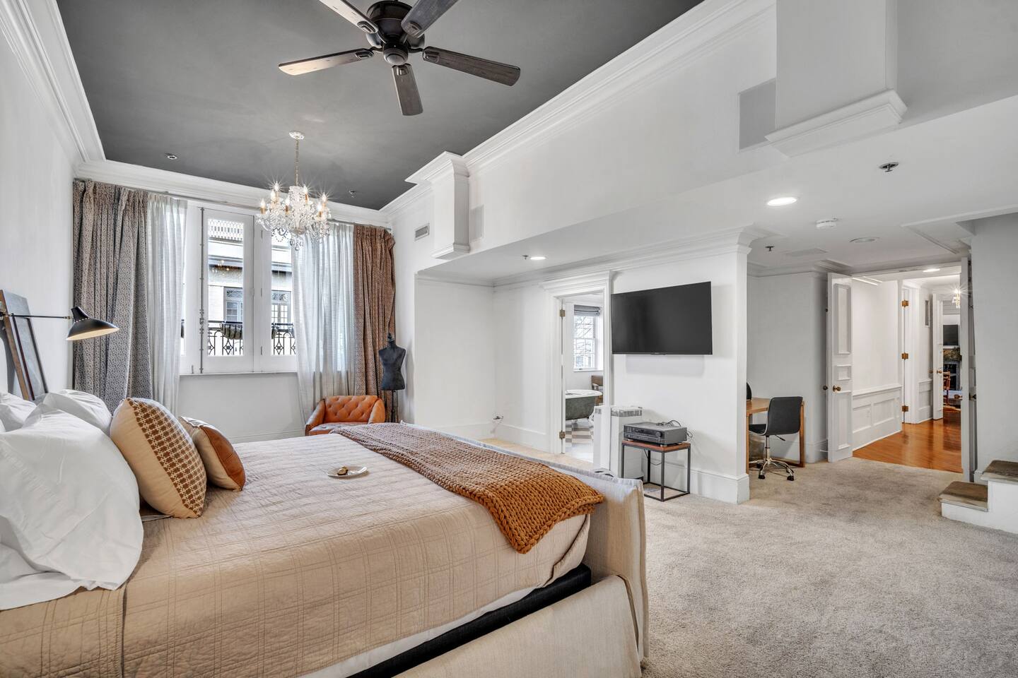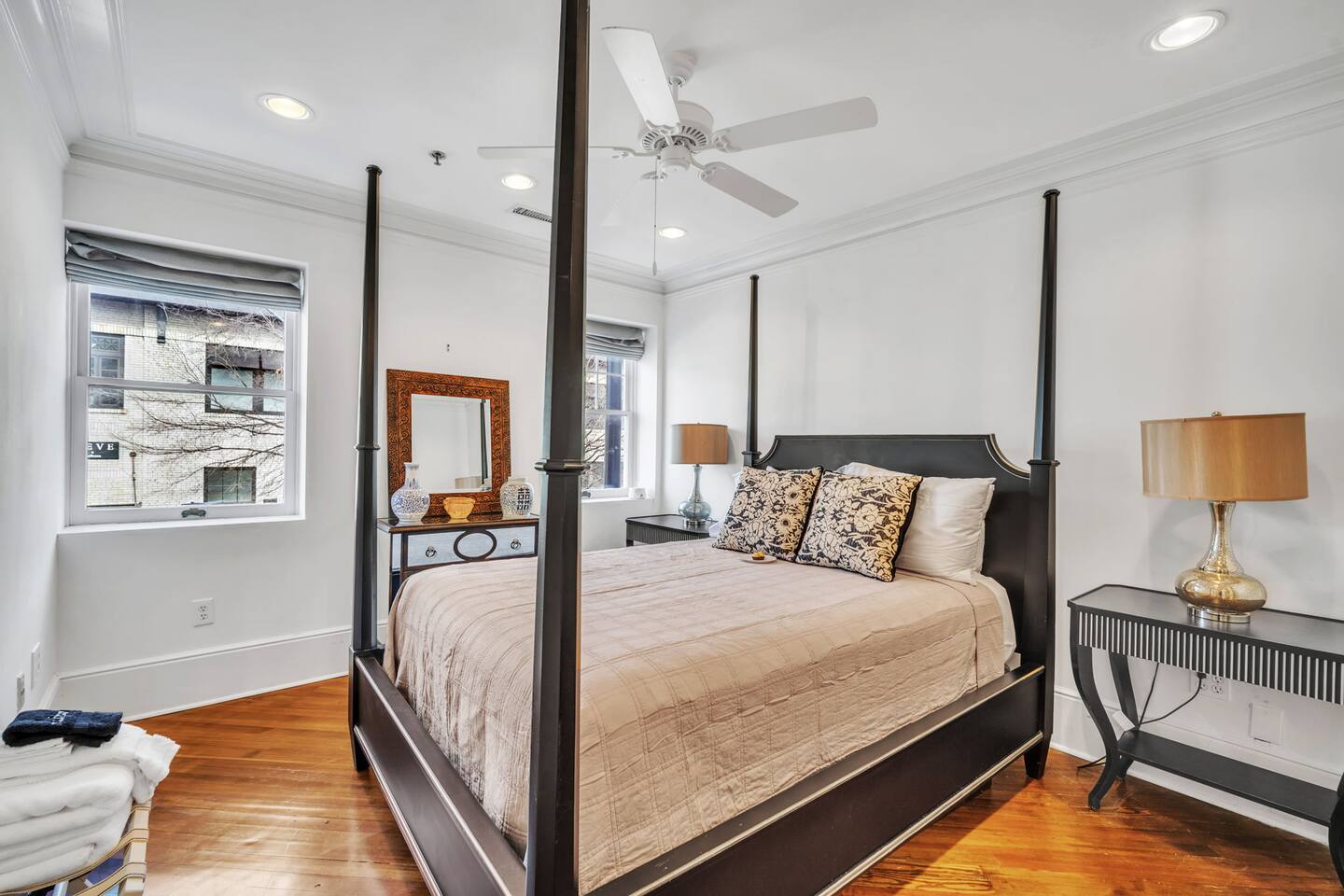 Welcome to The Loft @ W North St, a thoughtfully designed two-bedroom, two-bathroom condo in the heart of Downtown Greenville. Located in a charming historic pink building at the corner of Main St and W North St, this loft perfectly blends luxury, character, and convenience, making it the ideal stay for travelers seeking an unique experience. Please note that this is an upstairs unit, and guests must walk up two flights of stairs to access the space. From the moment you step inside, you'll be surrounded by a sophisticated mix of modern design and old-world charm. With its historic 1892 hardwood floors, elegant finishes, and carefully curated decor, this space offers a warm yet refined ambiance that sets it apart. This loft offers unbeatable walkability to Downtown Greenville's best attractions. Stroll just minutes to the city's top restaurants, coffee shops, and cocktail bars, or take in a show at The Peace Center. Wander through the charming streets and discover boutique shops, art galleries, and the picturesque Reedy River Falls at Falls Park. Self-pay garage parking is available about a block away, so you can easily explore the city. Upon entering, you'll be greeted by a stunning and thoughtfully designed living room featuring striking gray ceilings, plush seating, and carefully selected furnishings that create a cozy yet refined atmosphere. A chandelier sparkles overhead, adding to the grandeur, while large windows fill the space with natural light. Adjacent to the living area, the dining room features a beautiful six-person table, ideal for enjoying meals together or gathering for a relaxing evening. The chef's kitchen is a standout, featuring stainless steel appliances, a commercial-grade gas range for restaurant-quality cooking, and exposed brick walls that add character and warmth. The custom cabinetry and elegant countertops provide a fully stocked space with cookware, dishes, and utensils, making it easy to prepare a full meal or brew your morning coffee. The primary suite is a private retreat designed for relaxation and elegance. It features a luxurious king bed, comfy bedding, and two stylish nightstands. Floor-to-ceiling drapes allow you to block out light, while a cozy leather seating area near the window offers the perfect spot for sipping coffee or unwinding with a book. The en-suite bathroom rivals a spa, boasting an antique clawfoot soaking tub for ultimate relaxation, a marble walk-in shower with rain showerhead and brass fixtures, and an antique mirror with a large vanity with ample counter space. A separate toilet room adds an extra level of privacy. This room features a dedicated workspace with a stylish desk and chair for those who need to work remotely, providing a space for productivity. The guest bedroom is equally charming, featuring a queen four-poster bed, stylish nightstands, and rich decorative details. Across the hall, the guest bathroom features a luxurious double-door glass shower with a central rain-shower head and handheld fixture, plus a sleek single vanity and private toilet cubby. An in-unit washer and dryer add extra convenience, making it easy to freshen up during more extended stays. The unit is pet-friendly with a fee, though guests should note that there is no yard, so pets will need to be walked for bathroom breaks. A keyless entry with a Smart Lock ensures hassle-free check-in, and the unit is accessible via two flights of stairs. Whether you're visiting for a romantic getaway, a business trip, or a weekend escape, this loft provides a refined yet welcoming space in an unbeatable location. Need more space? We also offer Loft 1892, a second luxury unit nearby, perfect for larger groups traveling together. As a corner unit right on Main St, guests should expect some city noise from foot traffic, nearby businesses, and passing cars. Experience historic charm, modern elegance, and the best of Downtown Greenville at The Loft @ W North St—book your stay today!
