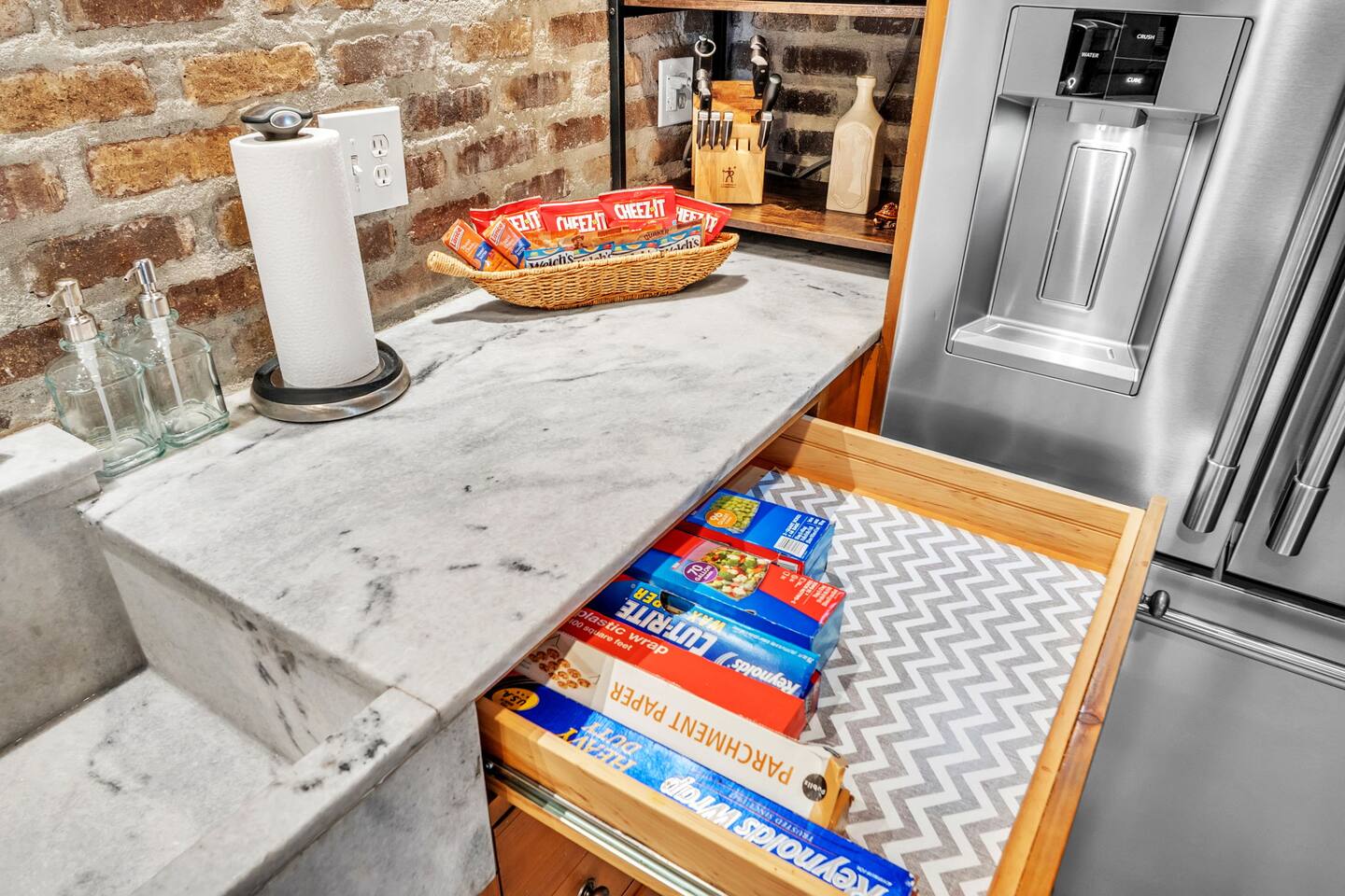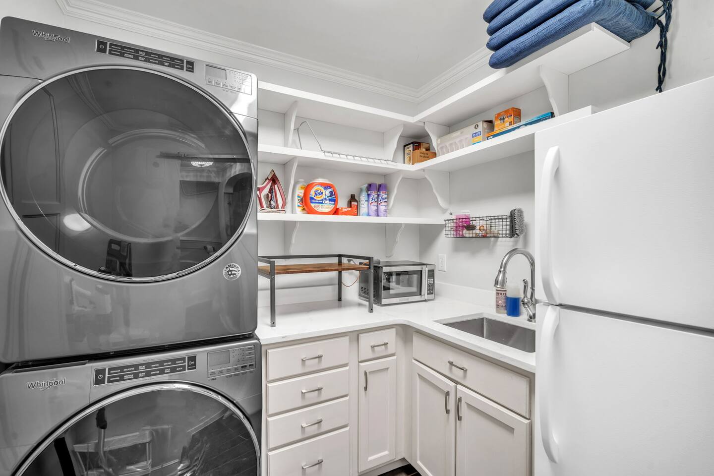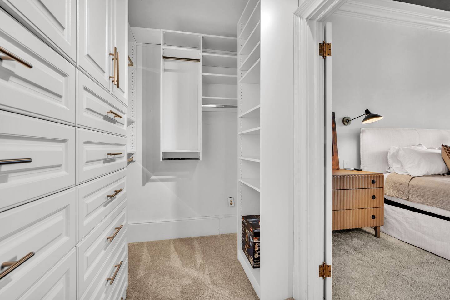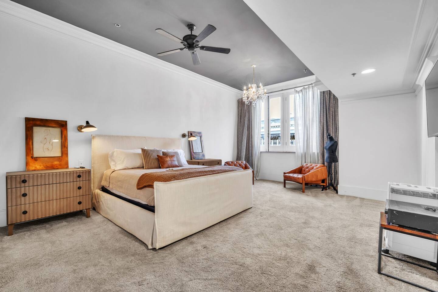 Welcome to The Loft @ W North St, a thoughtfully designed two-bedroom, two-bathroom condo in the heart of Downtown Greenville. Located in a charming historic pink building at the corner of Main St and W North St, this loft perfectly blends luxury, character, and convenience, making it the ideal stay for travelers seeking an unique experience. Please note that this is an upstairs unit, and guests must walk up two flights of stairs to access the space. From the moment you step inside, you'll be surrounded by a sophisticated mix of modern design and old-world charm. With its historic 1892 hardwood floors, elegant finishes, and carefully curated decor, this space offers a warm yet refined ambiance that sets it apart. This loft offers unbeatable walkability to Downtown Greenville's best attractions. Stroll just minutes to the city's top restaurants, coffee shops, and cocktail bars, or take in a show at The Peace Center. Wander through the charming streets and discover boutique shops, art galleries, and the picturesque Reedy River Falls at Falls Park. Self-pay garage parking is available about a block away, so you can easily explore the city. Upon entering, you'll be greeted by a stunning and thoughtfully designed living room featuring striking gray ceilings, plush seating, and carefully selected furnishings that create a cozy yet refined atmosphere. A chandelier sparkles overhead, adding to the grandeur, while large windows fill the space with natural light. Adjacent to the living area, the dining room features a beautiful six-person table, ideal for enjoying meals together or gathering for a relaxing evening. The chef's kitchen is a standout, featuring stainless steel appliances, a commercial-grade gas range for restaurant-quality cooking, and exposed brick walls that add character and warmth. The custom cabinetry and elegant countertops provide a fully stocked space with cookware, dishes, and utensils, making it easy to prepare a full meal or brew your morning coffee. The primary suite is a private retreat designed for relaxation and elegance. It features a luxurious king bed, comfy bedding, and two stylish nightstands. Floor-to-ceiling drapes allow you to block out light, while a cozy leather seating area near the window offers the perfect spot for sipping coffee or unwinding with a book. The en-suite bathroom rivals a spa, boasting an antique clawfoot soaking tub for ultimate relaxation, a marble walk-in shower with rain showerhead and brass fixtures, and an antique mirror with a large vanity with ample counter space. A separate toilet room adds an extra level of privacy. This room features a dedicated workspace with a stylish desk and chair for those who need to work remotely, providing a space for productivity. The guest bedroom is equally charming, featuring a queen four-poster bed, stylish nightstands, and rich decorative details. Across the hall, the guest bathroom features a luxurious double-door glass shower with a central rain-shower head and handheld fixture, plus a sleek single vanity and private toilet cubby. An in-unit washer and dryer add extra convenience, making it easy to freshen up during more extended stays. The unit is pet-friendly with a fee, though guests should note that there is no yard, so pets will need to be walked for bathroom breaks. A keyless entry with a Smart Lock ensures hassle-free check-in, and the unit is accessible via two flights of stairs. Whether you're visiting for a romantic getaway, a business trip, or a weekend escape, this loft provides a refined yet welcoming space in an unbeatable location. Need more space? We also offer Loft 1892, a second luxury unit nearby, perfect for larger groups traveling together. As a corner unit right on Main St, guests should expect some city noise from foot traffic, nearby businesses, and passing cars. Experience historic charm, modern elegance, and the best of Downtown Greenville at The Loft @ W North St—book your stay today!