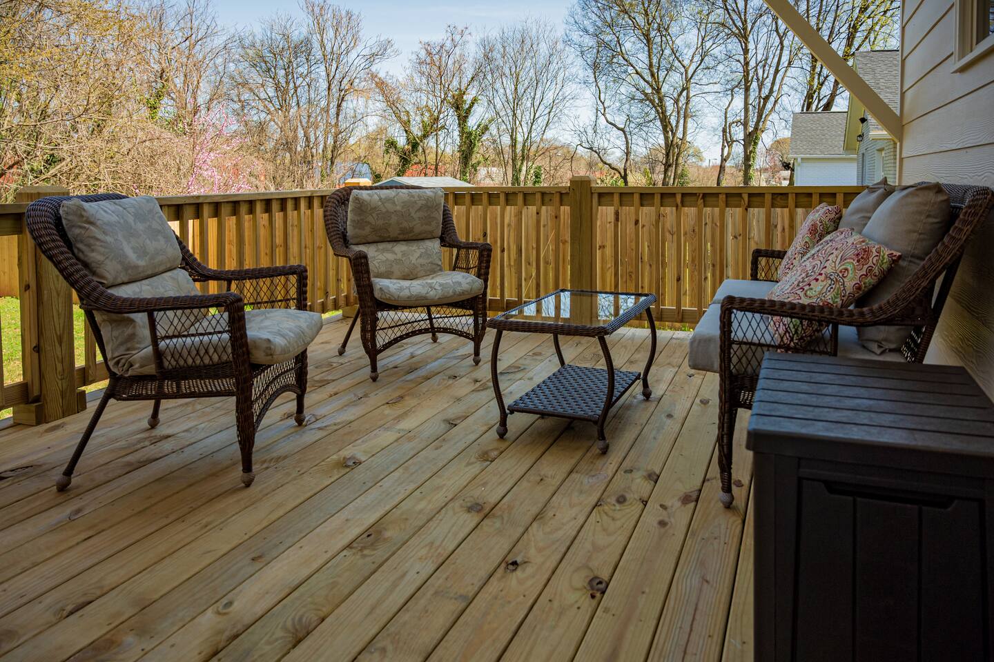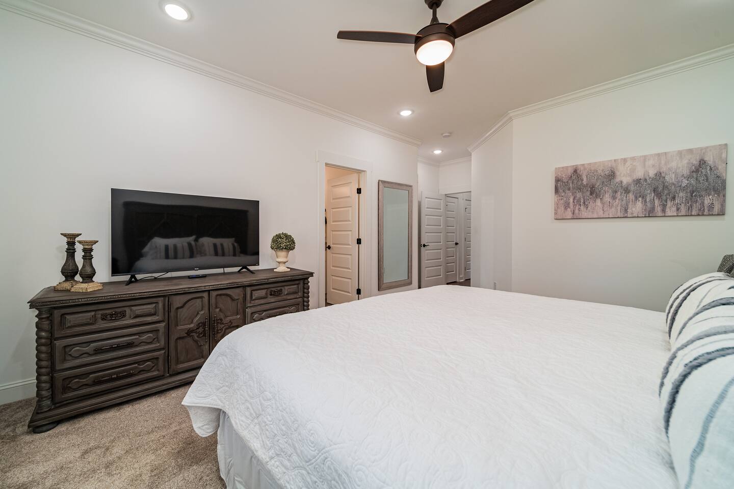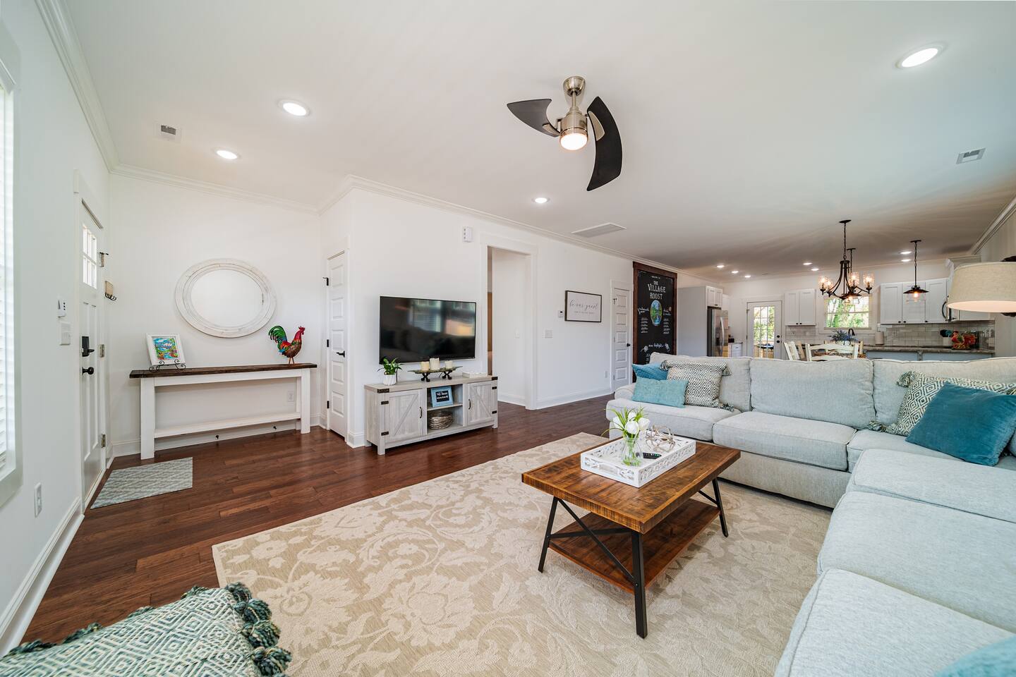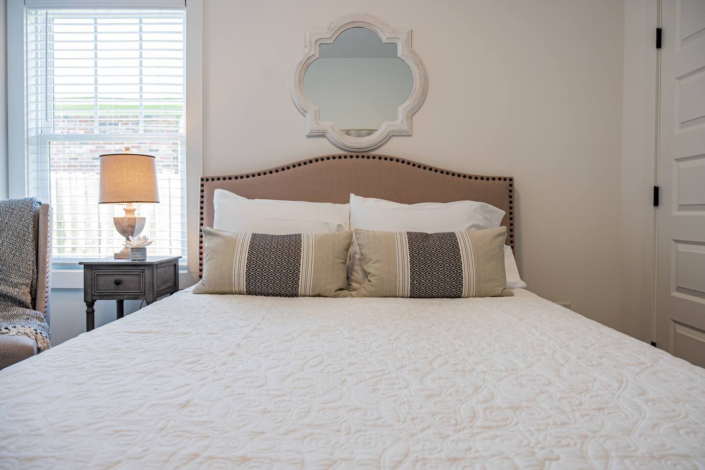 Discover the charm of Greenville, SC at The Village Roost, a freshly-built 3-bedroom, 2-bathroom house available for rentals ranging from 30 to 180 days. This fully-furnished home is conveniently located just 2 minutes from Poe West and the Village of West Greenville, and a brief 7-minute journey from the bustling Downtown. As you arrive, the southern front porch with its welcoming rocking chairs sets the tone for relaxation. Step inside to an open floor plan encompassing a living, dining, and kitchen area designed with comfort and style. The living space features a large, comfy L-shaped sectional, perfect for movie nights on the Smart TV with Roku (no cable). The dining area boasts a unique Farmhouse style table made from a reclaimed door, accommodating 6 people, plus an additional 3 stools at the kitchen peninsula. The journey to the kitchen reveals a large blackboard, artfully decorated by a local Greenville artist, offering recommendations to our favorite spots nearby. The kitchen itself is a delight, equipped with brand-new stainless steel appliances, ready for your culinary adventures. Step outside from the kitchen to a deck with seating for 4 and a gas grill, extending to a fenced yard with additional seating and a fire pit (wood not provided). Pet lovers will be happy to know that their furry friends are welcome (with a fee of $250 for the first pet and $100 for each additional pet). The Village Roost comfortably sleeps 6 guests across three bedrooms: a Twin room with two beds and ample closet space, a Queen bedroom with a large closet, dresser, and a cozy chair, and a secluded master bedroom with a King bed, a large dresser, nightstands, and a TV (streaming services only, no cable). The master suite also includes an ensuite bathroom with a sleek glass door shower and double vanity. A second bathroom is equipped with a tub/shower combination and single vanity. Additionally, a laundry room with provided detergent is available for your convenience. This home comes complete with all lawn care, utilities, internet (streaming-ready TV, no cable), and trash pick up included. The rental terms include a $750 security deposit (refundable), a $250 non-refundable pet fee (plus $100 for each additional pet), and a $315 cleaning fee. Experience Southern hospitality with a modern twist at The Village Roost - your ideal home away from home in Greenville.