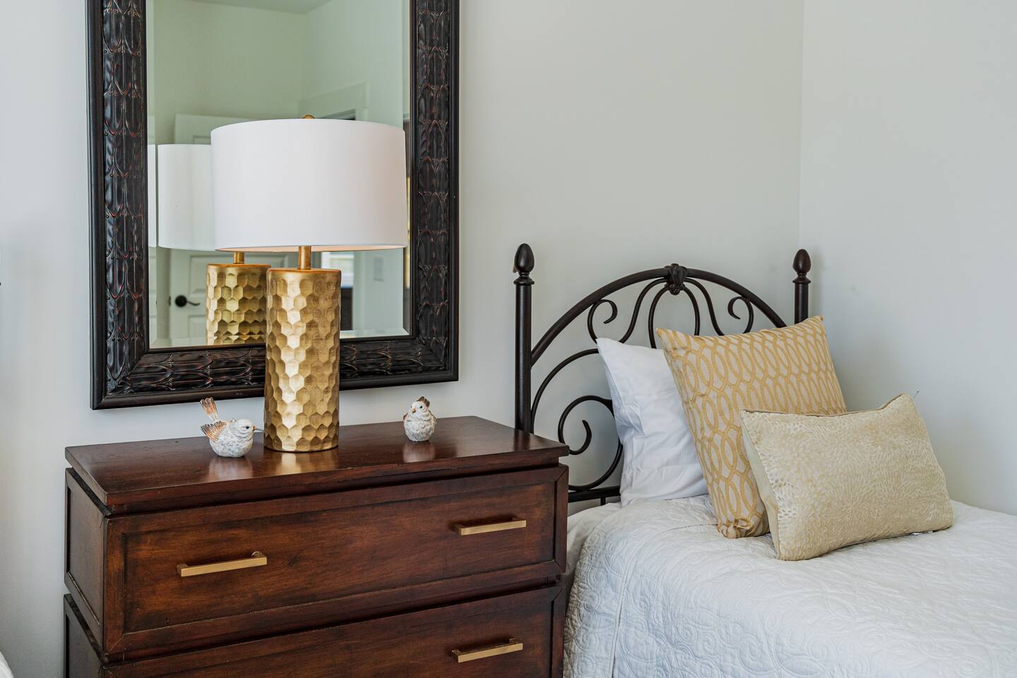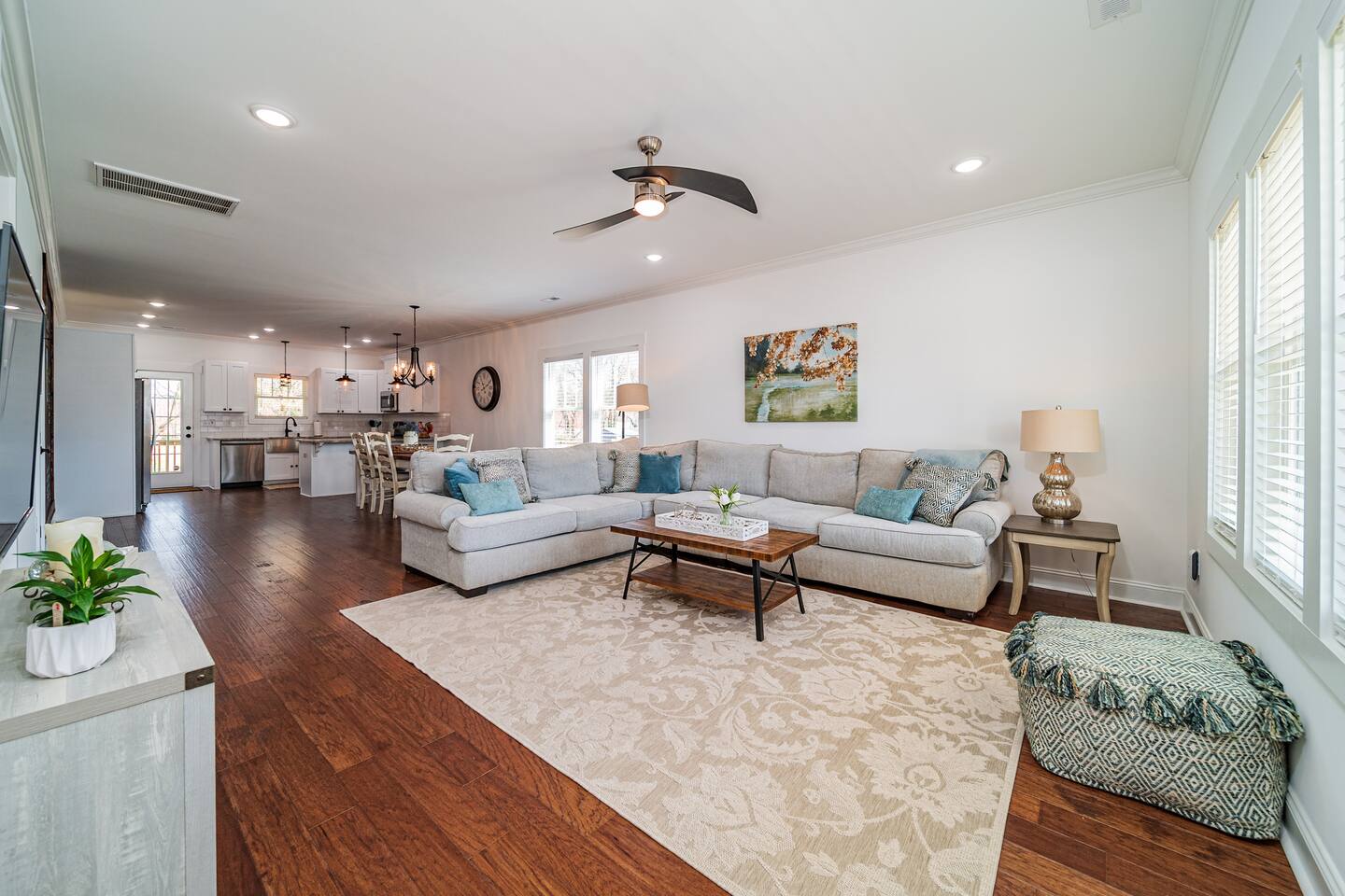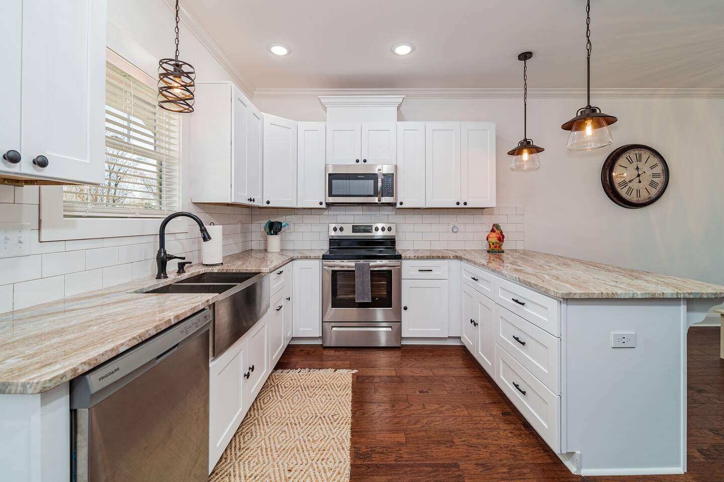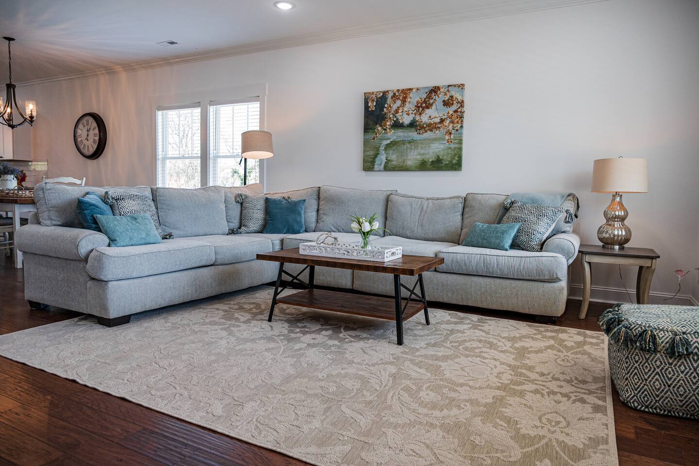 Discover the charm of Greenville, SC at The Village Roost, a freshly-built 3-bedroom, 2-bathroom house available for rentals ranging from 30 to 180 days. This fully-furnished home is conveniently located just 2 minutes from Poe West and the Village of West Greenville, and a brief 7-minute journey from the bustling Downtown. As you arrive, the southern front porch with its welcoming rocking chairs sets the tone for relaxation. Step inside to an open floor plan encompassing a living, dining, and kitchen area designed with comfort and style. The living space features a large, comfy L-shaped sectional, perfect for movie nights on the Smart TV with Roku (no cable). The dining area boasts a unique Farmhouse style table made from a reclaimed door, accommodating 6 people, plus an additional 3 stools at the kitchen peninsula. The journey to the kitchen reveals a large blackboard, artfully decorated by a local Greenville artist, offering recommendations to our favorite spots nearby. The kitchen itself is a delight, equipped with brand-new stainless steel appliances, ready for your culinary adventures. Step outside from the kitchen to a deck with seating for 4 and a gas grill, extending to a fenced yard with additional seating and a fire pit (wood not provided). Pet lovers will be happy to know that their furry friends are welcome (with a fee of $250 for the first pet and $100 for each additional pet). The Village Roost comfortably sleeps 6 guests across three bedrooms: a Twin room with two beds and ample closet space, a Queen bedroom with a large closet, dresser, and a cozy chair, and a secluded master bedroom with a King bed, a large dresser, nightstands, and a TV (streaming services only, no cable). The master suite also includes an ensuite bathroom with a sleek glass door shower and double vanity. A second bathroom is equipped with a tub/shower combination and single vanity. Additionally, a laundry room with provided detergent is available for your convenience. This home comes complete with all lawn care, utilities, internet (streaming-ready TV, no cable), and trash pick up included. The rental terms include a $750 security deposit (refundable), a $250 non-refundable pet fee (plus $100 for each additional pet), and a $315 cleaning fee. Experience Southern hospitality with a modern twist at The Village Roost - your ideal home away from home in Greenville.